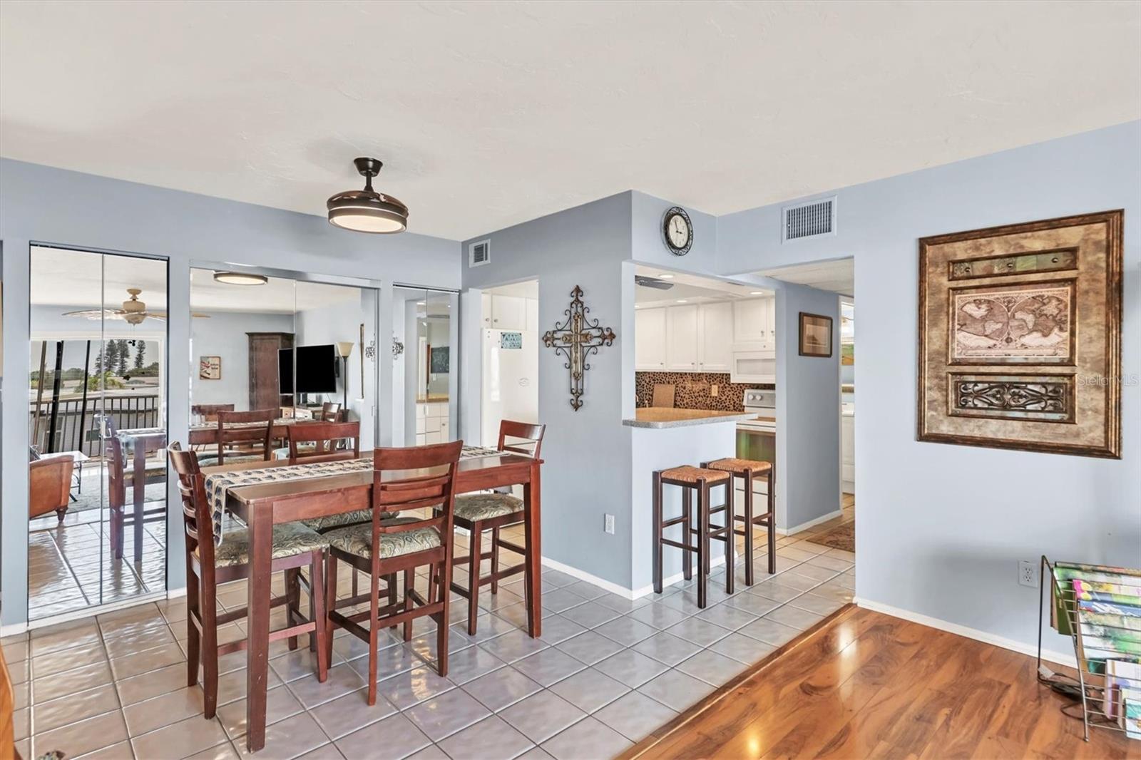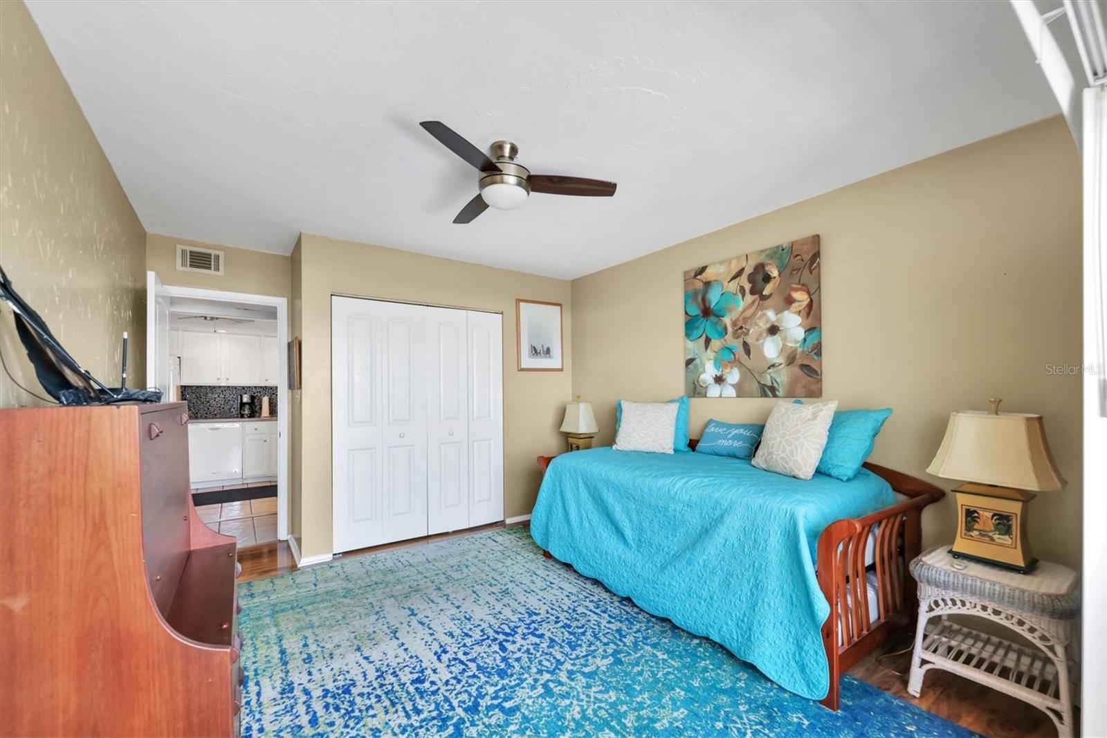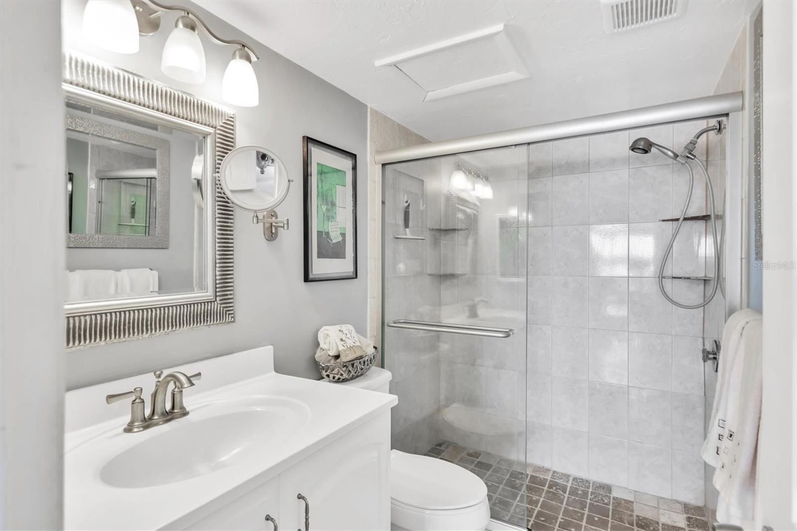 Location! Location! Location! This is a True Boaters Paradise! This is where you can park your boat for $2.00 a foot! Discover the best-kept secret in Bradenton— WELCOME BOATERS to Sarabay Cove! Step out of your condo and onto your boat, and in just minutes, you'll be cruising Sarasota Bay. Don't miss out on this stunning condo; it's a must-see! From the moment you enter, you'll notice the meticulous care and updates throughout this two-bedroom, two-bath, first-floor unit that feels like a model home. The kitchen features beautiful newer cabinets, a stylish backsplash, and quartz countertops, all opening to the living and dining rooms. There is also a balcony with sliding glass doors that lead to your lanai with a gorgeous water view. Enjoy a different breathtaking sunset every evening. Open the sliding doors to let in fresh air and create a perfect cross breeze. The master bedroom is freshly painted, with wood floors, a large walk-in closet, and sliding glass doors that lead to the balcony. The en-suite bathroom features a walk-in shower, a new vanity, and ceramic tile floors. The second bedroom is bright and airy, with a tub/shower combo and an updated hall bathroom. Hurricane shutters are on all the sliding glass doors, and it is easy to close in minutes. This unit features a storage closet on the lanai and an additional one on the first floor. The community boasts stunning water views, a beautiful clubhouse, gas grills, an Olympic-sized pool, a hot tub, tennis courts, a community workshop, a dinghy room, elevators, and storage for bikes, kayaks, and beach items. You can dock your boat for just $2.00 foot a month, with electricity and water included. The complex consists of three buildings with canals between each one, allowing up to 12 rentals year (with a 30-day minimum stay). Centrally located near shopping, banks, gyms, and the world-famous Lido Beach—RUN, don't walk, to see this spectacular condo!