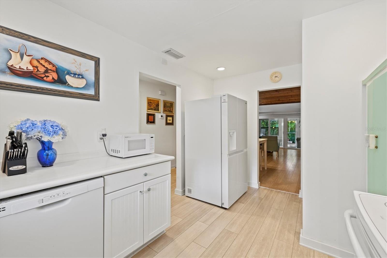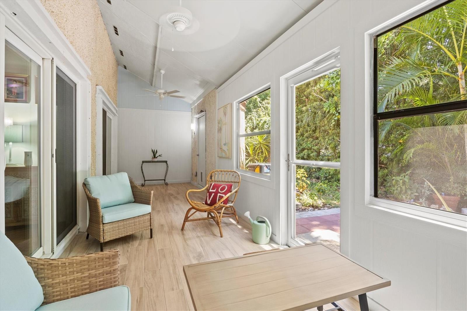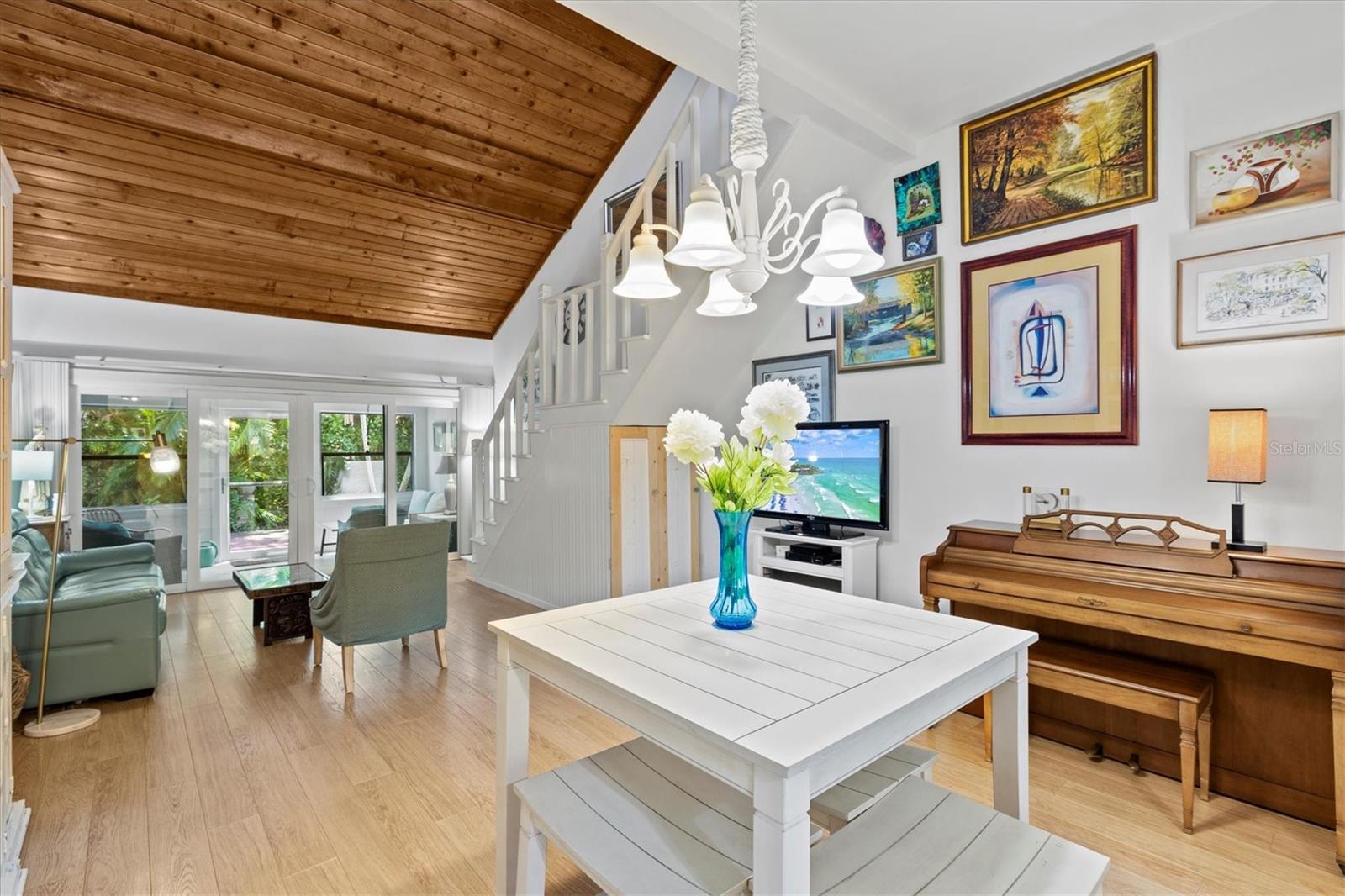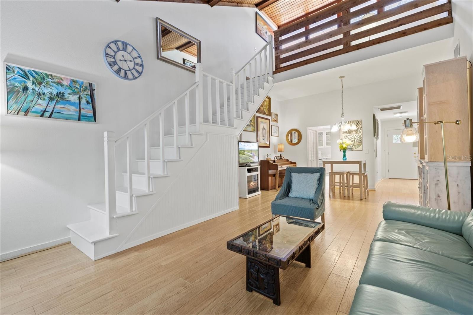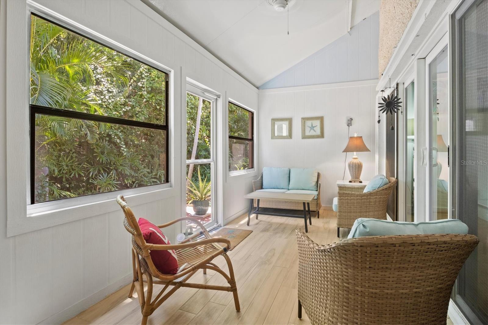 Welcome to this beautiful 2 bedroom, 2 bathroom home just a quick 9 minute 5 mile drive to Anna Maria Island and the beautiful Bradenton Beaches. This charming residence offers vaulted ceilings, stylish laminate flooring, and energy-efficient LED recessed lighting. The home includes a recently added $7,000 staircase leading to a versatile loft space, a new roof installed in 2022, AC 2024, refrigerator 2023, washer/dryer 3 months old, energy-efficient sliding glass doors with hurricane-rated, noise-reducing double-pane glass and an enclosed Florida room with a thermo-insulated ceiling and rear entry storm door. The back lanai has been upgraded with elegant porcelain tile, providing an ideal space to relax. Both the front and back door screens have been recently replaced, ensuring a fresh and inviting entry. Located just minutes to the vibrant Downtown Bradenton, Riverwalk, and Desoto National Memorial, this home offers the perfect blend of tranquility and convenience. Nature lovers will appreciate the close proximity to Robinson Nature Preserve, ideal for outdoor activities and serene walks. Pine Bay Forest is a maintenance-free community that provides residents with resort-style amenities, including a sparkling pool and spa, tennis and pickleball courts, a private dock offering breathtaking views of Palma Sola Bay and more. Don’t miss the opportunity to make this upgraded condo your new home in paradise!
