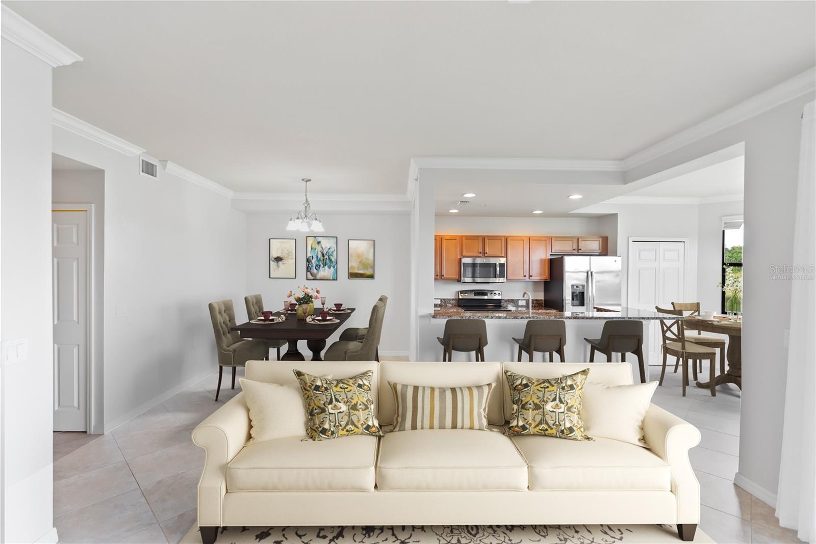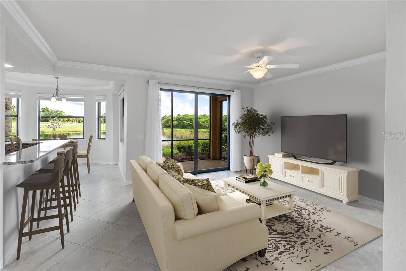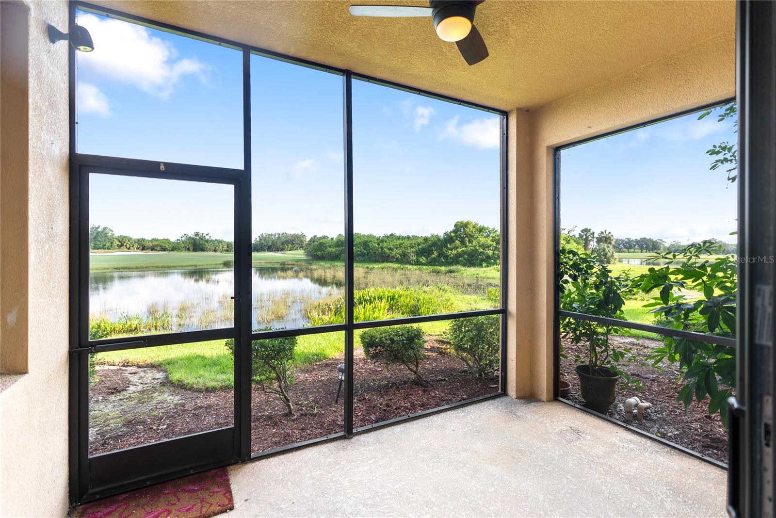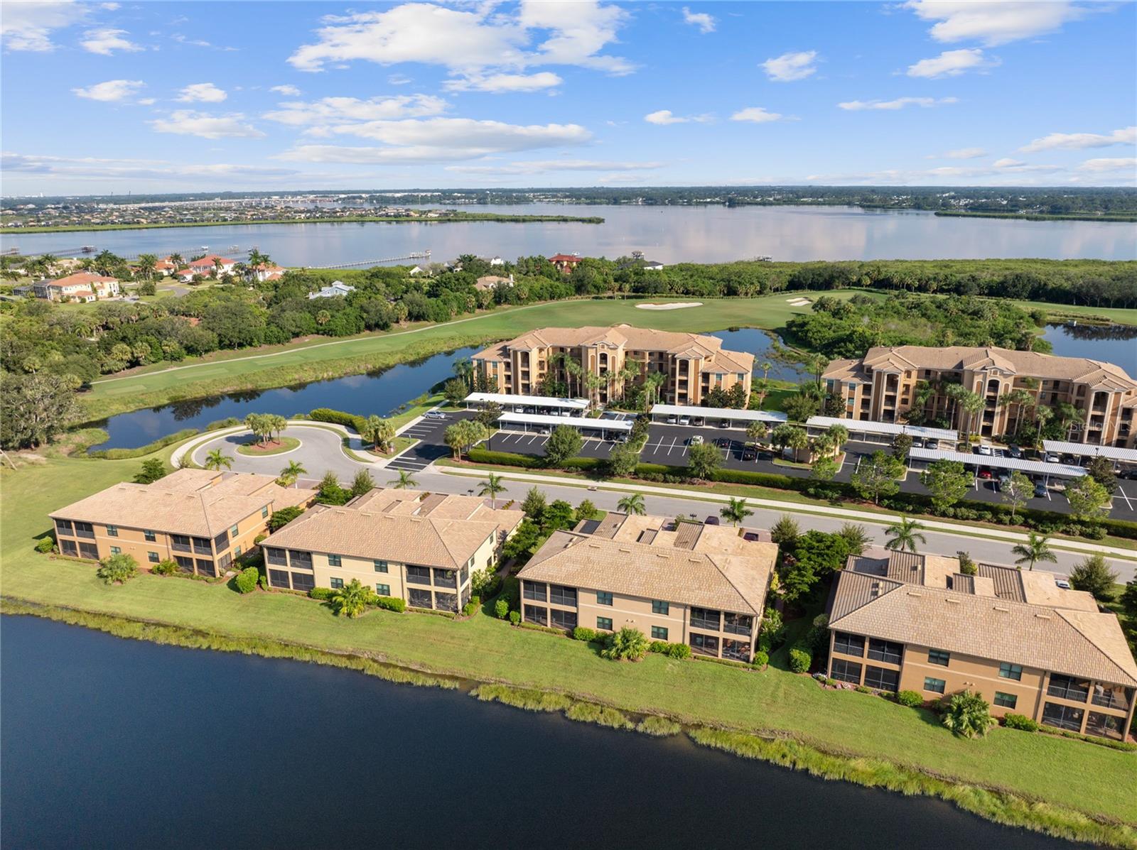 One or more photo(s) has been virtually staged. Welcome to Resort-Style Living at River Strand Golf & Country Club! This beautifully maintained 2-bedroom, 2-bathroom condo offers serene golf course and lake views from its private, screened lanai. Situated on the first floor, this unit provides easy access and convenience, making it perfect for both seasonal and full-time residents. This beautiful condo has recently been fully repainted including doors and crown molding- essentially allowing for your own blank canvas to decorate how you want! The living area flows seamlessly into the dining space and kitchen, creating a bright and airy atmosphere which is equipped with stainless steel appliances, granite countertops, and a breakfast bar, perfect for casual dining or entertaining guests. The spacious primary bedroom boasts a walk-in closet and an en-suite bathroom with premium finishes and large zero entry shower. There is an in-unit laundry fully equipped with a full-sized washer and dryer. The second bedroom is generously sized, providing comfort for family or guests. Enjoy your morning coffee or evening cocktails on the screened lanai with stunning views of the golf course and lake. Community Amenities include: Golf Membership: Optional Buy In/First Come First Serve basis, offering access to 27 holes of championship golf. Resort-Style Pools: Take a dip in one of the community’s luxurious heated saltwater pools or unwind in the jacuzzi. Fitness Center: Stay active with a fully-equipped fitness center. Tennis & Pickleball Courts: Perfect for those who enjoy staying active. Clubhouse & Dining: Enjoy fine dining at the clubhouse or a casual meal at the poolside tiki bar. Located in a gated community, this condo offers peace of mind and a vibrant lifestyle. River Strand is conveniently located near shopping, dining, and the beautiful Gulf beaches. Don’t miss your chance to own a piece of paradise in Bradenton!