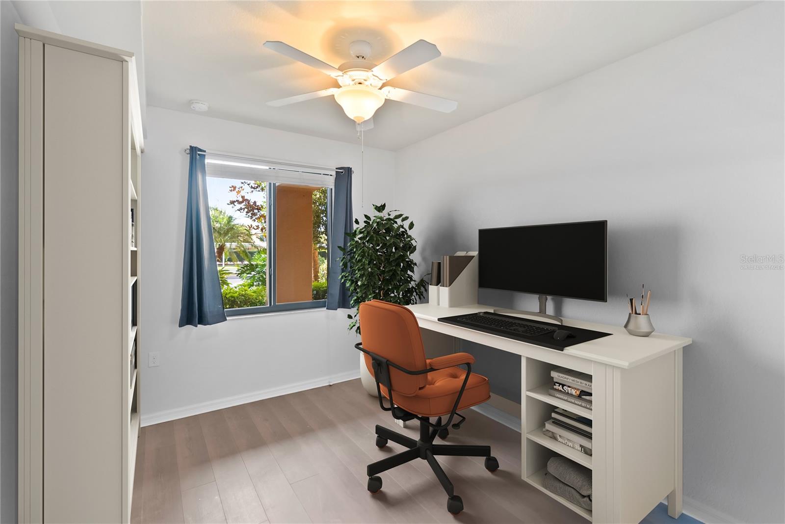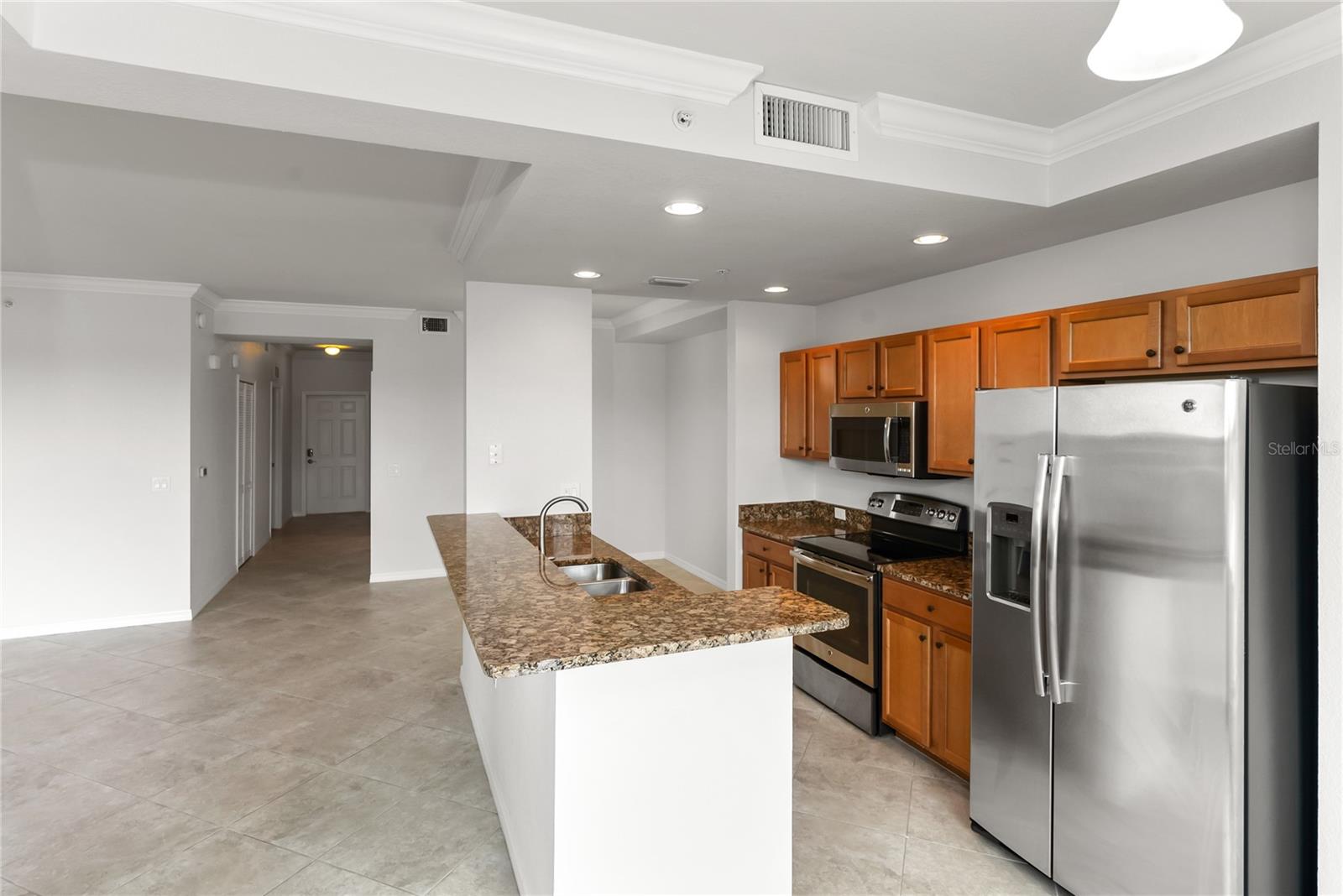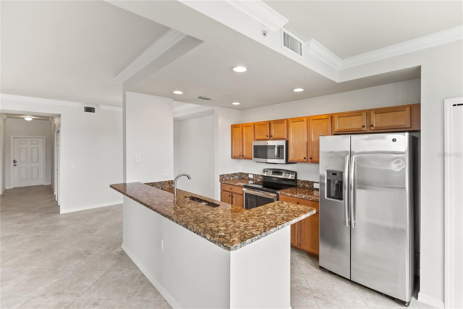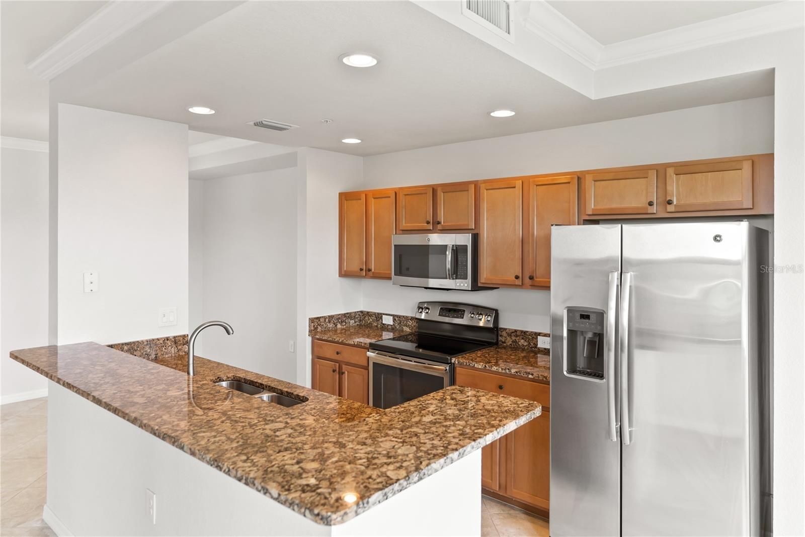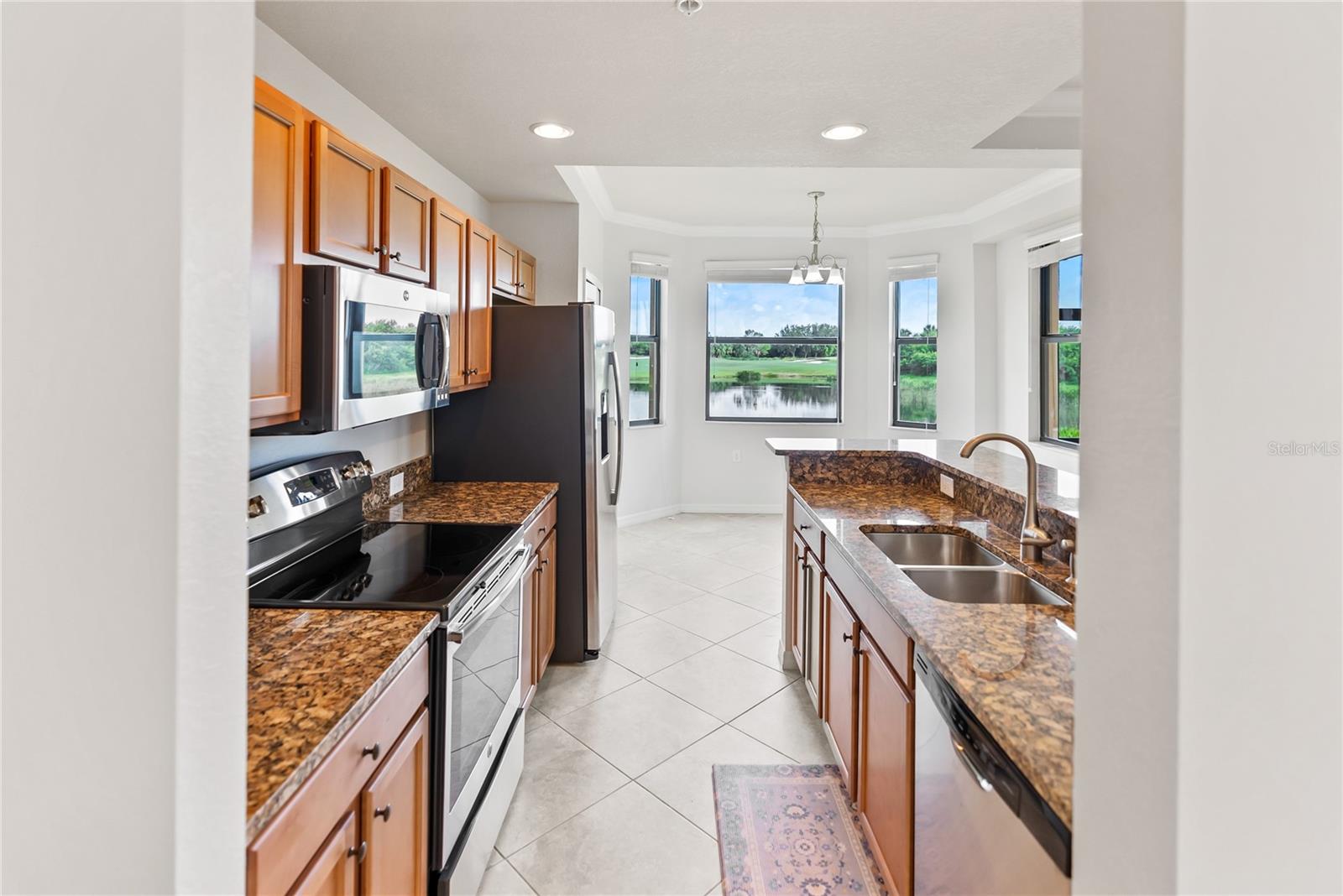 One or more photo(s) has been virtually staged. Welcome to Resort-Style Living at River Strand Golf & Country Club! This beautifully maintained 2-bedroom, 2-bathroom condo offers serene golf course and lake views from its private, screened lanai. Situated on the first floor, this unit provides easy access and convenience, making it perfect for both seasonal and full-time residents. This beautiful condo has recently been fully repainted including doors and crown molding- essentially allowing for your own blank canvas to decorate how you want! The living area flows seamlessly into the dining space and kitchen, creating a bright and airy atmosphere which is equipped with stainless steel appliances, granite countertops, and a breakfast bar, perfect for casual dining or entertaining guests. The spacious primary bedroom boasts a walk-in closet and an en-suite bathroom with premium finishes and large zero entry shower. There is an in-unit laundry fully equipped with a full-sized washer and dryer. The second bedroom is generously sized, providing comfort for family or guests. Enjoy your morning coffee or evening cocktails on the screened lanai with stunning views of the golf course and lake. Community Amenities include: Golf Membership: Optional Buy In/First Come First Serve basis, offering access to 27 holes of championship golf. Resort-Style Pools: Take a dip in one of the community’s luxurious heated saltwater pools or unwind in the jacuzzi. Fitness Center: Stay active with a fully-equipped fitness center. Tennis & Pickleball Courts: Perfect for those who enjoy staying active. Clubhouse & Dining: Enjoy fine dining at the clubhouse or a casual meal at the poolside tiki bar. Located in a gated community, this condo offers peace of mind and a vibrant lifestyle. River Strand is conveniently located near shopping, dining, and the beautiful Gulf beaches. Don’t miss your chance to own a piece of paradise in Bradenton!