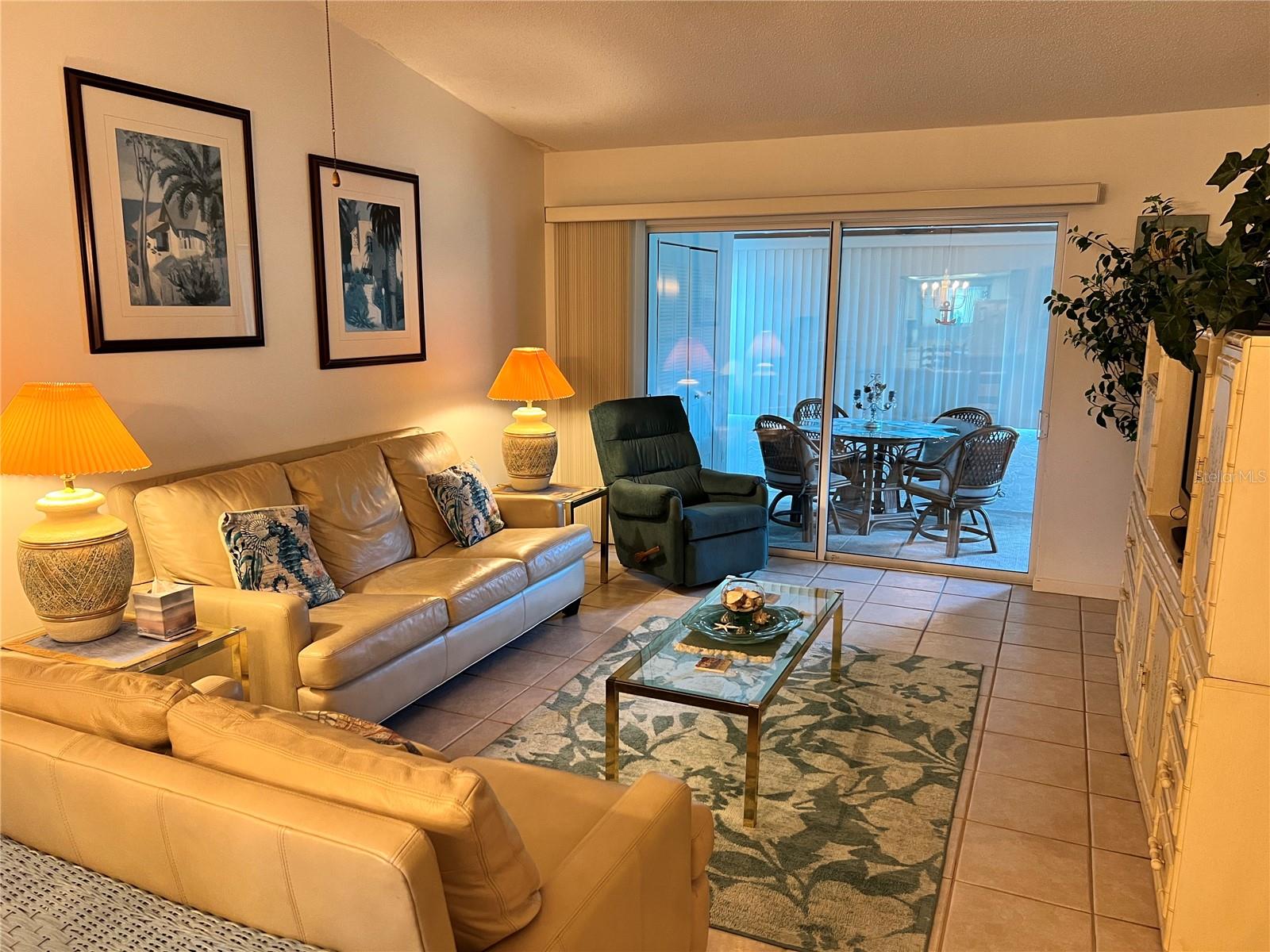 At 1261 sq. ft. this is one of the largest 2 bedroom 2 bathroom homes in Meadowcroft. A 55+ community is in a pet friendly and highly desirable neighborhood. Tile flooring throughout provides beauty and ease of maintenance. A partial remodel of the kitchen offers a breakfast bar then opens into the dinning area and family room Enjoy the vaulted ceilings and sliding door that open into the large enclosed lanai. The barrel tile roof and hot water heater only about 3 years old. Enjoy your covered parking heated pool, tennis courts, shuffle board and a gazebo overlooking the viewing pond. The clubhouse includes an active social calendar Included in your monthly dues are cable, water, sewer, lawn care and funding the condo reserves. Located in a ideal area its near the clubhouse, close to hospital dinning and shopping with a short drive to the beaches.