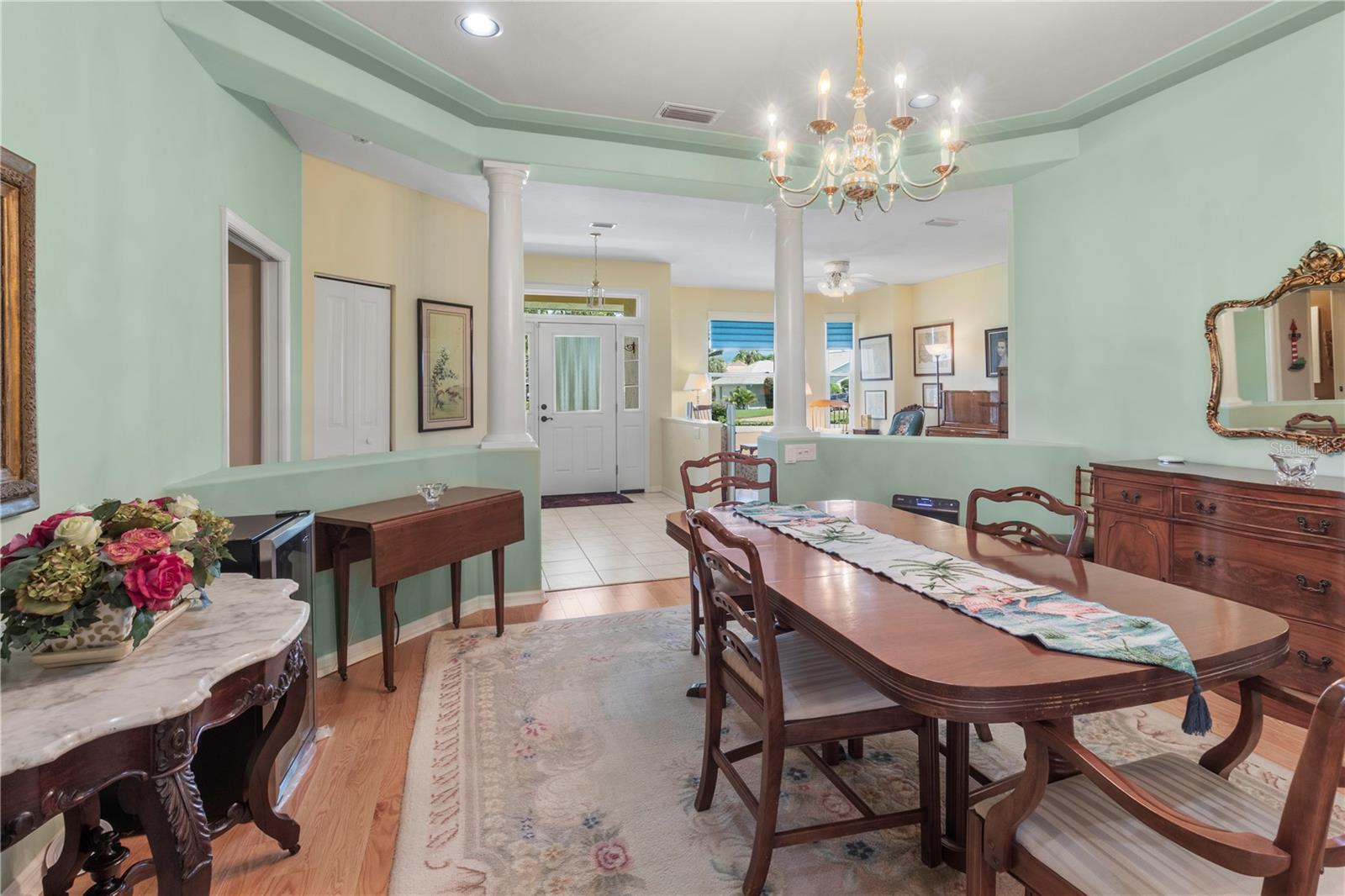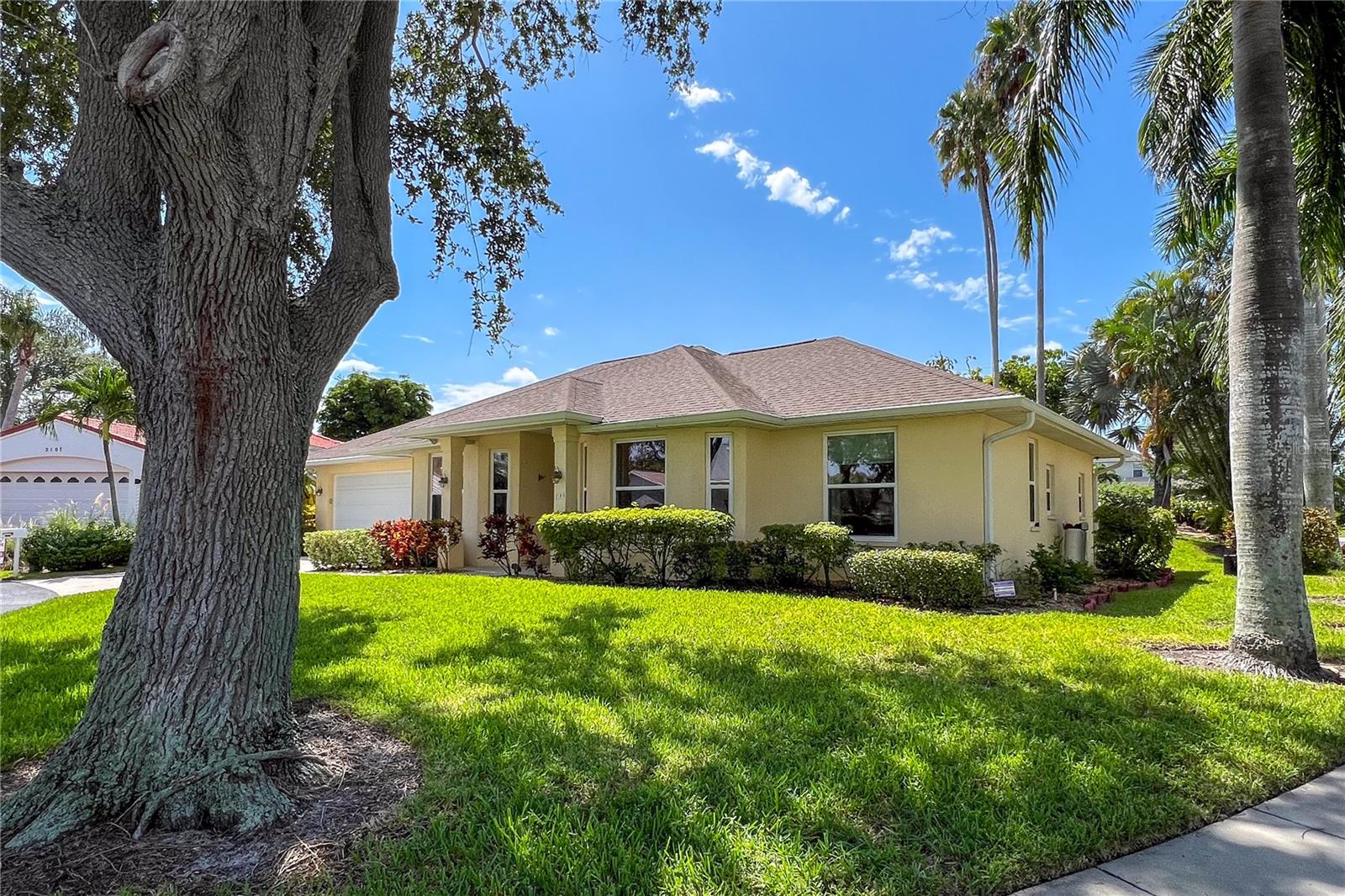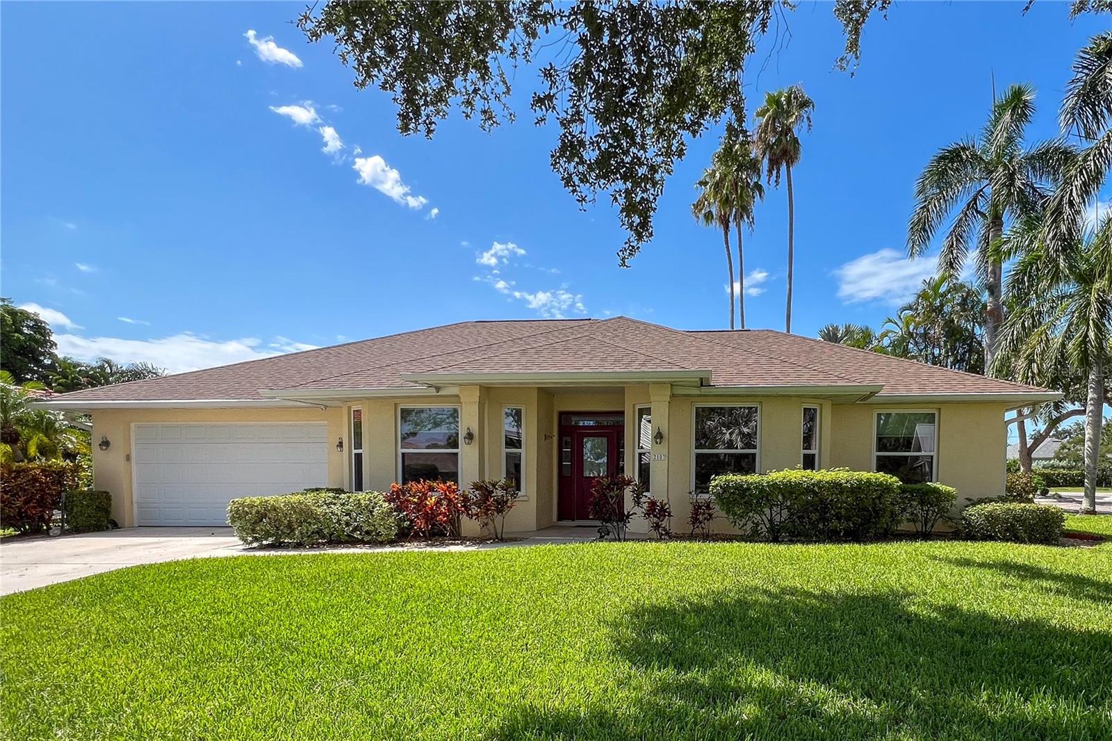 GREAT VALUE! PRICED BELOW MARKET! Experience Unparalleled Privacy and Waterfront Luxury at 2103 89th St. NW Discover your private oasis in this exceptional single-story home nestled within an exclusive waterfront community. Located on a desirable corner lot, this property offers an unparalleled sense of seclusion and tranquility. Unrivaled Privacy: Privacy is paramount here. The corner lot design provides open space on two sides, further enhanced by thoughtful landscaping. A four-foot berm adorned with lush plantings shields the southern exposure, while majestic eight-foot plantings create a serene buffer to the east. Automated shades descend at sunset and rise at sunrise, ensuring complete privacy day and night. Miami-Dade hurricane-rated windows and doors provide exceptional sound insulation, creating a peaceful and secure environment. A Vibrant Waterfront Community: During the day, the living room's picture window offers a glimpse of this unique 36-home community, where each residence boasts individual character while maintaining a cohesive aesthetic. Residents enjoy exclusive access to a range of amenities, including lawn maintenance, a sparkling pool, a clubhouse for private events, a tennis court, and a private pier overlooking the breathtaking confluence of Tampa Bay and the Manatee River. Witness spectacular nightly sunsets—a shared luxury for residents. HOA dues are paid through June 30, 2025. Elegant and Functional Interiors: Inside, convenience and comfort reign supreme. The owner's suite is a true retreat, featuring a spacious, updated bath with dual sinks, an oversized shower, and a therapeutic tub. The home also includes a formal dining room, a spacious kitchen, office and a family room wired for a 7.1 sound system. Voice-controlled high-end fans in the breakfast nook and family room provide effortless climate control. A whole-house dual-tank water filter ensures pure, refreshing water. The expanded garage offers a versatile workshop and a second refrigerator. A thoughtfully designed guest wing provides privacy and comfort with two bedrooms, a powder room, a BeoSound 1 entertainment system, private outdoor access, and a fully updated bathroom with dual sinks and a supplemental hot water heater. Smart Home Technology: Embrace modern living with integrated smart home technology. Control the bath water temperature, thermostat, and even holiday lighting with simple voice commands using Alexa. Set the perfect ambiance with infinite color lighting in the kitchen, family room, and dining room. Security cameras and other home features can be conveniently controlled remotely from your smartphone, providing peace of mind wherever you are. Outdoor Oasis: Step outside onto the 400 sq ft tiled wrap-around lanai, perfect for enjoying the fresh air and expanding your living and entertaining space. The beautifully landscaped yard features enchanting garden path lighting, creating a tranquil outdoor retreat. Schedule Your Private Showing: Don't miss the opportunity to experience the unparalleled privacy, luxury, and convenience of 2103 89th St. NW. Schedule a showing today and discover your dream waterfront oasis.