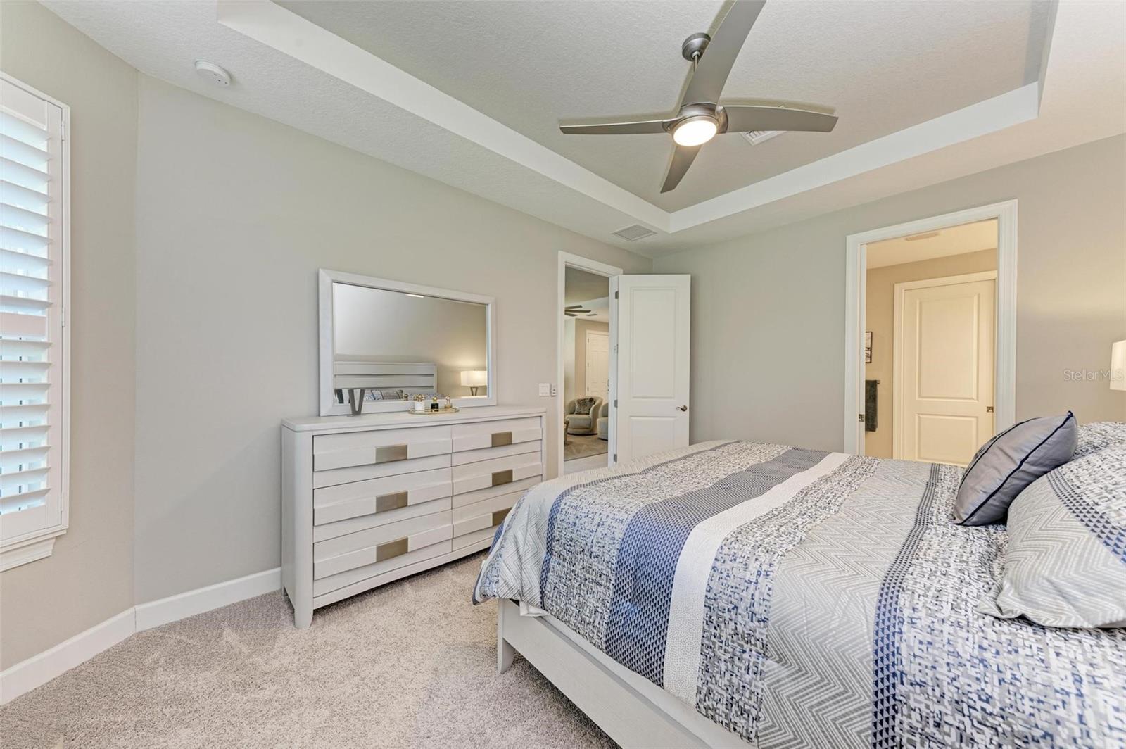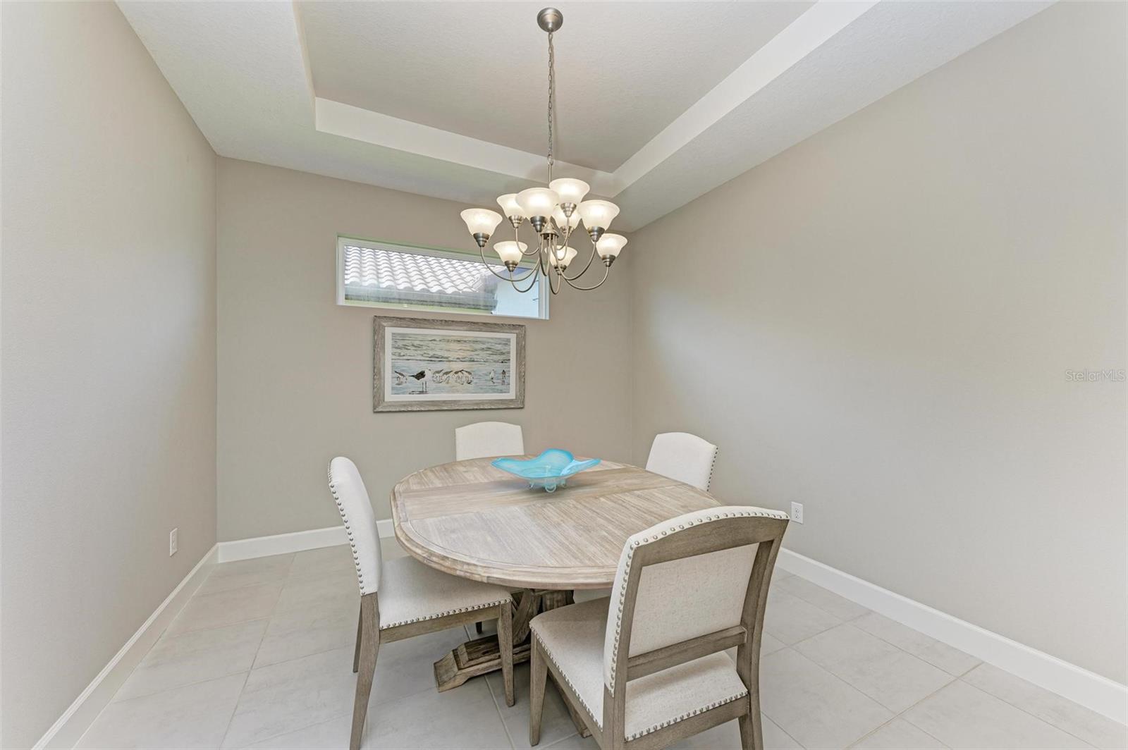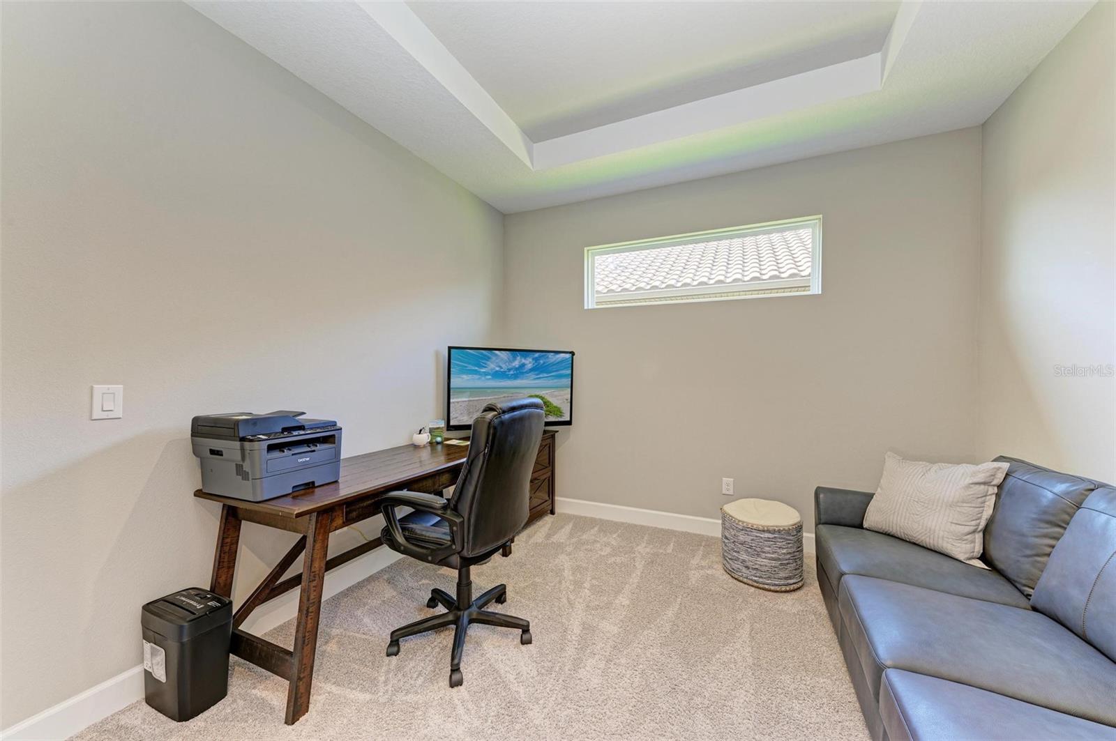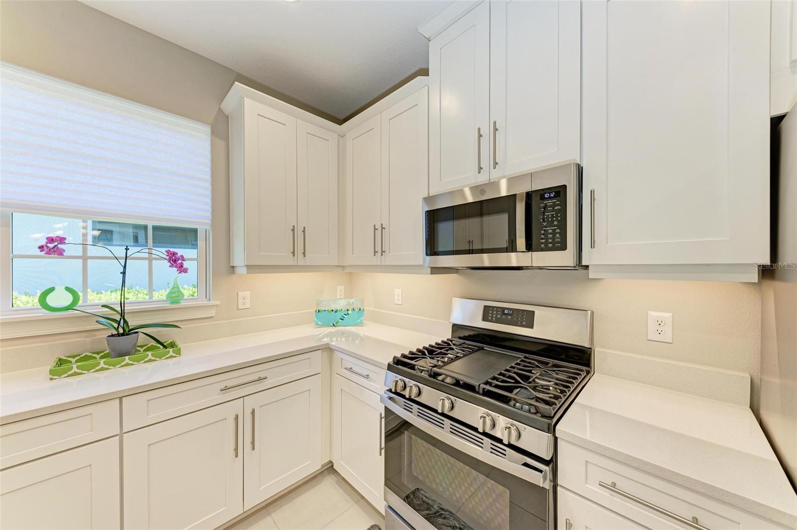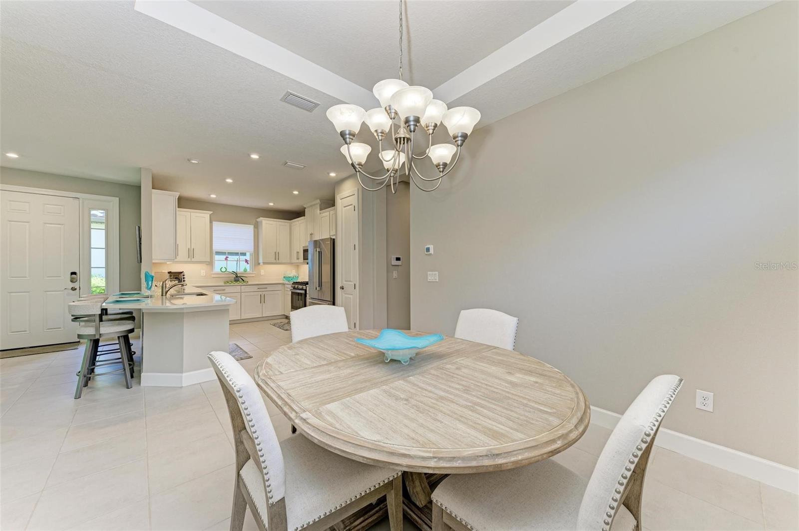 Gorgeous best priced detached Roma Villa model in Azario! Welcome to luxury living at Azario Golf & Country Club! Culinary Center is now open! This spacious Roma villa is 1,689 sq ft, in meticulous condition, ready to move into with deeded golf! This detached 2-bedroom villa plus den is in like-new move-in condition and lives like a single family home. Step outside and experience Florida's year-round sunshine on your expansive outdoor extended screened-in Lanai for entertaining and quiet moments. The Lanai is outfitted with gas and plumbing rough-ins for a future outdoor kitchen. The convenient Den/Study features a tray ceiling, double pocket sliding doors, and transom window. The designer Kitchen features 42” white shaker cabinets with soft-close drawers and doors, and white quartz countertops. Appliances are GE including a gas range, dishwasher, microwave, and disposal. Enjoy the convenience of a breakfast bar, newly upgraded large single basin stainless sink, under cabinet ambient lighting, lots of storage, and a full pantry. The adjacent dining room features a tray ceiling and chandelier. The Great Room is light and airy with white tile flooring, two windows with plantation shutters, a glass slider to Lanai, a designer ceiling fan with light, plus a tray ceiling. The Primary Bedroom is a retreat all its own showcasing bay windows, a designer ceiling fan with light, a tray ceiling, walk-in closet, and an ensuite bath with a large walk-in shower and dual vanities. Upgraded laundry room with LG washer and dryer, utility sink, a base cabinet as well as abundant wall cabinetry. The 2nd bedroom has a walk-in closet, designer ceiling fan with light, and a pocket door to the 2nd bathroom. The 2nd bathroom also has a door to the hallway with a Linen Closet. All neutral décor, 8’ interior doors, upgraded 10' ceilings, Gutters, and Plantation Shutters throughout. Large 4’ extended Garage with Epoxy flooring, automatic door opener, gas water heater, lots of room for storage or workspace, and includes the home's hurricane shutters. The landscaped yard will accommodate a pool, plus includes enhanced landscaping. Nestled within this exclusive gated, resort-style community, you'll discover a stunning 18 hole Championship golf course and an array of world-class amenities designed to make every day feel like you are on vacation. Amenities include a lifestyle director, 16 Pickleball courts, 6 lighted Har-Tru Tennis courts, 4 Bocce Ball courts. Relax by the lavish resort-style community pool with cabanas and lounge chairs, or enjoy the separate Satellite pool. Wellness Center. 24/7 State of the Art Fitness, Dog Parks, full Salon, and Spa. Special Bahama Bar is located by the pool and features outdoor casual dining. Culinary Center is now open! Gorgeous Clubhouse with a full indoor bar, gourmet restaurant, wine tastings, dinners, and special events and cooking classes. Spa and Massage. Toasted Café Coffee Bar for specialty coffees and pastries. Additionally Lakewood Ranch features 150 miles of walking/biking trails. Fabulous shopping and dining options and medical. World-famous Gulf Coast beaches, airports, and downtown Sarasota are just 30 minutes away. Experience unperilled luxury with a resort lifestyle. Welcome to your new home in paradise! Easy to see! Call today! Are you displaced by the storm? This beautiful villa offers immediate occupancy with cash, or new loan and motivated seller!!