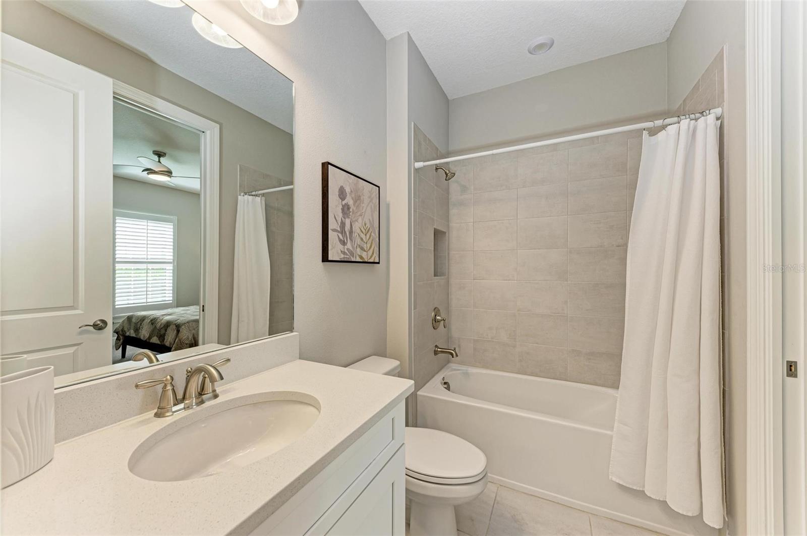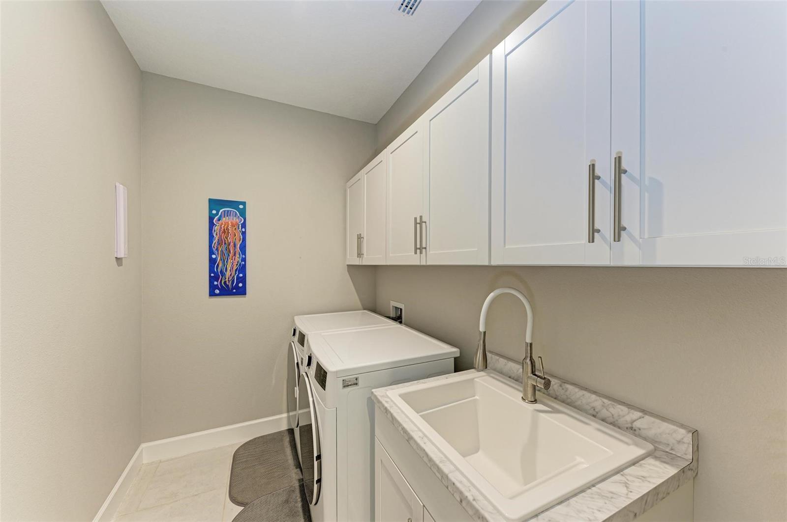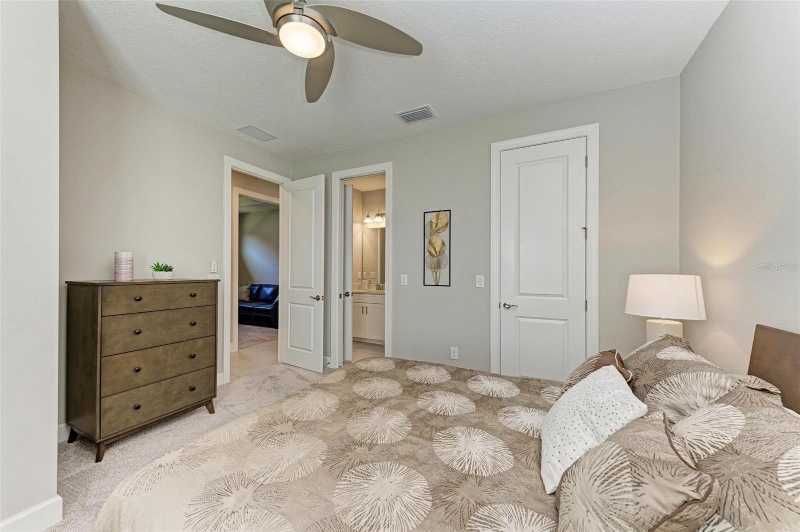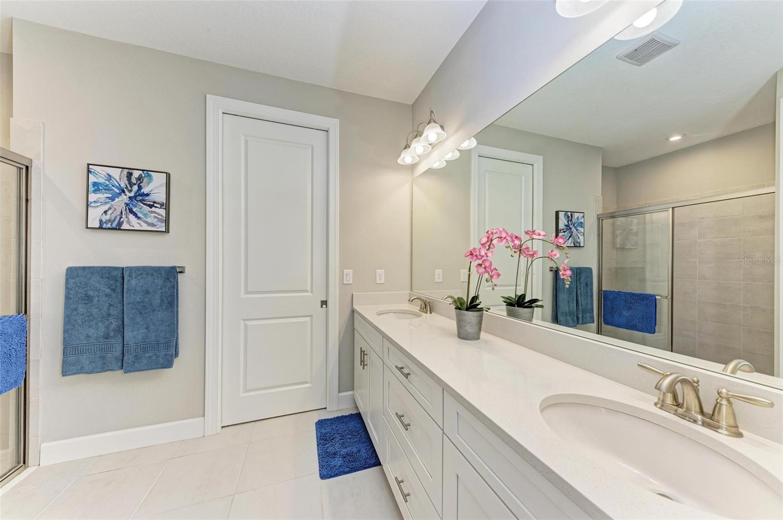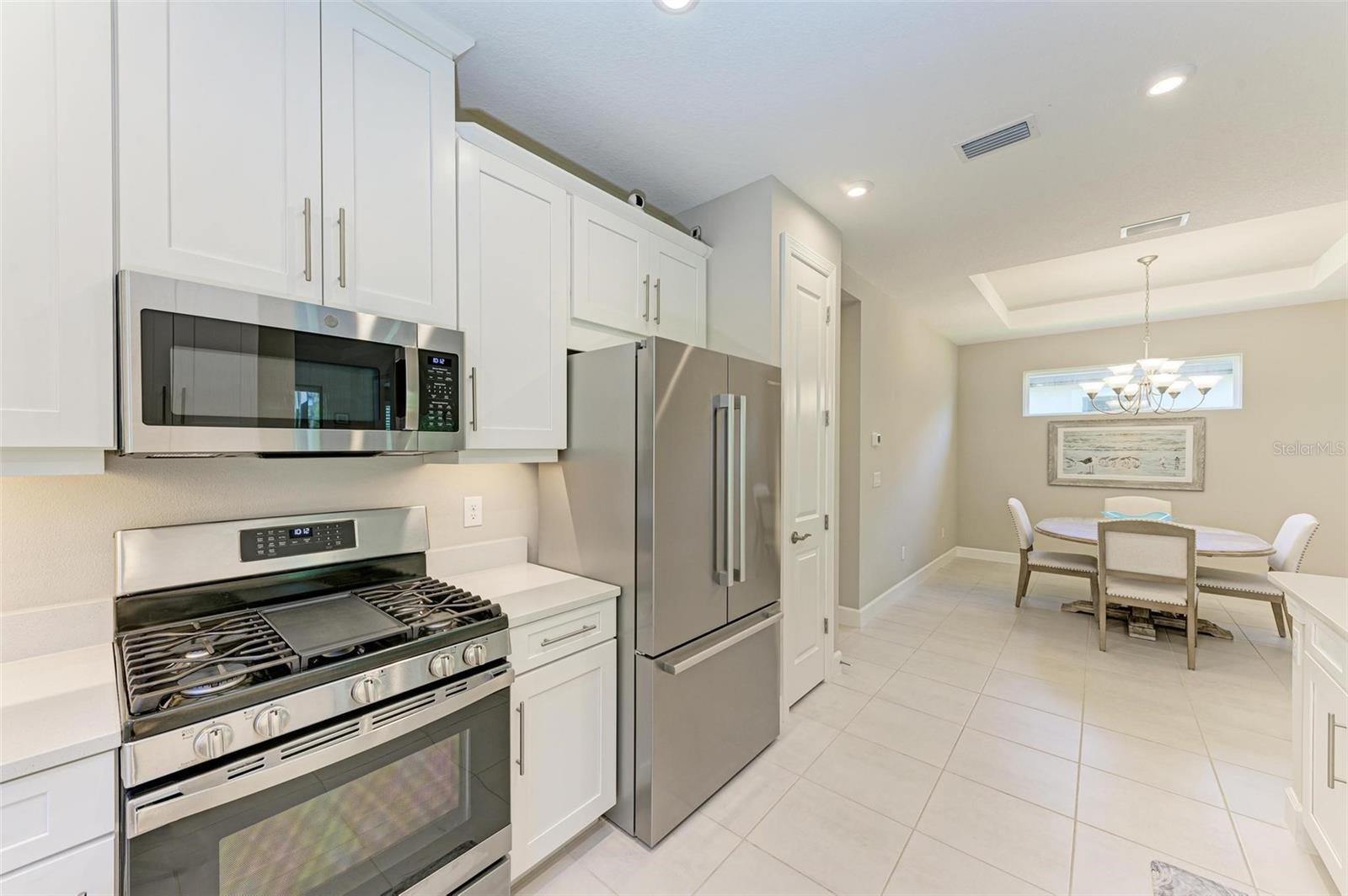 Gorgeous best priced detached Roma Villa model in Azario! Welcome to luxury living at Azario Golf & Country Club! Culinary Center is now open! This spacious Roma villa is 1,689 sq ft, in meticulous condition, ready to move into with deeded golf! This detached 2-bedroom villa plus den is in like-new move-in condition and lives like a single family home. Step outside and experience Florida's year-round sunshine on your expansive outdoor extended screened-in Lanai for entertaining and quiet moments. The Lanai is outfitted with gas and plumbing rough-ins for a future outdoor kitchen. The convenient Den/Study features a tray ceiling, double pocket sliding doors, and transom window. The designer Kitchen features 42” white shaker cabinets with soft-close drawers and doors, and white quartz countertops. Appliances are GE including a gas range, dishwasher, microwave, and disposal. Enjoy the convenience of a breakfast bar, newly upgraded large single basin stainless sink, under cabinet ambient lighting, lots of storage, and a full pantry. The adjacent dining room features a tray ceiling and chandelier. The Great Room is light and airy with white tile flooring, two windows with plantation shutters, a glass slider to Lanai, a designer ceiling fan with light, plus a tray ceiling. The Primary Bedroom is a retreat all its own showcasing bay windows, a designer ceiling fan with light, a tray ceiling, walk-in closet, and an ensuite bath with a large walk-in shower and dual vanities. Upgraded laundry room with LG washer and dryer, utility sink, a base cabinet as well as abundant wall cabinetry. The 2nd bedroom has a walk-in closet, designer ceiling fan with light, and a pocket door to the 2nd bathroom. The 2nd bathroom also has a door to the hallway with a Linen Closet. All neutral décor, 8’ interior doors, upgraded 10' ceilings, Gutters, and Plantation Shutters throughout. Large 4’ extended Garage with Epoxy flooring, automatic door opener, gas water heater, lots of room for storage or workspace, and includes the home's hurricane shutters. The landscaped yard will accommodate a pool, plus includes enhanced landscaping. Nestled within this exclusive gated, resort-style community, you'll discover a stunning 18 hole Championship golf course and an array of world-class amenities designed to make every day feel like you are on vacation. Amenities include a lifestyle director, 16 Pickleball courts, 6 lighted Har-Tru Tennis courts, 4 Bocce Ball courts. Relax by the lavish resort-style community pool with cabanas and lounge chairs, or enjoy the separate Satellite pool. Wellness Center. 24/7 State of the Art Fitness, Dog Parks, full Salon, and Spa. Special Bahama Bar is located by the pool and features outdoor casual dining. Culinary Center is now open! Gorgeous Clubhouse with a full indoor bar, gourmet restaurant, wine tastings, dinners, and special events and cooking classes. Spa and Massage. Toasted Café Coffee Bar for specialty coffees and pastries. Additionally Lakewood Ranch features 150 miles of walking/biking trails. Fabulous shopping and dining options and medical. World-famous Gulf Coast beaches, airports, and downtown Sarasota are just 30 minutes away. Experience unperilled luxury with a resort lifestyle. Welcome to your new home in paradise! Easy to see! Call today! Are you displaced by the storm? This beautiful villa offers immediate occupancy with cash, or new loan and motivated seller!!