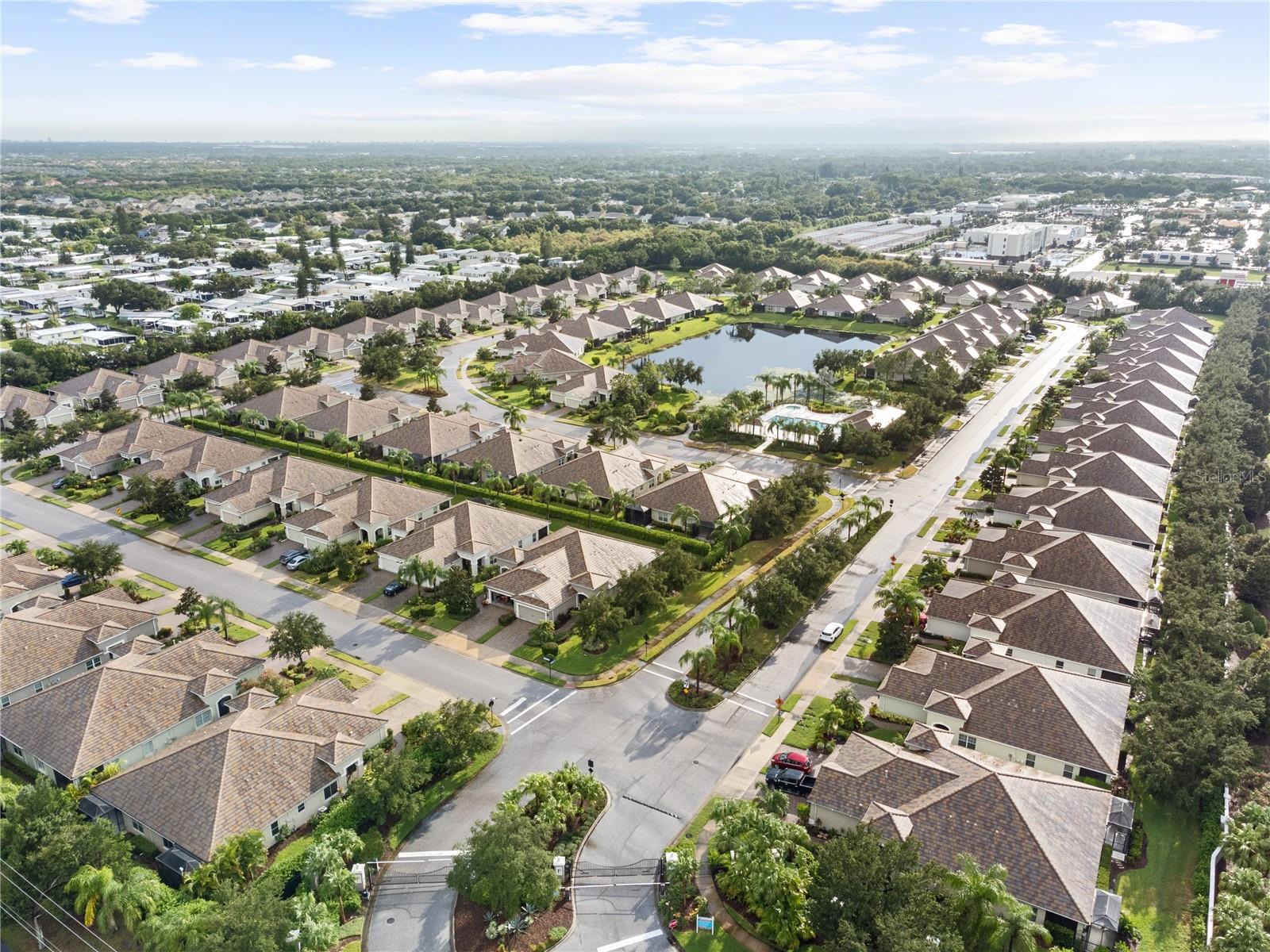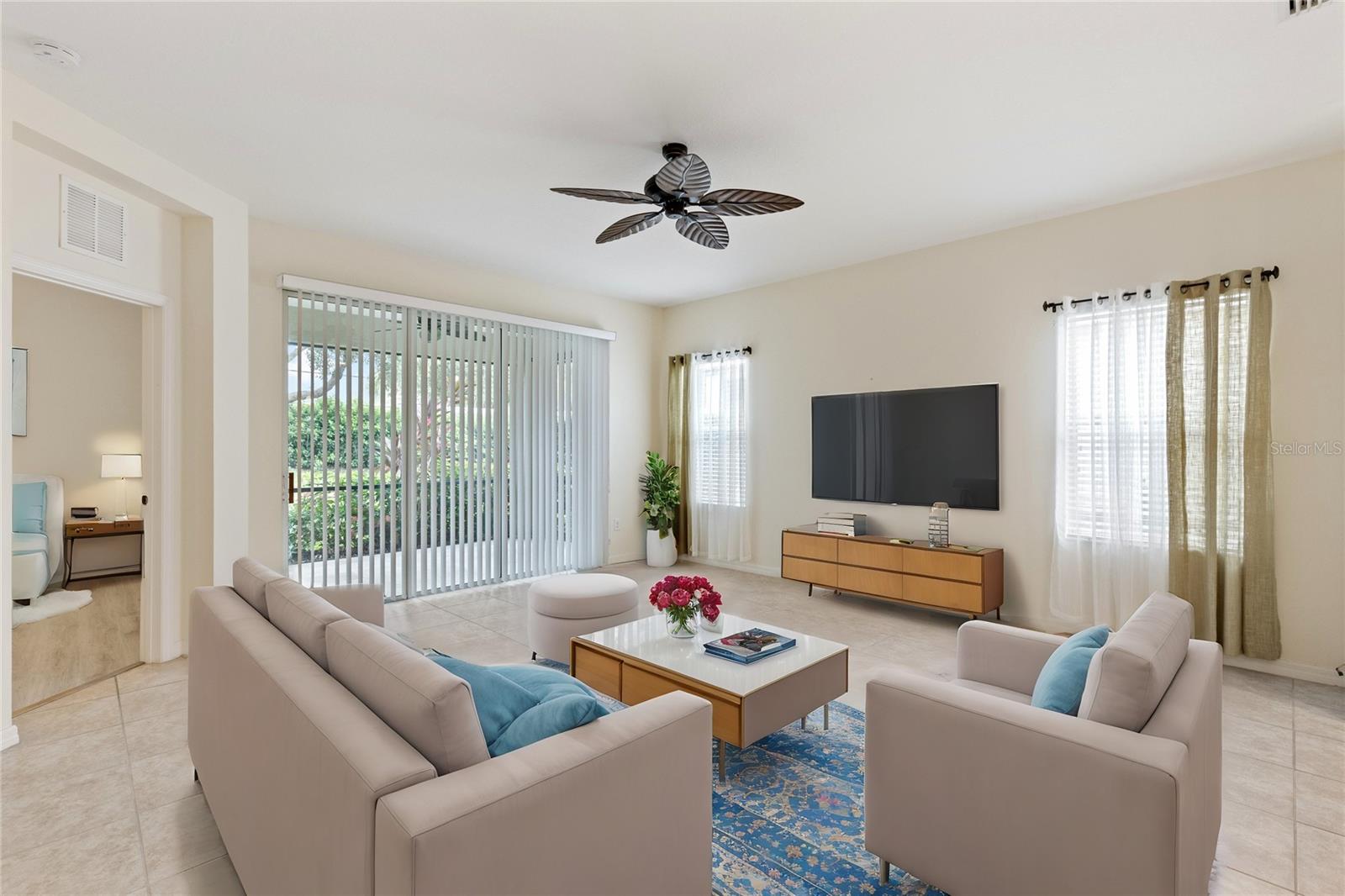 Discover the ease of Florida’s maintenance-free lifestyle in this charming, well-kept villa in Fairfield. Step inside to a bright and inviting space, where an open concept design is complemented by 16-inch tile flooring and lofty 10-foot ceilings. Designed for effortless indoor-outdoor flow, large sliding doors from the living area open to a generously sized screened-in covered lanai, perfect for relaxing or entertaining. The gourmet kitchen serves as the home's centerpiece, offering sleek stainless-steel appliances, an oversized island with a waterfall edge, striking quartz countertops, and elegant wood cabinets—ideal for culinary enthusiasts and social gatherings alike. Retreat to the spacious owner’s suite, which features two walk-in closets, a ensuite bathroom with walk-in shower, dual vanities, and water closet. Additional conveniences include an attached two-car garage and proximity to community amenities such as the heated pool, spa, cabanas, and a state-of-the-art fitness center. When you're ready to explore, you're just moments away from downtown Bradenton, the beautiful Gulf Coast beaches, and easy access to Tampa, St. Pete, the Manatee Riverwalk, and top-tier golf courses.