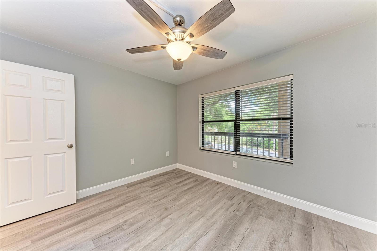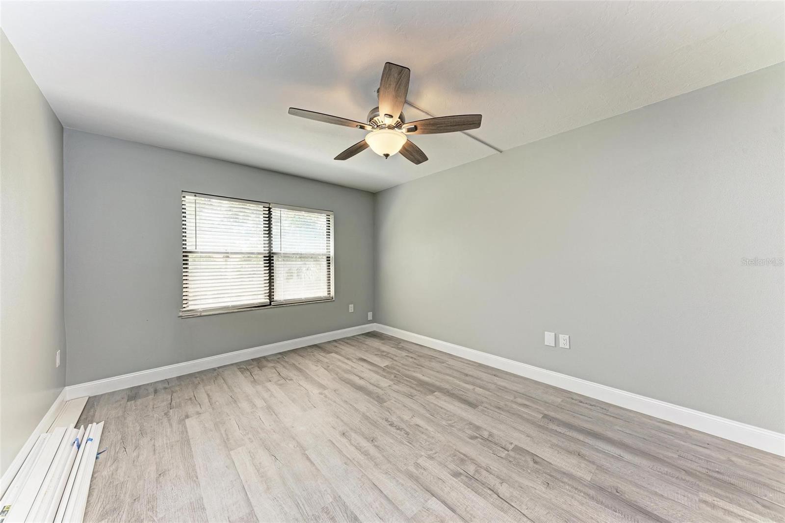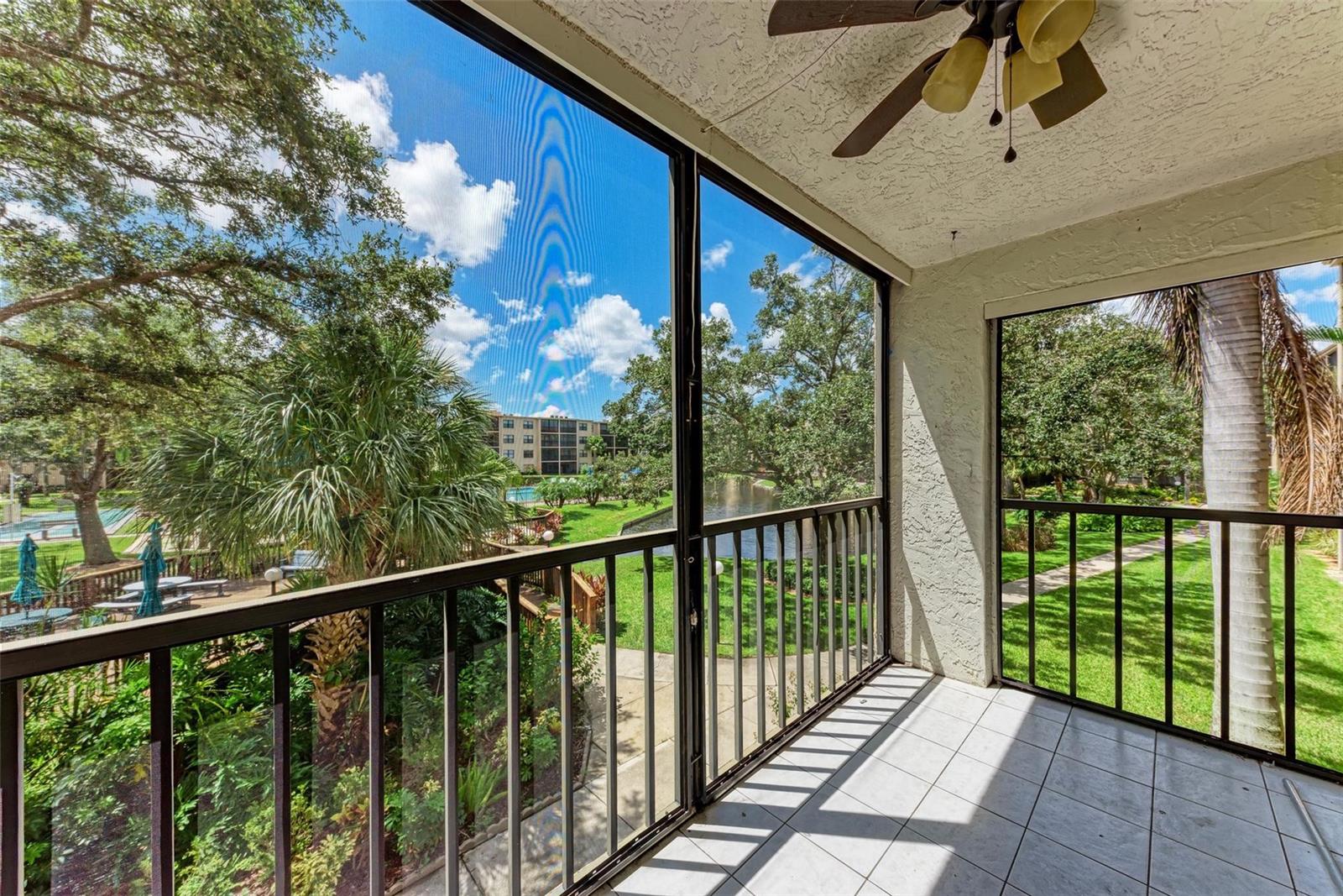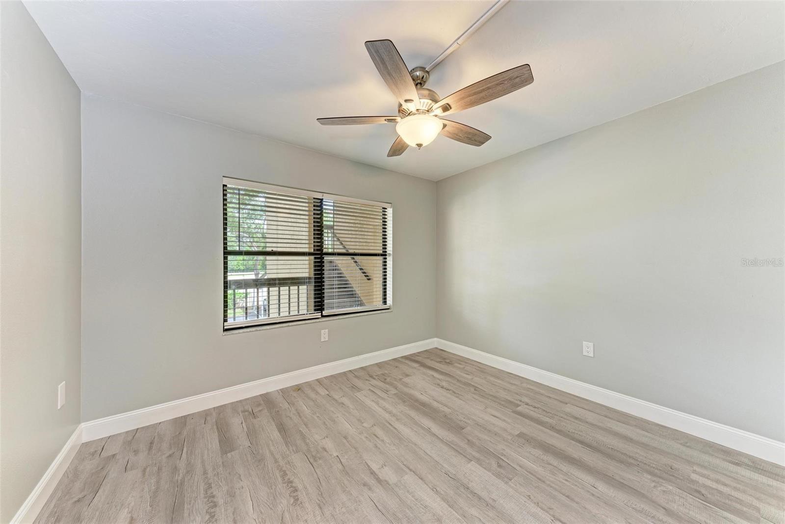 Seller is motivated! Second floor end unit with elevator access featuring 2-bedrooms, 2-baths in the gated community of Woodpark. Tastefully modern and recently remodeled throughout with laminate flooring, paint, kitchen cabinets, bathroom vanities, and beautiful quartz countertops. A nice split floor plan for privacy while entertaining guests. The master bedroom features a large walk-in closet and ensuite bath with a walk-in shower Dining space in the kitchen, stainless appliances, numerous cabinets, tile backsplash and quartz countertops. The lanai offers a relaxing view of the pool and lush tropical landscaping. There is a stacked washer and dryer inside the Condo, ensuring convenience and efficiency in your daily routine. All room dimensions must be verified by the buyers. Woodpark is a gated 55 plus community HOA requires a 700 minimum credit score and Buyer Approval.
