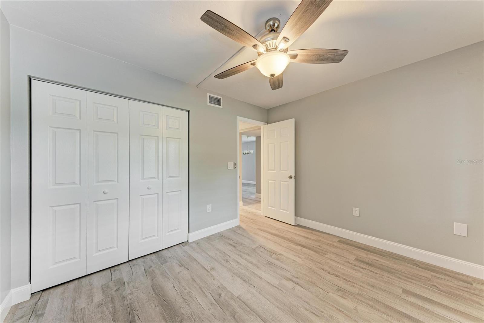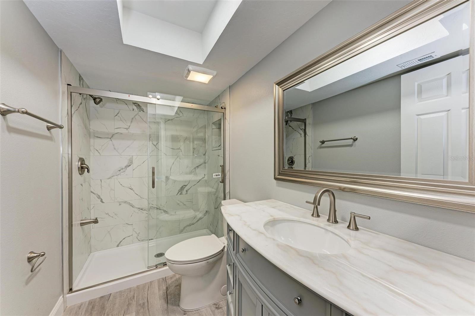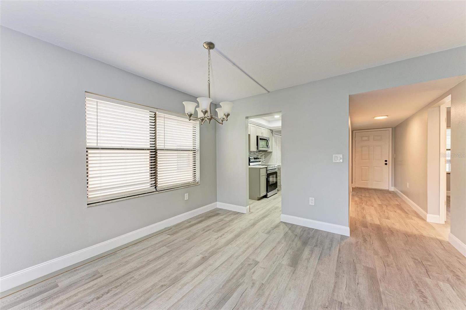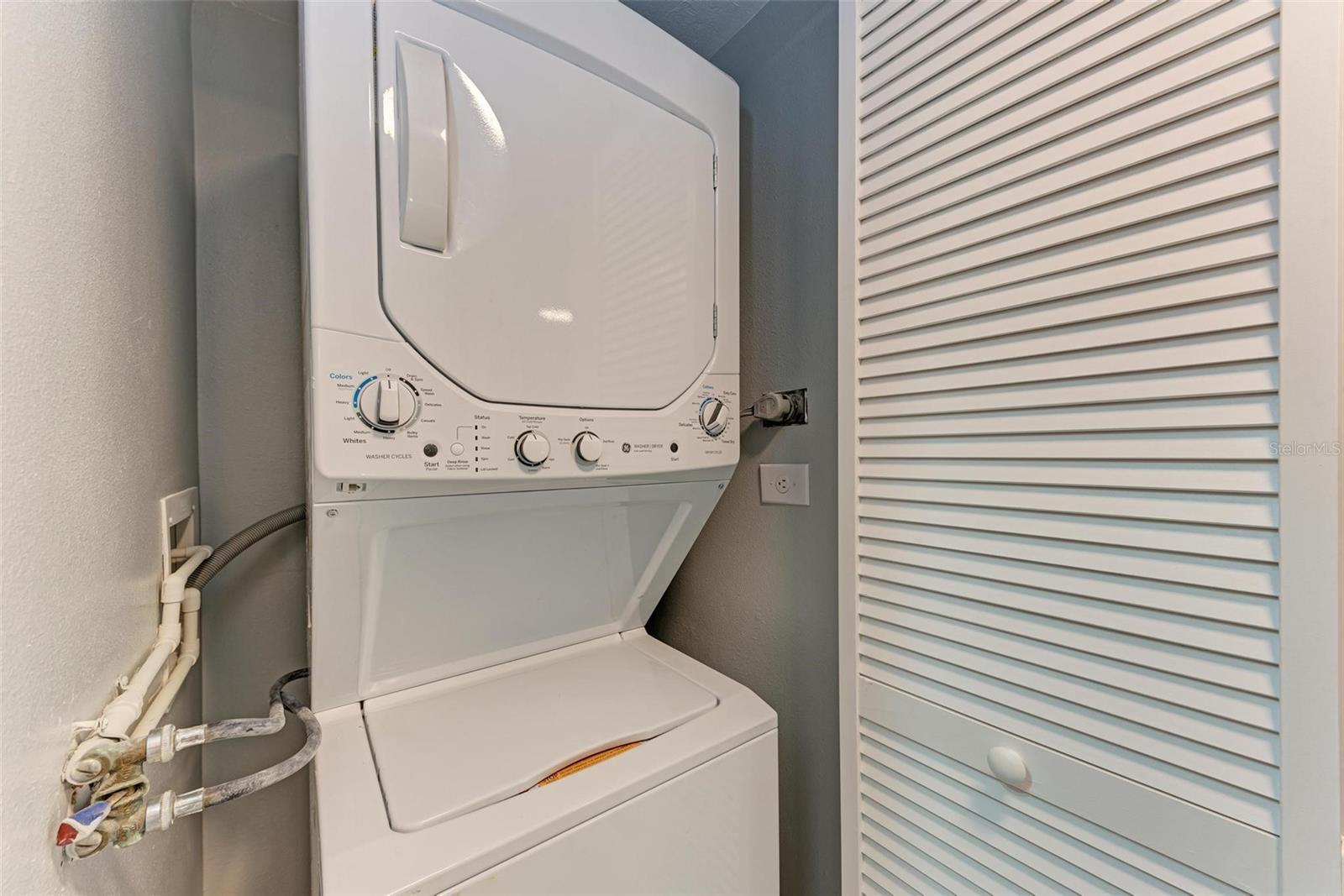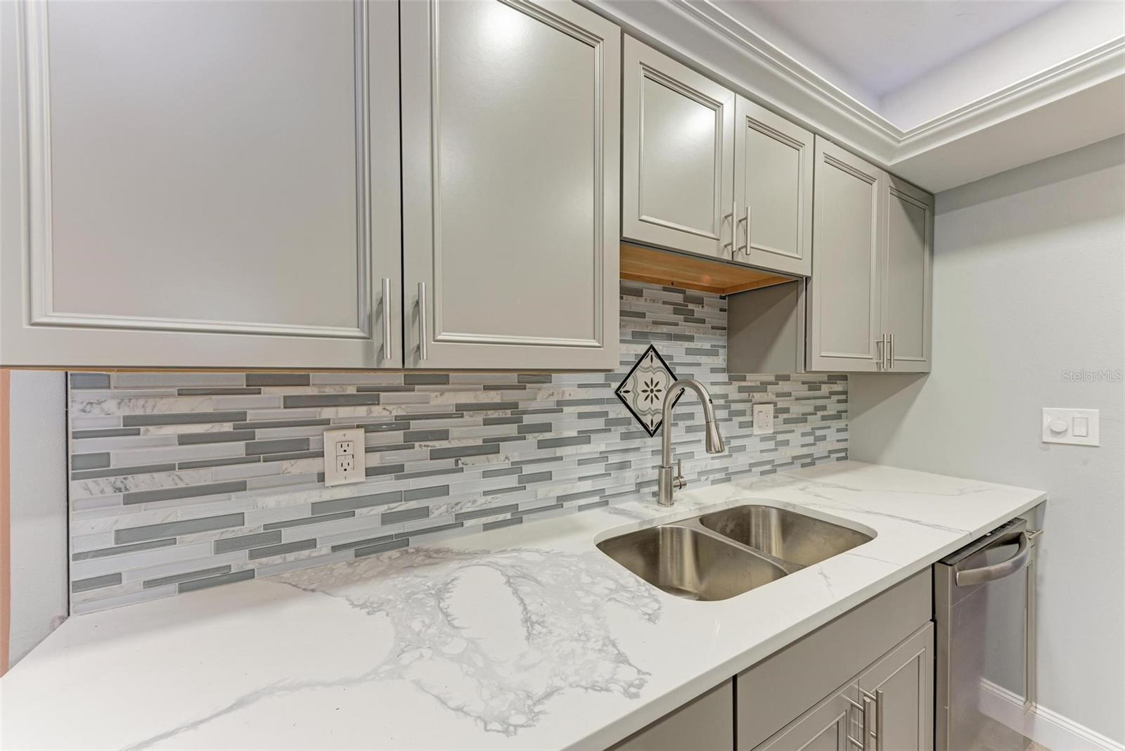 Seller is motivated! Second floor end unit with elevator access featuring 2-bedrooms, 2-baths in the gated community of Woodpark. Tastefully modern and recently remodeled throughout with laminate flooring, paint, kitchen cabinets, bathroom vanities, and beautiful quartz countertops. A nice split floor plan for privacy while entertaining guests. The master bedroom features a large walk-in closet and ensuite bath with a walk-in shower Dining space in the kitchen, stainless appliances, numerous cabinets, tile backsplash and quartz countertops. The lanai offers a relaxing view of the pool and lush tropical landscaping. There is a stacked washer and dryer inside the Condo, ensuring convenience and efficiency in your daily routine. All room dimensions must be verified by the buyers. Woodpark is a gated 55 plus community HOA requires a 700 minimum credit score and Buyer Approval.