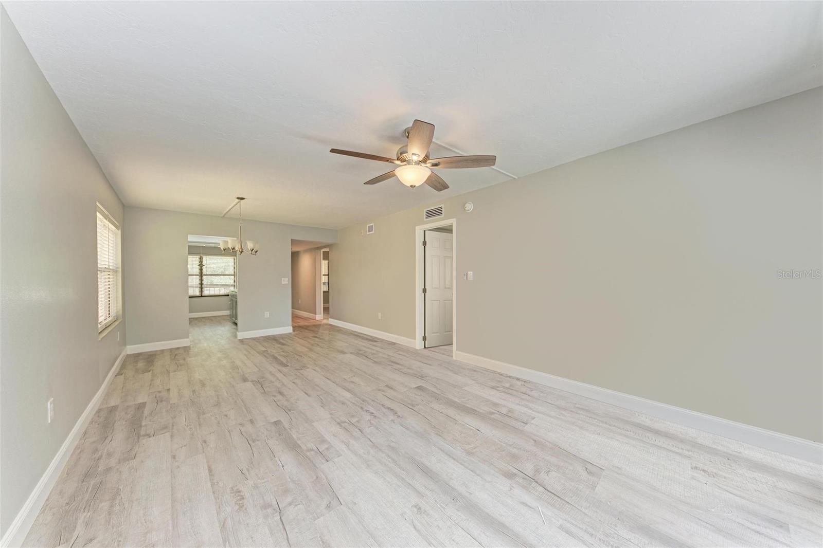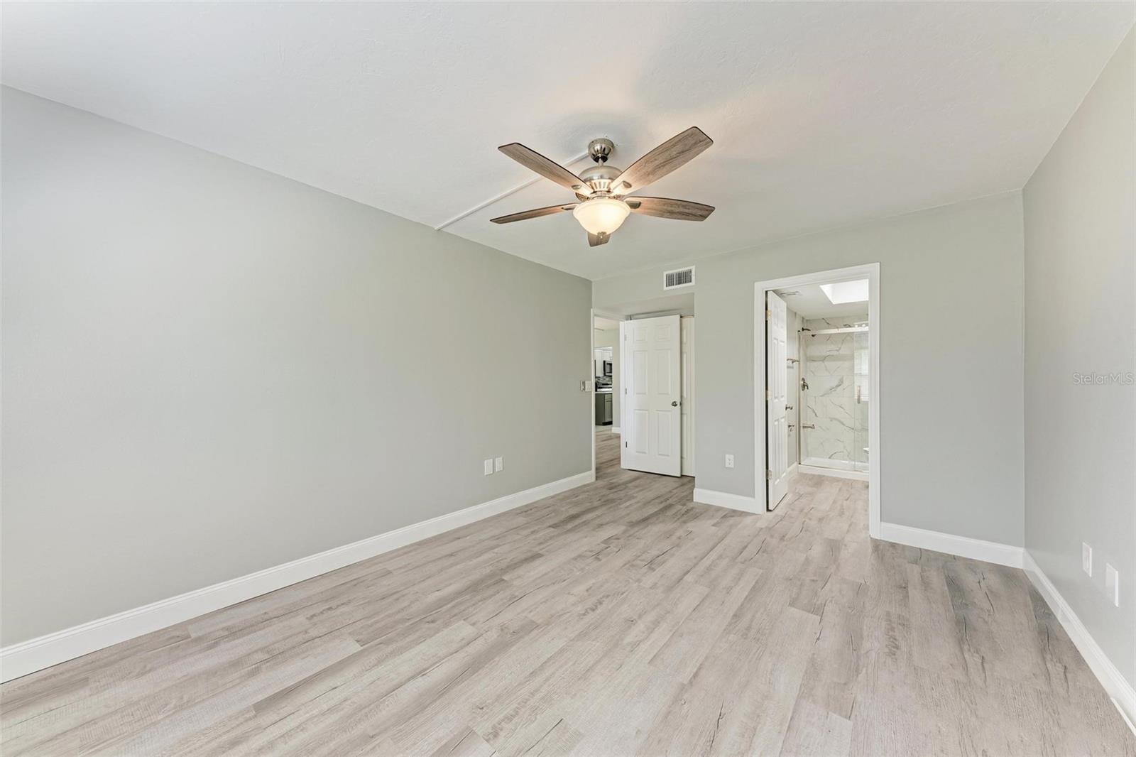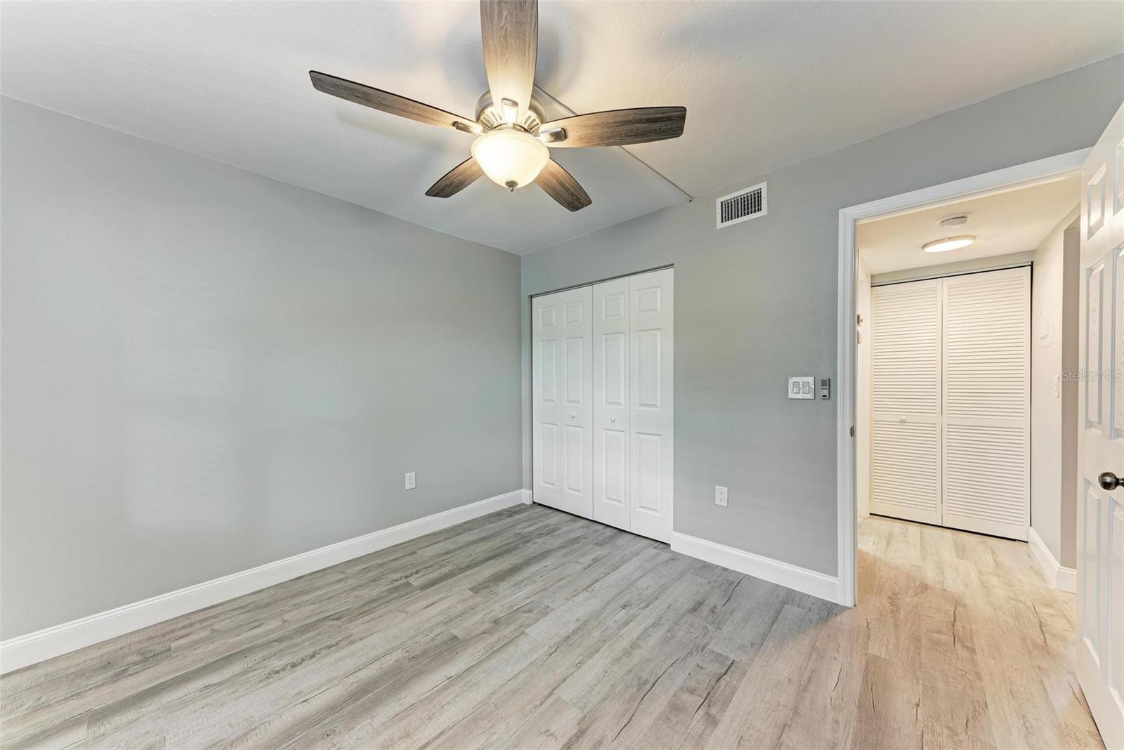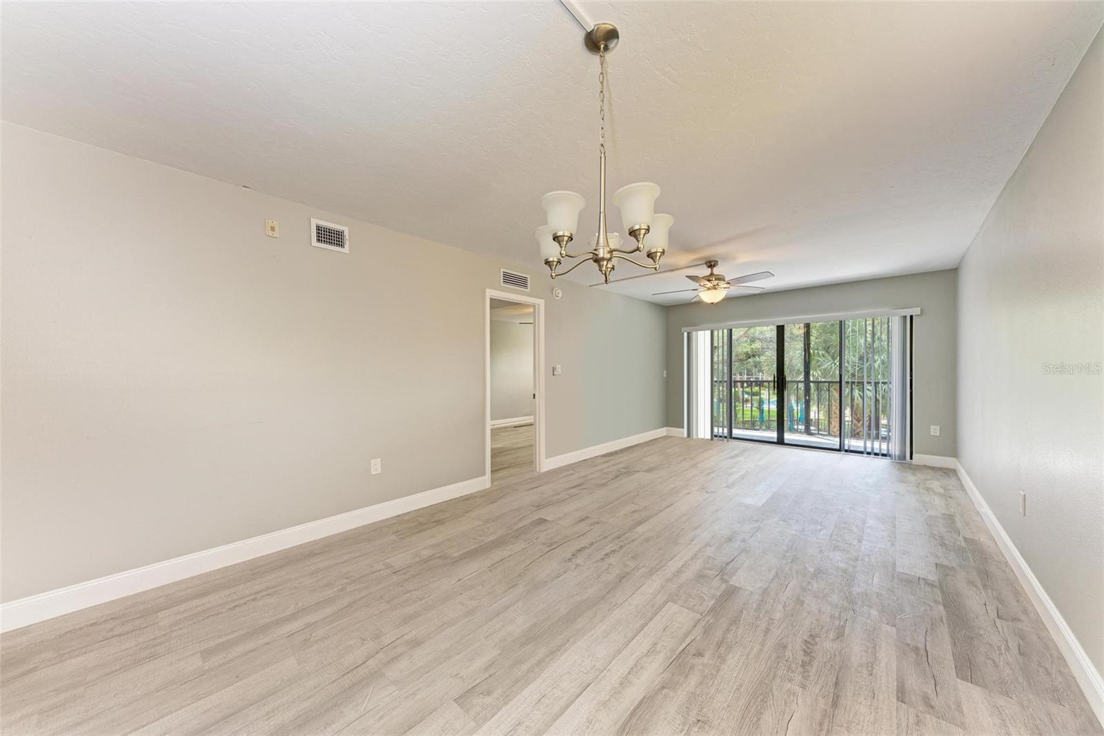 Seller is motivated! Second floor end unit with elevator access featuring 2-bedrooms, 2-baths in the gated community of Woodpark. Tastefully modern and recently remodeled throughout with laminate flooring, paint, kitchen cabinets, bathroom vanities, and beautiful quartz countertops. A nice split floor plan for privacy while entertaining guests. The master bedroom features a large walk-in closet and ensuite bath with a walk-in shower Dining space in the kitchen, stainless appliances, numerous cabinets, tile backsplash and quartz countertops. The lanai offers a relaxing view of the pool and lush tropical landscaping. There is a stacked washer and dryer inside the Condo, ensuring convenience and efficiency in your daily routine. All room dimensions must be verified by the buyers. Woodpark is a gated 55 plus community HOA requires a 700 minimum credit score and Buyer Approval.