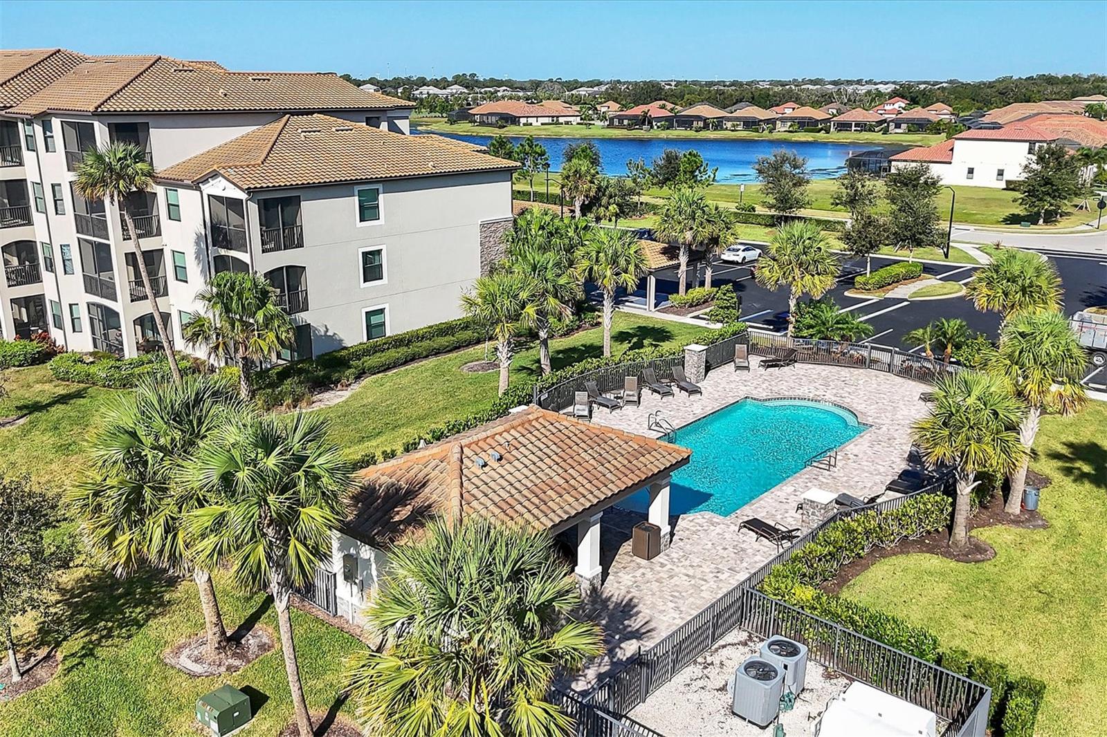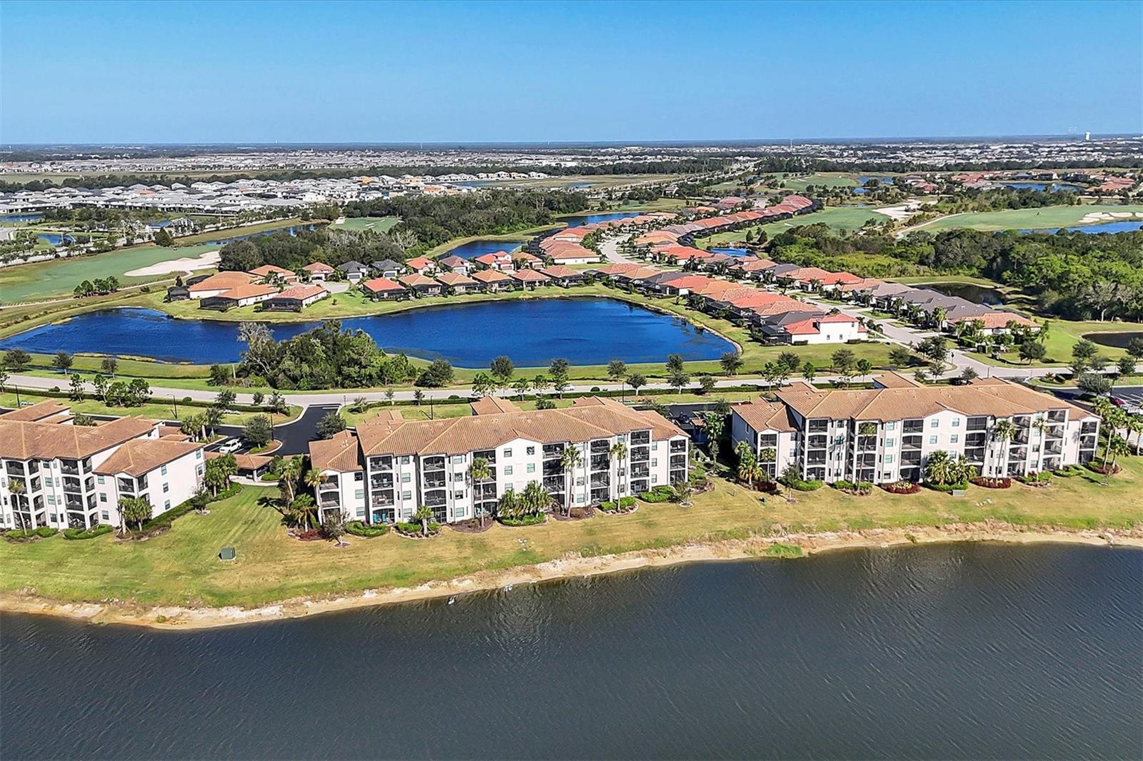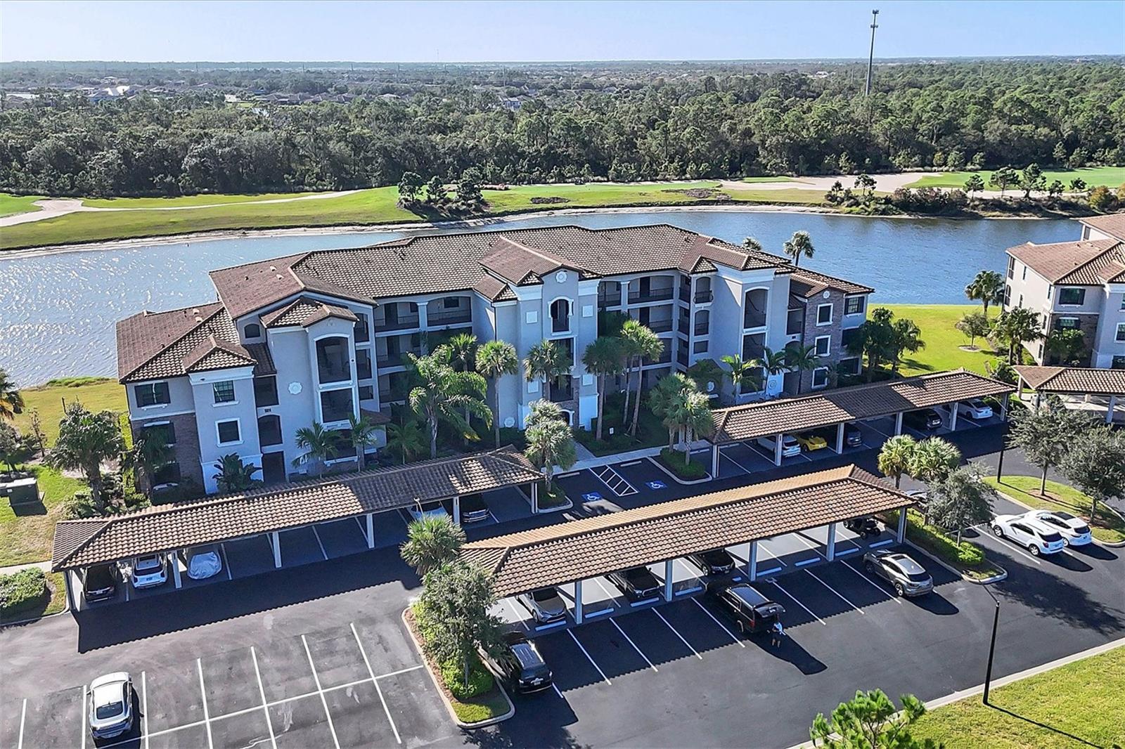 One or more photo(s) has been virtually staged. Discover an amazing 2-bedroom, 2-bathroom residence nestled within a prestigious gated golf community, where sophistication meets resort-style living. The open-concept layout effortlessly unites the living room, dining area, and modern kitchen, which boasts a cozy breakfast nook, pantry, sleek granite countertops, stylish cabinetry, and premium stainless-steel appliances. Neutral ceramic tile flows throughout the entire unit, adding a touch of elegance. Step onto the private screened balcony to savor your morning coffee or unwind in the evening, all while enjoying serene golf and water views. Retreat to the spacious primary suite, offering a serene escape with two generous closets and an en-suite bathroom featuring a walk-in shower, water closet, spacious vanity and linen closet. The second bedroom provides ample storage and easy access to a full bathroom complete with an extended vanity, utility closet, and a tub/shower combination. This third-floor unit, which experienced no hurricane damage or flooding in the recent storms, offers peace of mind and added security. The building is equipped with hurricane-resistant glass, and offers both elevator and stair access, along with an assigned covered parking space, abundant guest parking, and a satellite pool just steps away. A convenient storage room outside the front door easily accommodates bicycles and pool or beach gear. Ownership at Lakewood National includes unlimited golf on two award-winning Arnold Palmer-designed courses, with green fees included in the HOA and a cart fee for golfers. Enjoy access to eight tennis courts, pickleball, a state-of-the-art gym with fitness classes, a full-service spa, a zero-entry resort pool with spa and waterfalls, and a tiki bar with a fully operational kitchen. The clubhouse offers fine dining, a relaxing bar, men’s and women’s locker rooms, and private meeting spaces. With a one-month minimum lease restriction and the ability to transfer membership amenities to tenants, this condo offers a unique and highly desirable investment opportunity. Its prime location within a sought-after community, combined with access to world-class amenities, makes it ideal for attracting high-end tenants or serving as a lucrative vacation rental. Experience unparalleled luxury living, surrounded by breathtaking views and resort-style amenities that appeal to discerning renters. After a day on the golf course, tennis courts, or by the pool, you’ll love coming home to this stunning condo—or watching it generate returns as part of your investment portfolio. Schedule a tour today to see why this residence is the perfect place to live, relax, and invest. **Seller has only occupied and in pristine condition. **