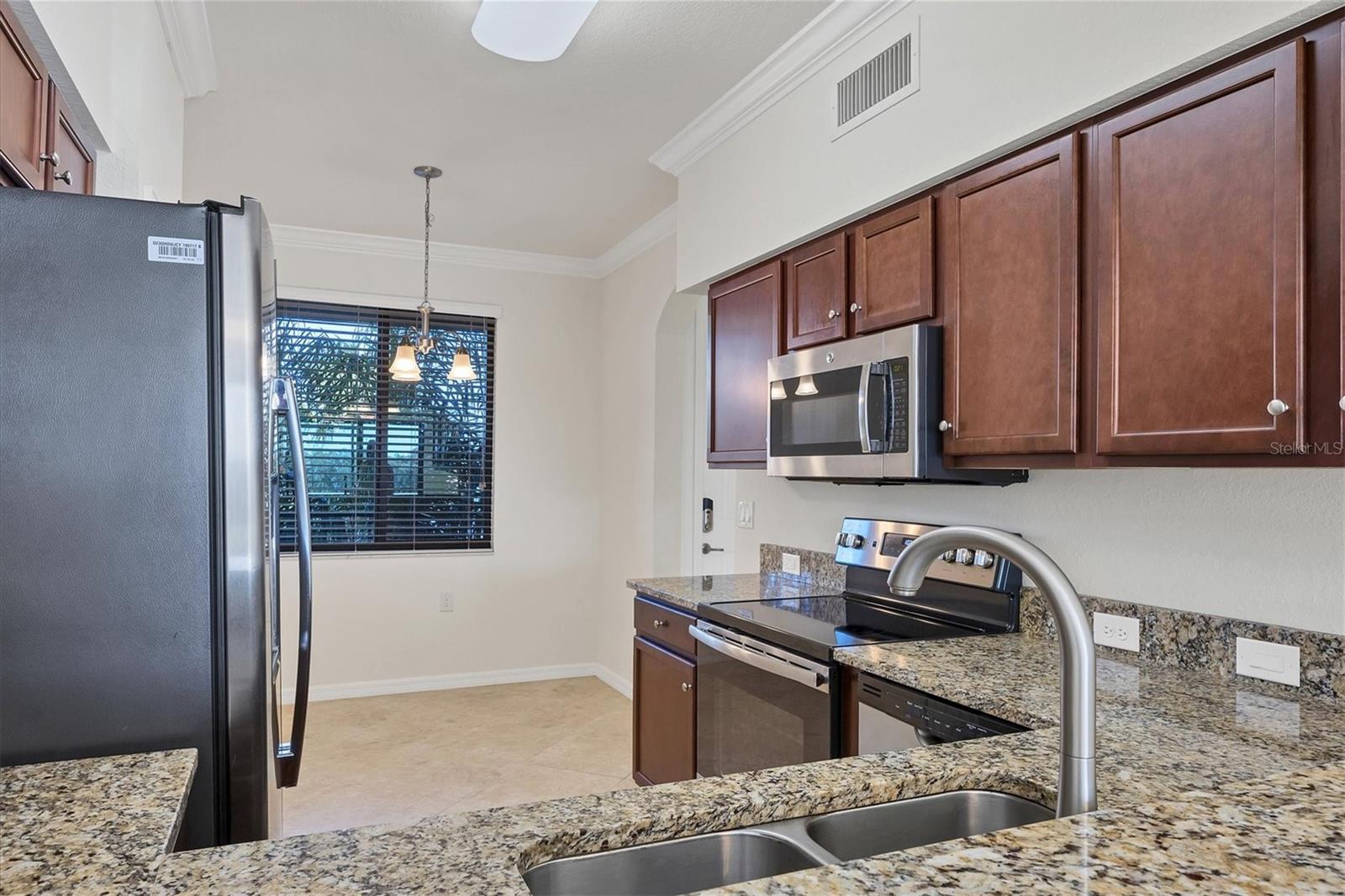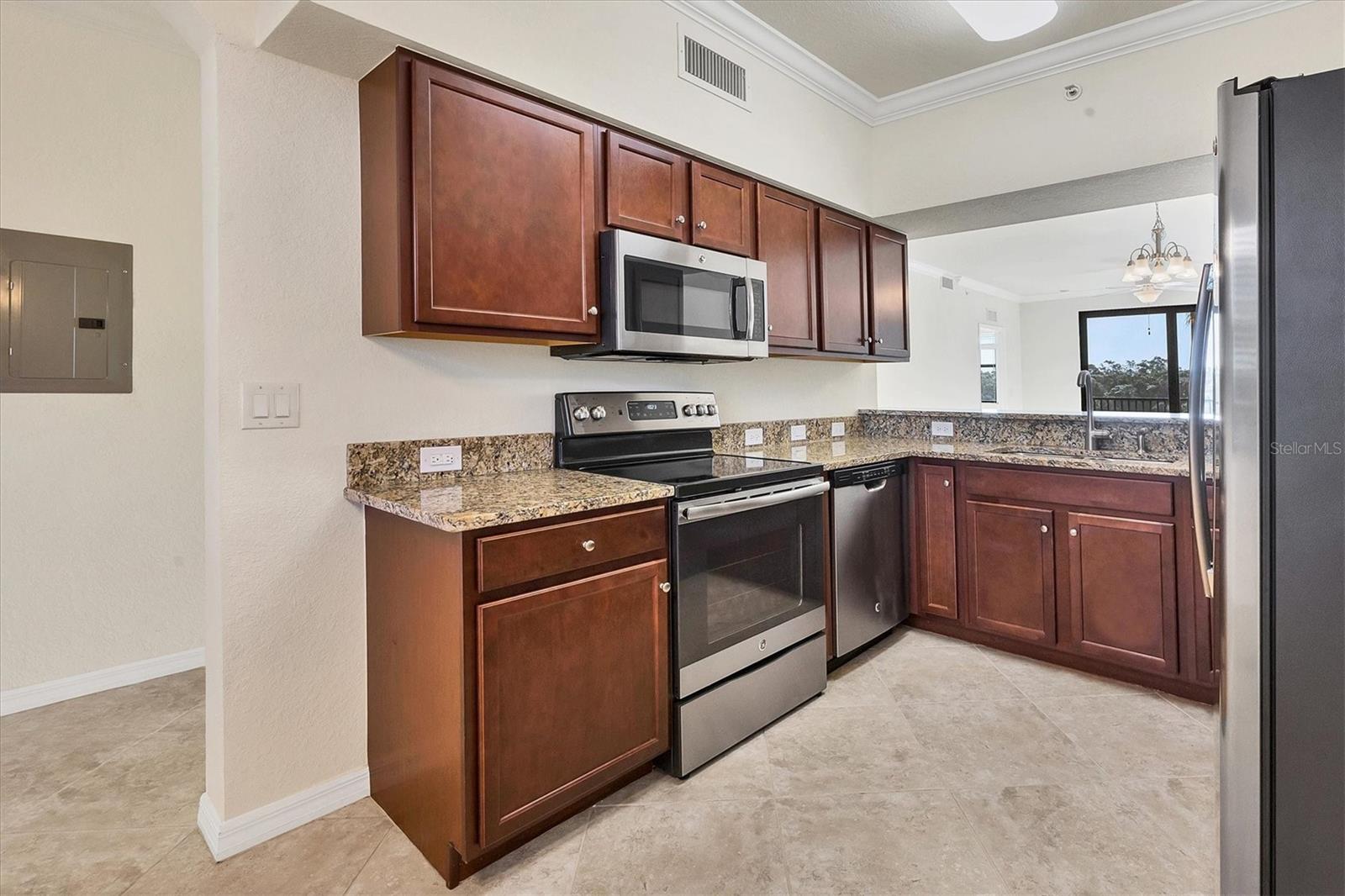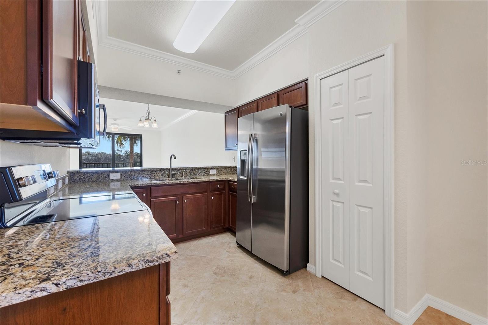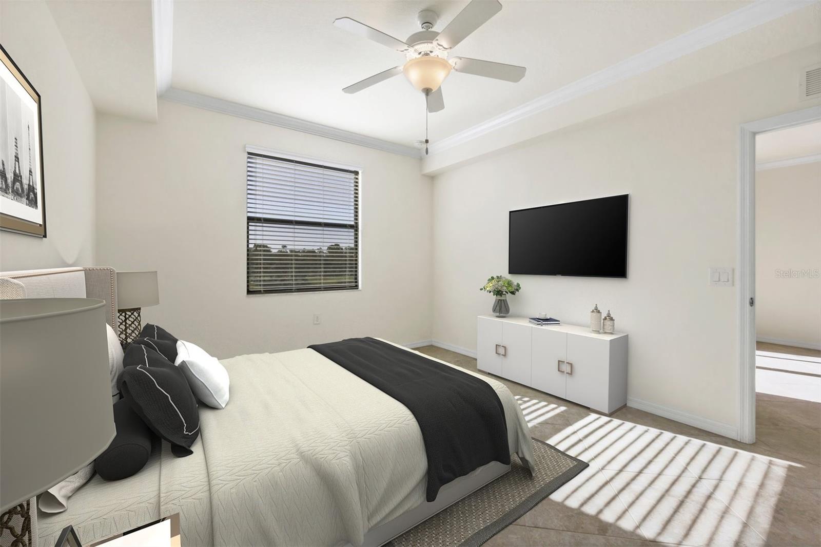 One or more photo(s) has been virtually staged. Discover an amazing 2-bedroom, 2-bathroom residence nestled within a prestigious gated golf community, where sophistication meets resort-style living. The open-concept layout effortlessly unites the living room, dining area, and modern kitchen, which boasts a cozy breakfast nook, pantry, sleek granite countertops, stylish cabinetry, and premium stainless-steel appliances. Neutral ceramic tile flows throughout the entire unit, adding a touch of elegance. Step onto the private screened balcony to savor your morning coffee or unwind in the evening, all while enjoying serene golf and water views. Retreat to the spacious primary suite, offering a serene escape with two generous closets and an en-suite bathroom featuring a walk-in shower, water closet, spacious vanity and linen closet. The second bedroom provides ample storage and easy access to a full bathroom complete with an extended vanity, utility closet, and a tub/shower combination. This third-floor unit, which experienced no hurricane damage or flooding in the recent storms, offers peace of mind and added security. The building is equipped with hurricane-resistant glass, and offers both elevator and stair access, along with an assigned covered parking space, abundant guest parking, and a satellite pool just steps away. A convenient storage room outside the front door easily accommodates bicycles and pool or beach gear. Ownership at Lakewood National includes unlimited golf on two award-winning Arnold Palmer-designed courses, with green fees included in the HOA and a cart fee for golfers. Enjoy access to eight tennis courts, pickleball, a state-of-the-art gym with fitness classes, a full-service spa, a zero-entry resort pool with spa and waterfalls, and a tiki bar with a fully operational kitchen. The clubhouse offers fine dining, a relaxing bar, men’s and women’s locker rooms, and private meeting spaces. With a one-month minimum lease restriction and the ability to transfer membership amenities to tenants, this condo offers a unique and highly desirable investment opportunity. Its prime location within a sought-after community, combined with access to world-class amenities, makes it ideal for attracting high-end tenants or serving as a lucrative vacation rental. Experience unparalleled luxury living, surrounded by breathtaking views and resort-style amenities that appeal to discerning renters. After a day on the golf course, tennis courts, or by the pool, you’ll love coming home to this stunning condo—or watching it generate returns as part of your investment portfolio. Schedule a tour today to see why this residence is the perfect place to live, relax, and invest. **Seller has only occupied and in pristine condition. **