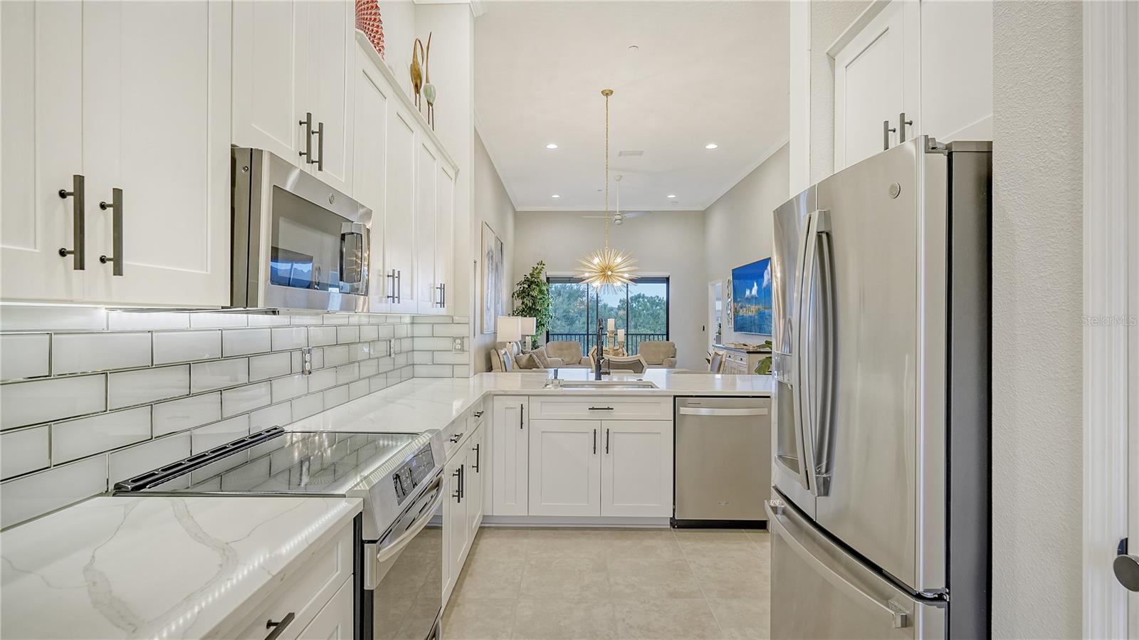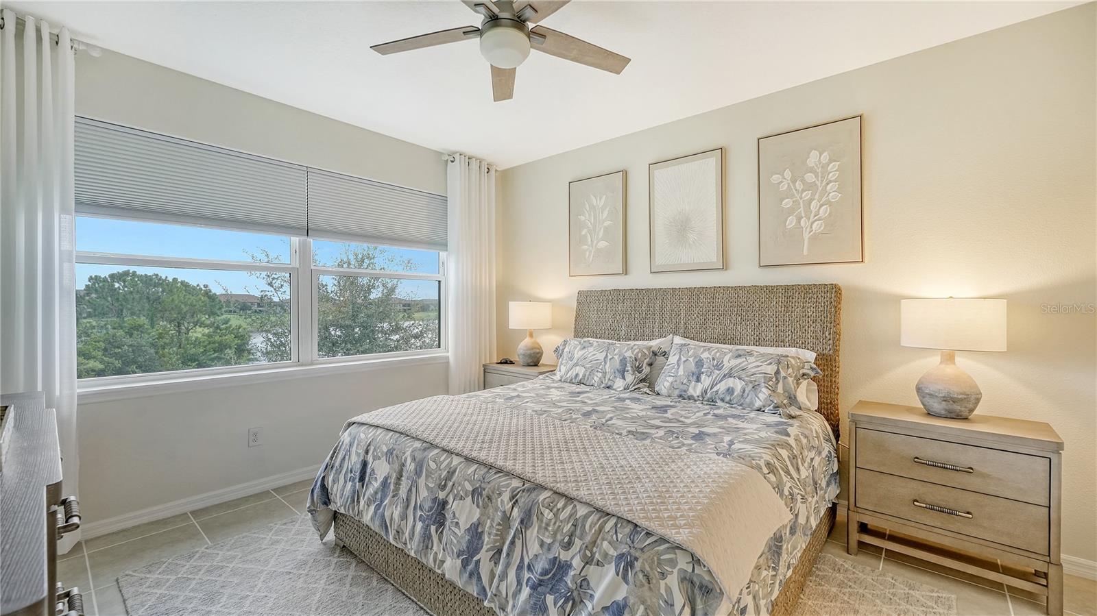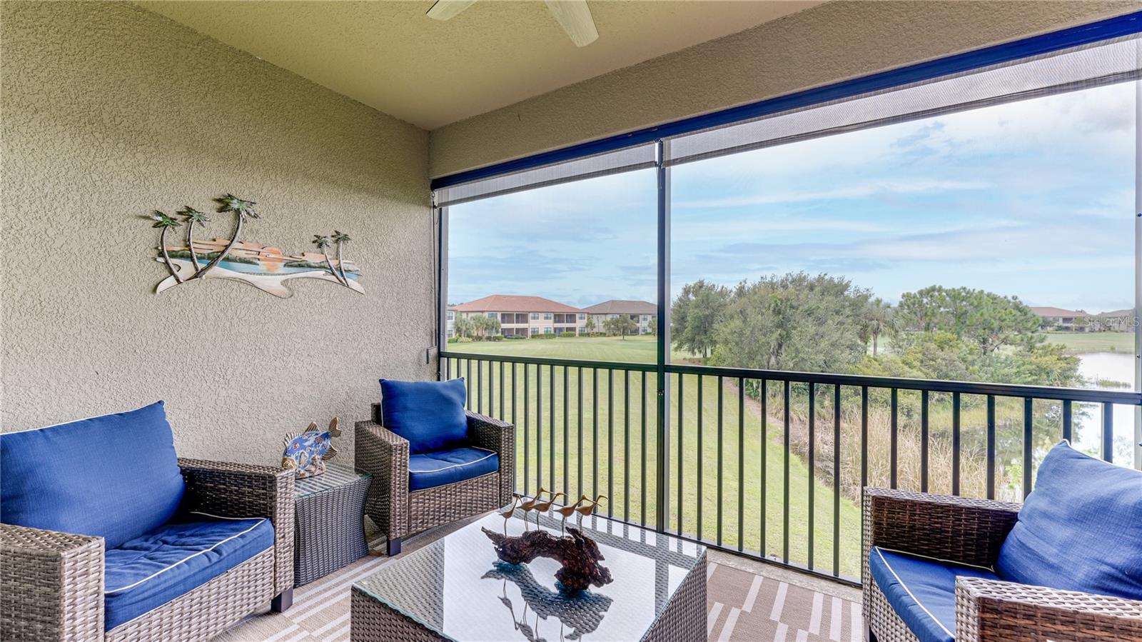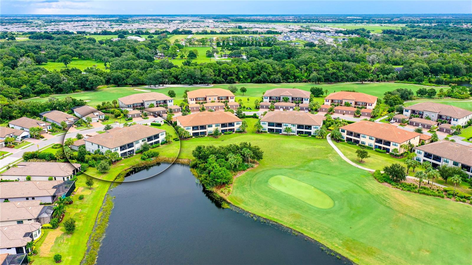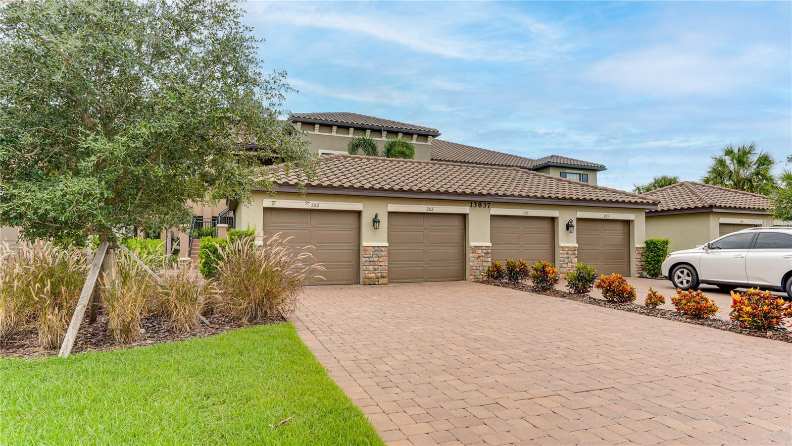 FULLY RENOVATED & FULL GOLF MEMBERSHIP to Esplanade Golf & Country Club in Lakewood Ranch is INCLUDED. Welcome to your dream home in the resort-style community of Esplanade at Lakewood Ranch, a 24-hour guard-gated community where picturesque sidewalks wind through scenic landscapes. This stunning, golf-deeded condo comes with a golf membership and is one of only eight units per building, ensuring peace and tranquility with serene water views. Built in 2020 by Taylor Morrison Homes, this home has been completely renovated throughout featuring upgraded finishes and showcases a paver stone extended length driveway with a beautiful Spanish barrel tile roof. Offering over 1,500 square feet of thoughtfully designed living space, this home includes two bedrooms and two bathrooms with a flex room that offers privacy as an office or additional guest accommodation. Step inside to discover an interior that exudes elegance, with a shiplap entry, 13-foot ceilings, ceramic tile flooring throughout, and an open-concept design. The kitchen is a chef's delight, featuring quartz countertops, under-cabinet lighting, white cabinetry, exquisite glass tile backsplash, and stainless-steel appliances. A second pantry with pull-out shelves offers extra storage, complemented by a cozy eat-in kitchen nook. The living area is elevated by crown molding and fresh paint, while frosted sliding doors provide privacy for the office or flex room. The owner’s suite is a peaceful retreat, complete with stunning views, dual walk-in closets, and a spa-like ensuite bathroom with dual sinks, a seamless glass shower, and a private water closet. A split bedroom floor plan offers privacy, with the guest bedroom conveniently located near the guest bathroom. Relax on the screened-in balcony, taking in lake views, stunning sunsets, and watching golfers on the course. Esplanade is a maintenance-free, resort-style golf cart friendly community brimming with amenities. Grab your clubs and enjoy the championship golf course included with the purchase of the home, a state-of-the-art clubhouse with a wellness and fitness center, Koquina Sand Spa, as well as multiple dining options including the Bahama Bar and Culinary Center and the Barrel House Bar and Bistro. With access to 4 community pools including a lagoon-style heated pool and a resistance pool, tennis courts, pickleball courts, bocce, a dog park, the list goes on, you’ll never want to leave. Conveniently located near A-rated schools, University Town Center Mall, Waterside Place, and Florida's world-famous beaches, this home offers the ultimate in luxury and convenience. Don’t miss your chance to call this extraordinary property your own!