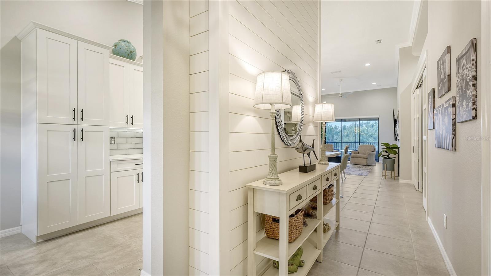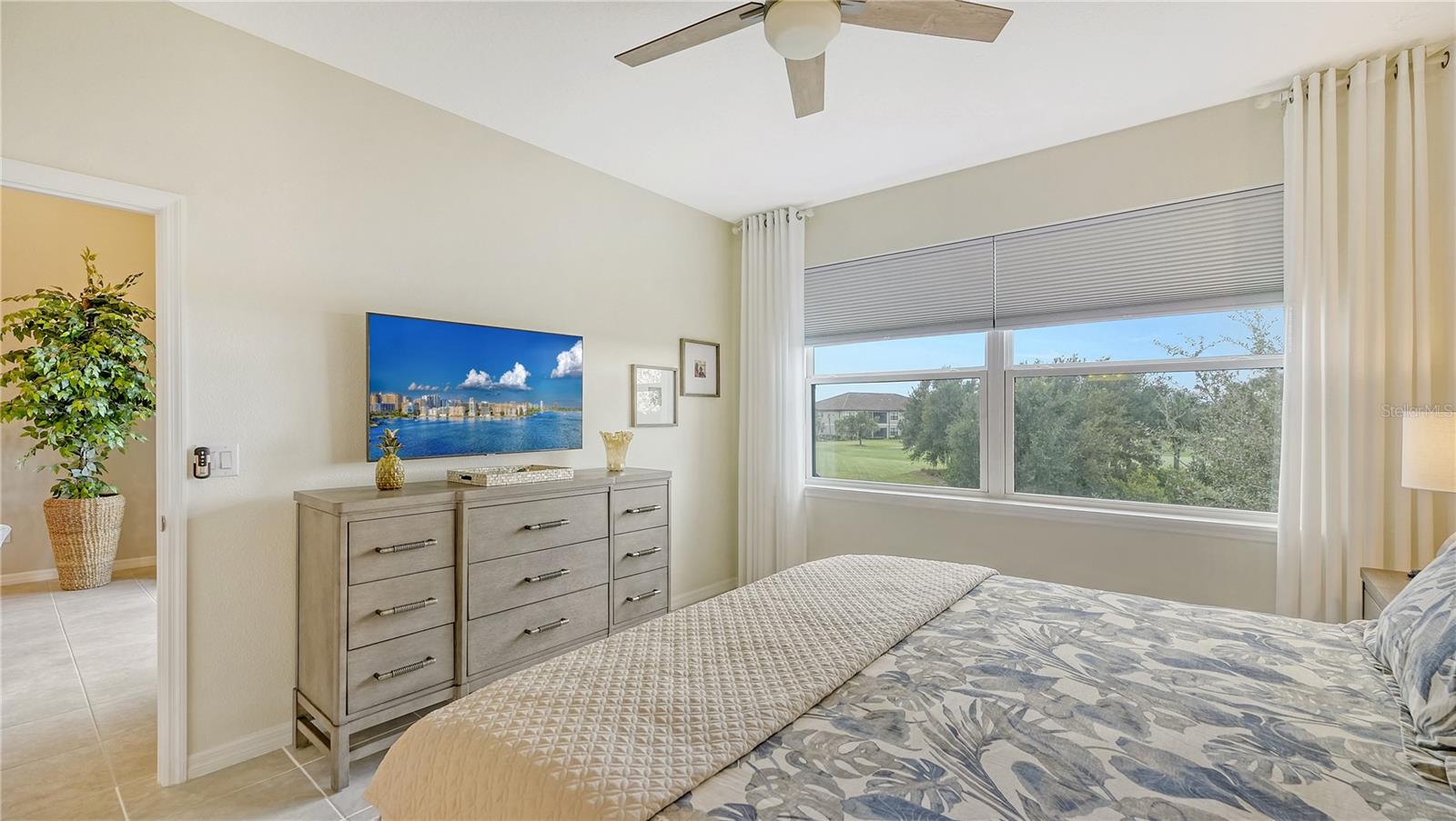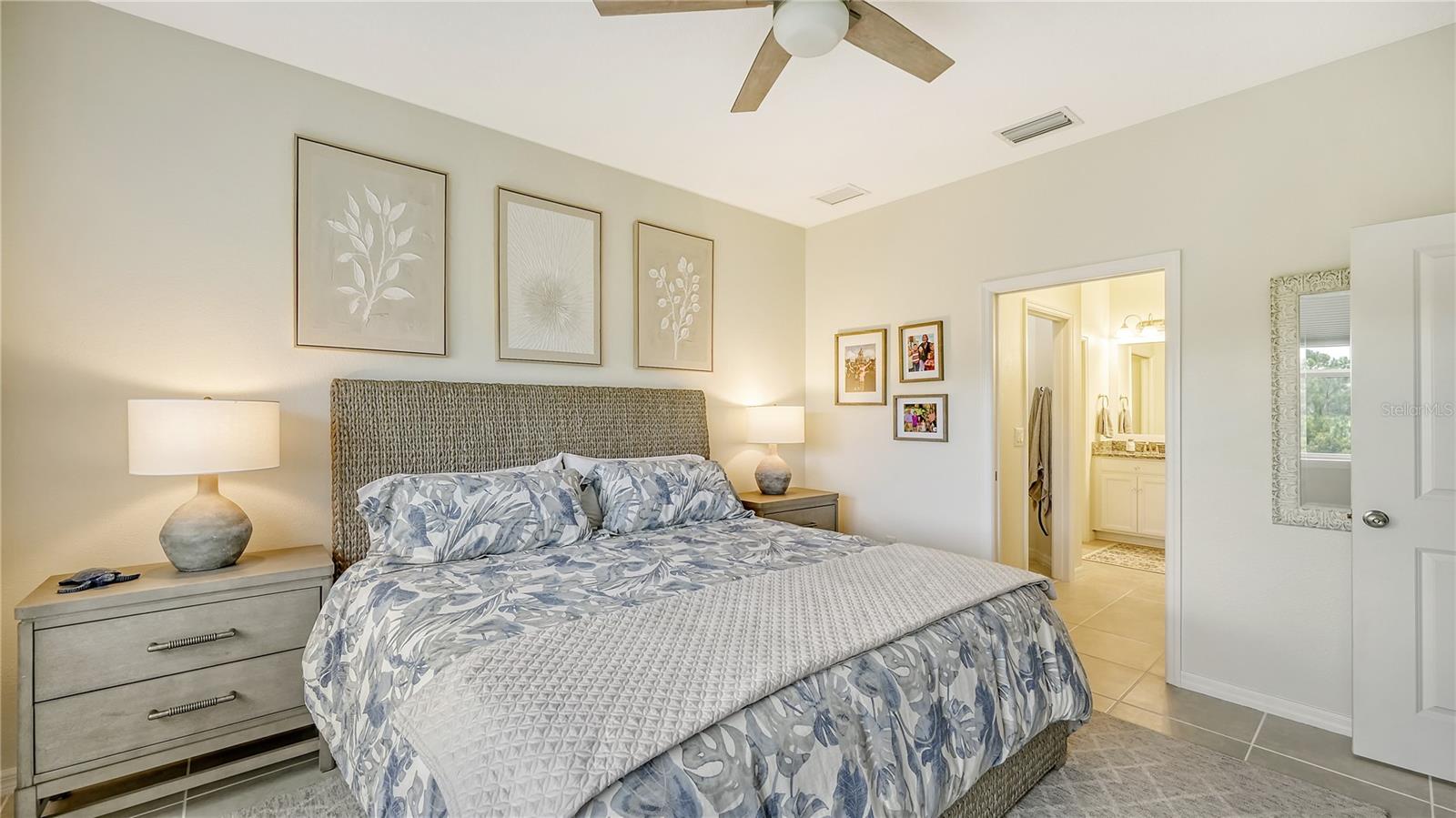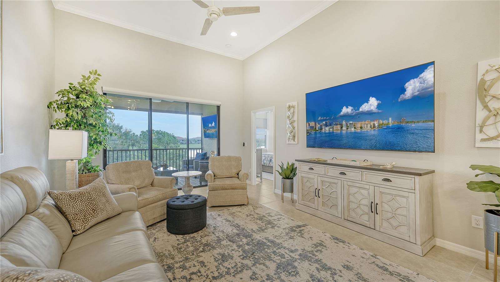 FULLY RENOVATED & FULL GOLF MEMBERSHIP to Esplanade Golf & Country Club in Lakewood Ranch is INCLUDED. Welcome to your dream home in the resort-style community of Esplanade at Lakewood Ranch, a 24-hour guard-gated community where picturesque sidewalks wind through scenic landscapes. This stunning, golf-deeded condo comes with a golf membership and is one of only eight units per building, ensuring peace and tranquility with serene water views. Built in 2020 by Taylor Morrison Homes, this home has been completely renovated throughout featuring upgraded finishes and showcases a paver stone extended length driveway with a beautiful Spanish barrel tile roof. Offering over 1,500 square feet of thoughtfully designed living space, this home includes two bedrooms and two bathrooms with a flex room that offers privacy as an office or additional guest accommodation. Step inside to discover an interior that exudes elegance, with a shiplap entry, 13-foot ceilings, ceramic tile flooring throughout, and an open-concept design. The kitchen is a chef's delight, featuring quartz countertops, under-cabinet lighting, white cabinetry, exquisite glass tile backsplash, and stainless-steel appliances. A second pantry with pull-out shelves offers extra storage, complemented by a cozy eat-in kitchen nook. The living area is elevated by crown molding and fresh paint, while frosted sliding doors provide privacy for the office or flex room. The owner’s suite is a peaceful retreat, complete with stunning views, dual walk-in closets, and a spa-like ensuite bathroom with dual sinks, a seamless glass shower, and a private water closet. A split bedroom floor plan offers privacy, with the guest bedroom conveniently located near the guest bathroom. Relax on the screened-in balcony, taking in lake views, stunning sunsets, and watching golfers on the course. Esplanade is a maintenance-free, resort-style golf cart friendly community brimming with amenities. Grab your clubs and enjoy the championship golf course included with the purchase of the home, a state-of-the-art clubhouse with a wellness and fitness center, Koquina Sand Spa, as well as multiple dining options including the Bahama Bar and Culinary Center and the Barrel House Bar and Bistro. With access to 4 community pools including a lagoon-style heated pool and a resistance pool, tennis courts, pickleball courts, bocce, a dog park, the list goes on, you’ll never want to leave. Conveniently located near A-rated schools, University Town Center Mall, Waterside Place, and Florida's world-famous beaches, this home offers the ultimate in luxury and convenience. Don’t miss your chance to call this extraordinary property your own!