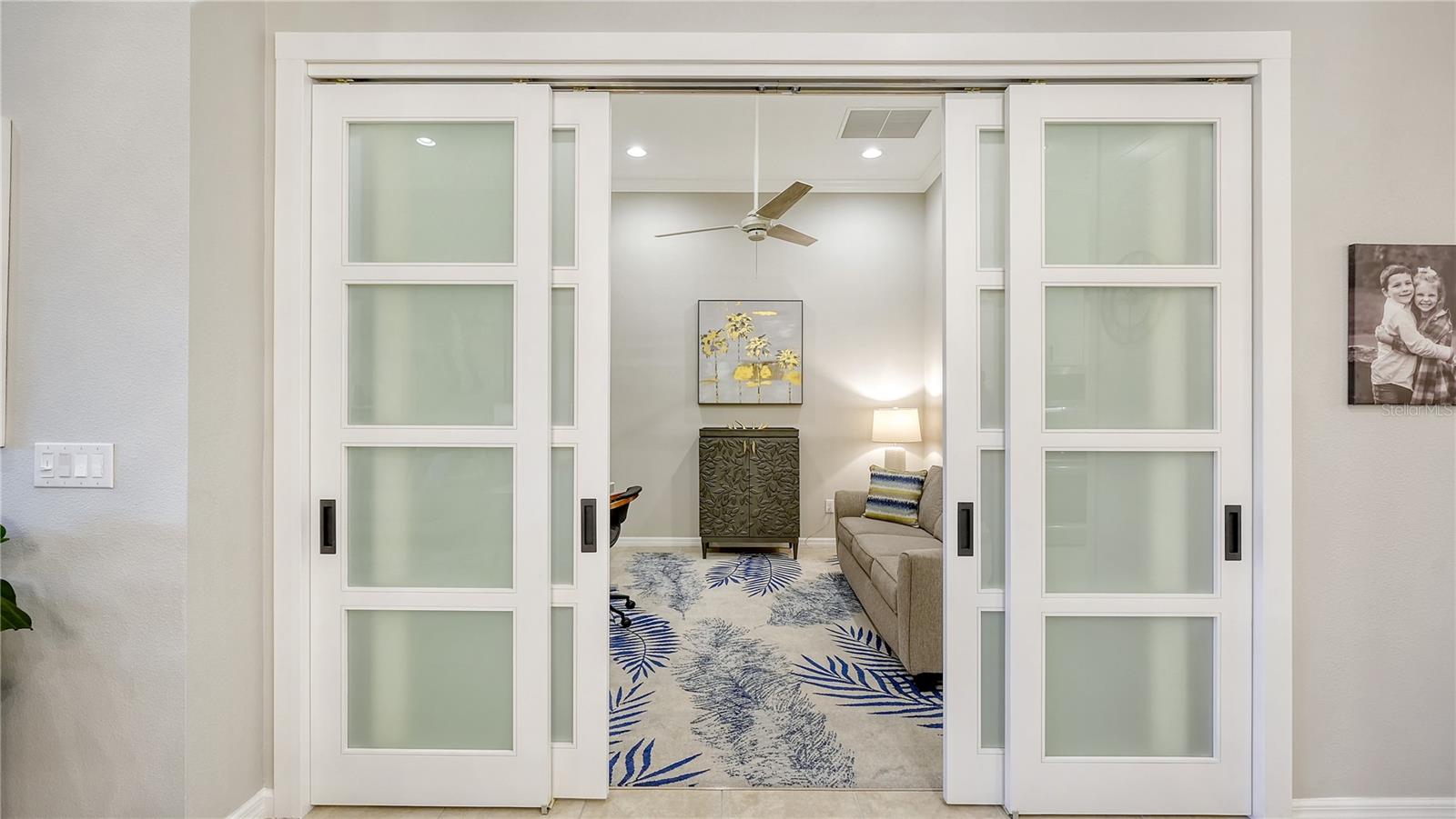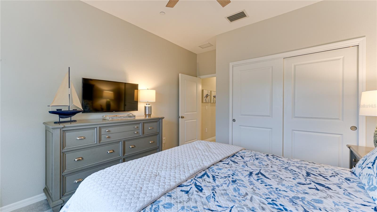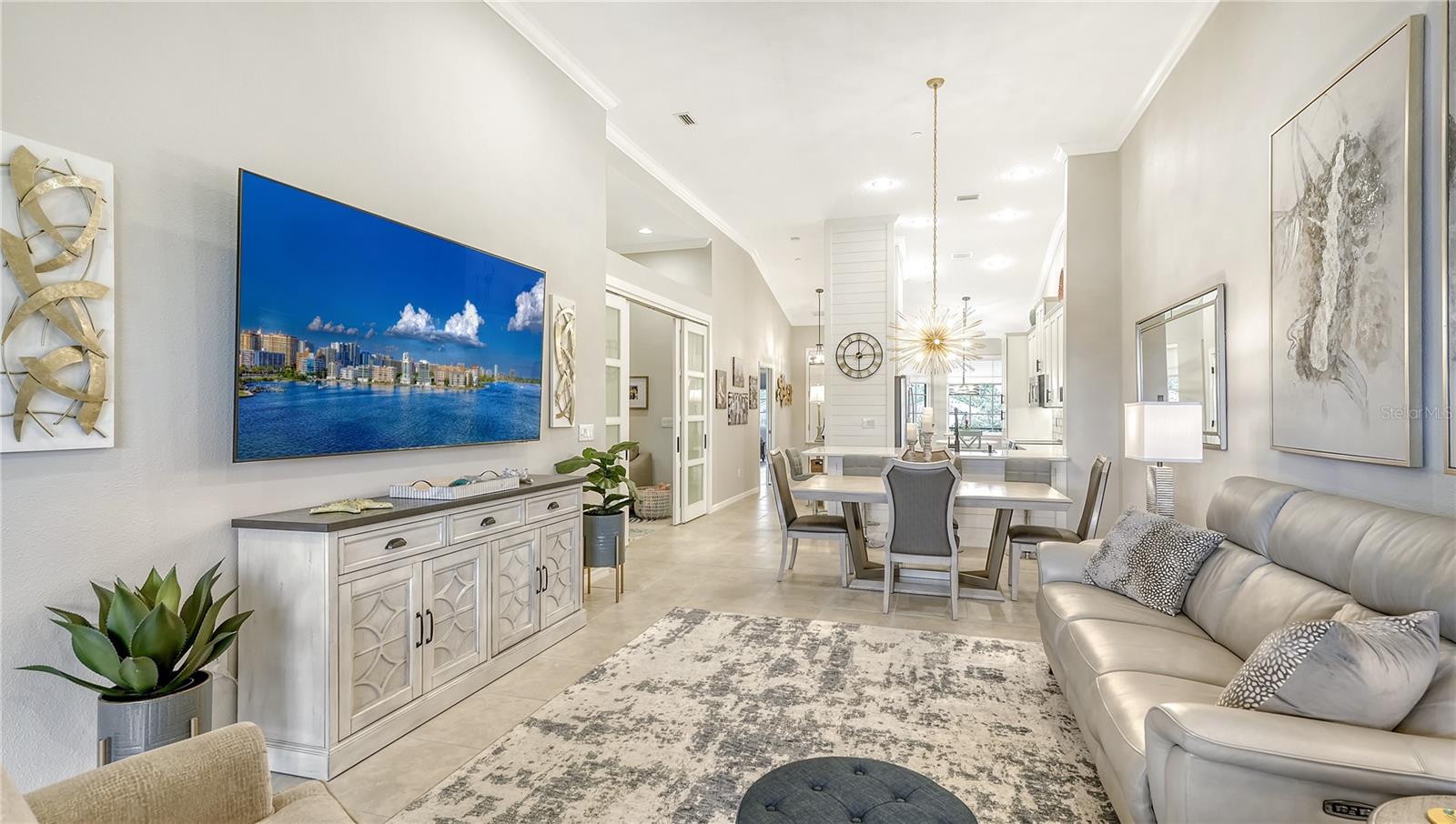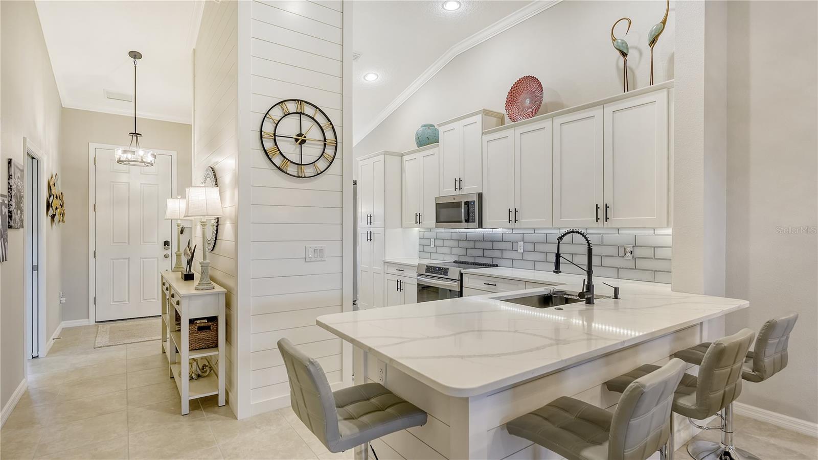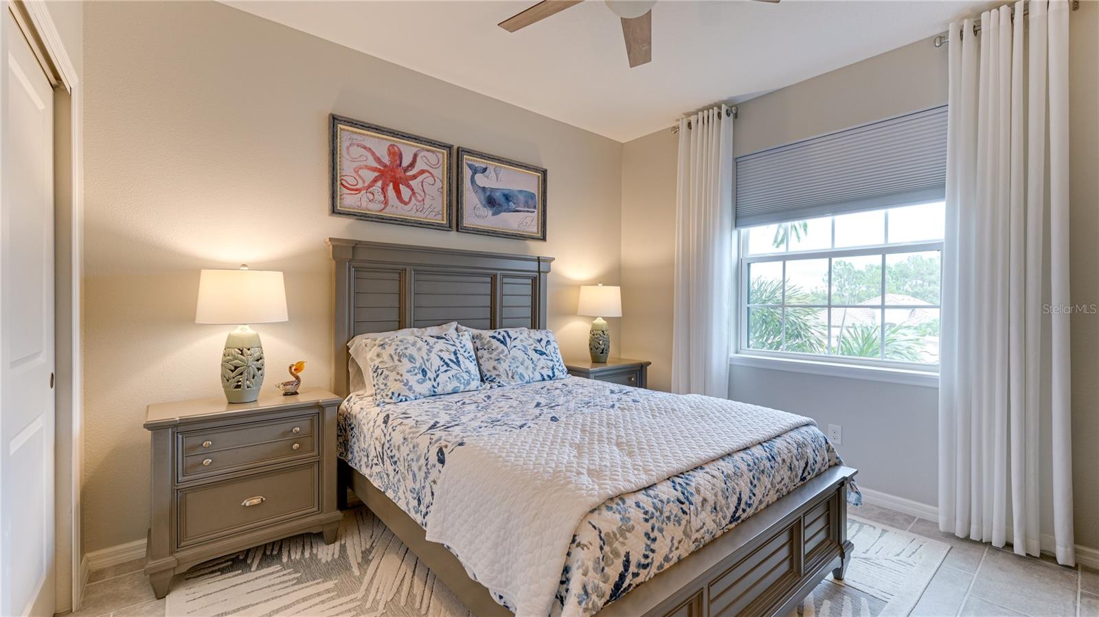 FULLY RENOVATED & FULL GOLF MEMBERSHIP to Esplanade Golf & Country Club in Lakewood Ranch is INCLUDED. Welcome to your dream home in the resort-style community of Esplanade at Lakewood Ranch, a 24-hour guard-gated community where picturesque sidewalks wind through scenic landscapes. This stunning, golf-deeded condo comes with a golf membership and is one of only eight units per building, ensuring peace and tranquility with serene water views. Built in 2020 by Taylor Morrison Homes, this home has been completely renovated throughout featuring upgraded finishes and showcases a paver stone extended length driveway with a beautiful Spanish barrel tile roof. Offering over 1,500 square feet of thoughtfully designed living space, this home includes two bedrooms and two bathrooms with a flex room that offers privacy as an office or additional guest accommodation. Step inside to discover an interior that exudes elegance, with a shiplap entry, 13-foot ceilings, ceramic tile flooring throughout, and an open-concept design. The kitchen is a chef's delight, featuring quartz countertops, under-cabinet lighting, white cabinetry, exquisite glass tile backsplash, and stainless-steel appliances. A second pantry with pull-out shelves offers extra storage, complemented by a cozy eat-in kitchen nook. The living area is elevated by crown molding and fresh paint, while frosted sliding doors provide privacy for the office or flex room. The owner’s suite is a peaceful retreat, complete with stunning views, dual walk-in closets, and a spa-like ensuite bathroom with dual sinks, a seamless glass shower, and a private water closet. A split bedroom floor plan offers privacy, with the guest bedroom conveniently located near the guest bathroom. Relax on the screened-in balcony, taking in lake views, stunning sunsets, and watching golfers on the course. Esplanade is a maintenance-free, resort-style golf cart friendly community brimming with amenities. Grab your clubs and enjoy the championship golf course included with the purchase of the home, a state-of-the-art clubhouse with a wellness and fitness center, Koquina Sand Spa, as well as multiple dining options including the Bahama Bar and Culinary Center and the Barrel House Bar and Bistro. With access to 4 community pools including a lagoon-style heated pool and a resistance pool, tennis courts, pickleball courts, bocce, a dog park, the list goes on, you’ll never want to leave. Conveniently located near A-rated schools, University Town Center Mall, Waterside Place, and Florida's world-famous beaches, this home offers the ultimate in luxury and convenience. Don’t miss your chance to call this extraordinary property your own!