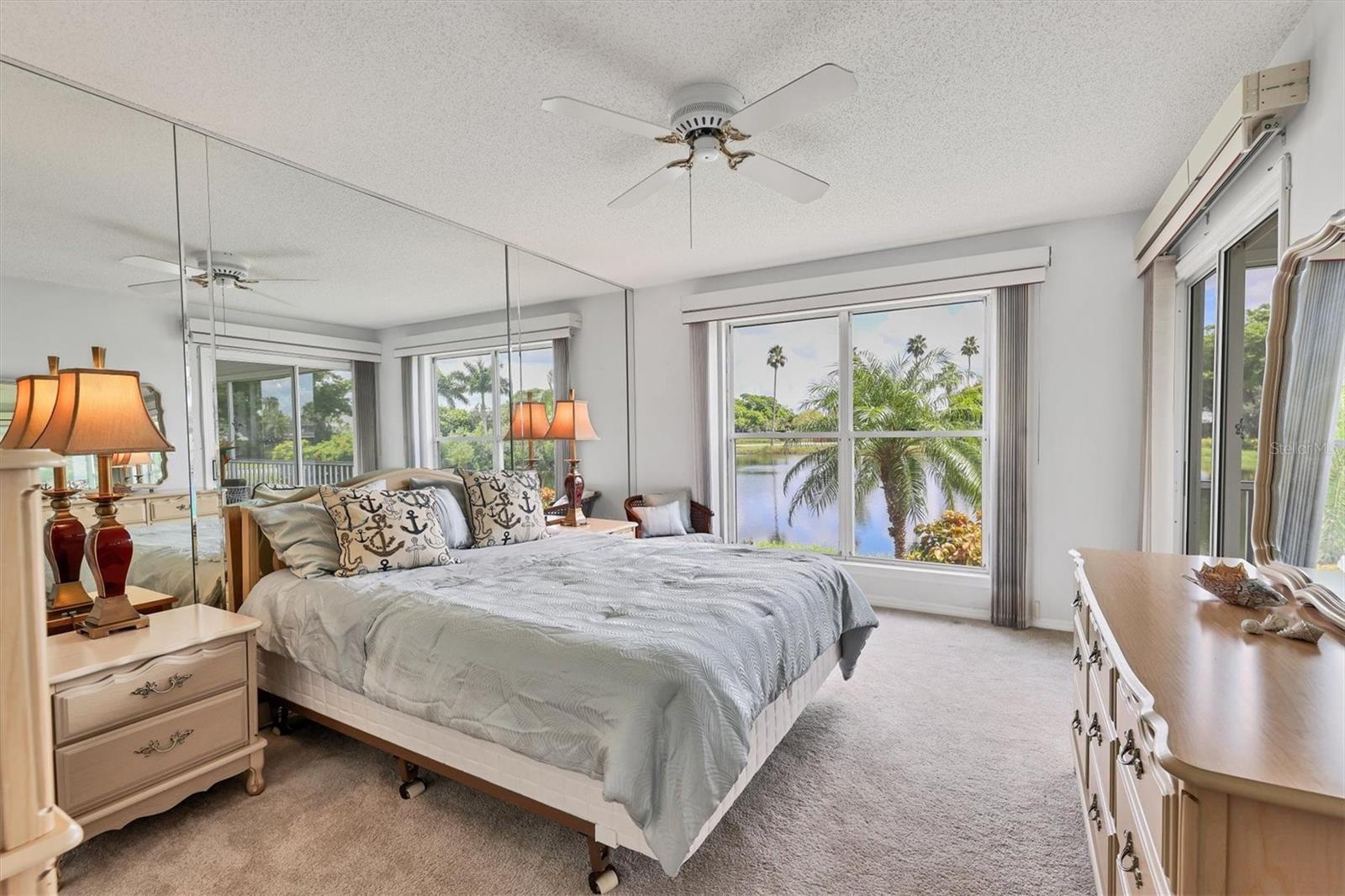 Welcome home, step inside to be greeted by water views from every window and plenty of natural light. 2-bedroom, 2-bathroom condo is in the highly sought-after neighborhood of Perico Bay Club. Minutes to Gulf of Mexico beaches of Anna Maria Island and street access to Robinson Preserve with bike and walking trails, you’ll find this place to be your sub-tropical oasis! This thoughtfully designed residence features a split floor plan, with the master bedroom offering a sliding door to a screened-in porch and an ensuite with shower and custom closet organizers. Step onto your private screened porch from both the master bedroom and living room, treating yourself to a view of the lake. Shoreline Terraces offers its own community pool and spa, fully funded reserves and a well-run association that keeps building exterior, community areas, and all pools areas well maintained and functioning whenever you desire to indulge in the Florida lifestyle! Perico Bay Club has a junior Olympic lap pool, pickle ball & tennis courts, a kayak launch and a Community Boardwalk that just reopened February 10th! The Clubhouse holds the community Fitness Center, multiple meeting areas with full kitchen for food preparation, both screened-in and open-air seating areas and a community library. From the moment you drive through this gated community, you are greeted with an abundance of flora and fauna throughout that will draw you in! Surrounded by water, residents will enjoy walking/biking/driving around this beautiful community enjoying nature and wildlife. All dimensions are approximations and should be verified by Buyer. This home is being sold turnkey furnished minus small list of staging items. Anna Maria Island, recognized as one of the greatest beach towns in America. Its sugar-like sandy beaches, embraced by the crystal clear, turquoise-blue waters of the Gulf of Mexico are world renown just minutes away across the bridge.