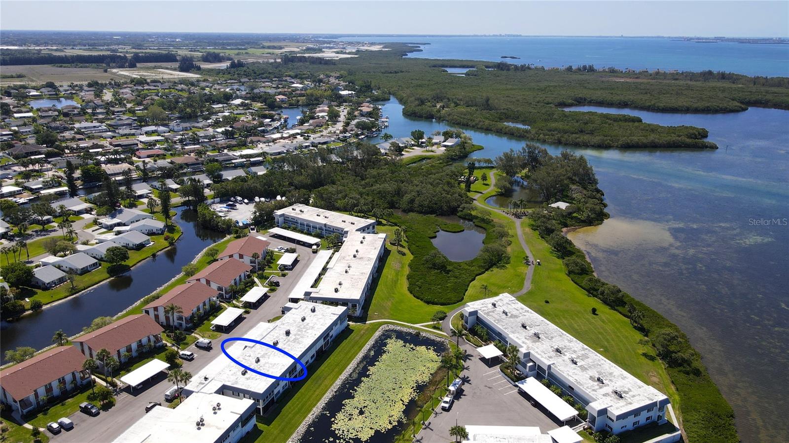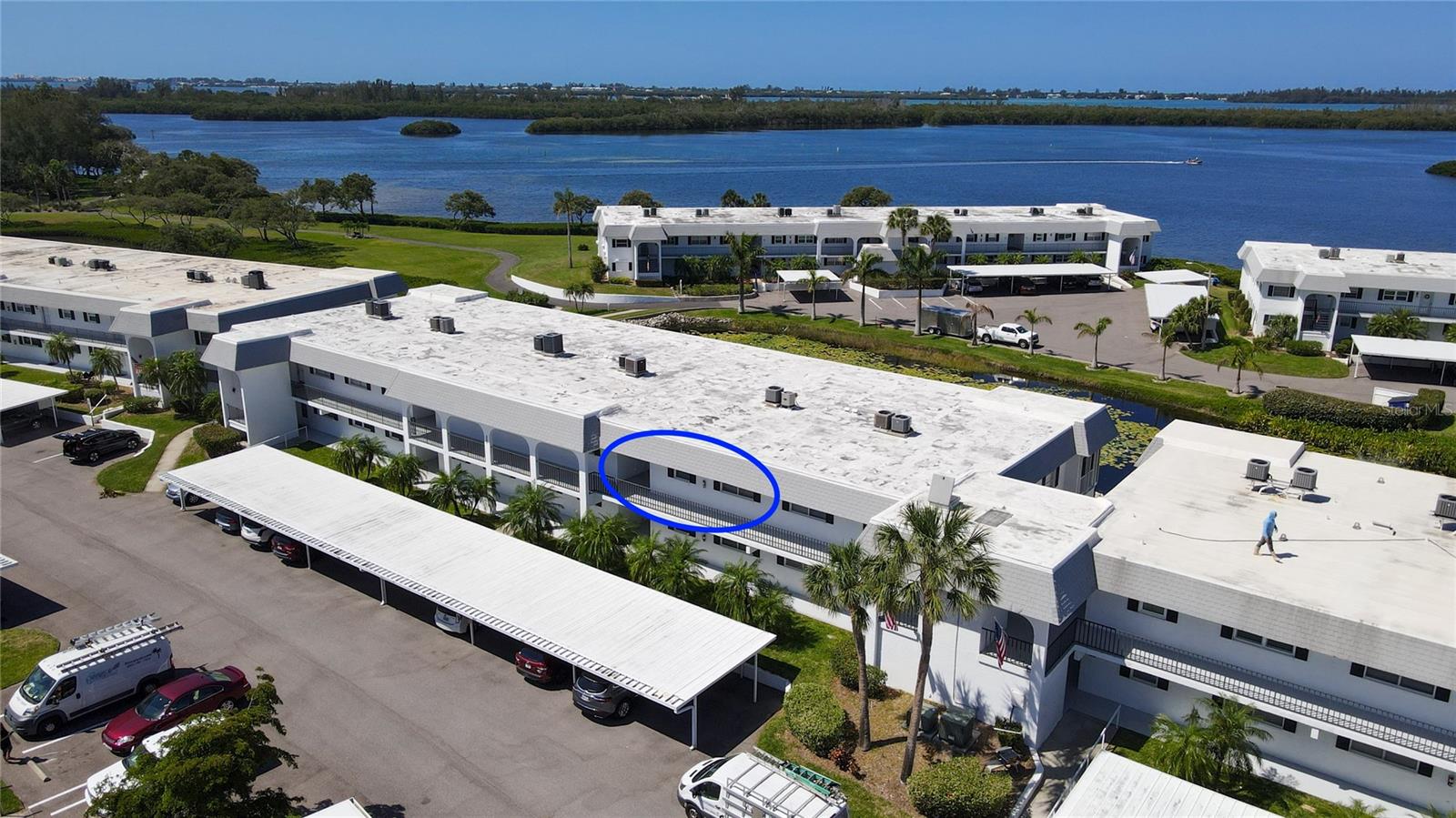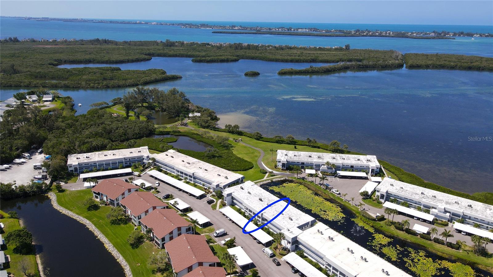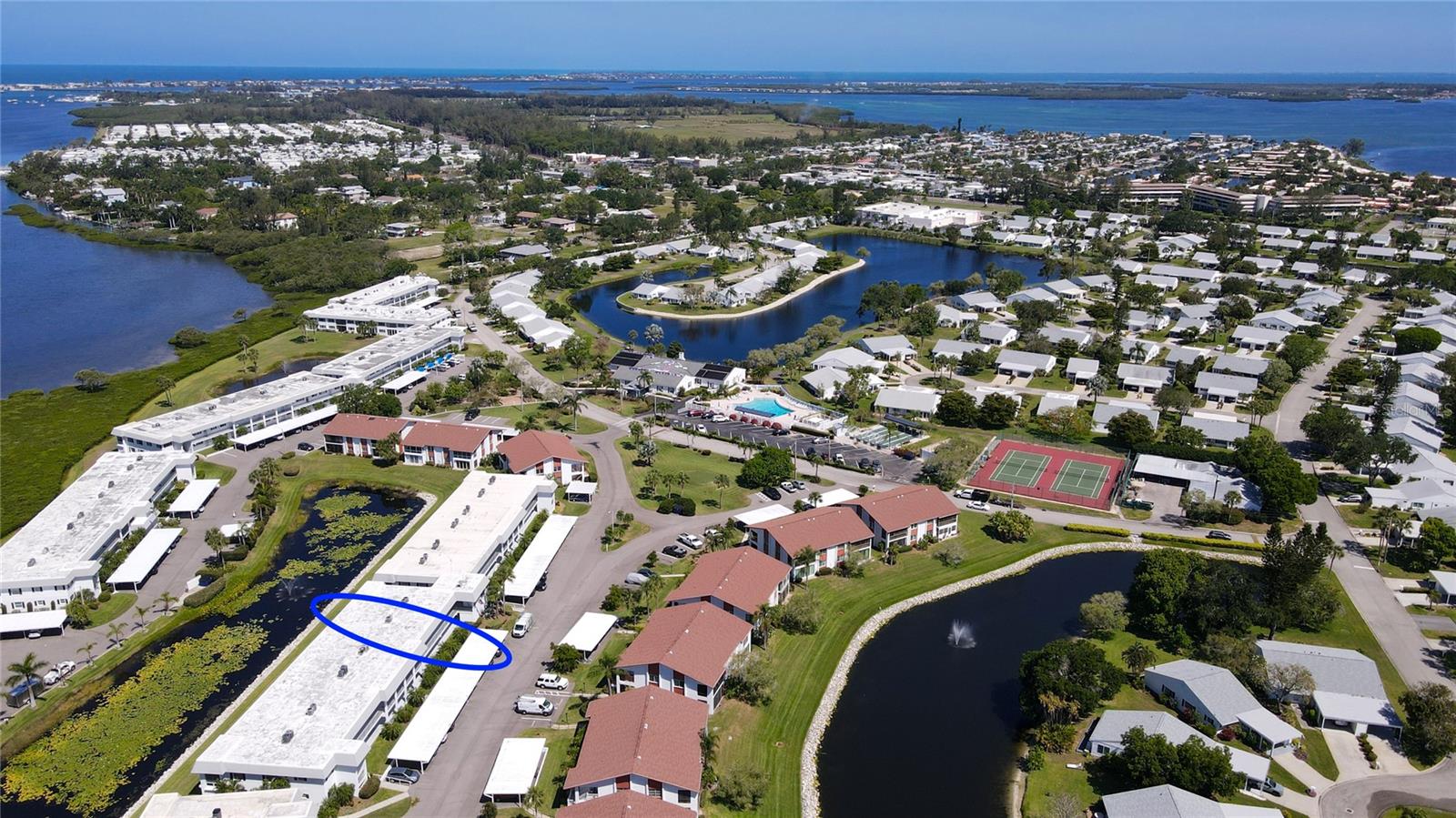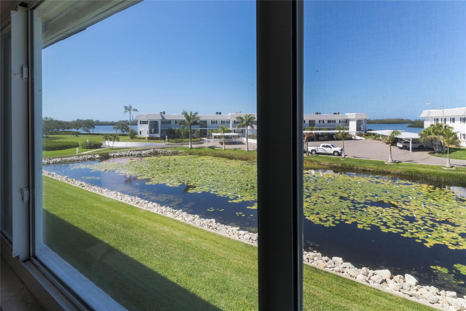 You'll enjoy the view of Sarasota Bay and the tranquil pond from your spacious balcony or from the large picture window in the main bedroom. Primary bedroom has en-suite bathroom and walk-in closet. Open and bright upstairs 2br/2ba condo with full sized washer and dryer in the kitchen. You'll also appreciate the elevator and covered parking! Mount Vernon is an active 55+ community with large clubhouse, tennis and pickle ball courts, heated pool, putting green, and more. Being sold furnished so bring your clothes and move right in then take your time to update to your taste. Kayak included in sale for paddling the tranquil Sarasota Bay.