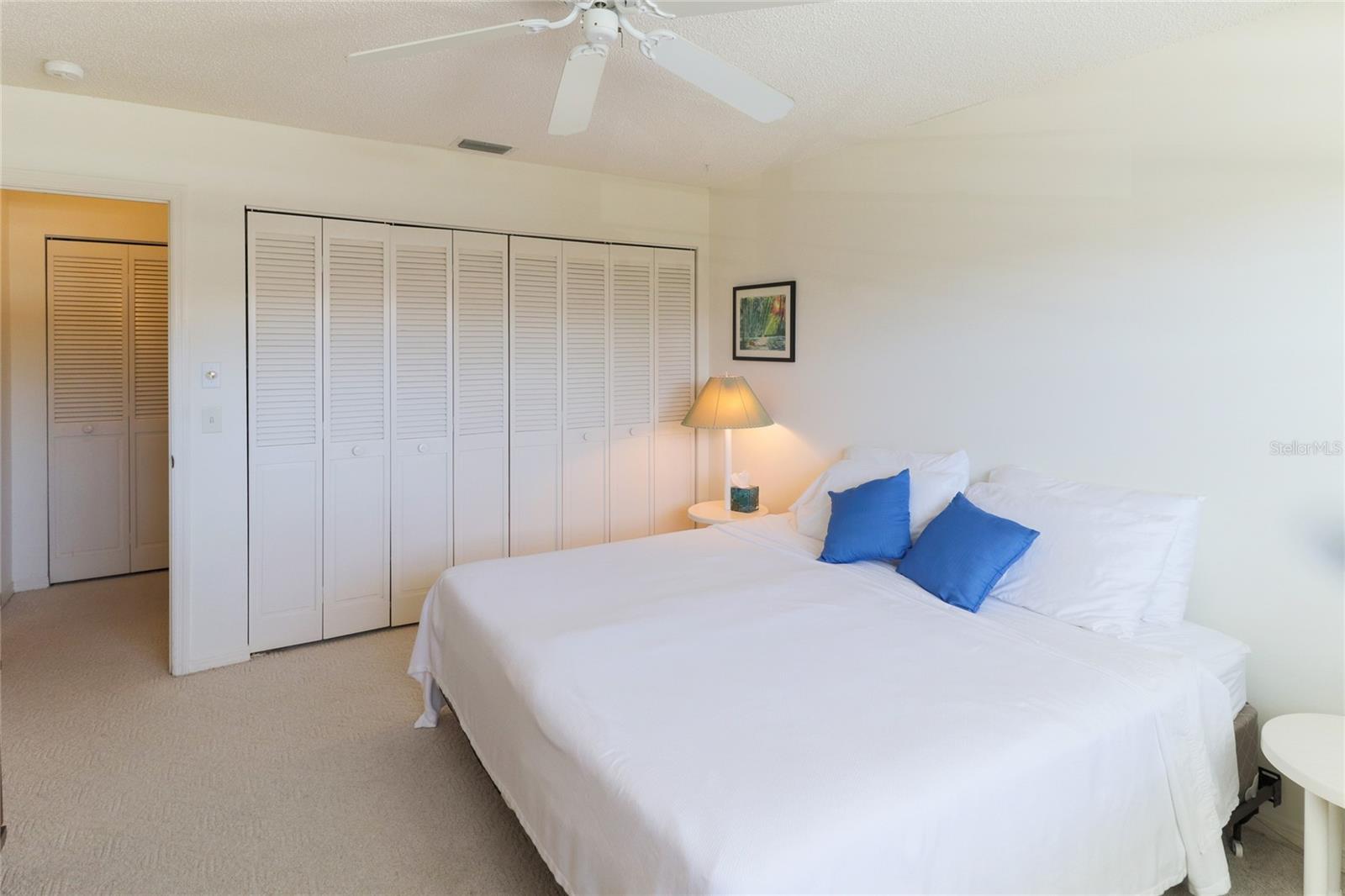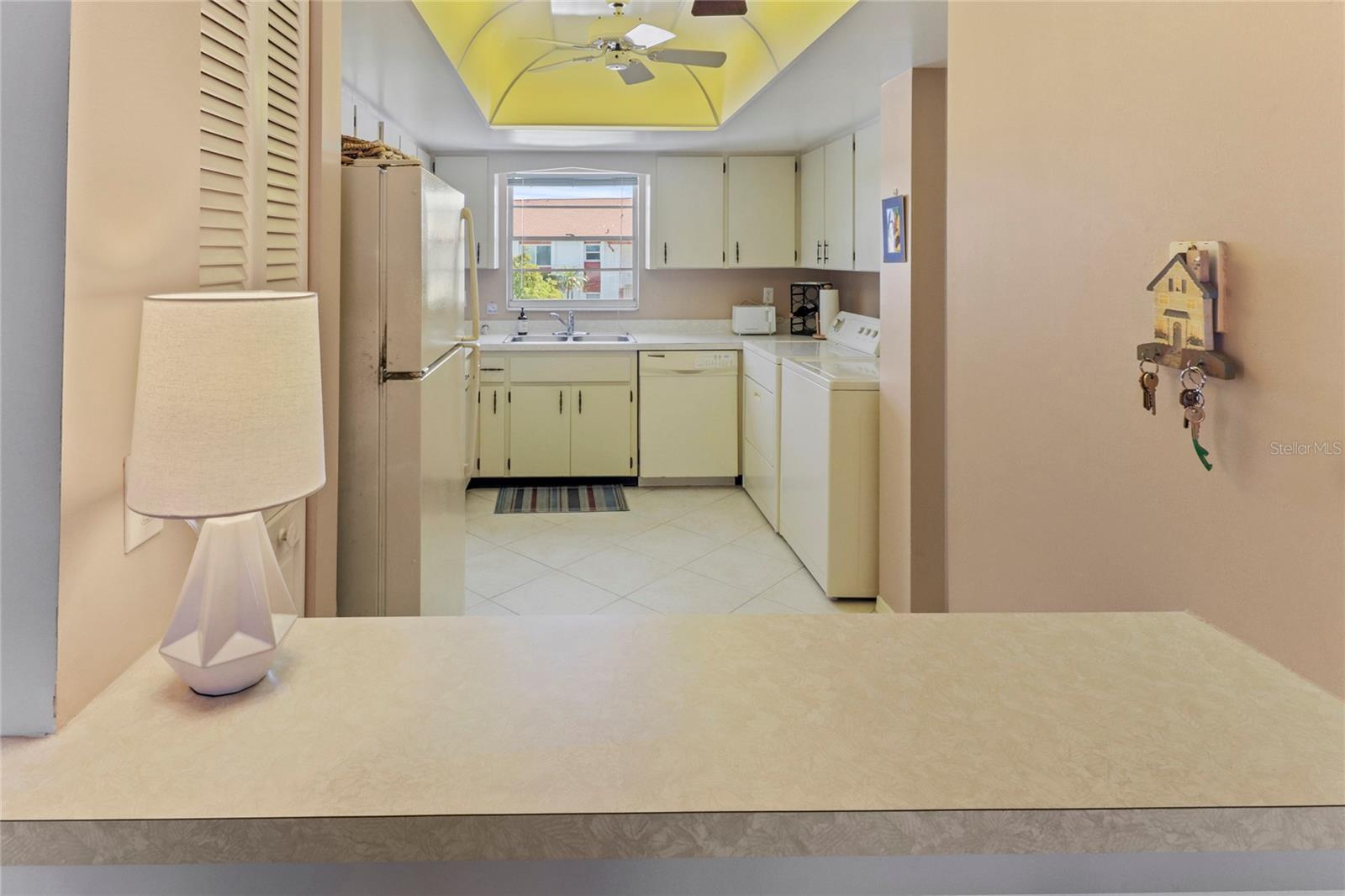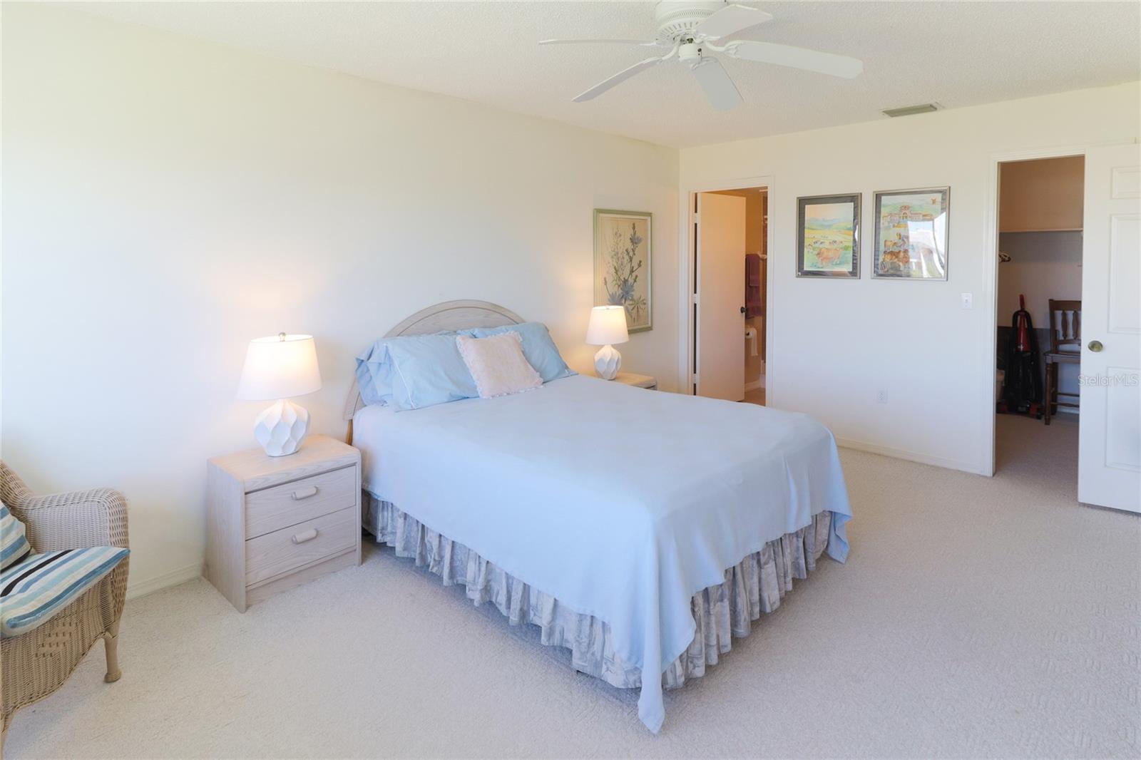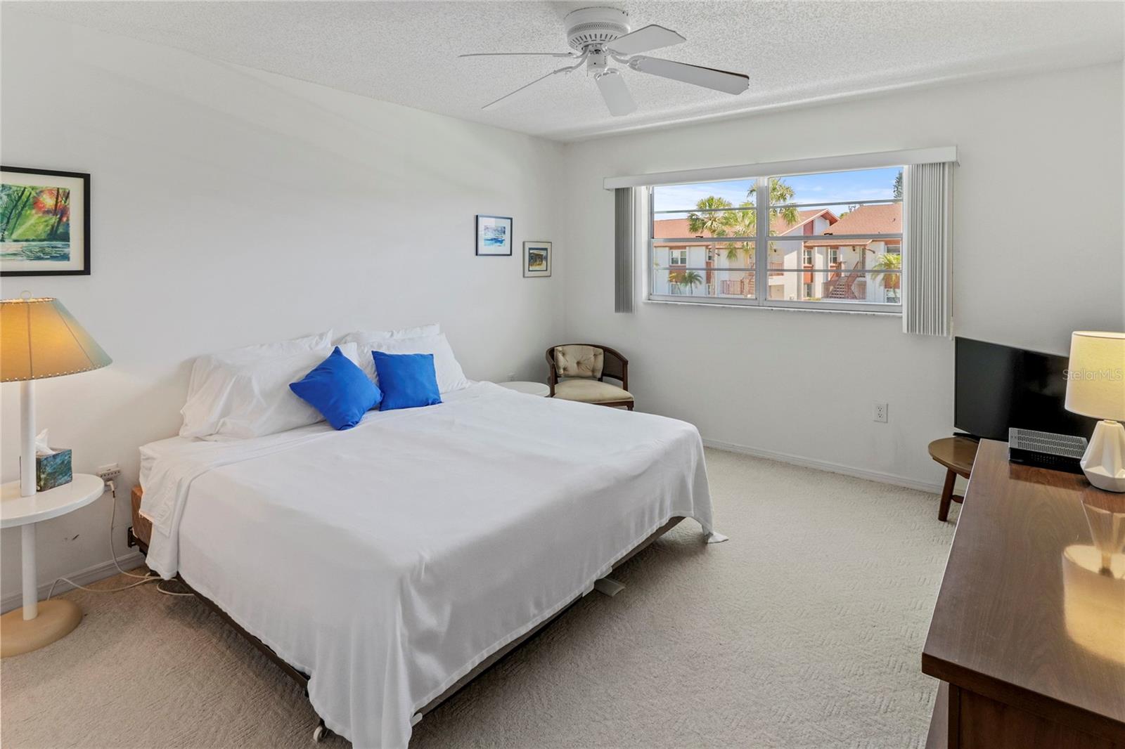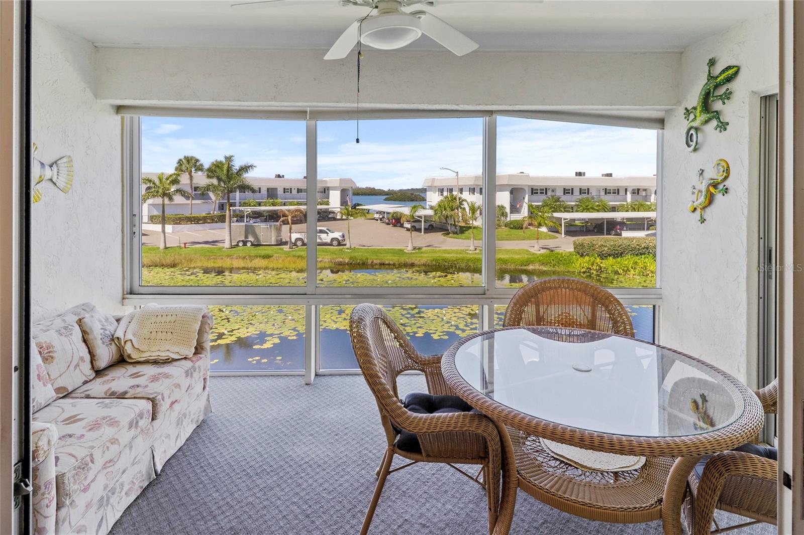You'll enjoy the view of Sarasota Bay and the tranquil pond from your spacious balcony or from the large picture window in the main bedroom. Primary bedroom has en-suite bathroom and walk-in closet. Open and bright upstairs 2br/2ba condo with full sized washer and dryer in the kitchen. You'll also appreciate the elevator and covered parking! Mount Vernon is an active 55+ community with large clubhouse, tennis and pickle ball courts, heated pool, putting green, and more. Being sold furnished so bring your clothes and move right in then take your time to update to your taste. Kayak included in sale for paddling the tranquil Sarasota Bay.