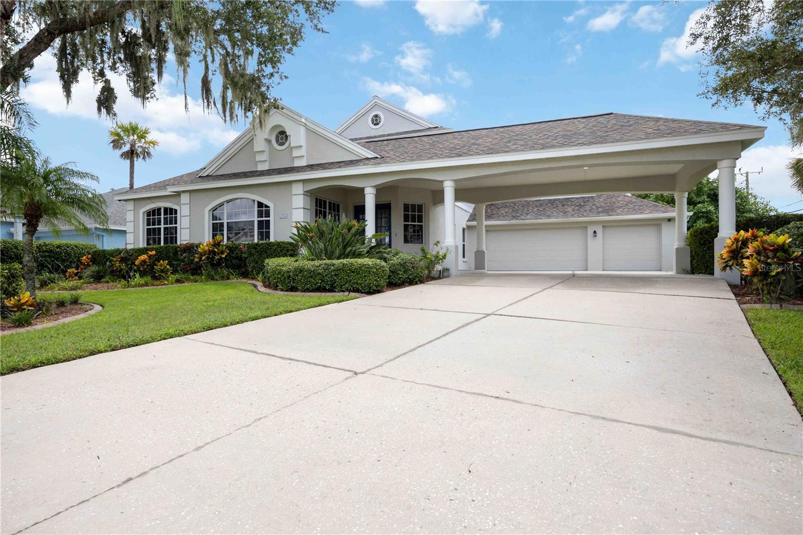ATTENTION BOATERS . . . NEW ROOF 2018 . . . NEW STAINLESS STEEL APPLIANCES . . . NEW HVAC ON BOTH LEVELS . . . NEW QUARTZ COUNTERTOPS . . . NEW EXTERIOR PAINT . . . HEATED POOL . . . OUTDOOR KITCHEN . . . ONE OF THE LARGEST LOTS . . . CANAL ACCESS TO THE GULF OF MEXICO . . . VAULTED CEILINGS . . . HOME OFFICE . . . Welcome to this two-story waterfront home located on a serene canal with access to the Gulf of Mexico. This home spans an impressive 3,470 square feet, with 4 bedrooms, 3.5 bathrooms with the primary bedroom located on the main floor. This opportunity is in a highly desired boating community known as the Inlets at Riverdale. As you step inside through double doors at the grand entrance, the tile floor guides you to the formal dining and living rooms with a dry bar setting the tone for Welcome Home! The open great room, with its high vaulted ceilings, is ideal for large gatherings, especially during the holidays. Overlooking this space is a gourmet kitchen, fully equipped with wooden cabinetry, new stainless-steel appliances and new quartz countertops. On the first floor, just off the den area, is a bright and sunny office space and powder room. The primary bedroom is also located on this level, offering a huge space with a cozy reading area. The primary bathroom features a luxurious walk-in shower, his and hers closets and dual vanity sinks. Conveniently nearby, the laundry room and garage provide additional functionality. The outdoor space is designed for fun in the sun, boating and relaxing around the heated pool and hot tub, an outdoor kitchen, a boat lift and canal access. Upstairs is a big open balcony overlooks the living space, leading to a bonus area that can serve as a game room, moving theater or another bedroom. The guest bedrooms are incredibly accommodating for sleepover guests with one featuring an en-suite full-size bath. The remaining two guest bedrooms share a Jack and Jill walk-through full-size bath. Recent upgrades to mention include a new roof installed in 2018, a newer hot water heater, new A/C units on both levels and a new pool pump. The Inlets is a quiet community with low HOA dues and close to all essential amenities. Bring your boat, water toys and the whole family to enjoy this exceptional property. Don't miss the chance to make this dream home your reality—call today to learn more!