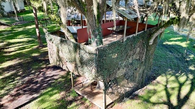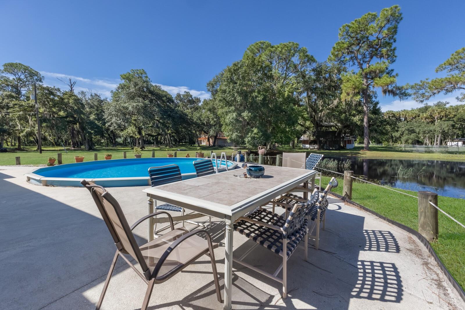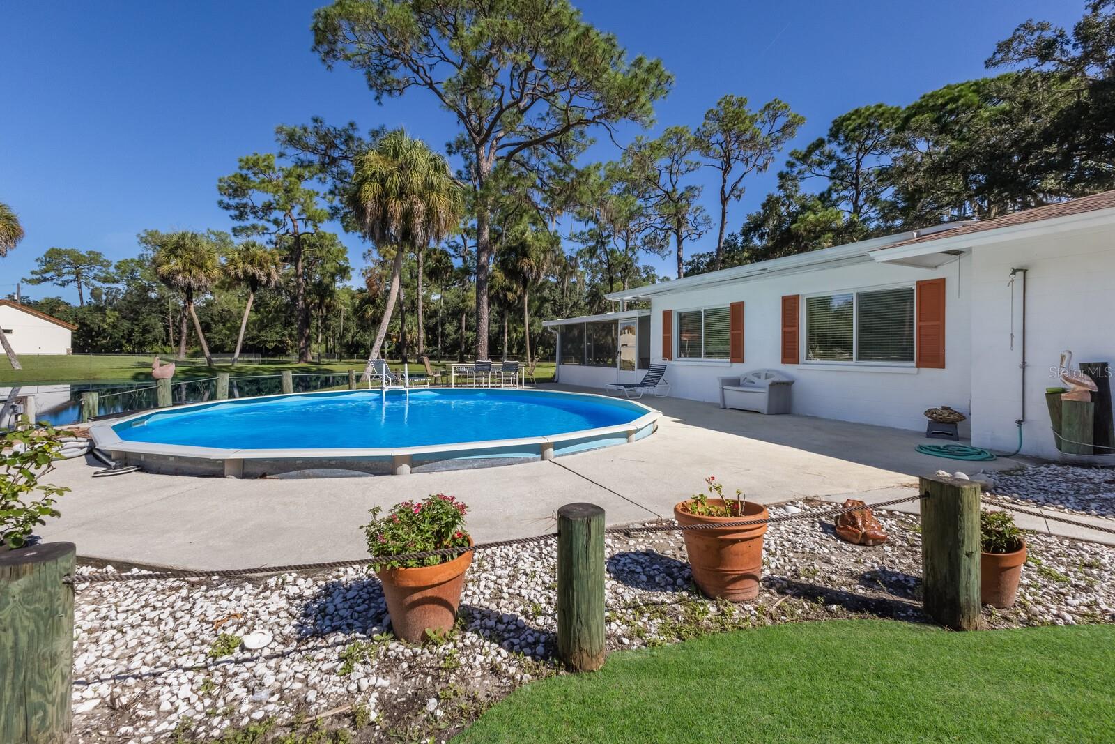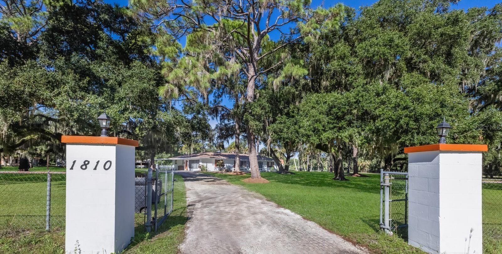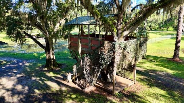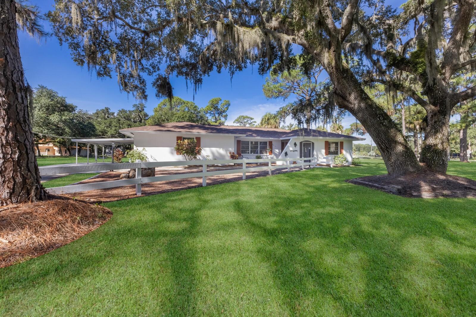ranch-style? spacious three-bedroom, two-bathroom home?.Enjoy the freedom of no CDD and no HOA fees This well-maintained gem boasts a split-bedroom design, with ceiling fans installed throughout? the home for added comfort. The master suite features a walk-in closet and a private shower?. Kitchen ?features solid wood cabinets and granite countertops. The gorgeous family room offers stunning views of the sparkling pool, serene pond,?tree house, and lush wooded acreage. Step outside to enjoy the enclosed lanai, perfect for watching sunsets over the pond. The property also features a unique adult treehouse complete with a cozy fire pit—ideal for family gatherings or quiet relaxation. The deck and swimming pool are surrounded by stately oak trees that provide shade and charm, making outdoor living a dream. For animal lovers, this property is a paradise, with nicely landscaped farmland, horse stables, and space for 4H animals, all secured by double fencing. Zoned for agriculture, this rare find sits on a corner lot and offers the ultimate blend of privacy and convenience. Located just minutes from the beaches, downtown, restaurants, Costco, Home Depot, Skillets, and the UTC Mall, with convenient access to Interstate 75, this property truly has it all.