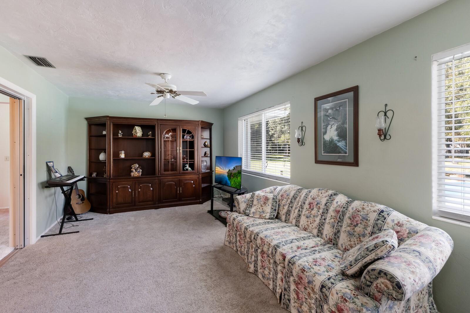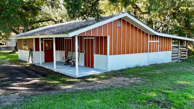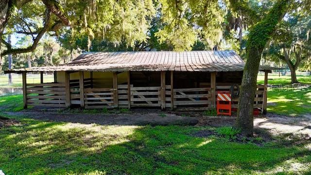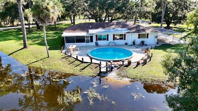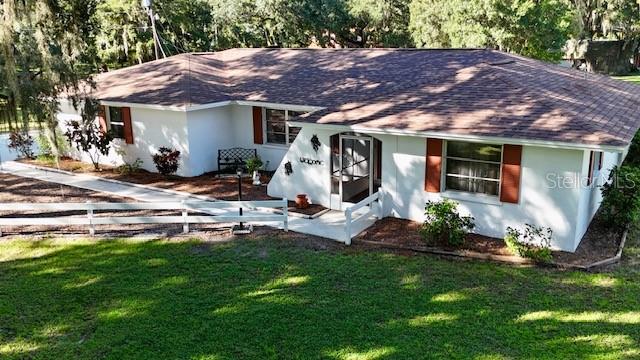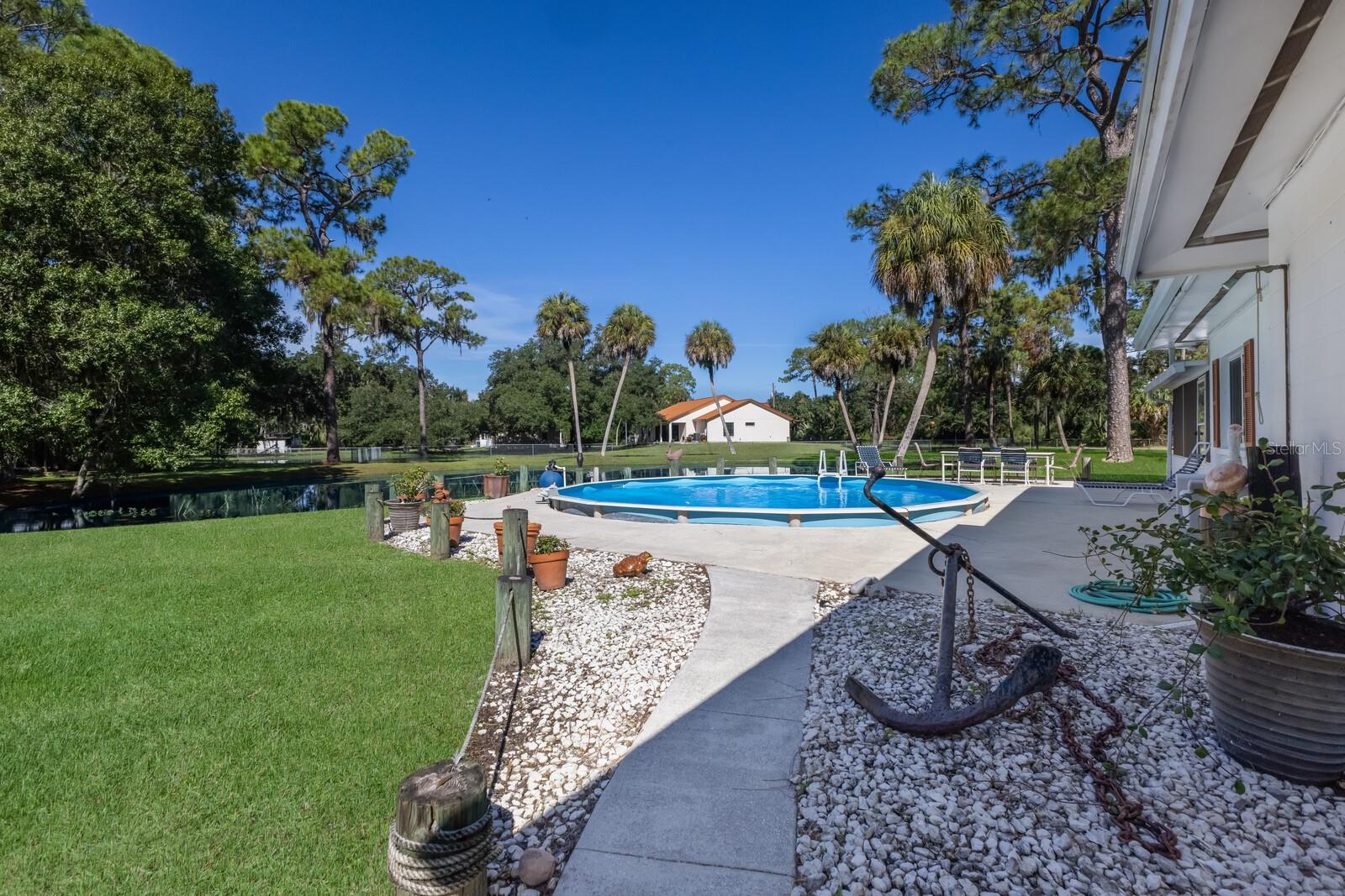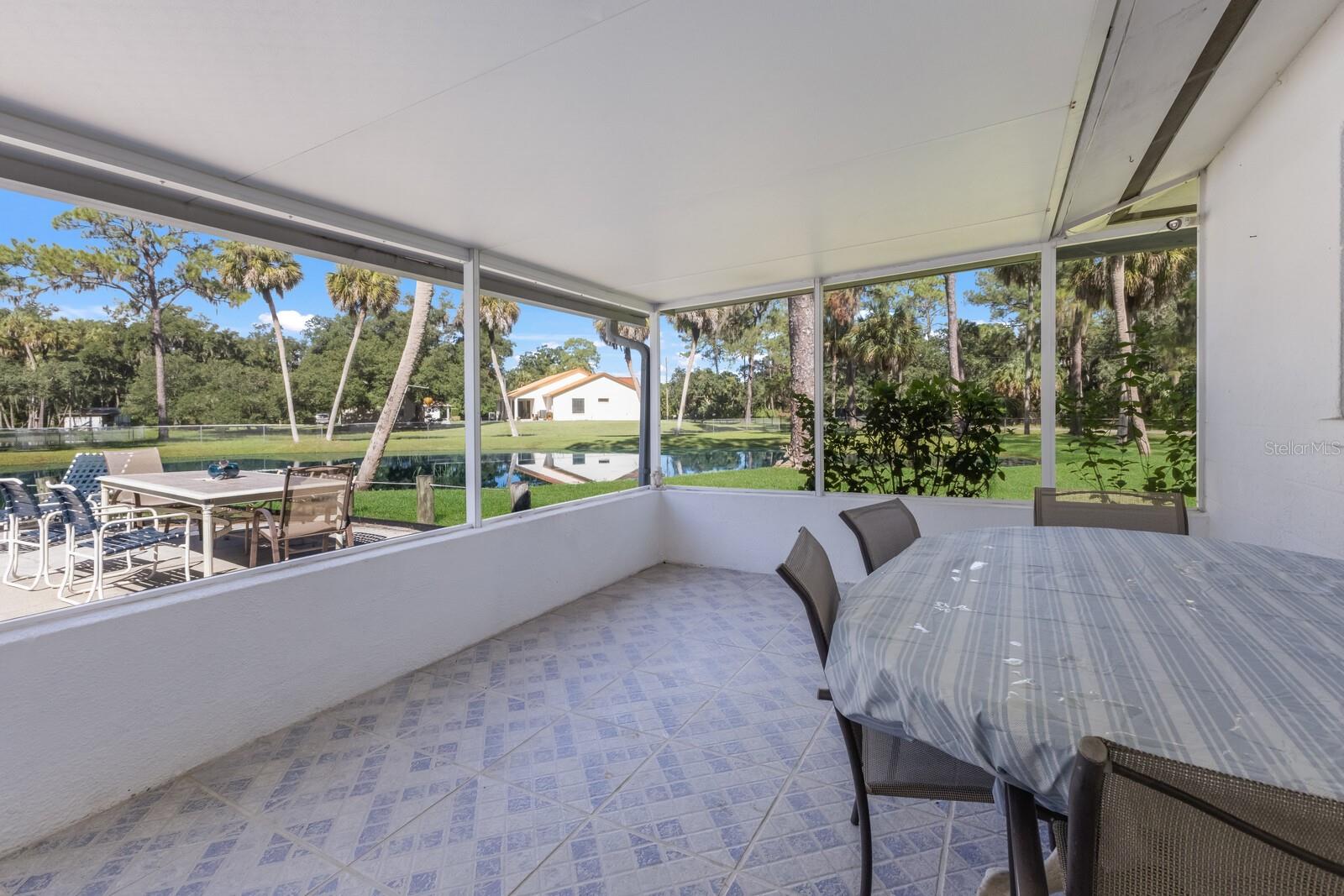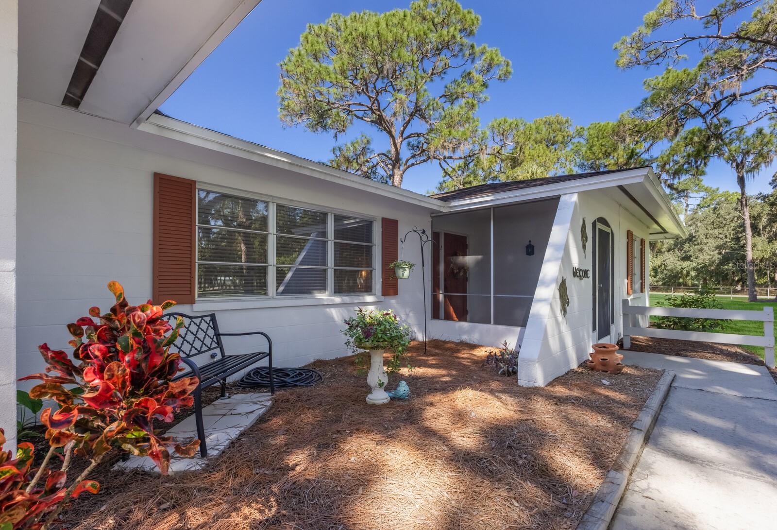 ranch-style? spacious three-bedroom, two-bathroom home?.Enjoy the freedom of no CDD and no HOA fees This well-maintained gem boasts a split-bedroom design, with ceiling fans installed throughout? the home for added comfort. The master suite features a walk-in closet and a private shower?. Kitchen ?features solid wood cabinets and granite countertops. The gorgeous family room offers stunning views of the sparkling pool, serene pond,?tree house, and lush wooded acreage. Step outside to enjoy the enclosed lanai, perfect for watching sunsets over the pond. The property also features a unique adult treehouse complete with a cozy fire pit—ideal for family gatherings or quiet relaxation. The deck and swimming pool are surrounded by stately oak trees that provide shade and charm, making outdoor living a dream. For animal lovers, this property is a paradise, with nicely landscaped farmland, horse stables, and space for 4H animals, all secured by double fencing. Zoned for agriculture, this rare find sits on a corner lot and offers the ultimate blend of privacy and convenience. Located just minutes from the beaches, downtown, restaurants, Costco, Home Depot, Skillets, and the UTC Mall, with convenient access to Interstate 75, this property truly has it all.
