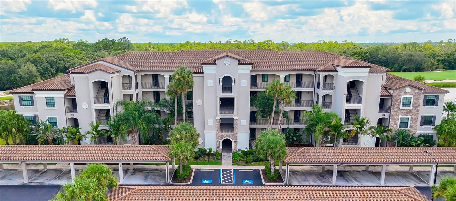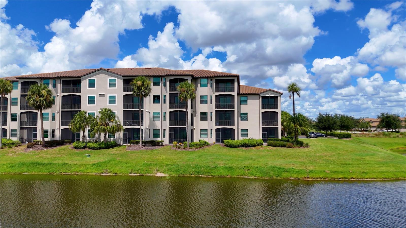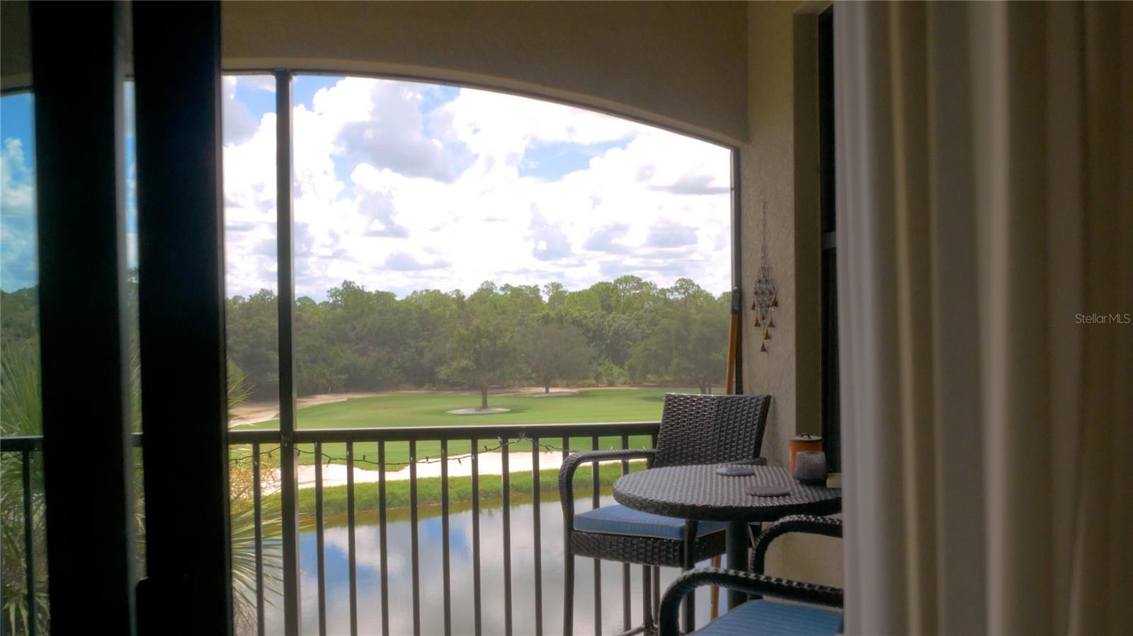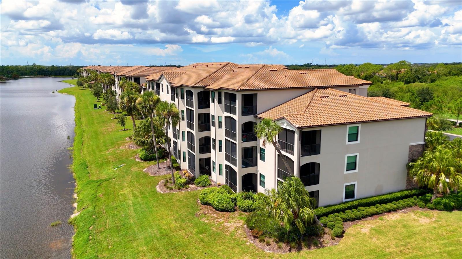 Wake up every day to beautiful golf course and water views from this top floor condominium with a corner screened-in lanai in Lakewood National Golf Club. This luxurious piece of paradise in the #1 Master Planned Community in the United States with unparalleled amenities including a transferrable full golf membership could be yours. This is not only an excellent primary residence but can also be used as an investment/rental property. This exquisite two-bedroom, two-bathroom condo located on the 4th floor features an open concept kitchen and living area with large ceramic tile throughout. An over-sized island with granite countertops and seating for five is the focal point and boasts a chef’s kitchen with 42” solid wood cabinets, ample storage and stainless-steel appliances. The well-appointed living room has high ceilings that provide a feeling of space that extends onto the lanai where the views are breathtaking. A cozy dining area provides the perfect nook for morning coffees and family dinners. Plantation shutters provide extra privacy for both bedrooms. The primary bedroom has an ensuite bathroom with a large shower and walk in closets with built-ins. The second bedroom is spacious and just steps from the second bathroom with a full-size tub. Extra storage throughout the unit is complimented by a large (6x10) storage unit just outside the entrance. Two assigned parking spots including one covered are just outside the elevator. But you aren’t going to spend much time inside this incredible home because the amenities are endless. Two Arnold Palmer designed golf courses, four pickle ball courts, eight clay lighted tennis courts, and two bocce ball courts will fill your days with recreation. Then it’s time to relax at the tiki bar and resort style pool or unwind in the onsite spa. After a full day of fun, join your friends and neighbors at the beautiful Grand Clubhouse for dinner! Exclusivity is ensured with the twenty-four-hour security gate entrance. Lakewood National is only 35 minutes to the award-winning Gulf Coast beaches. Shopping and dining are close by at University Town Center and Lakewood Ranch Mainstreet. This amazing condo is not just a place to live, it's a lifestyle!