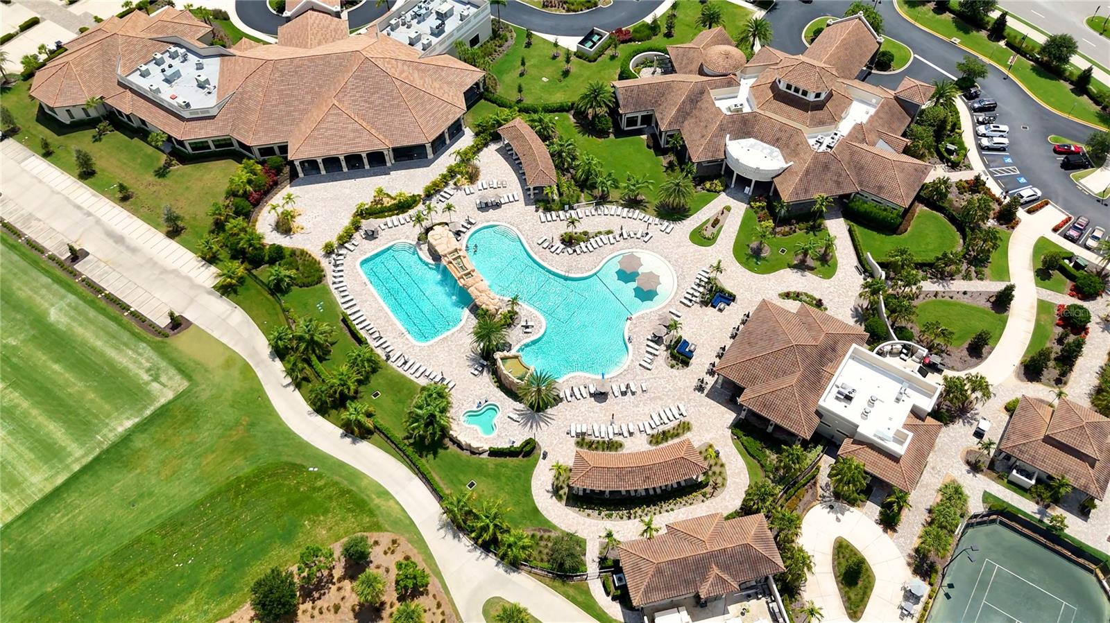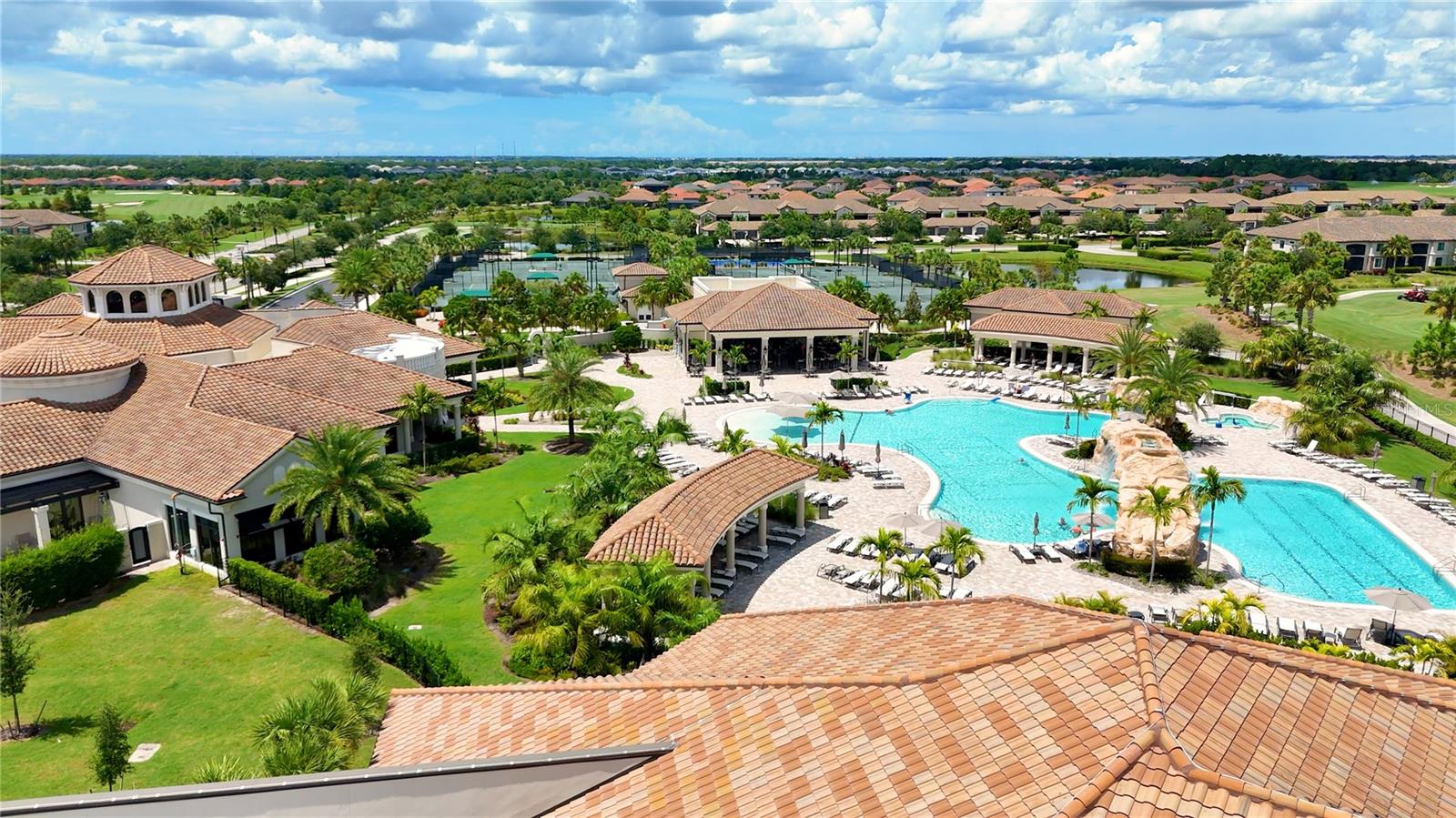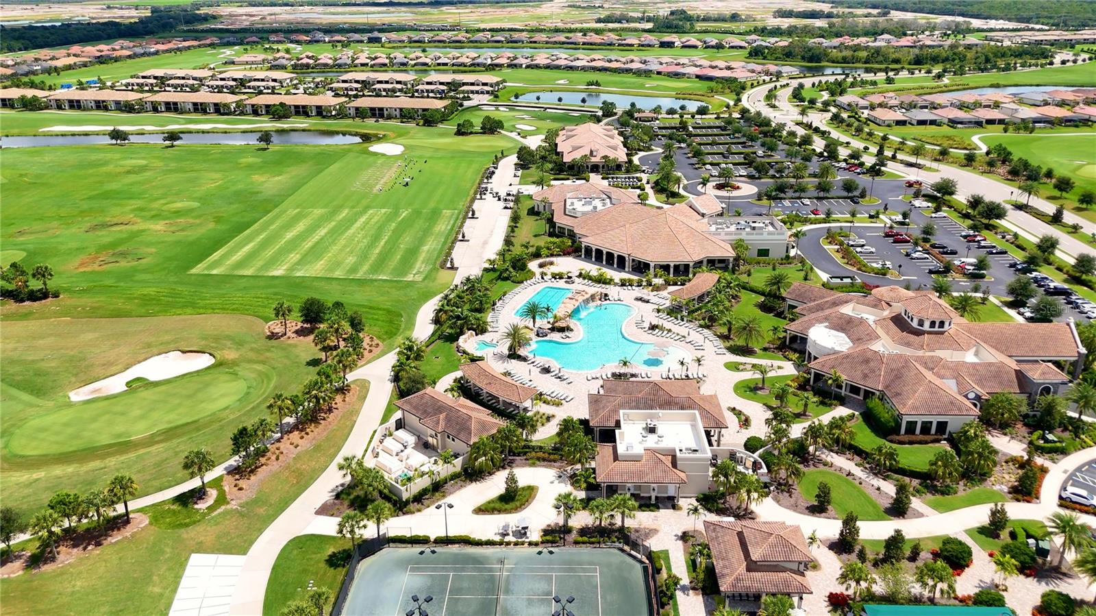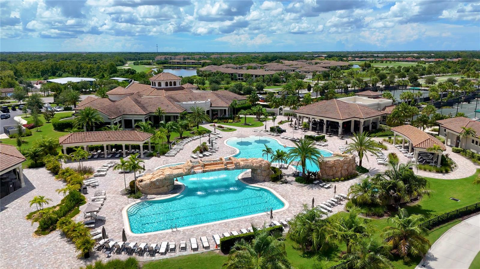 Wake up every day to beautiful golf course and water views from this top floor condominium with a corner screened-in lanai in Lakewood National Golf Club. This luxurious piece of paradise in the #1 Master Planned Community in the United States with unparalleled amenities including a transferrable full golf membership could be yours. This is not only an excellent primary residence but can also be used as an investment/rental property. This exquisite two-bedroom, two-bathroom condo located on the 4th floor features an open concept kitchen and living area with large ceramic tile throughout. An over-sized island with granite countertops and seating for five is the focal point and boasts a chef’s kitchen with 42” solid wood cabinets, ample storage and stainless-steel appliances. The well-appointed living room has high ceilings that provide a feeling of space that extends onto the lanai where the views are breathtaking. A cozy dining area provides the perfect nook for morning coffees and family dinners. Plantation shutters provide extra privacy for both bedrooms. The primary bedroom has an ensuite bathroom with a large shower and walk in closets with built-ins. The second bedroom is spacious and just steps from the second bathroom with a full-size tub. Extra storage throughout the unit is complimented by a large (6x10) storage unit just outside the entrance. Two assigned parking spots including one covered are just outside the elevator. But you aren’t going to spend much time inside this incredible home because the amenities are endless. Two Arnold Palmer designed golf courses, four pickle ball courts, eight clay lighted tennis courts, and two bocce ball courts will fill your days with recreation. Then it’s time to relax at the tiki bar and resort style pool or unwind in the onsite spa. After a full day of fun, join your friends and neighbors at the beautiful Grand Clubhouse for dinner! Exclusivity is ensured with the twenty-four-hour security gate entrance. Lakewood National is only 35 minutes to the award-winning Gulf Coast beaches. Shopping and dining are close by at University Town Center and Lakewood Ranch Mainstreet. This amazing condo is not just a place to live, it's a lifestyle!