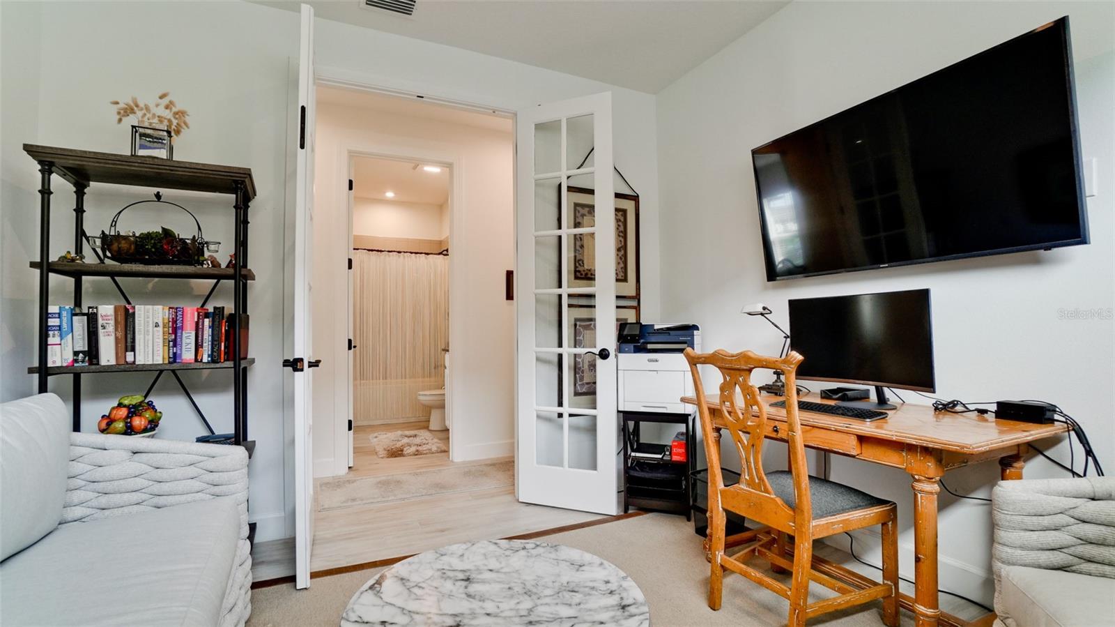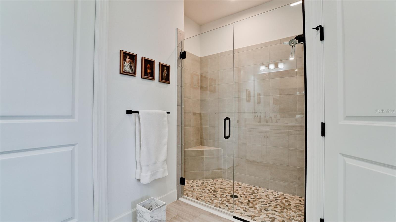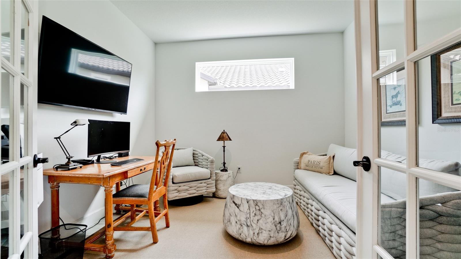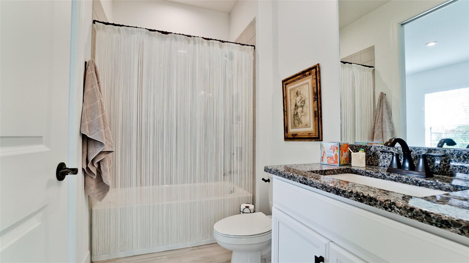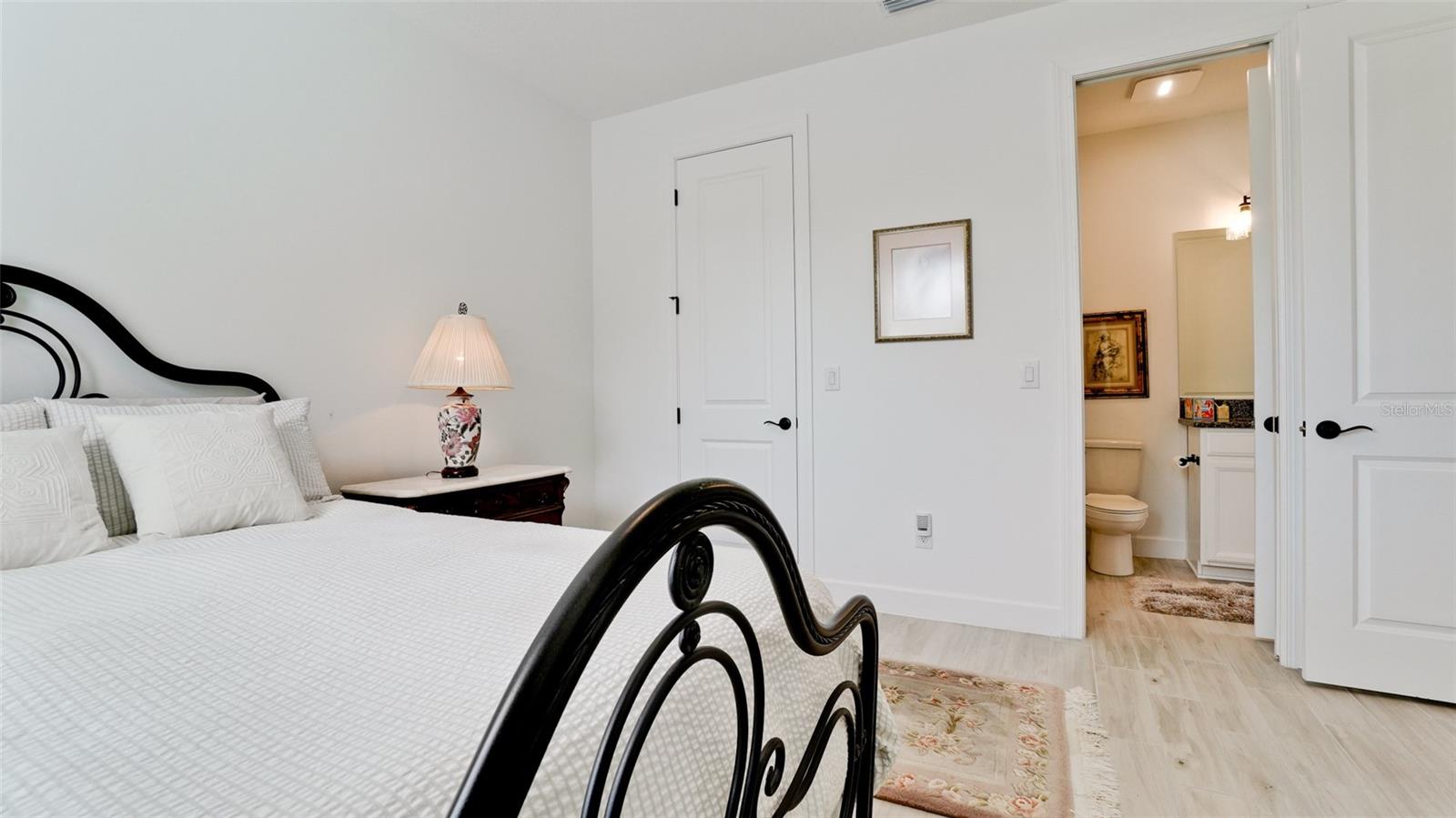 Single family villa w/ water views, on a cul-de-sac, DEEDED GOLF. Front door is iron inlay. 10’ ceilings and 8’ doors, open concept living with tray ceiling package. Three panel glass sliders appointed with privacy shades leads to the enclosed lanai prepped for an outdoor kitchen. Ceramic plank floors throughout. Upgraded SS GE Café appliances, microwave with convection option, center griddle gas range. Quartz counters are complemented with glass stacked tile backsplash and under cabinet lighting. Primary suite w bay providing additional square footage The ensuite with double sinks and center vanity triple upgrade includes frameless glass shower and pebble stone shower floor. This floorplan offers the guest bedroom with second bath access on the opposite side of the home. Walk in closets. French doors lead to the study/flex room. Also, this hallway leads to the 2-car garage and laundry/mud room fully equipped with like new washer and dryer. Exterior upgrades include epoxy 2 car garage floor, radiant barrier in attic, professional landscaping, and cement barrel tile roof. Upgrades: bronze designer finishes, fixtures and lighting, blinds throughout. Amenities: Resort Heated Pool & Spa, Bahama Grille/Bar, 18-Hole Golf Course, Driving Range, Lighted Pickle Ball and Tennis Courts, Bocce Courts, Activity Center w/ Fitness Center, Luxurious Wellness Center, Hair Salon, Coffee Café, 15,000 square foot Culinary Center with fine dining and Italian eatery w pizza station.