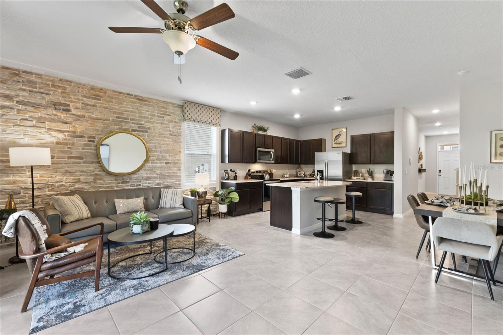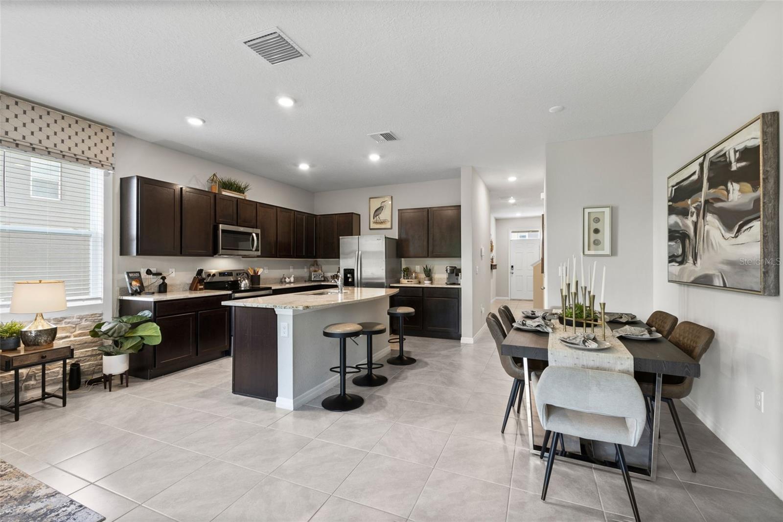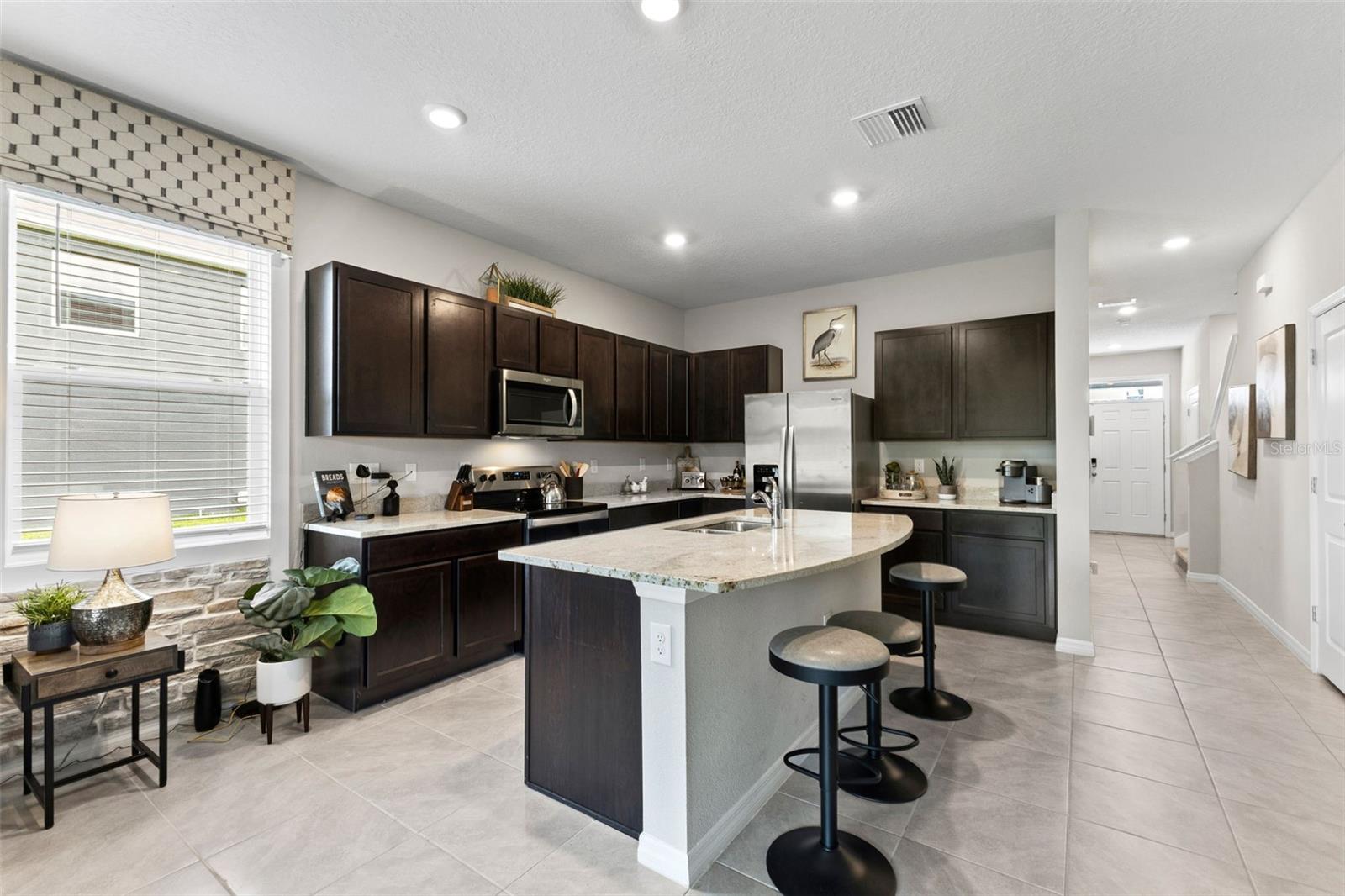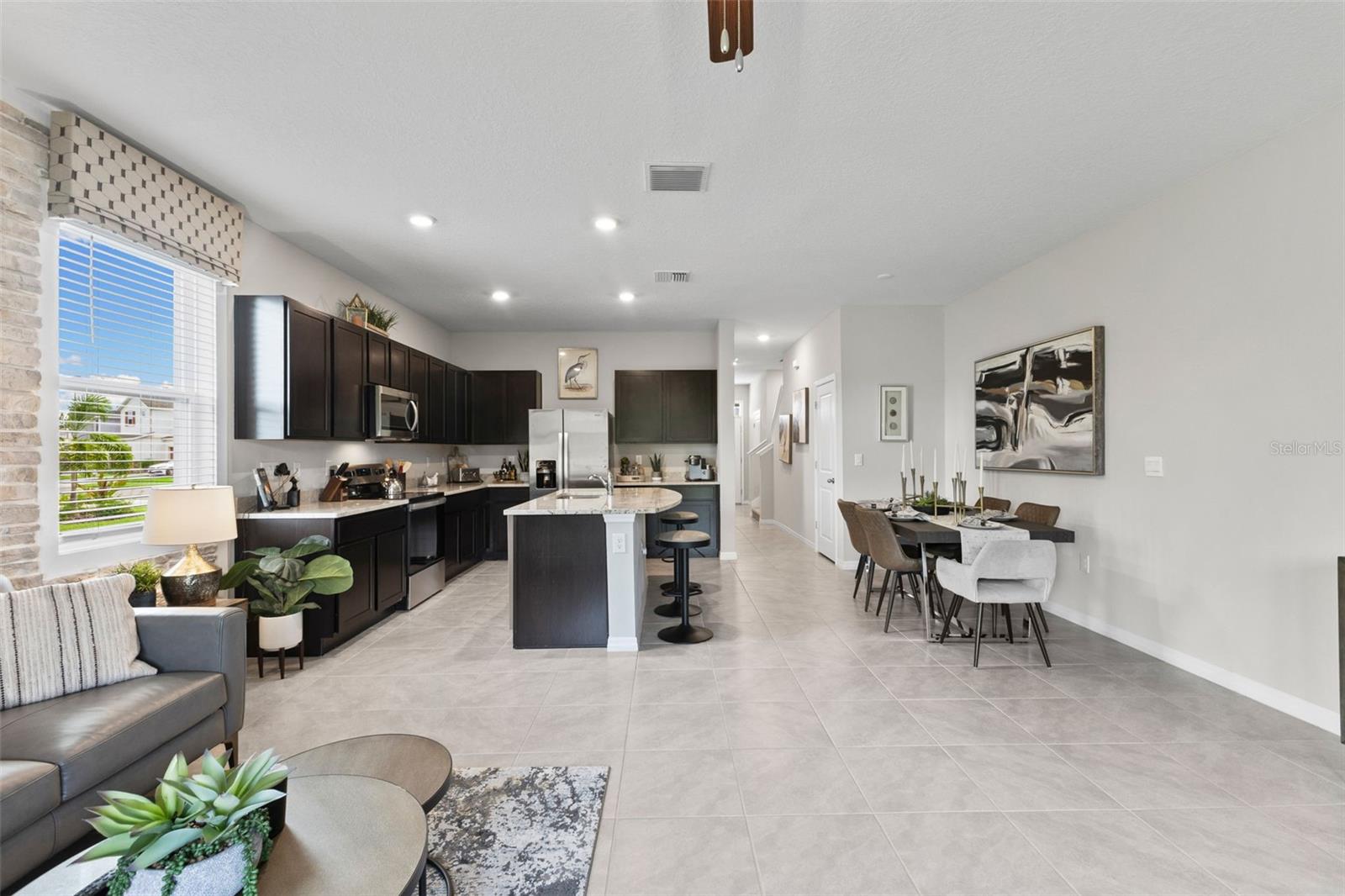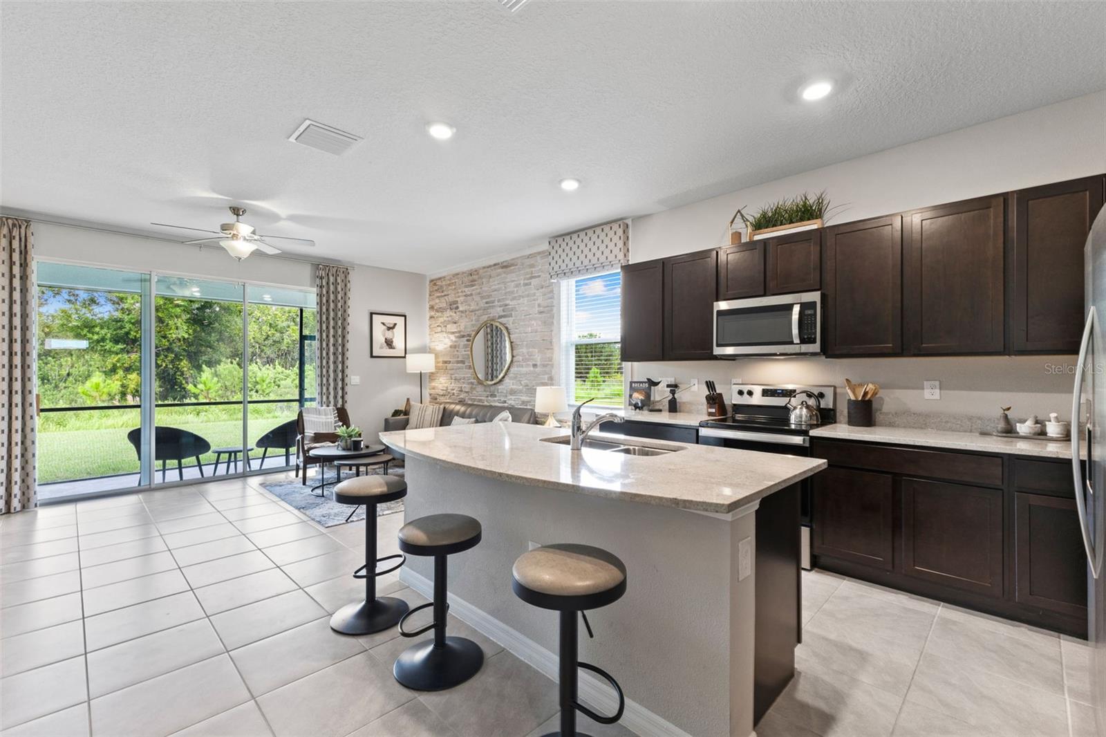 Welcome to your dream home, nestled in the vibrant Woodleaf Hammock community in North Lakewood Ranch. This stunning 3-bedroom, 3-bathroom fully furnished former model townhouse offers 1,758 sq. ft. of modern living space, seamlessly blending contemporary design with comfort and convenience. As you step inside, you’ll be greeted by an open-concept main floor that exudes warmth and sophistication. The large family room is perfect for both relaxing and entertaining, while the modern kitchen, equipped with stainless steel appliances and granite countertops, invites culinary creativity. Adjacent to the kitchen, a cozy dining area provides the ideal setting for family meals and gatherings. Upstairs, the home continues to impress with three bedrooms and a loft. The master suite is a true sanctuary, featuring a private bathroom and two walk-in closets, ensuring ample storage and a touch of luxury. The additional bedrooms are equally inviting, providing comfort and flexibility for family members or guests. One of the highlights of this home is the outdoor living space. The covered lanai is perfect for enjoying Florida’s beautiful weather. The conservation behind the home offers a serene escape. Convenience is key in this thoughtfully designed home. A dedicated laundry space, complete with a washer and dryer, adds to the ease of daily living. The one-car garage provides secure parking and additional storage space. As a resident of Woodleaf Hammock, you’ll have access to a range of community amenities, including a cabana and pool, bbq, pickleball courts, dog park, and tot lot, enhancing your lifestyle and offering opportunities for relaxation and socializing.This home comes fully furnished, allowing you to move in and start enjoying your new space immediately. Every room is tastefully decorated, providing a cohesive and stylish living environment. Additionally, the home is equipped with a Smart Home Automation System. offering features such as a smart thermostat, smart door lock, video door bell, and an IQ4 panel to control everything in one place. Easily add smart switches, enhancing your home automation with the plug and play Deako switches throughout the home. Location is everything, and this home delivers. Situated near top-rated schools, shopping centers, and dining options. Plus, with quick access to I75, you’ll be perfectly positioned to enjoy all that this vibrant area has. Experience the perfect blend of luxury and convenience in this beautiful, fully furnished townhouse. Schedule a viewing today and make Woodleaf Hammock your new home!