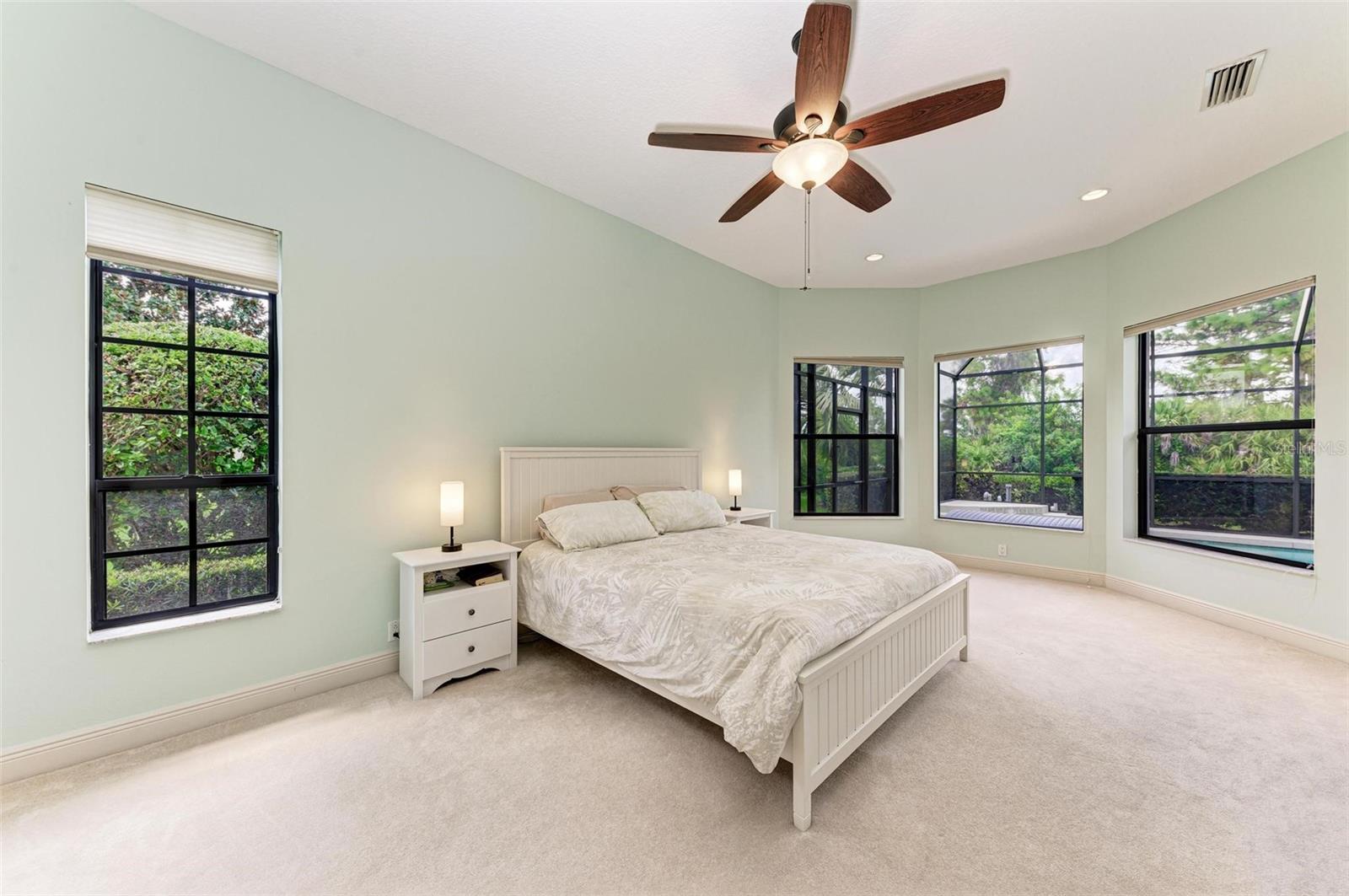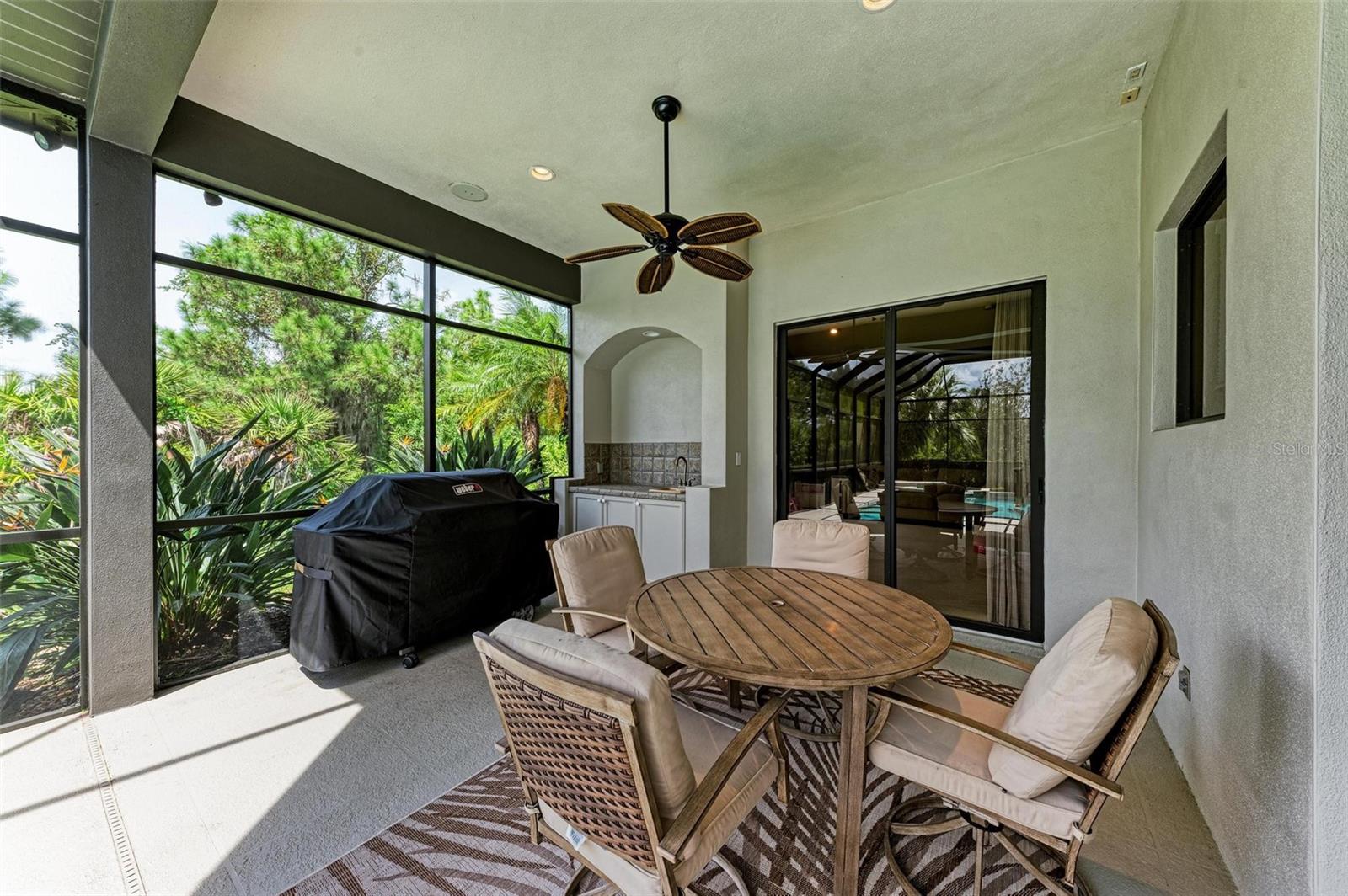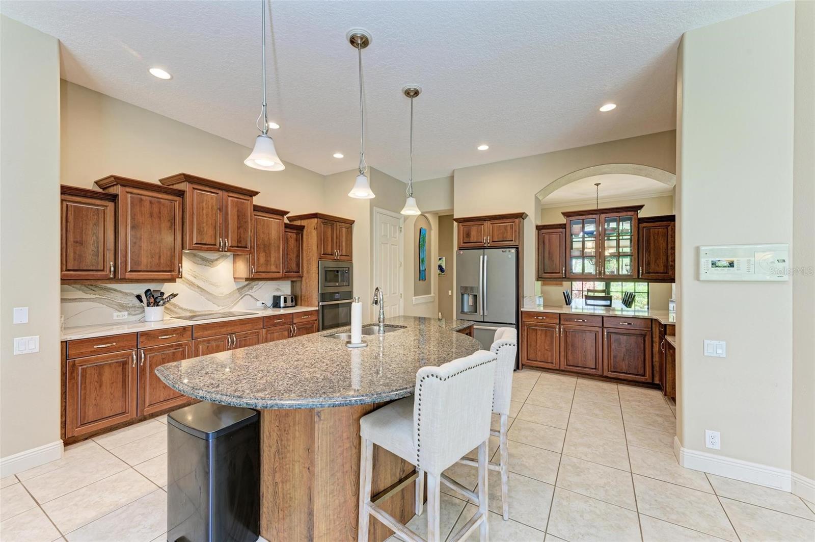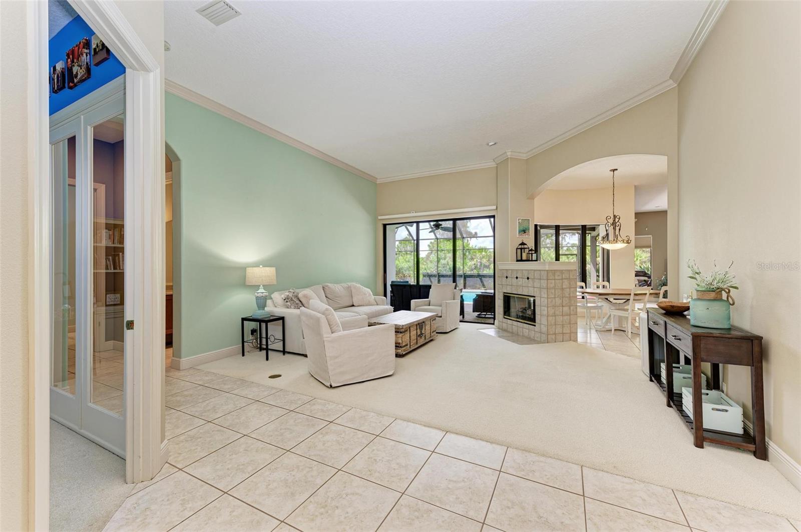 This stunning custom home in the Preserve at Panther Ridge is situated on a 1.8-acre lot, offering a high level of privacy with a water view in the front, a large pond in the back, and natural vegetation that enhances the seclusion of the property. The home features high ceilings throughout. The bright dining room has large windows, and the living room is adorned with large sliders and a gas fireplace. The kitchen, which shares one side of the fireplace, is spacious and open, with upgraded quartz countertops and backsplash. The center island provides plenty of space for bar seating, and the appliances are all dark stainless steel. The kitchen eating area boasts a large aquarium window. The family room offers stunning views of the beautiful pool. Additionally, the home includes a large bonus room, and the office features floor-to-ceiling glass walls. The property includes a spacious primary bedroom with two walk-in closets, large sliders leading into the pool area, and large windows. The primary bathroom is a true retreat with a garden tub, walk-in shower, two sinks, and a central seating area. Three additional bedrooms and two full bathrooms are located on the other side of the home, creating a split-plan layout. The home has a three car garage with epoxy flooring and built in storage shelving. There are two large covered seating areas surrounding the pool area which is great for entertaining or just relaxing outside. The pool is a tranquil retreat with a large spa and total privacy. Additionally, there is a full bathroom that leads out to the pool for easy access when you are outside. All the lanai screens are new. UPCOMING, SCHEDULED NEW ROOF SCHEDULED. Added features, installed new A/C unit 2024, new water treatment system (2024), including a new softener, sulfur filter, pressure tank, pump, and sub-drive. The Preserve at Panther Ridge community offers 15 miles of nature trails, park, playground, tennis court, and basketball court. The neighborhood provides a quiet and luxurious lifestyle but is only minutes away from shopping, restaurants, A-rated schools, and the famous Southwest Florida beaches.