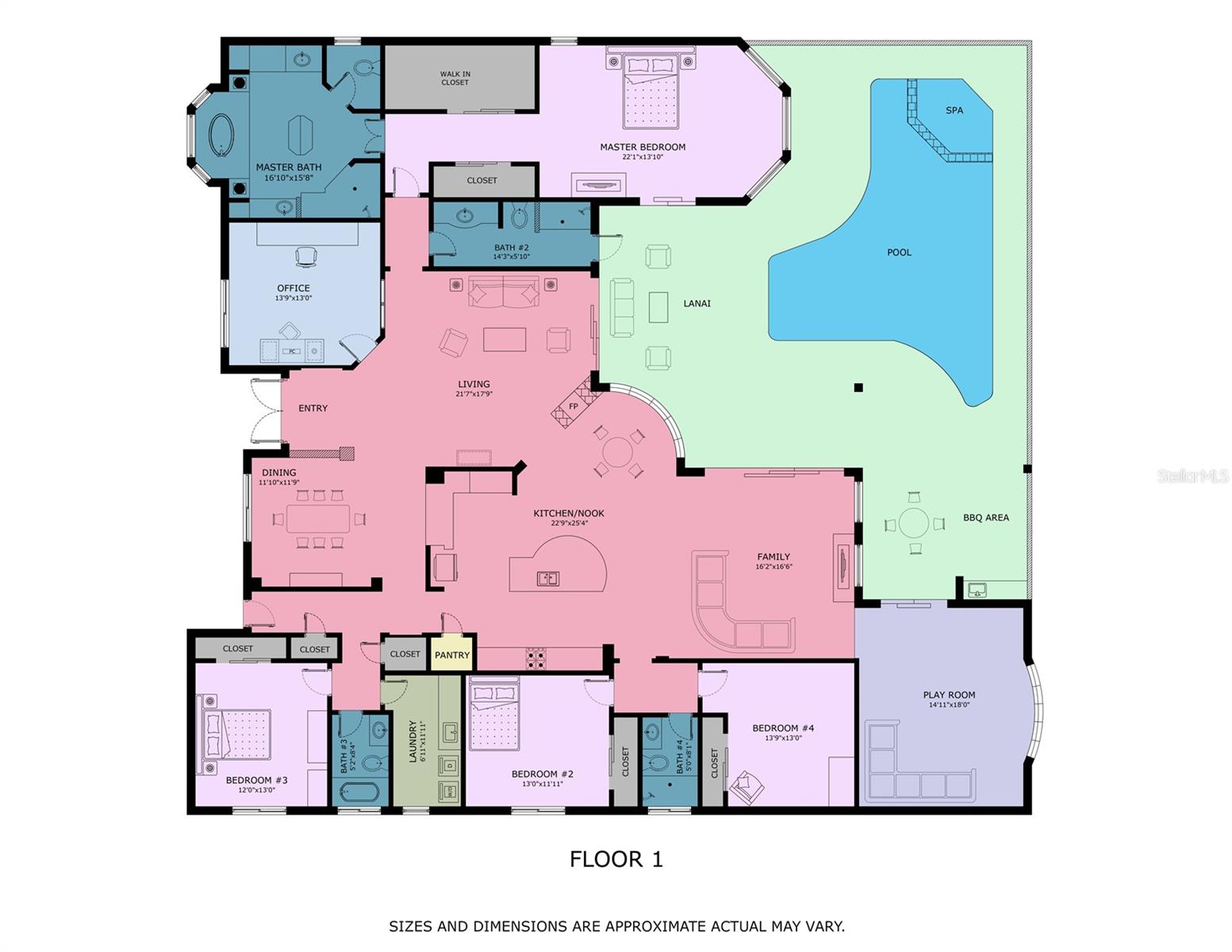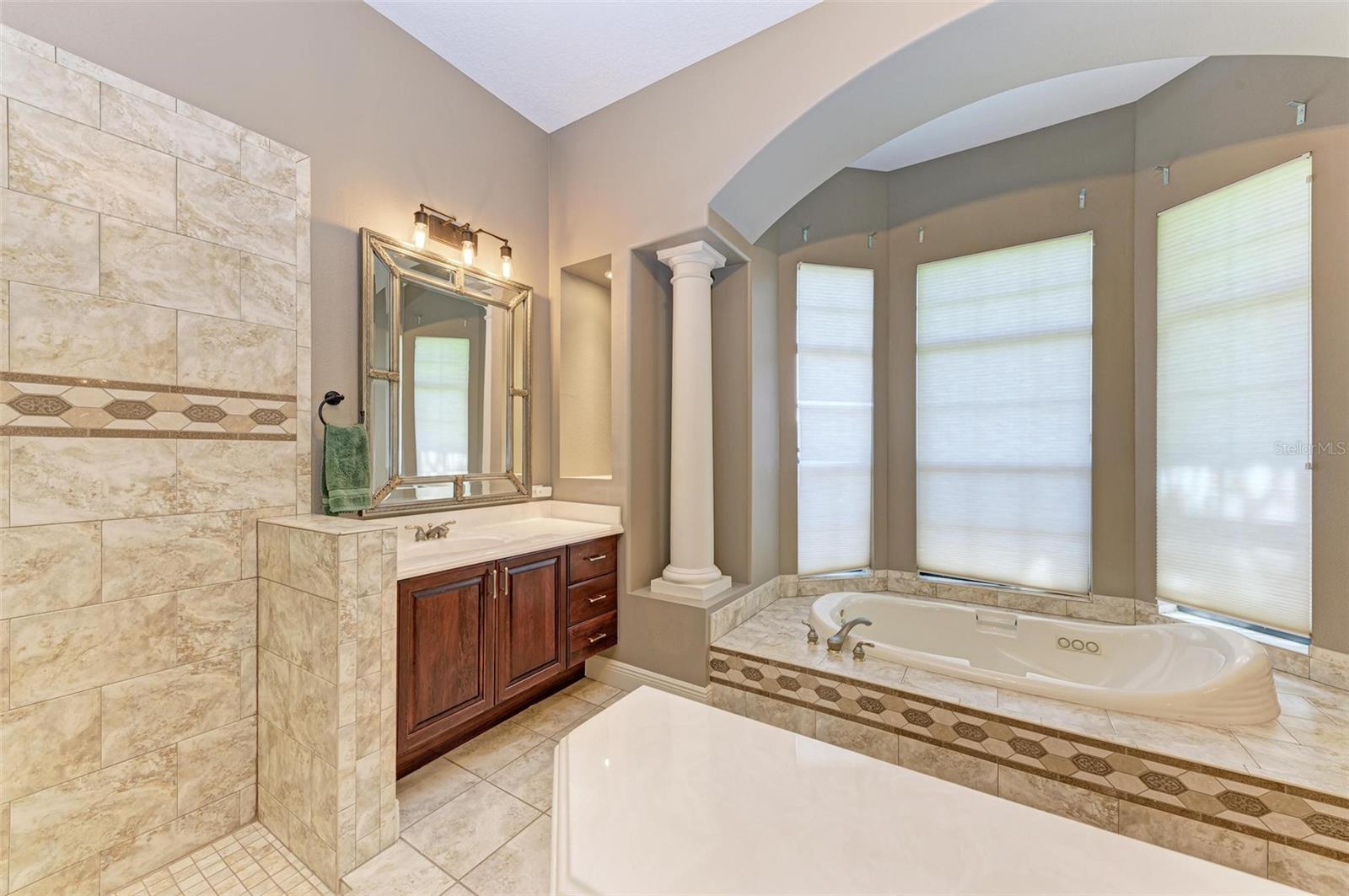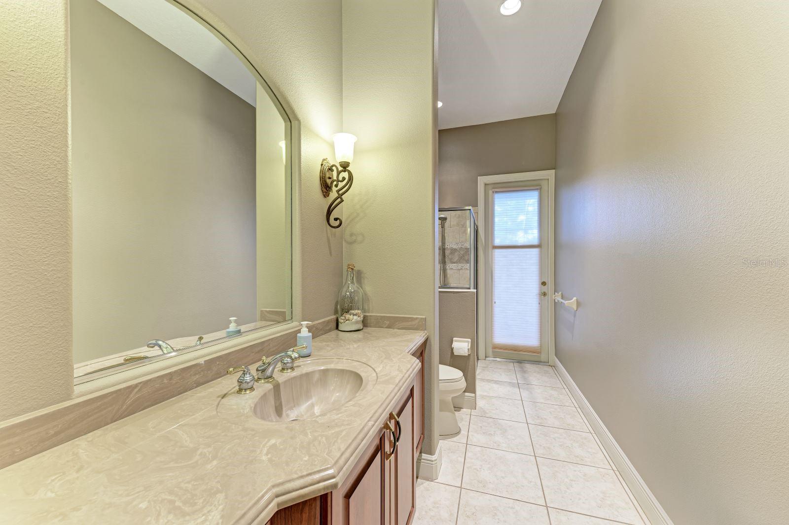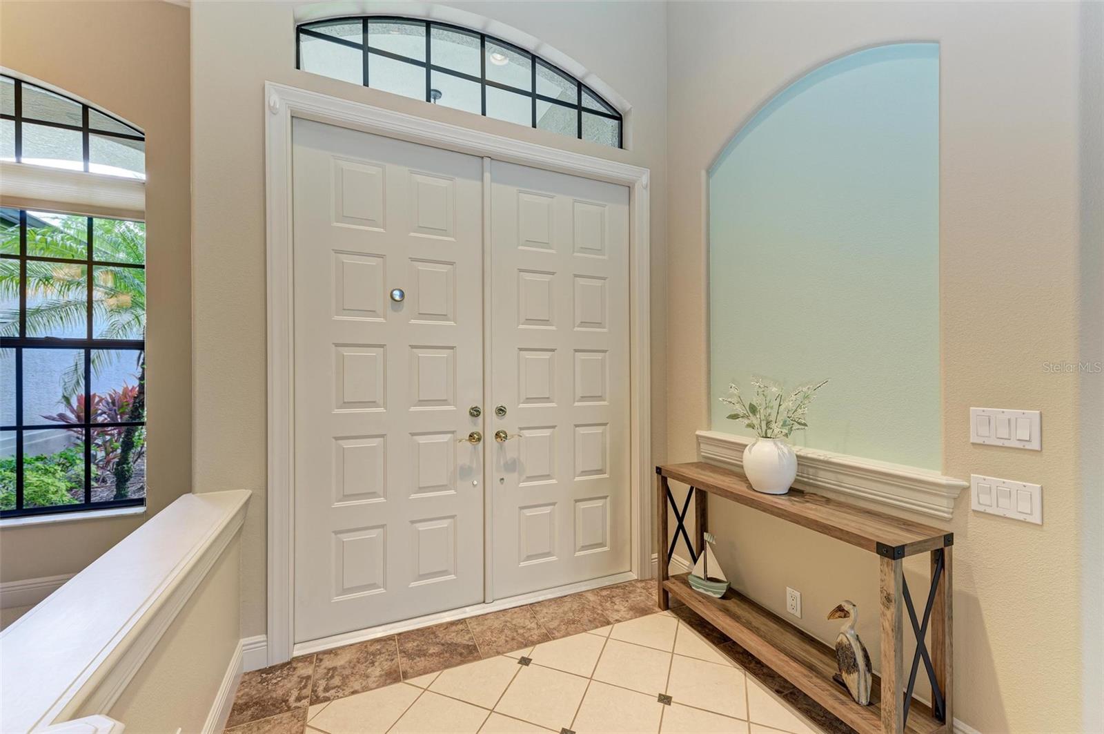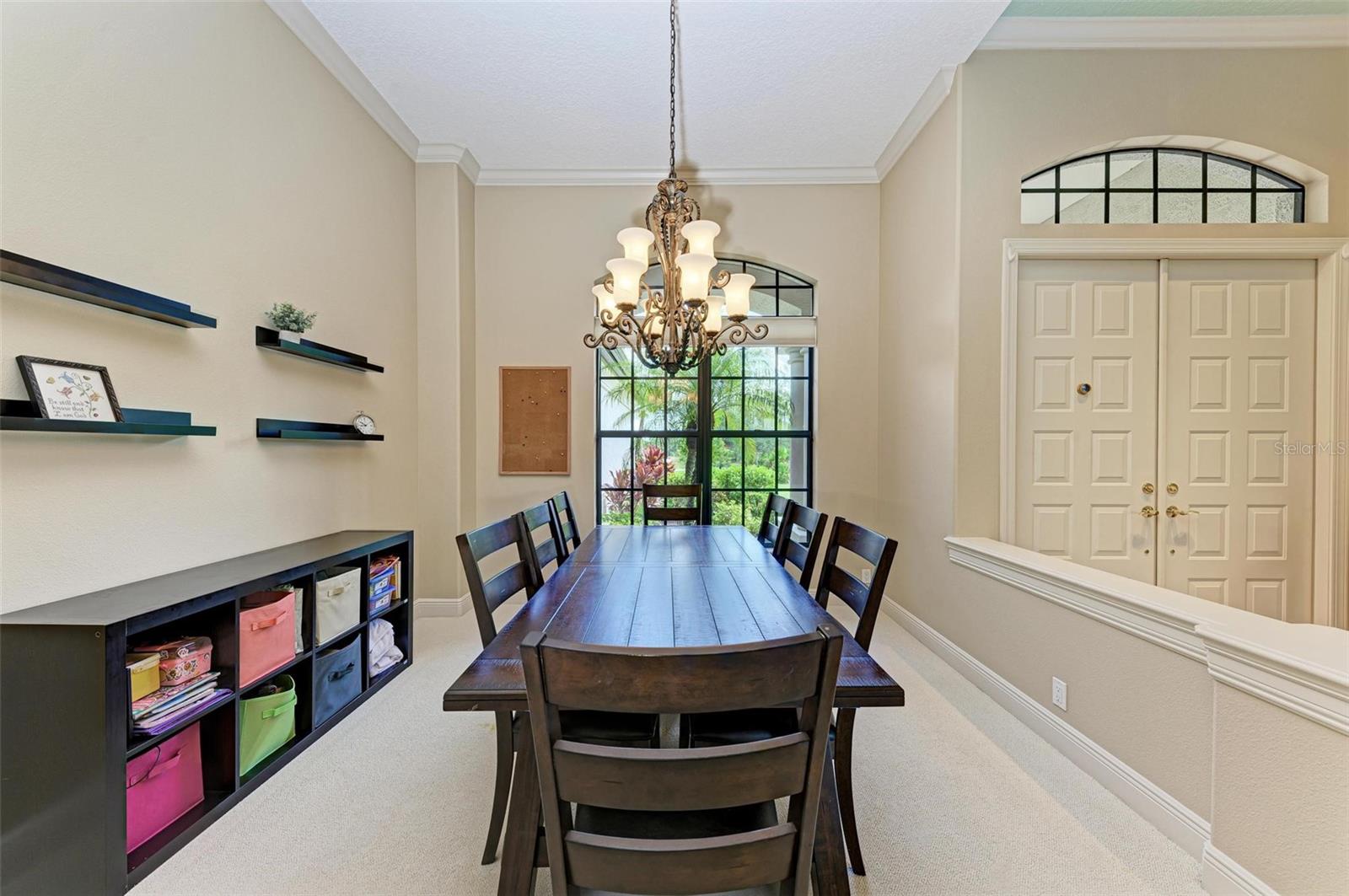 This stunning custom home in the Preserve at Panther Ridge is situated on a 1.8-acre lot, offering a high level of privacy with a water view in the front, a large pond in the back, and natural vegetation that enhances the seclusion of the property. The home features high ceilings throughout. The bright dining room has large windows, and the living room is adorned with large sliders and a gas fireplace. The kitchen, which shares one side of the fireplace, is spacious and open, with upgraded quartz countertops and backsplash. The center island provides plenty of space for bar seating, and the appliances are all dark stainless steel. The kitchen eating area boasts a large aquarium window. The family room offers stunning views of the beautiful pool. Additionally, the home includes a large bonus room, and the office features floor-to-ceiling glass walls. The property includes a spacious primary bedroom with two walk-in closets, large sliders leading into the pool area, and large windows. The primary bathroom is a true retreat with a garden tub, walk-in shower, two sinks, and a central seating area. Three additional bedrooms and two full bathrooms are located on the other side of the home, creating a split-plan layout. The home has a three car garage with epoxy flooring and built in storage shelving. There are two large covered seating areas surrounding the pool area which is great for entertaining or just relaxing outside. The pool is a tranquil retreat with a large spa and total privacy. Additionally, there is a full bathroom that leads out to the pool for easy access when you are outside. All the lanai screens are new. UPCOMING, SCHEDULED NEW ROOF SCHEDULED. Added features, installed new A/C unit 2024, new water treatment system (2024), including a new softener, sulfur filter, pressure tank, pump, and sub-drive. The Preserve at Panther Ridge community offers 15 miles of nature trails, park, playground, tennis court, and basketball court. The neighborhood provides a quiet and luxurious lifestyle but is only minutes away from shopping, restaurants, A-rated schools, and the famous Southwest Florida beaches.