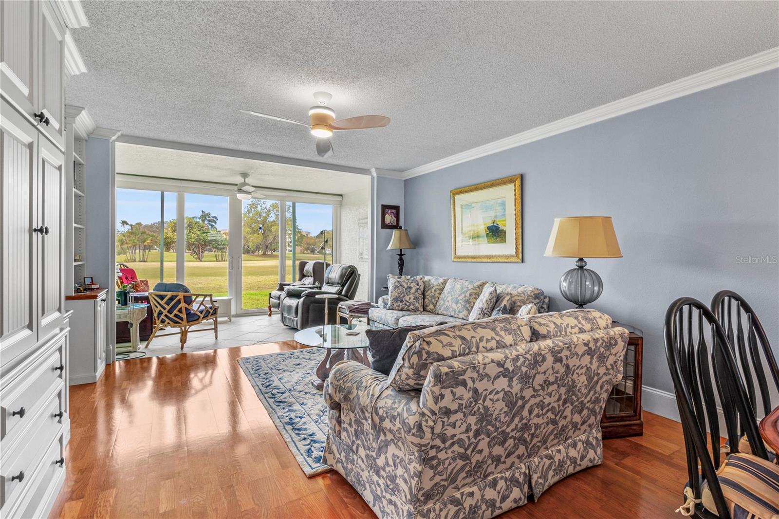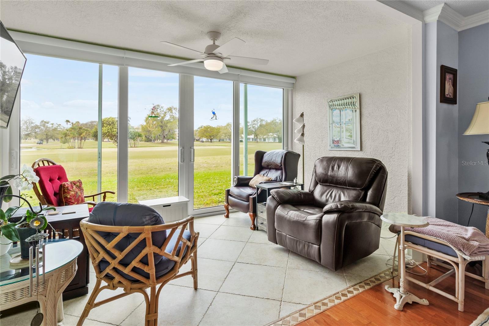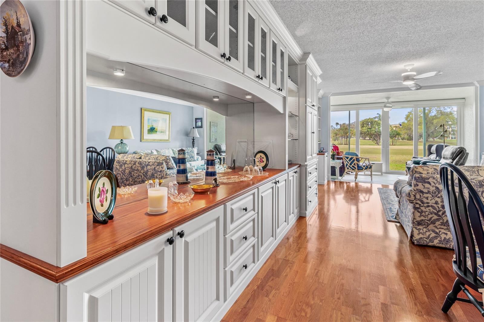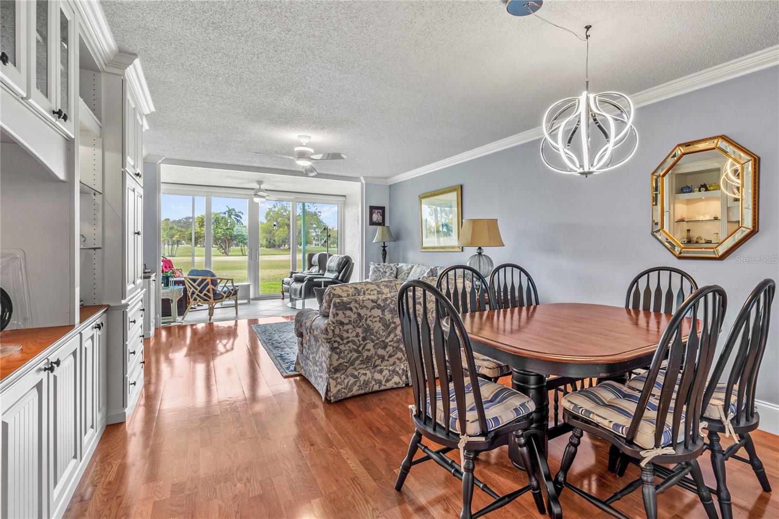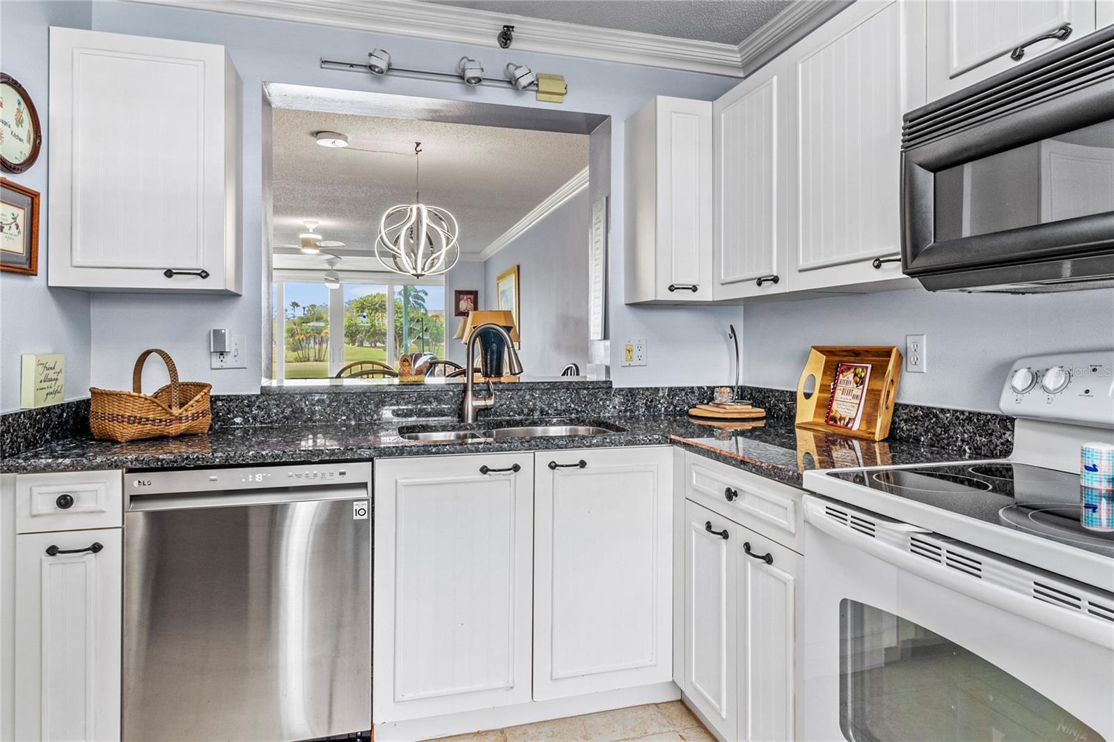 This stunning ground floor unit at The Links at Pinebrook boasts breathtaking views of the Pinebrook Ironwood golf course and a tranquil pond, creating the perfect setting for unwinding. Enter this beautifully updated two-bedroom, two-bathroom condo, where large windows allow natural light to flood the interior. As a resident, you will benefit from the "pay as you play" golf option, with the course right outside your door, and the clubhouse and heated pool just a short walk away, along with spa and fitness amenities. The unit features elegant upgrades such as crown molding, luxury vinyl, and tile flooring throughout. The dining area is enhanced by a built-in hutch, combining practicality with style, while plantation shutters add a touch of sophistication to the windows. Additionally, a utility room equipped with a washer and dryer enhances the home's functionality, offering convenience at your fingertips.