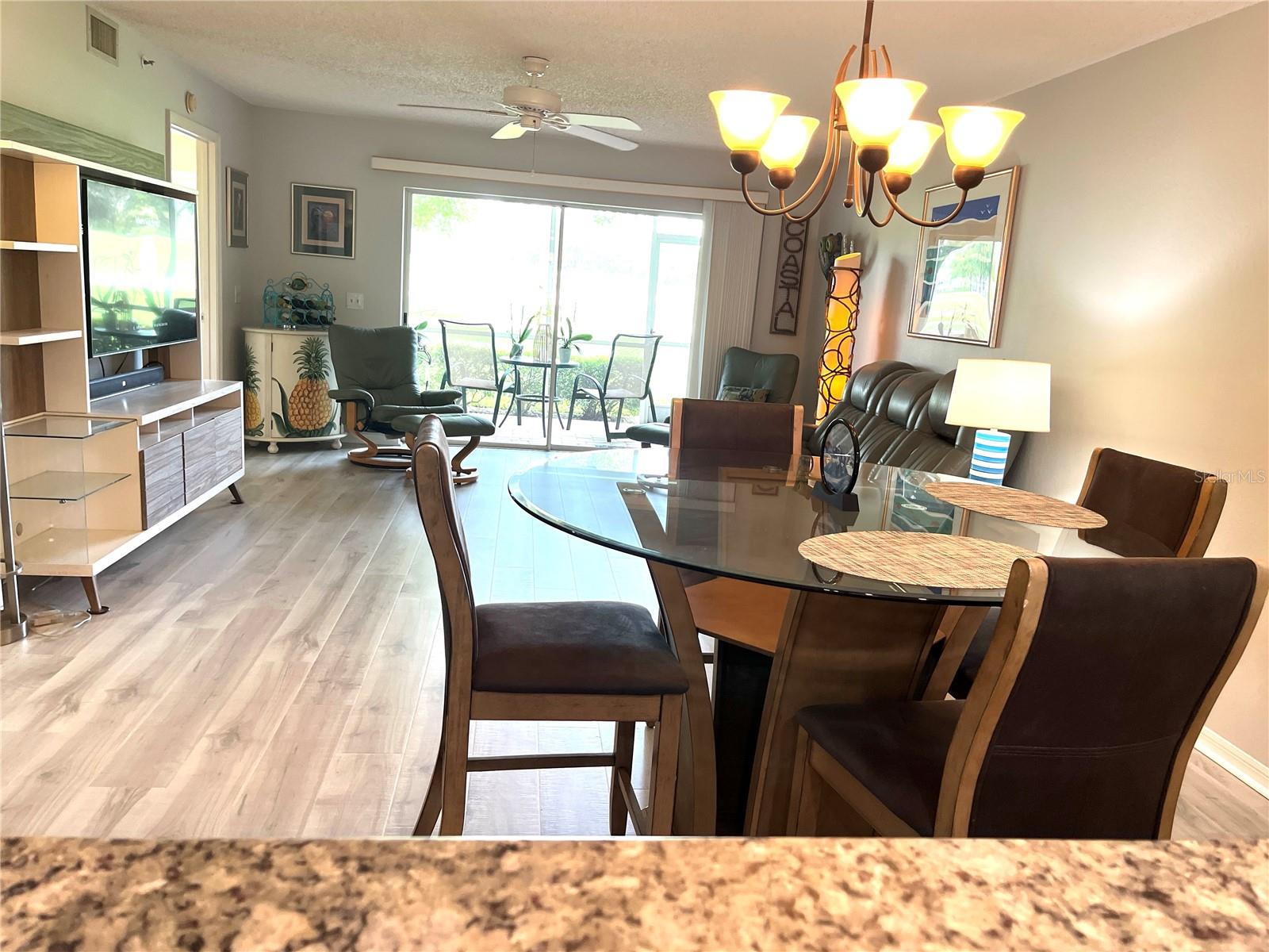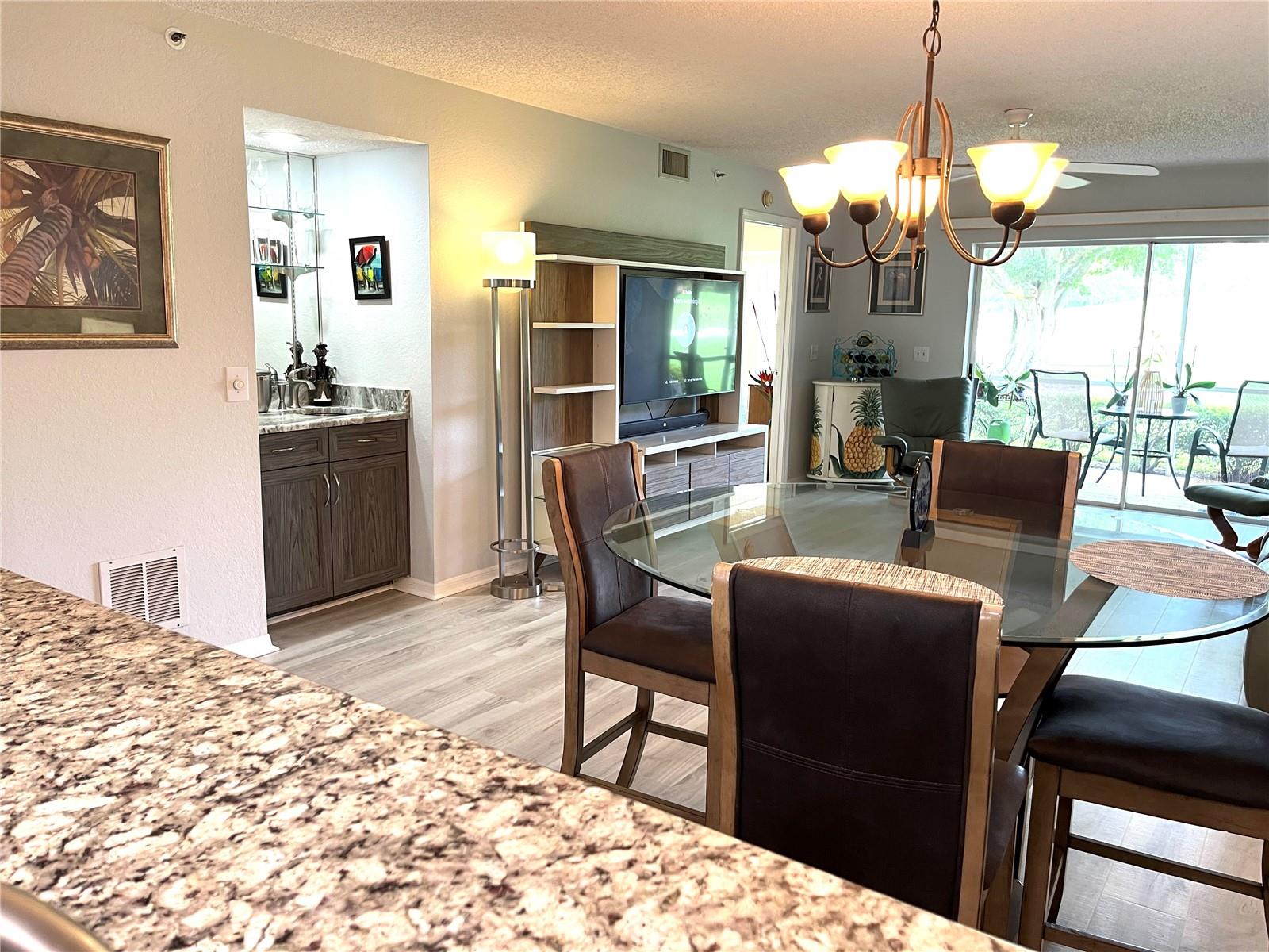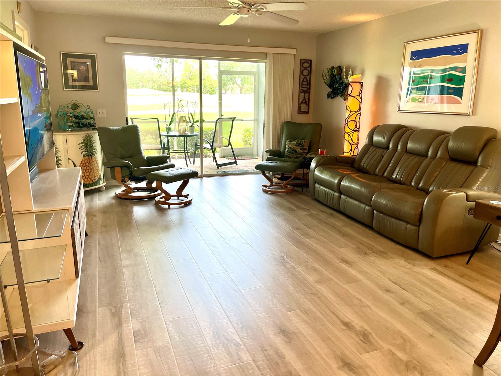 Meticulously maintained and updated, this pristine 1st floor, 2 bedroom, 2 bath, 1 car garage condo is located on the 6th green at Tara Golf & C.C. Spacious living with new luxury vinyl flooring throughout, Open floor plan, Granite countertops kitchen and bathrooms, stainless steel appliances, newer cabinetry, wet bar in great room, new hot water heater and this unit has a front and back enclosed lanai's that both have brick paved flooring. New screens on all windows, phenomenal golf course views and total maintenance free living for a quarterly fee of $1816 which includes water, sewer and trash. This beautiful spacious condo includes a Class "A" equity golf membership to Tara Golf & C.C. Amenities include a championship 18-hole golf course, exercise facility with state-of-the-art equipment, lap pool with hot tub and a Concession stand to enjoy a drink or food after a day at the pool or on the golf course. Har-tru tennis courts, Clubhouse with fine dining and grill room, Bocce ball, pickle ball, putting green, driving range, pro-shop and a very active social membership. Mandatory membership fees of $526 monthly affiliated with the Class A which includes greens fee and $60 mth food minimum at the Clubhouse. Annual fee of $1094 to Tara Master Association which includes Comcast Cable TV with voice activated remotes, HBO, ESPN, music, expansive channels and high-speed internet. One Time Capital Contribution fee of $5000 for new members payable at closing. Tara is centrally located with easy access to I-75, shopping, dining, a short drive to Sarasota/Bradenton International Airport, UTC Mall, Ringling Museum, St Armand's Circle and some of Southwestern Florida's most beautiful beaches including Siesta Key Beach which has been voted #1 many times. You can buy a home anywhere, but you can't buy a lifestyle. Come enjoy Tara's Country Club living at its best.