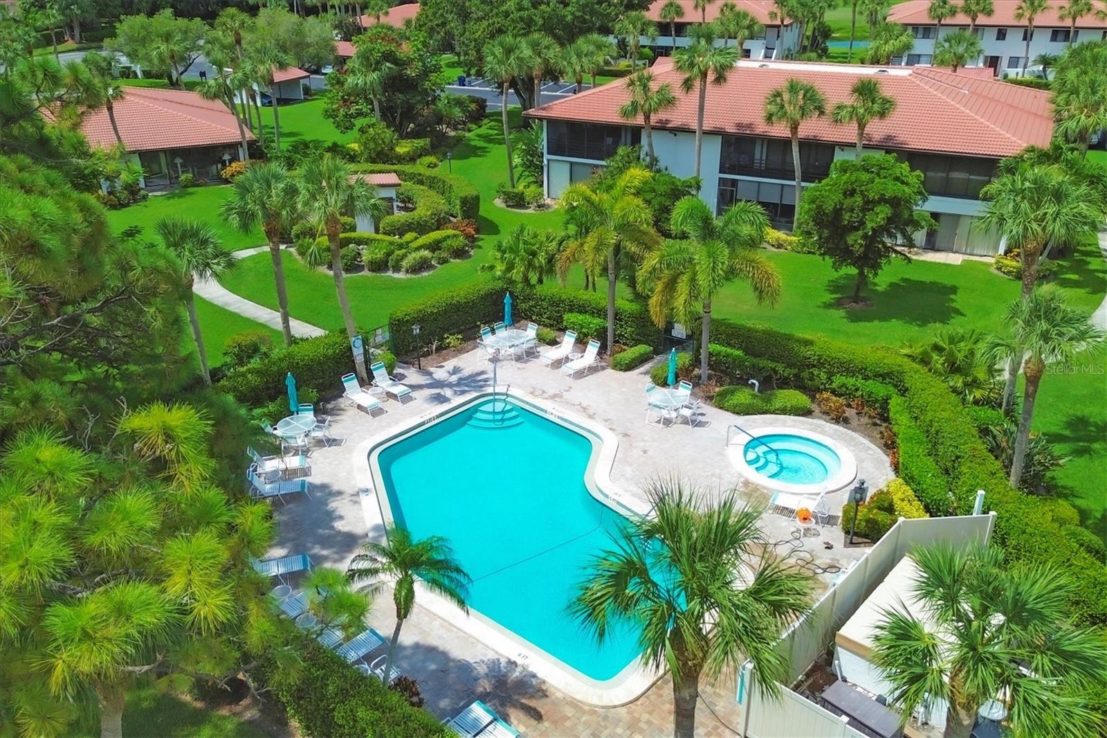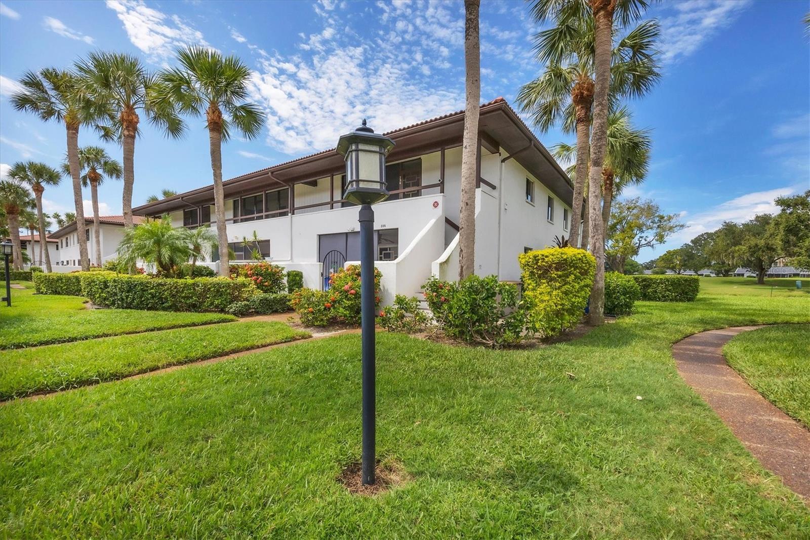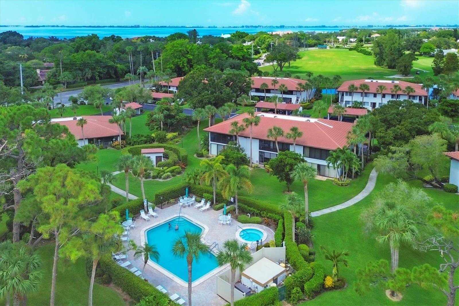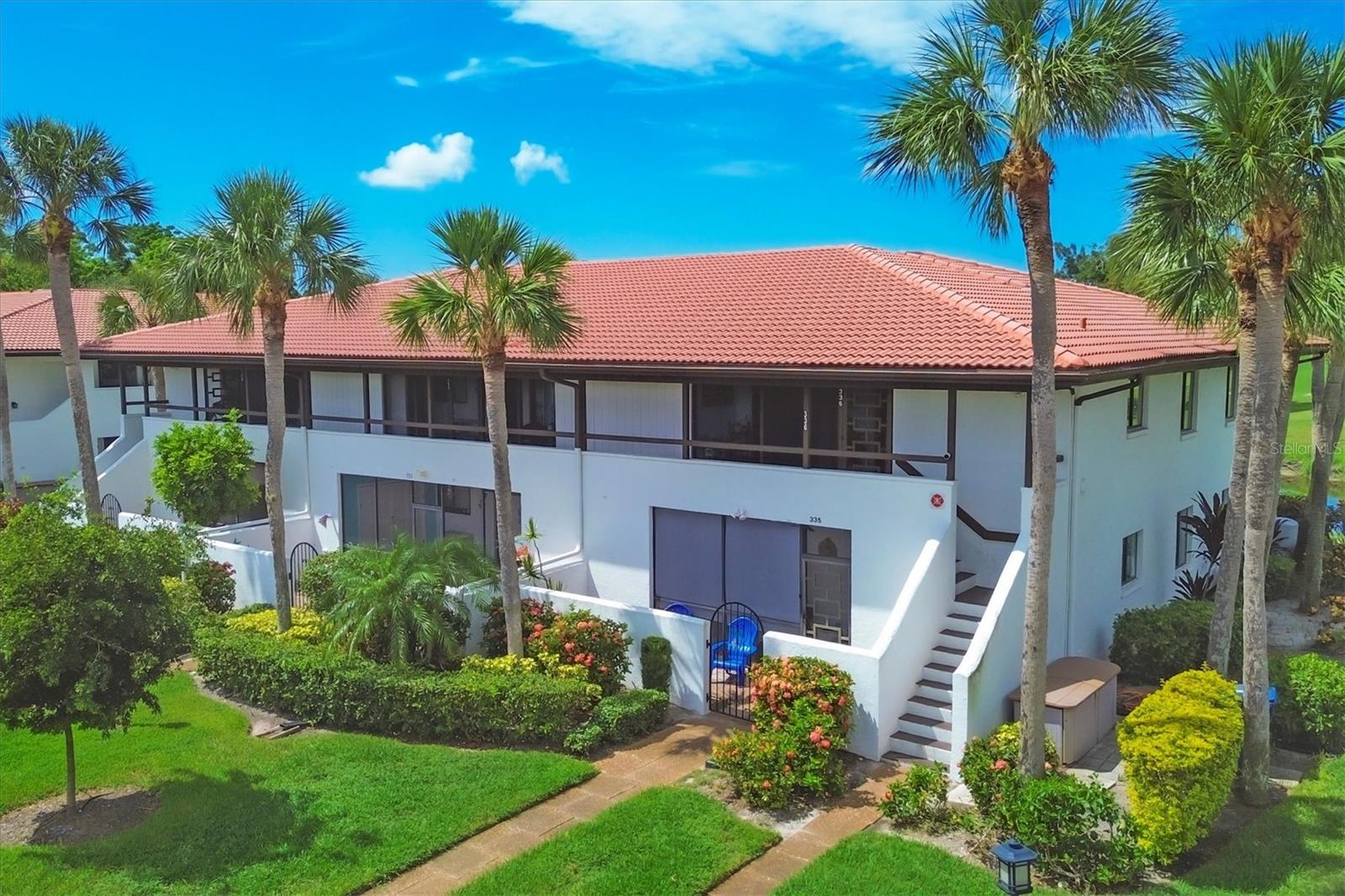 Discover the best-priced two-bedroom, two-bath condominium in Valencia! This top-floor corner unit offers expansive views and abundant natural light, with beautiful vistas of Hole 1 on the IMG Golf Course. Enjoy privacy and serenity, along with a refreshing breeze on your private lanai. Inside, the condominium features a modern light gray palette, quartz countertops, subway tile backsplash, and stylish mahogany plank flooring. The kitchen is equipped with stainless steel appliances and recessed ceiling lights. Each primary suite boasts direct access to its own updated bath with pedestal sinks and Travertine marble flooring. Residents can relax by the community pool and hydrotherapy spa, and enjoy nearby amenities including the IMG Country Club, which offers a restaurant with scenic views, and the United Tennis Academy. Plus, there are miles of sidewalks and a bike lane leading to Gulf beaches and excellent seafood in the historic Village of Cortez. Don't miss out on this fantastic opportunity!
