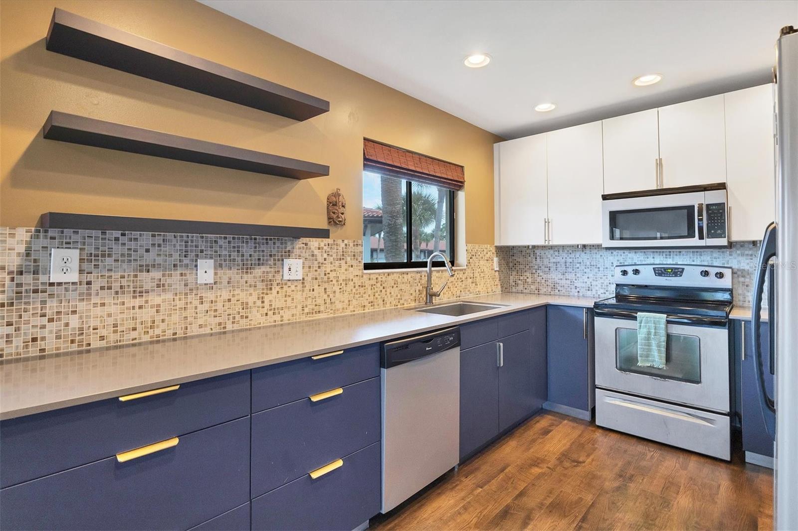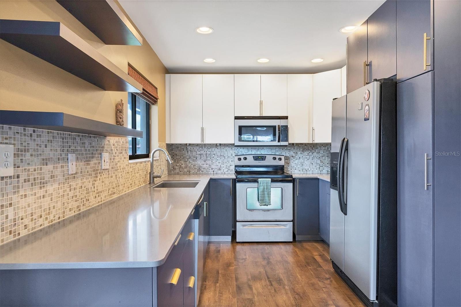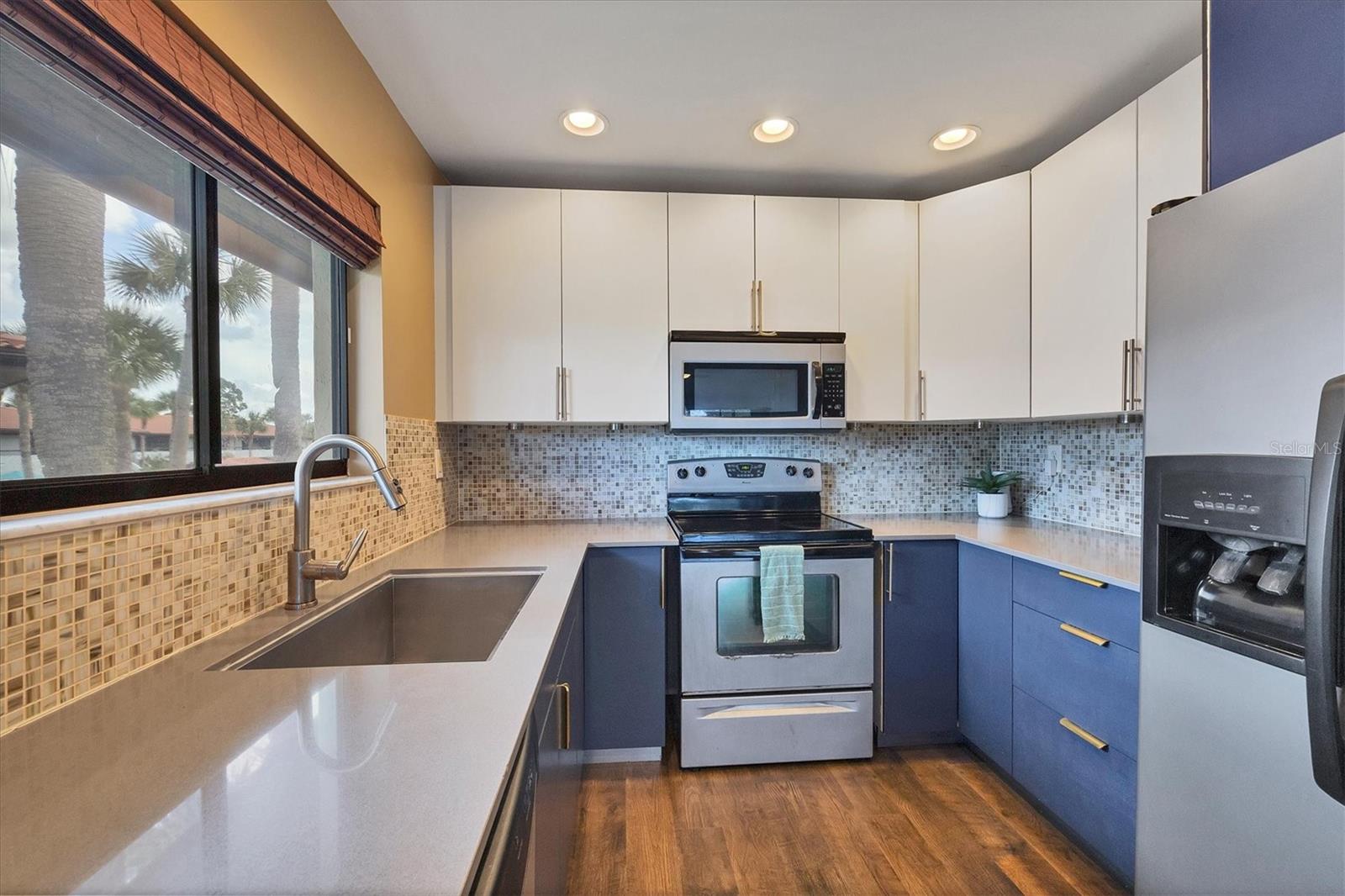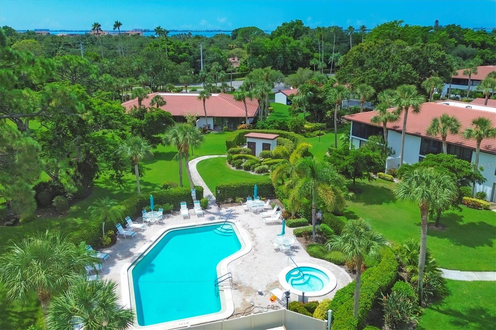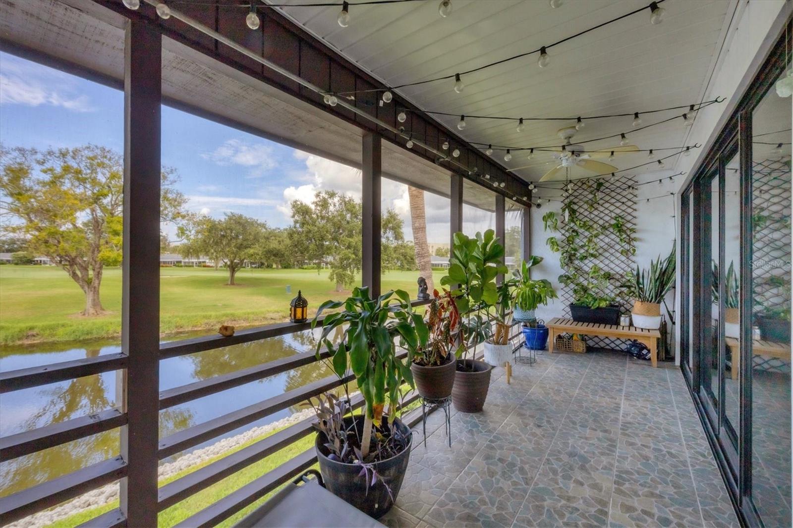 Discover the best-priced two-bedroom, two-bath condominium in Valencia! This top-floor corner unit offers expansive views and abundant natural light, with beautiful vistas of Hole 1 on the IMG Golf Course. Enjoy privacy and serenity, along with a refreshing breeze on your private lanai. Inside, the condominium features a modern light gray palette, quartz countertops, subway tile backsplash, and stylish mahogany plank flooring. The kitchen is equipped with stainless steel appliances and recessed ceiling lights. Each primary suite boasts direct access to its own updated bath with pedestal sinks and Travertine marble flooring. Residents can relax by the community pool and hydrotherapy spa, and enjoy nearby amenities including the IMG Country Club, which offers a restaurant with scenic views, and the United Tennis Academy. Plus, there are miles of sidewalks and a bike lane leading to Gulf beaches and excellent seafood in the historic Village of Cortez. Don't miss out on this fantastic opportunity!