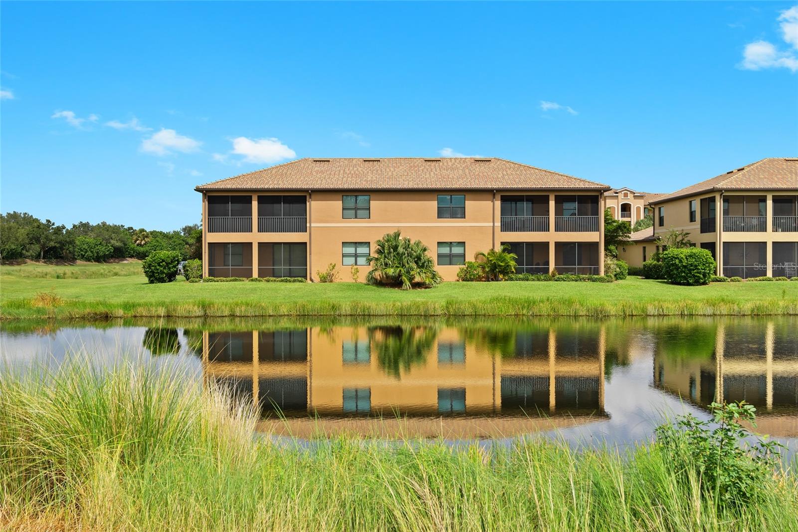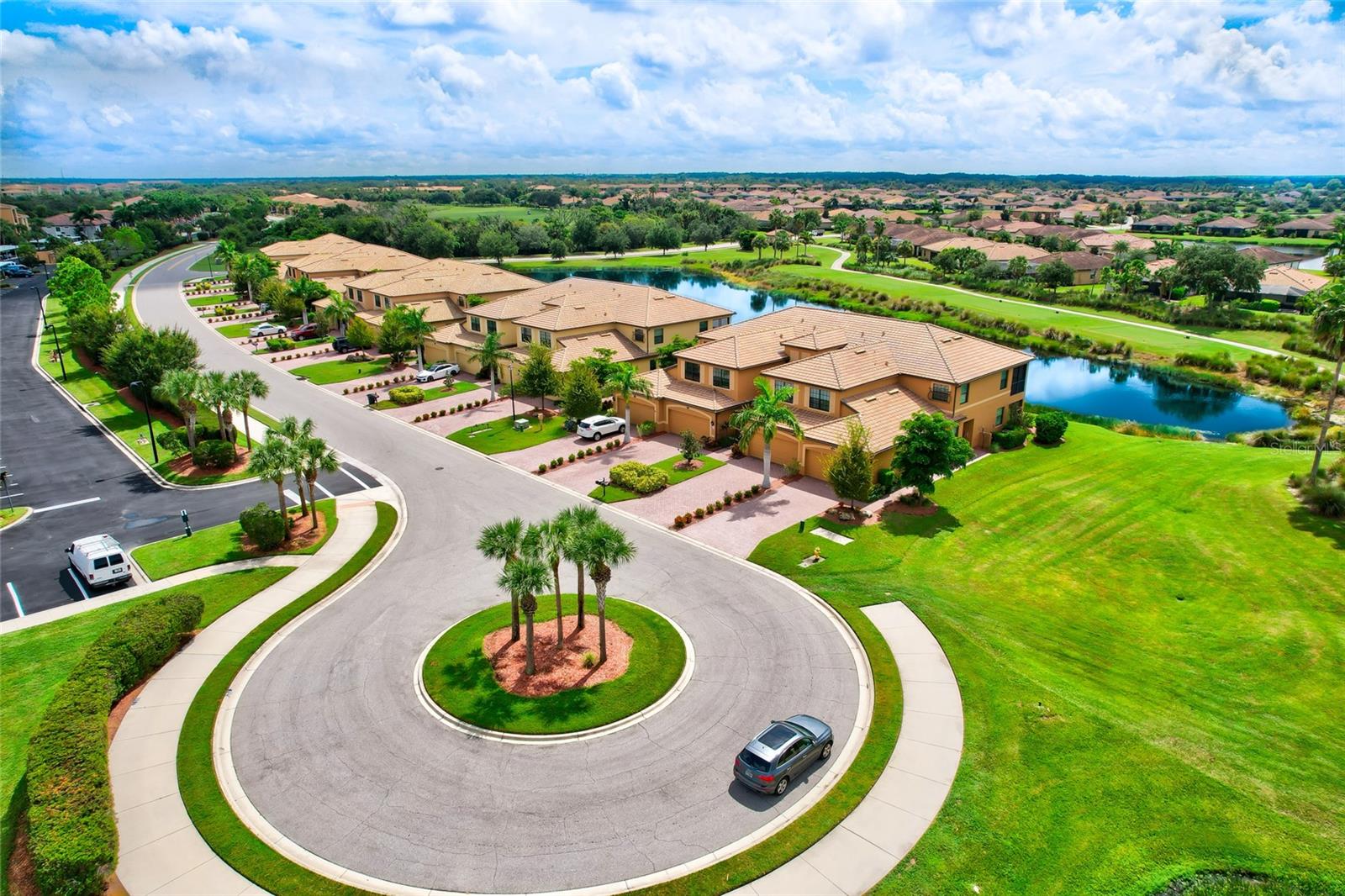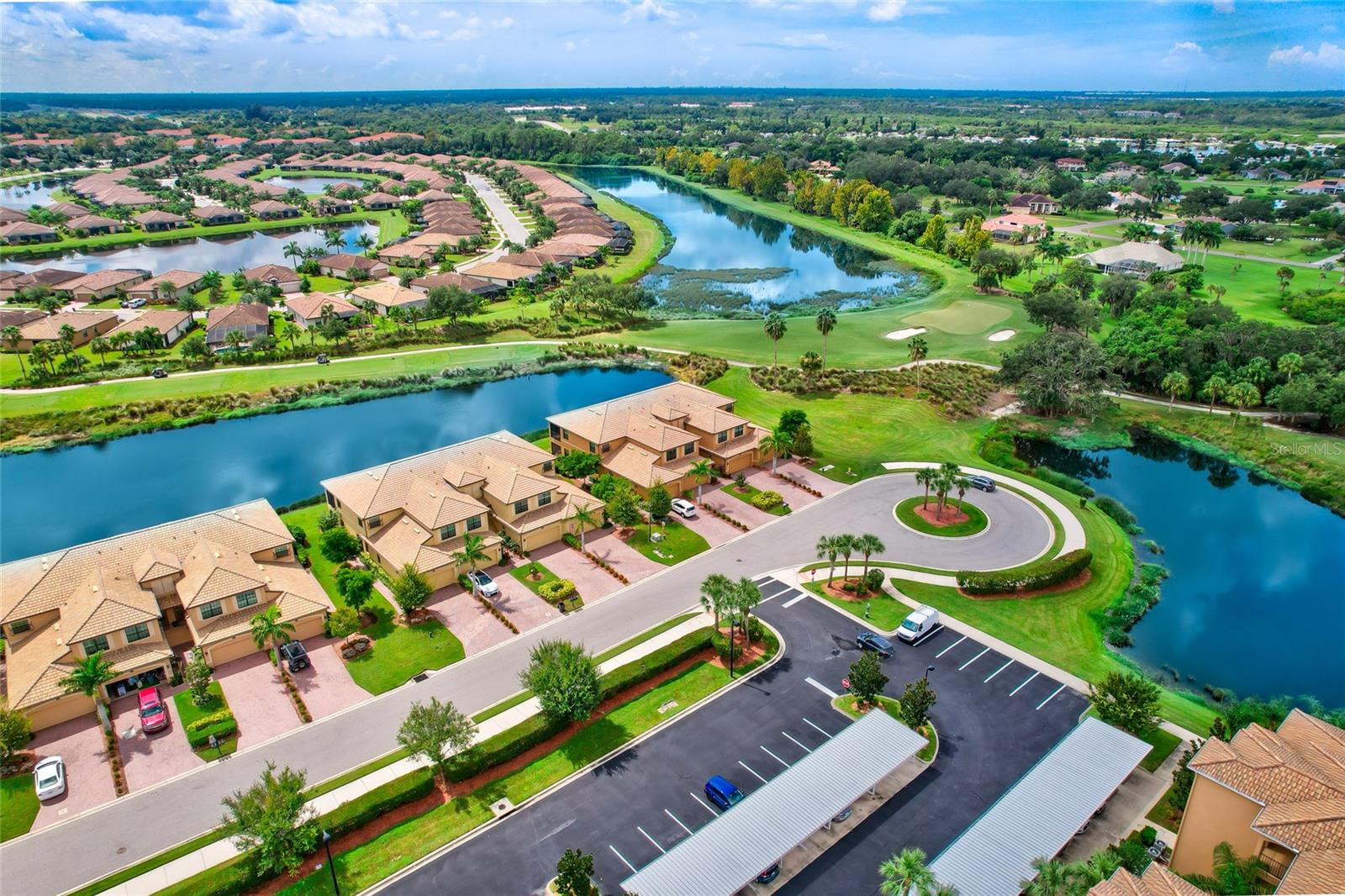 BEST $$ PER SQUARE FOOT IN THE COACH HOMES IN RIVER STRAND! Welcome to paradise in the highly regarded community of River Strand! This TOP FLOOR END UNIT 3 bedroom, 2 bath coach home comes complete with a social membership and access to a resort-style country club. The community is perfect for anyone looking to spend their days at a amazing clubhouse, playing pickleball, relaxing poolside, or enjoying the benefits of a rich social calendar. Golf is pay to play, when available. Located on a cul-de-sac with the privacy of landscaped preserves on one side of the coach home, this residence has one of the best homesites in the neighborhood! A gorgeous lake view is visible from your large 10 x 22' screened in and covered lanai. The lanai is the perfect spot for relaxation, al fresco dining, or gazing at a variety of wildlife too! Pride of Ownership is on full display in this home--even the grout lines shimmer! The fully equipped kitchen comes complete with ample cabinet space, a pantry, dining area, and an eat-in area. Designed on an open concept, this great room floorplan makes entertaining a breeze. The Owner's Retreat is both cozy and comfortable and offers a sliding door leading to the lanai, two walk-in closets, and an en-suite bath. The two guest bedrooms are located in a separate wing and provide privacy and comfort. The oversized garage is a fantastic feature too, especially if you need extra storage or want a golf cart to zip around the community. AVAILABLE FURNISHED under a separate agreement (Inquire for Details), this MAINTENANCE FREE condo just needs YOU! The amenities at River Strand include a Clubhouse with restaurant, a tiki bar with food and beverage service, nine Har-Tru tennis courts, EIGHT Pickleball courts, two fitness centers, two resort style pools, and 6 satellite pools. With the developing Heritage Harbour Marketplace, you will have access to a variety of shops and restaurants right around the corner. Close to I-75, everything is within reach...Lakewood Ranch, Sarasota and St. Petersburg too. What are your waiting for? Schedule your private showing today!