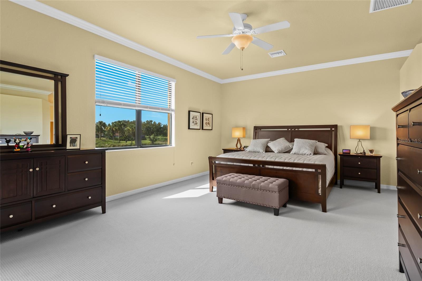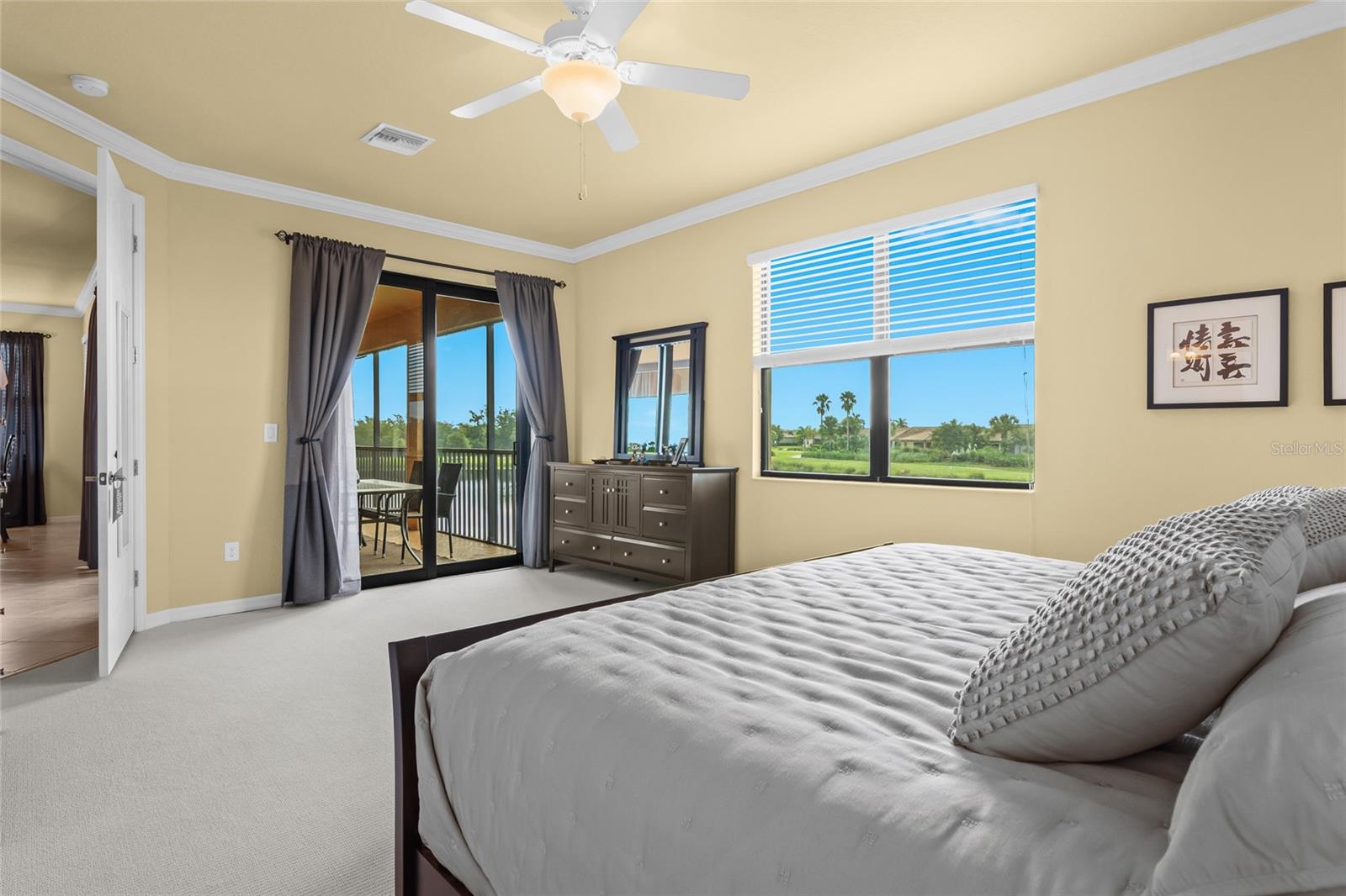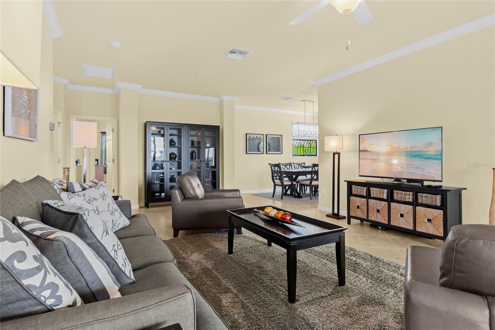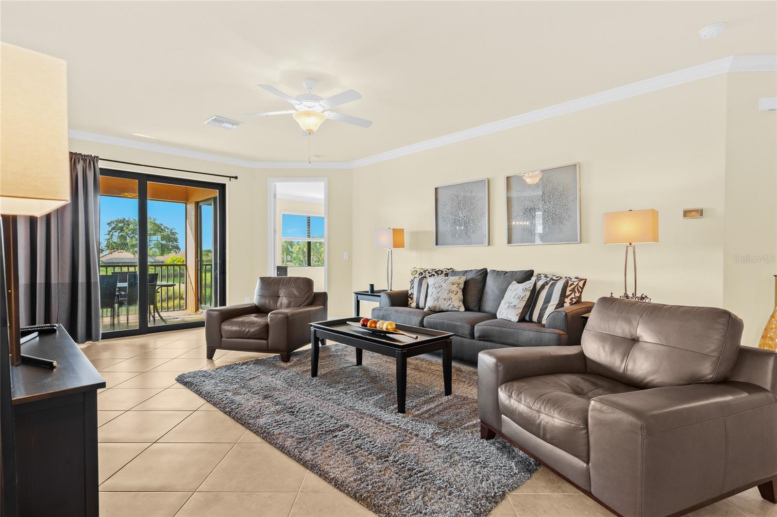BEST $$ PER SQUARE FOOT IN THE COACH HOMES IN RIVER STRAND! Welcome to paradise in the highly regarded community of River Strand! This TOP FLOOR END UNIT 3 bedroom, 2 bath coach home comes complete with a social membership and access to a resort-style country club. The community is perfect for anyone looking to spend their days at a amazing clubhouse, playing pickleball, relaxing poolside, or enjoying the benefits of a rich social calendar. Golf is pay to play, when available. Located on a cul-de-sac with the privacy of landscaped preserves on one side of the coach home, this residence has one of the best homesites in the neighborhood! A gorgeous lake view is visible from your large 10 x 22' screened in and covered lanai. The lanai is the perfect spot for relaxation, al fresco dining, or gazing at a variety of wildlife too! Pride of Ownership is on full display in this home--even the grout lines shimmer! The fully equipped kitchen comes complete with ample cabinet space, a pantry, dining area, and an eat-in area. Designed on an open concept, this great room floorplan makes entertaining a breeze. The Owner's Retreat is both cozy and comfortable and offers a sliding door leading to the lanai, two walk-in closets, and an en-suite bath. The two guest bedrooms are located in a separate wing and provide privacy and comfort. The oversized garage is a fantastic feature too, especially if you need extra storage or want a golf cart to zip around the community. AVAILABLE FURNISHED under a separate agreement (Inquire for Details), this MAINTENANCE FREE condo just needs YOU! The amenities at River Strand include a Clubhouse with restaurant, a tiki bar with food and beverage service, nine Har-Tru tennis courts, EIGHT Pickleball courts, two fitness centers, two resort style pools, and 6 satellite pools. With the developing Heritage Harbour Marketplace, you will have access to a variety of shops and restaurants right around the corner. Close to I-75, everything is within reach...Lakewood Ranch, Sarasota and St. Petersburg too. What are your waiting for? Schedule your private showing today!