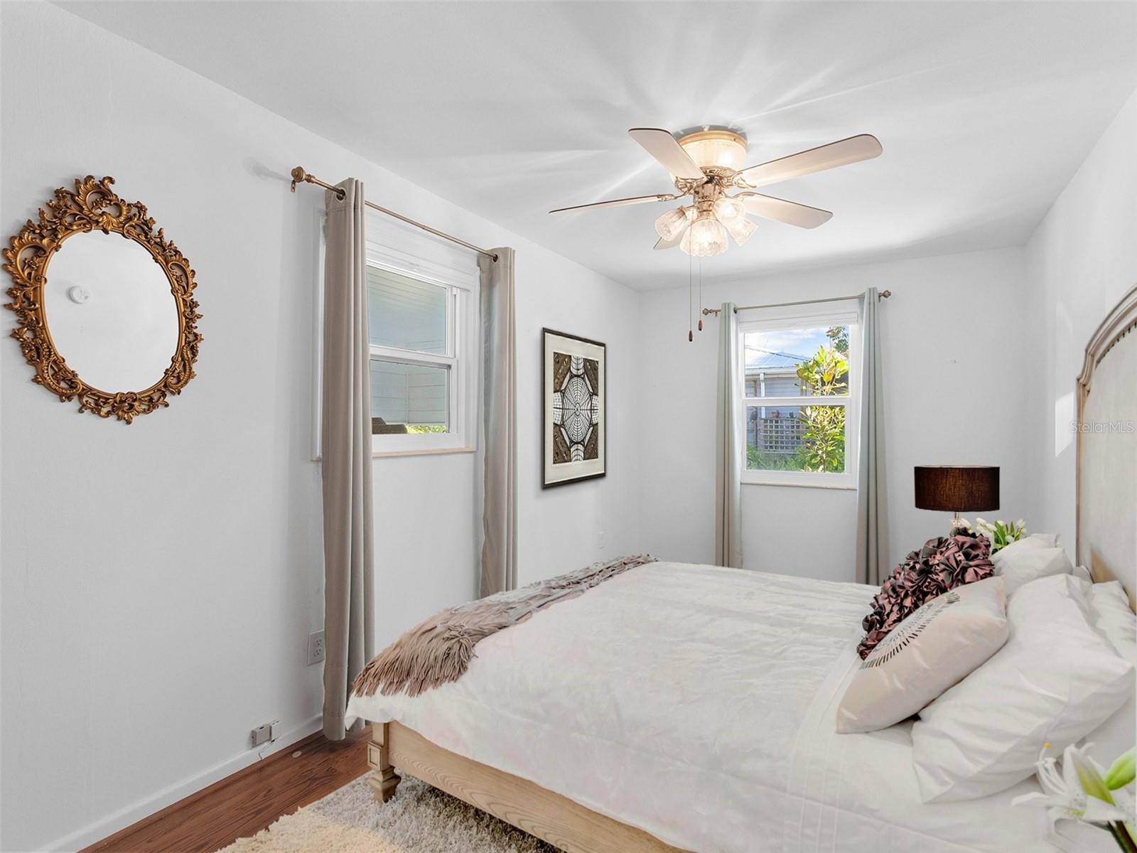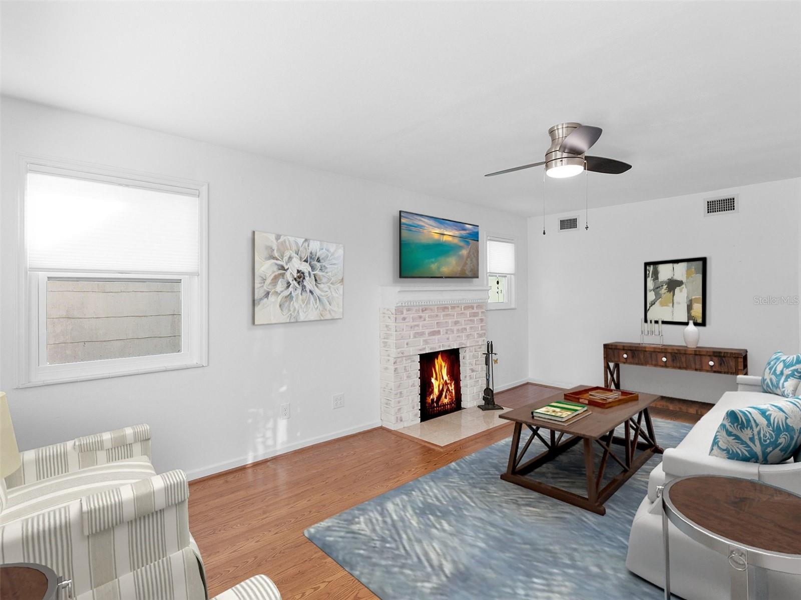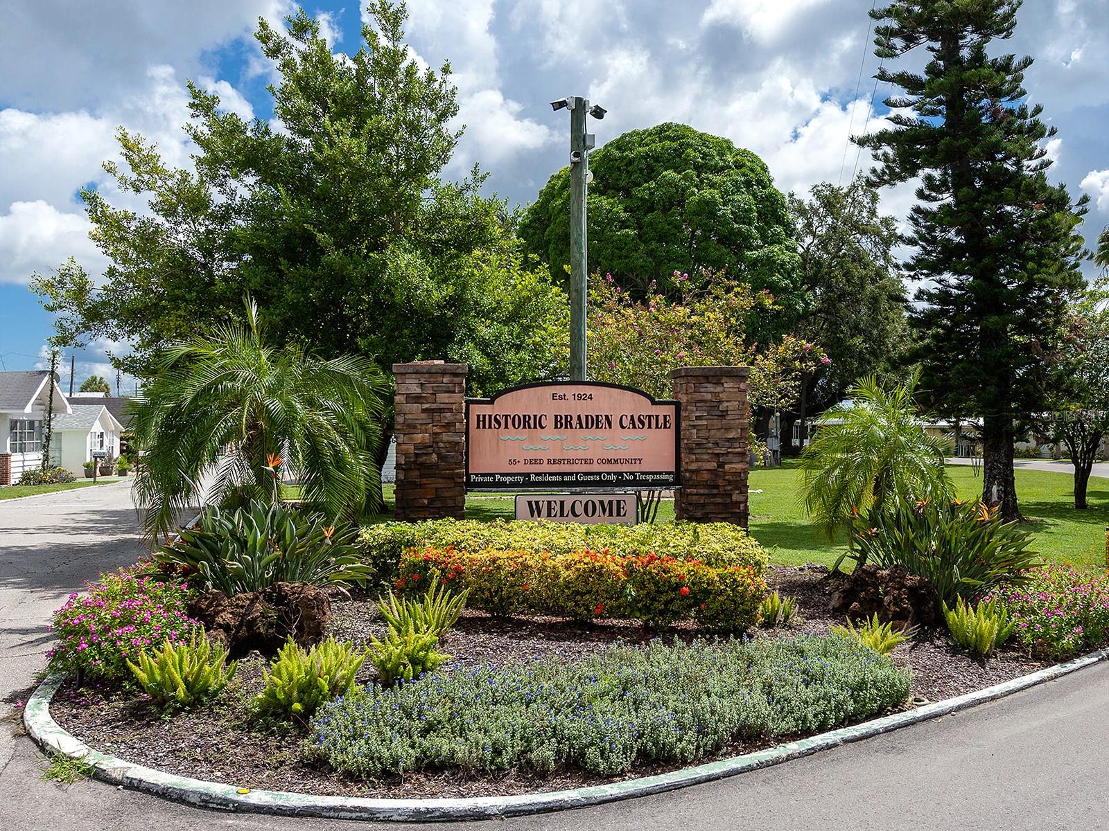 Welcome to a unique blend of history and tranquility in this delightful 55-plus community, where timeless charm meets modern comfort and a boating lifestyle. Nestled along the picturesque banks of the Manatee River, this historic cottage offers an inviting retreat that embraces the essence of serene living. This lovingly preserved cottage boasts original architectural details, however, it has been lovingly updated with impact windows and an impact-rated front door (22’), AC (21’), WH (21’), quartz counters (22’), plumbing and bath remodeled (16’), the roof was resealed (16’), and freshly painted (22’). Upon entering, you will appreciate the open-concept layout, which features a generous living area with abundant natural light and maintenance-free laminate flooring centered around an electric brick fireplace. The well-appointed kitchen offers ample quartz countertop space, white cabs, a breakfast nook, and a pantry. The interior laundry room offers a newer washer and dryer with generous storage. Every inch of this home has been thoughtfully designed to maximize comfort and functionality. Braden Castle offers a full marina with two boat docks that can accommodate approximately 40 boats, a private boat launch, very affordable boat trailer parking, and dry dock storage for a boat or RV! Included in the unbeatably low HOA fees of $400 per year are the 700-foot private fishing pier, a community water well, shuffleboard courts, a community clubhouse and hall, a library, a fitness center, and a long list of events and group activities throughout the year. Embrace this active and social lifestyle and step into a world where history, nature, and community converge. This riverfront cottage is more than just a home – it's an invitation to enjoy the golden years in an idyllic setting. Don’t miss the opportunity to make this charming residence your own. Schedule a tour today and experience the magic for yourself!