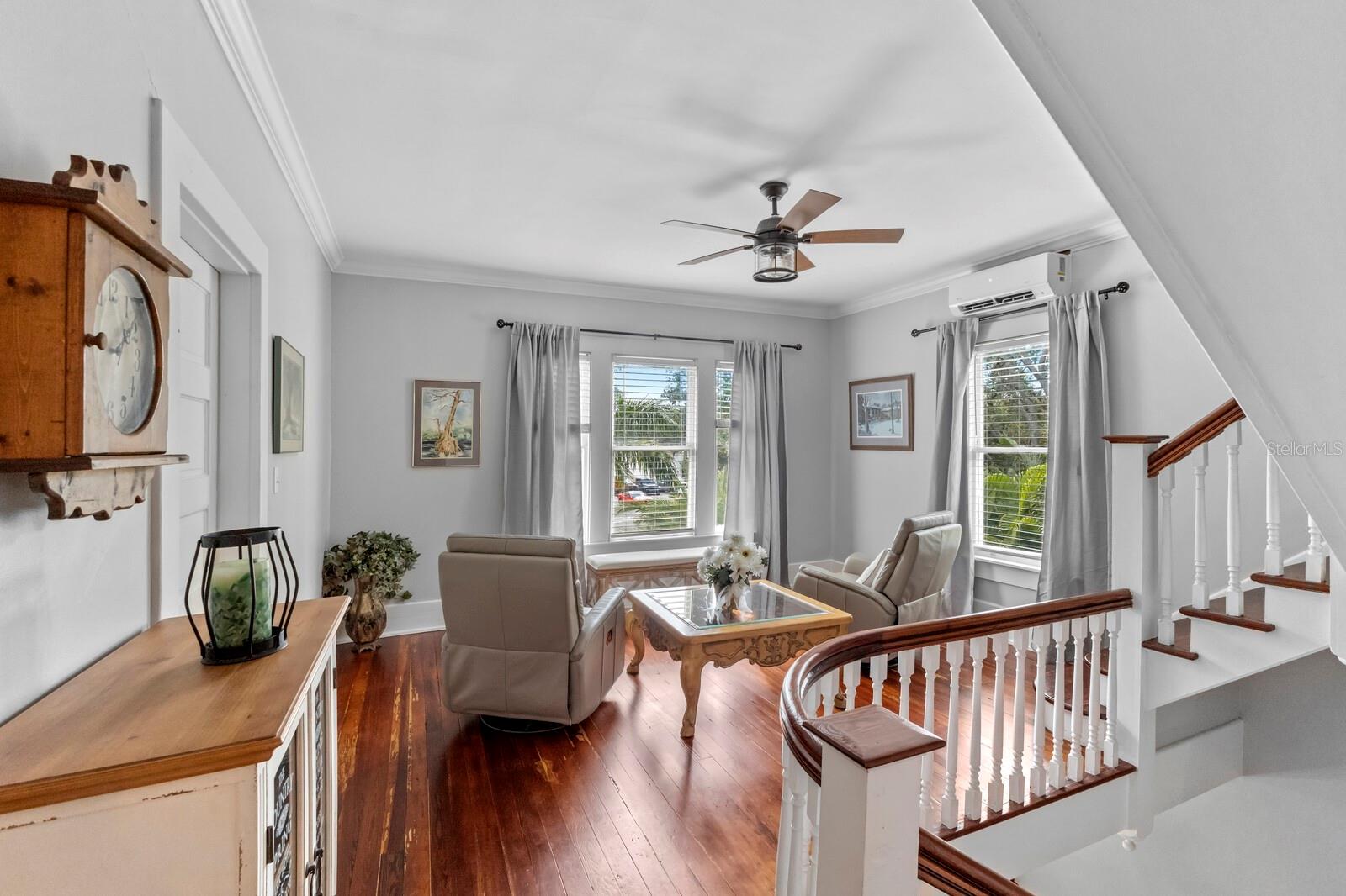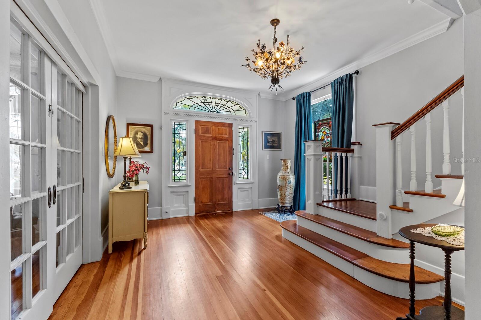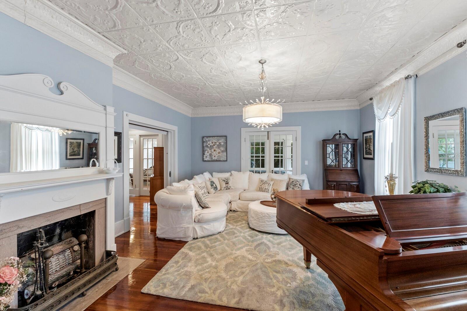 Experience Timeless Elegance in this meticulous vintage Home Step back into an era of grandeur with this updated three-story colonial home, originally built in 1900 with only 5 owners. Nestled among towering century-old oaks, this captivating property blends historic charm with modern luxury. Inside, you’ll be greeted by a stunning foyer featuring original wood floors and an exquisite chandelier. The home boasts oversize rooms with high tin ceilings, 10-inch baseboards, arched doorways, crown molding, and hardwood floors. Two double-sided marble fireplaces create an inviting ambiance, seamlessly connecting the living room and the kitchen. The chef’s kitchen is a showstopper, offering a gas cooktop, double convection ovens, stainless-steel appliances, granite countertops, solid wood cabinetry, and a large center island—perfect for cooking and gathering. French doors open to a spacious family room or studio with serene views of the lush tropical landscape. The first floor also includes a formal dining room, a cozy den or office, and a bright bedroom with built-ins. Upstairs, the master suite features a newly updated bath and a peaceful sitting area. Two additional bedrooms, a laundry room, and an airy loft/mancave with old-world brickwork and river views complete the upper levels. Outside, unwind in the covered hot tub by the fire pit, surrounded by beautifully landscaped grounds. The property also includes a two-car garage, a new roof (2014), and updated electrical systems. Zoned Commercial T5 Up to 20 story building can be built on site. Situated in the heart of Bradenton, this home is seconds from the historic downtown, the Manatee River, Marina, and Riverwalk. Just 12 minutes from the sugar-sand beaches of Anna Maria Island, it offers convenient access to IMG Academy, Sarasota, and all that West Bradenton amenities. Don’t miss the opportunity to own this piece of history, where modern comfort meets timeless elegance.