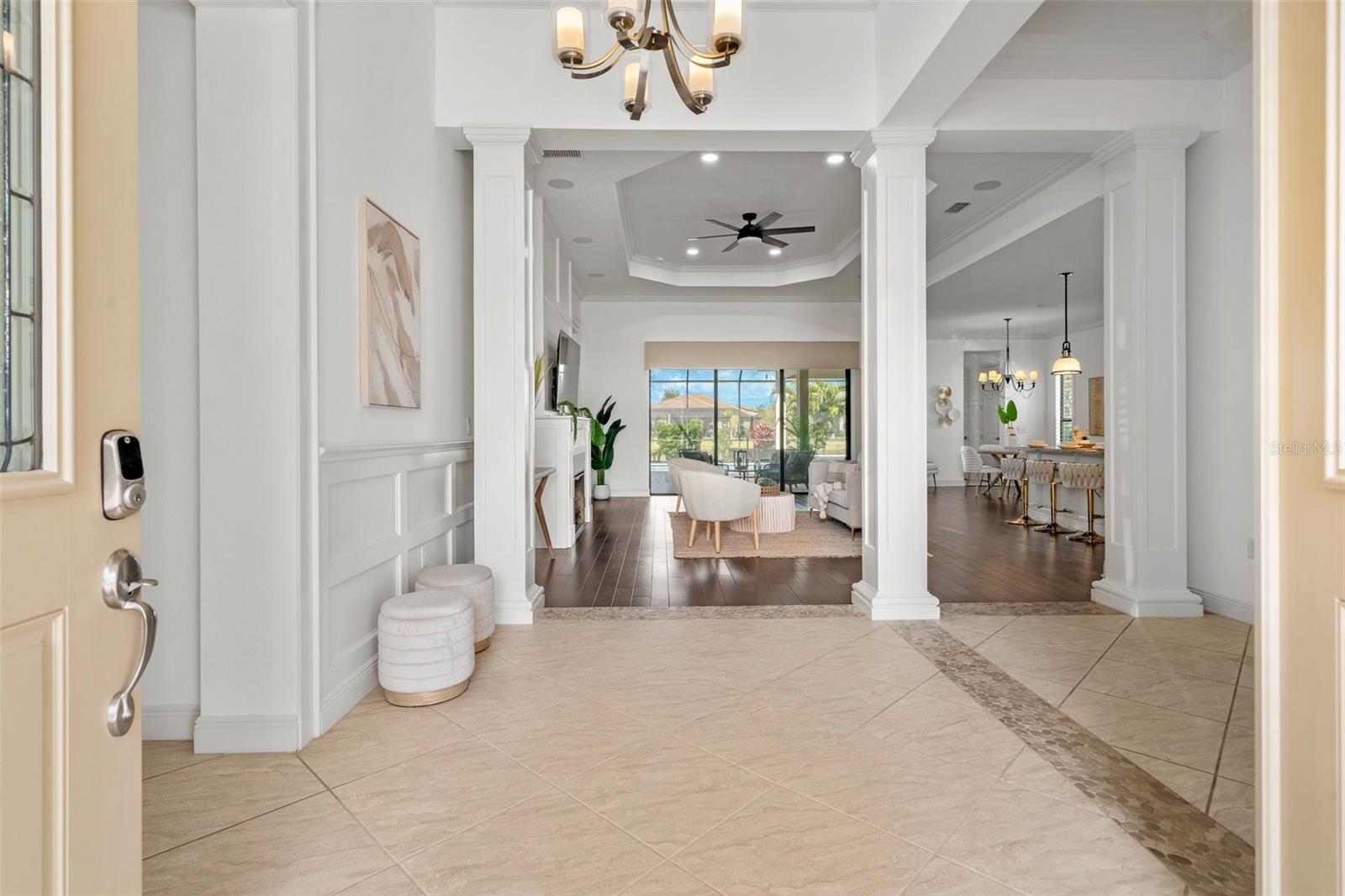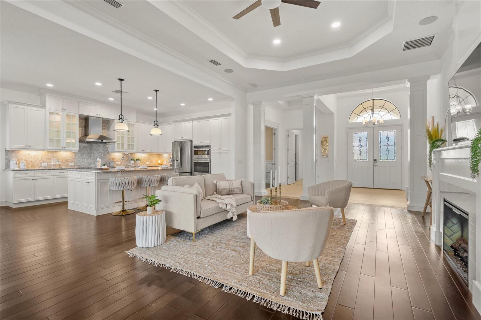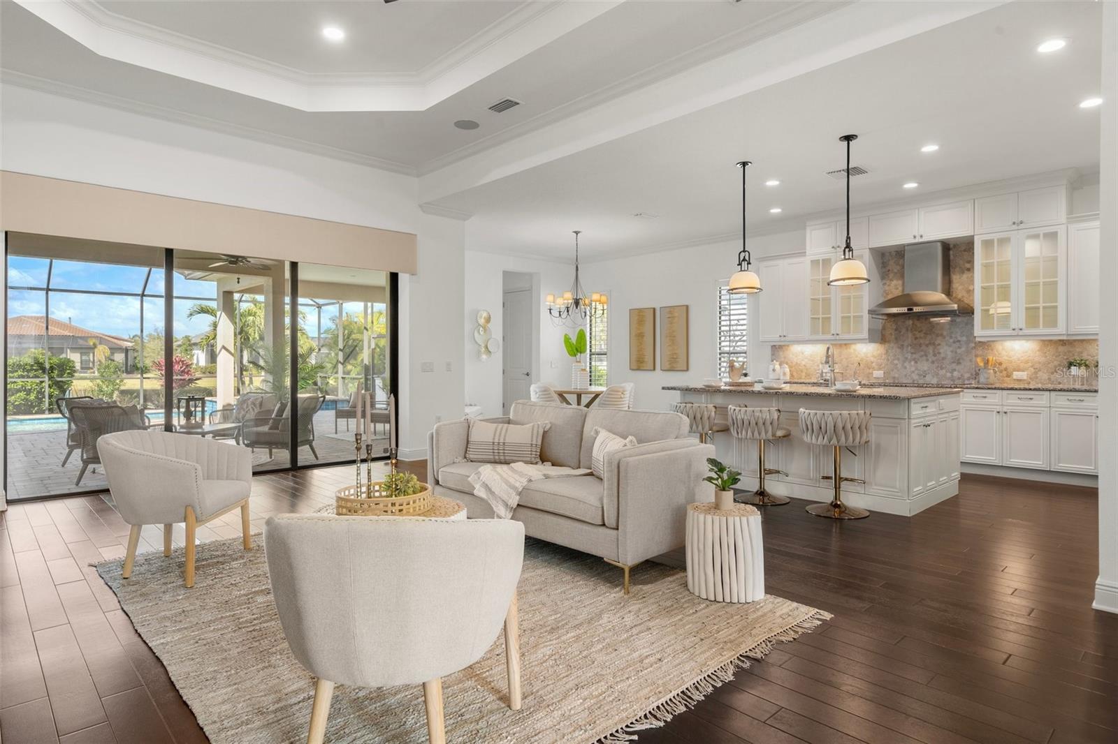 Enjoy the comfort of knowing seller has already prepaid the HOA fees and Property Taxes for the year! Discover the epitome of luxury living at this stunning property in Country Club East, nestled within a resort-style gated community. Dive into relaxation with a saltwater pool that's heated and cooled, perfect for year-round enjoyment. Step inside to find plantation shutters, auto sun shades, a meticulously designed Palmavera floor plan, and a water filtration system. Over $200k in upgrades, including a generator, built-in garage cabinets, an electric fireplace and hardwood engineered floor showcase attention to detail. Entertain effortlessly with a full outdoor kitchen and enjoy the convenience of a full-size laundry room. The kitchen boasts an island/breakfast bar and seamlessly integrates with the open floor plan living area. Enjoy quartz counter tops and ample storage space. The HOA makes for a all around maintenance free lifestyle covering landscaping, side walk and the common grounds. Retreat to the primary bedroom with its expansive walk-in closet and luxurious ensuite featuring a Roman tub and dual sinks. This home offers unparalleled comfort and style, ready to welcome you home. Situated in close proximity to the University Town Center, residents have access to a myriad of shopping and dining options. Nearby, Nathan Benderson Park offers a sprawling 600-acre community park with premier rowing facilities. Excitingly, the new Mote Science Education Aquarium is slated to open in 2023, enhancing the area's appeal. Additionally, residents enjoy easy access to some of the nation's best beaches and a regional airport, offering convenient access to national airlines, easy drop-off, and ample parking.