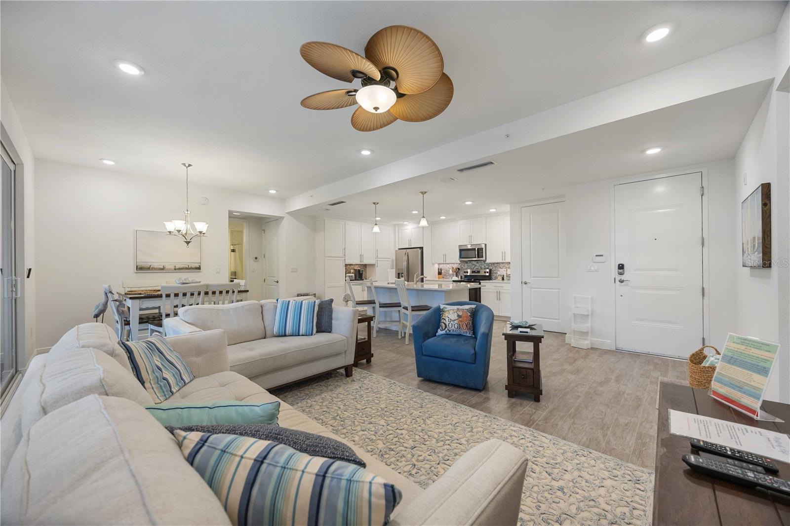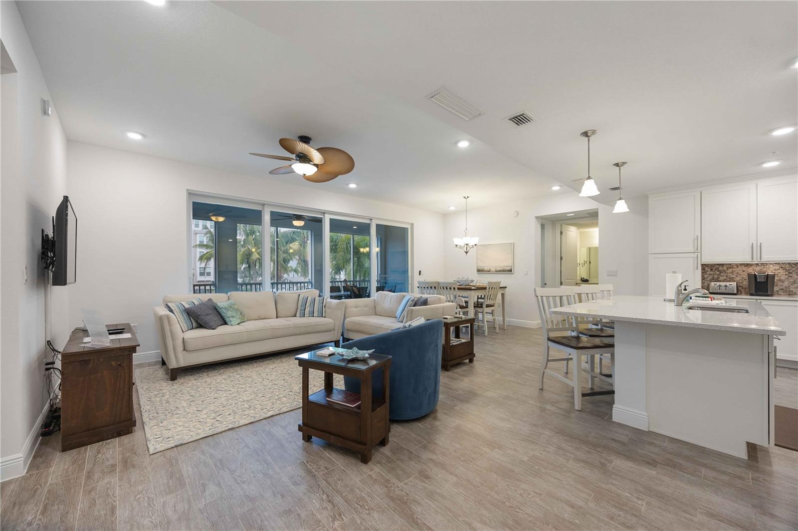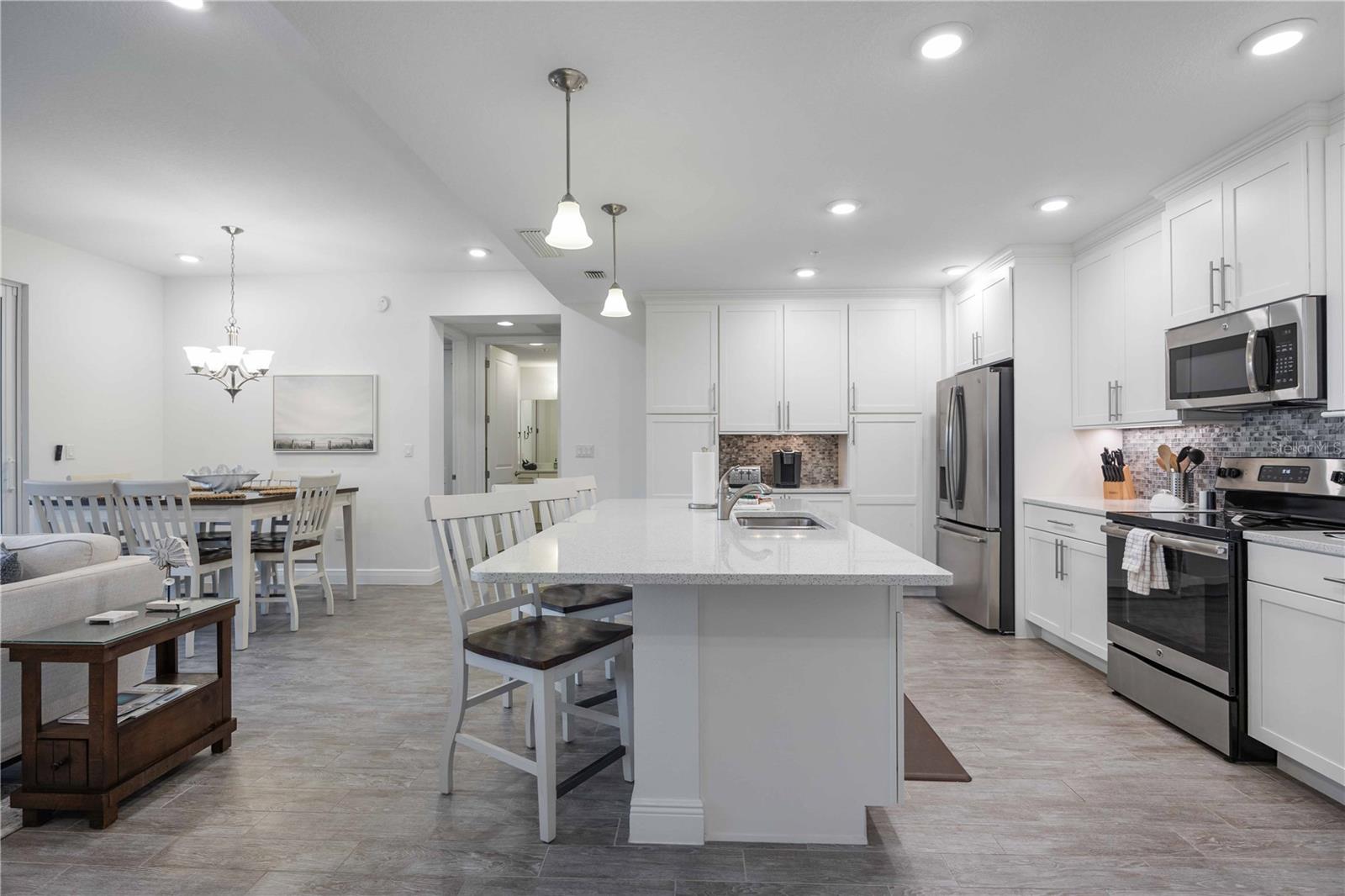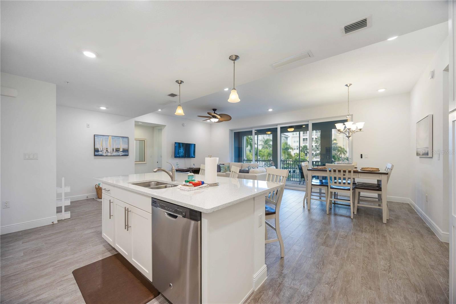 Waterfront living without the stress at One Particular Harbour, where island-style living meets luxury and convenience. This stunning 2-bedroom, 2-bathroom residence offers unparalleled sunset views and access to a deep-water marina, providing direct entry to the Gulf of Mexico. As you step inside this beautifully decorated condo, you'll be greeted by an airy, open-concept living area with exquisite tile flooring throughout. The chef’s kitchen is a true culinary haven, featuring plenty of cabinet space, stainless steel appliances, quartz countertops, a unique tile backsplash, and a massive center island. Enjoy your morning coffee at the island while soaking in the breathtaking views through the wall-to-wall sliding doors that open to a screened-in lanai, overlooking the community pool, lounge area, and a peek-a-boo view of the bay. The primary suite is a sanctuary, offering ample space for a king-sized bed, an en-suite bathroom with a luxurious walk-in shower, and an expansive walk-in closet for all of your storage needs. The second bedroom comfortably accommodates a queen-sized bed, offering a cozy retreat for guests or family members, or it could serve as a fantastic, sunny office space. An indoor laundry closet completes this fabulous home, adding to its convenience and charm. Nature enthusiasts will love the proximity to three nearby nature preserves, perfect for walking, biking, paddleboarding, and kayaking. Residents of One Particular Harbour can also indulge in resort-like amenities, including a heated pool, playground, and dining at Florida's Bar and Grill. All of this is just one mile from the pristine sandy beaches of Anna Maria Island. Experience the ultimate in relaxation and luxury at Jimmy Buffett’s Margaritaville’s One Particular Harbour. With the community's limited rental restrictions, you have the flexibility to use this property as an income-producing rental or enjoy it as your forever residence! Don’t wait, your waterfront paradise awaits!