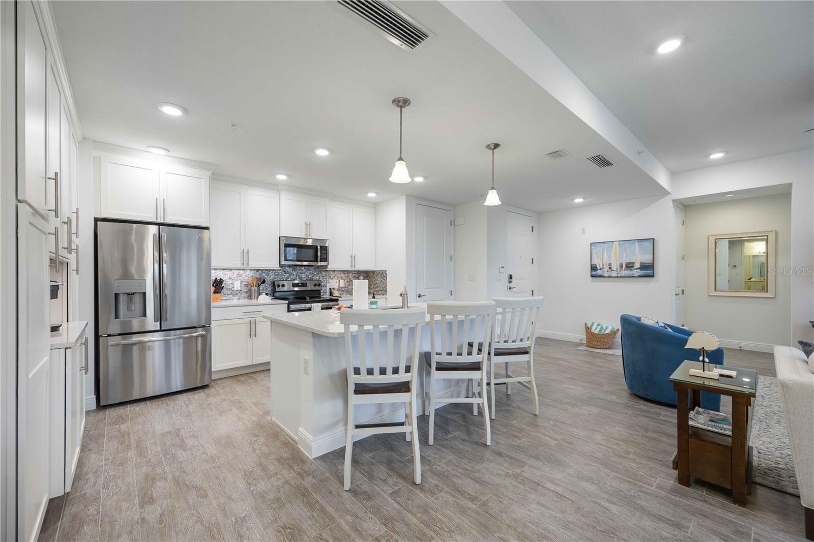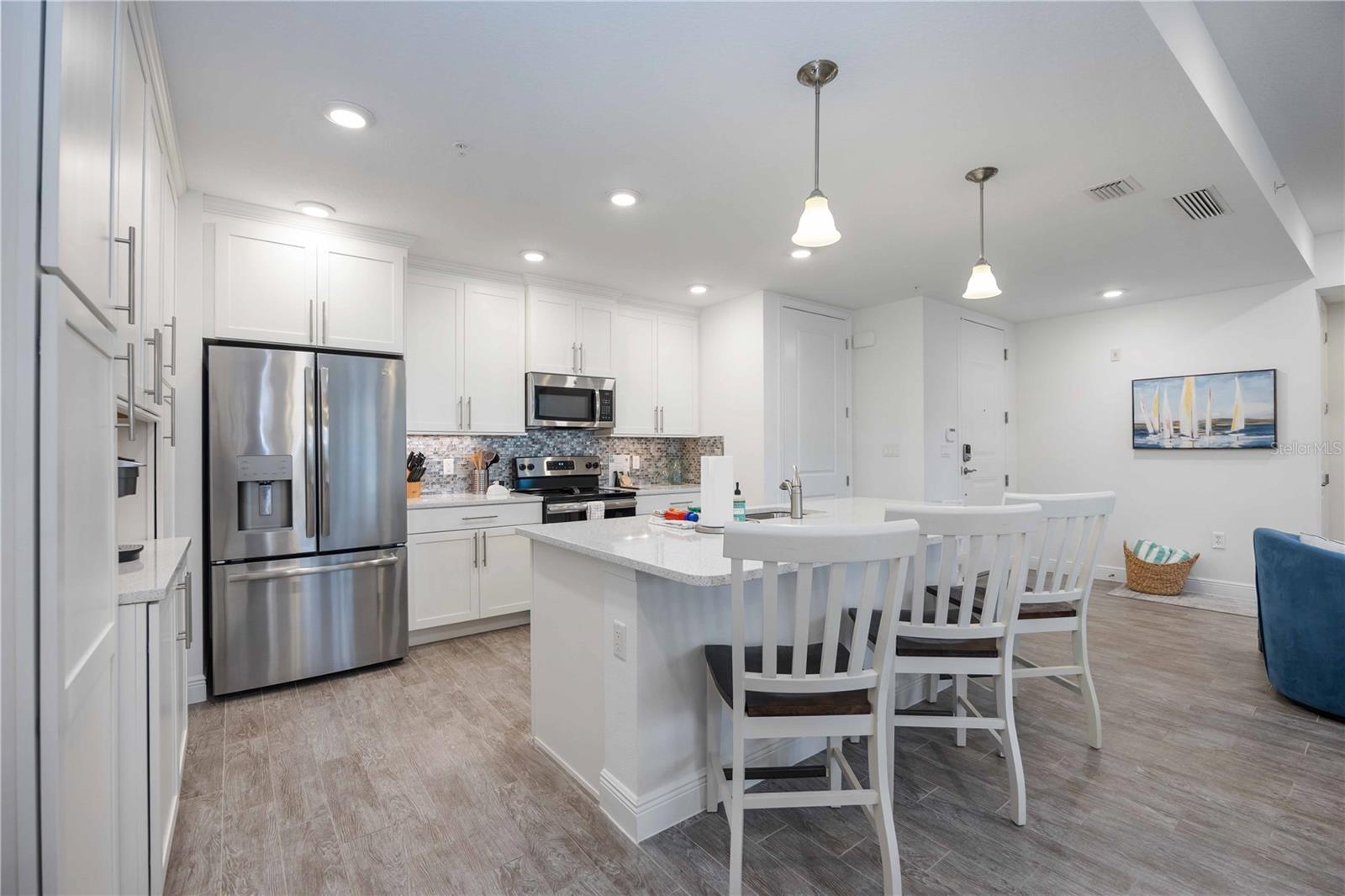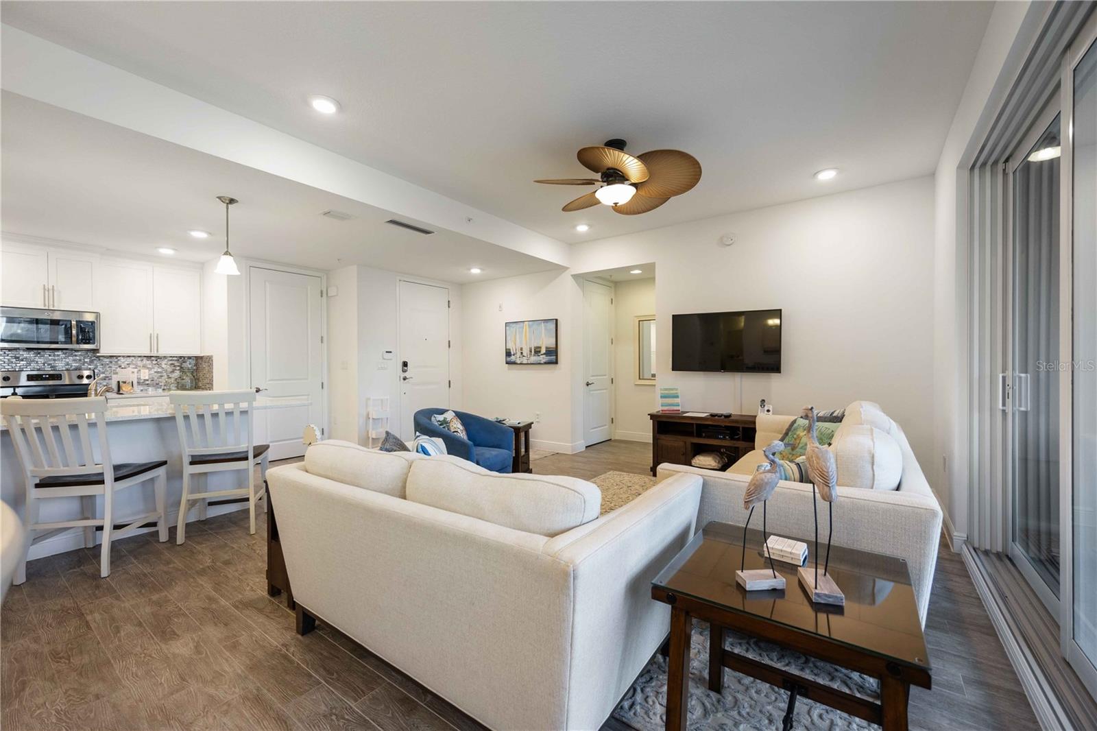 Waterfront living without the stress at One Particular Harbour, where island-style living meets luxury and convenience. This stunning 2-bedroom, 2-bathroom residence offers unparalleled sunset views and access to a deep-water marina, providing direct entry to the Gulf of Mexico. As you step inside this beautifully decorated condo, you'll be greeted by an airy, open-concept living area with exquisite tile flooring throughout. The chef’s kitchen is a true culinary haven, featuring plenty of cabinet space, stainless steel appliances, quartz countertops, a unique tile backsplash, and a massive center island. Enjoy your morning coffee at the island while soaking in the breathtaking views through the wall-to-wall sliding doors that open to a screened-in lanai, overlooking the community pool, lounge area, and a peek-a-boo view of the bay. The primary suite is a sanctuary, offering ample space for a king-sized bed, an en-suite bathroom with a luxurious walk-in shower, and an expansive walk-in closet for all of your storage needs. The second bedroom comfortably accommodates a queen-sized bed, offering a cozy retreat for guests or family members, or it could serve as a fantastic, sunny office space. An indoor laundry closet completes this fabulous home, adding to its convenience and charm. Nature enthusiasts will love the proximity to three nearby nature preserves, perfect for walking, biking, paddleboarding, and kayaking. Residents of One Particular Harbour can also indulge in resort-like amenities, including a heated pool, playground, and dining at Florida's Bar and Grill. All of this is just one mile from the pristine sandy beaches of Anna Maria Island. Experience the ultimate in relaxation and luxury at Jimmy Buffett’s Margaritaville’s One Particular Harbour. With the community's limited rental restrictions, you have the flexibility to use this property as an income-producing rental or enjoy it as your forever residence! Don’t wait, your waterfront paradise awaits!