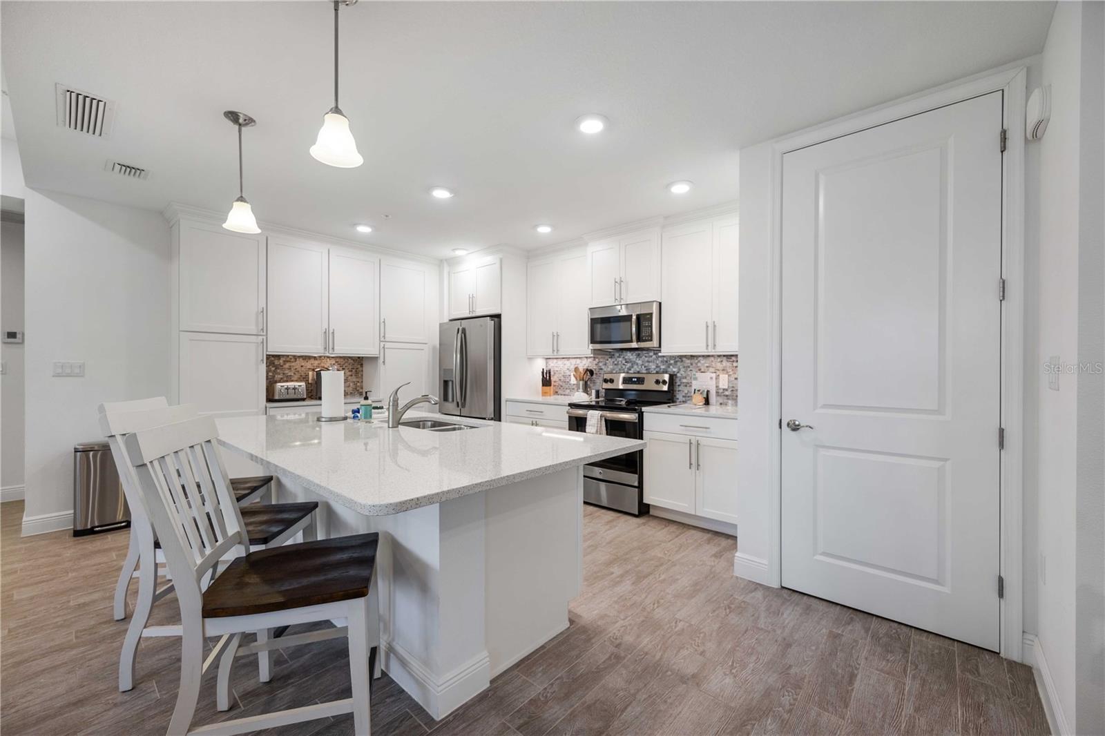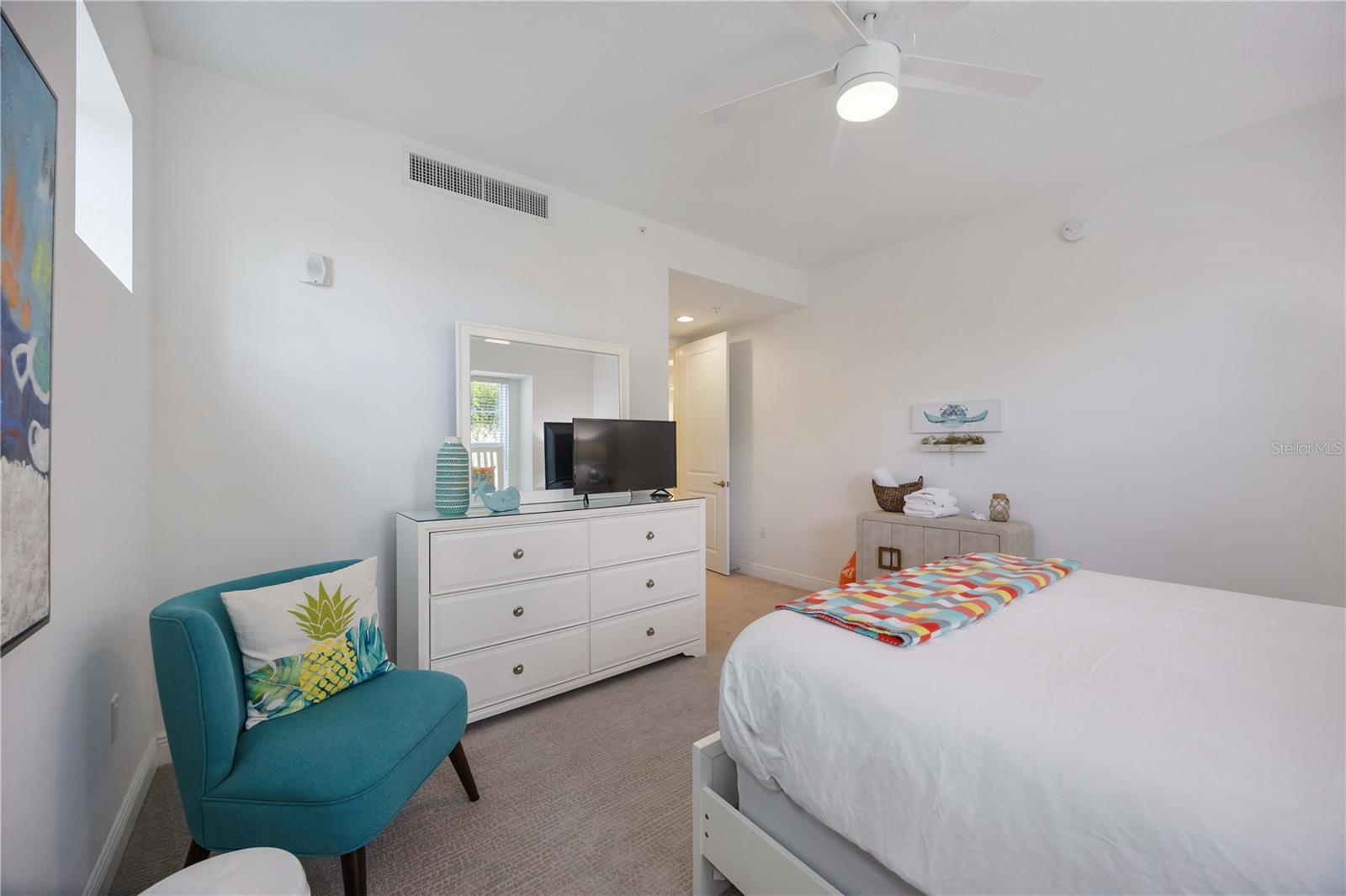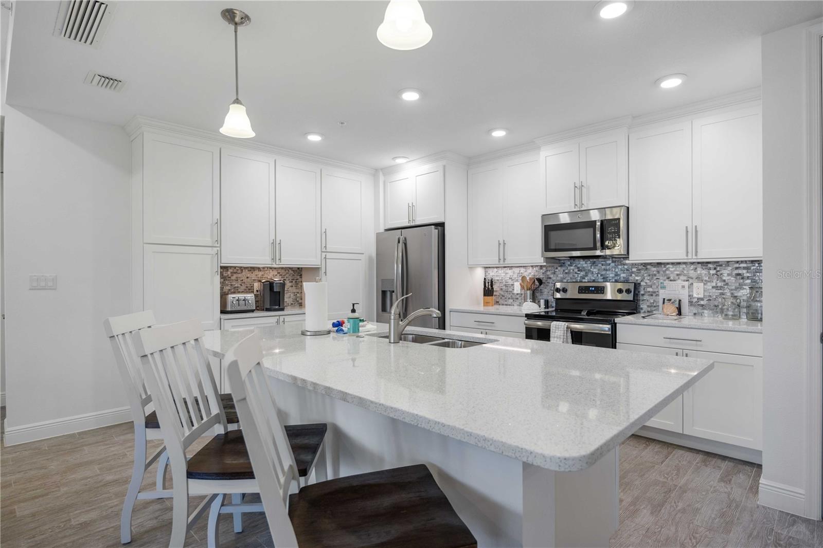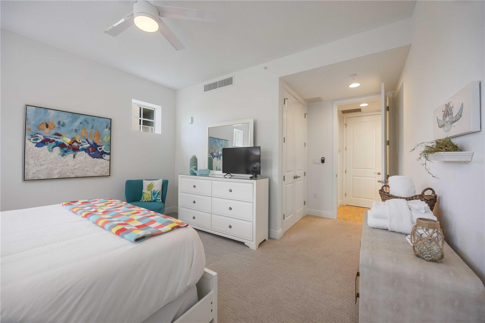 Waterfront living without the stress at One Particular Harbour, where island-style living meets luxury and convenience. This stunning 2-bedroom, 2-bathroom residence offers unparalleled sunset views and access to a deep-water marina, providing direct entry to the Gulf of Mexico. As you step inside this beautifully decorated condo, you'll be greeted by an airy, open-concept living area with exquisite tile flooring throughout. The chef’s kitchen is a true culinary haven, featuring plenty of cabinet space, stainless steel appliances, quartz countertops, a unique tile backsplash, and a massive center island. Enjoy your morning coffee at the island while soaking in the breathtaking views through the wall-to-wall sliding doors that open to a screened-in lanai, overlooking the community pool, lounge area, and a peek-a-boo view of the bay. The primary suite is a sanctuary, offering ample space for a king-sized bed, an en-suite bathroom with a luxurious walk-in shower, and an expansive walk-in closet for all of your storage needs. The second bedroom comfortably accommodates a queen-sized bed, offering a cozy retreat for guests or family members, or it could serve as a fantastic, sunny office space. An indoor laundry closet completes this fabulous home, adding to its convenience and charm. Nature enthusiasts will love the proximity to three nearby nature preserves, perfect for walking, biking, paddleboarding, and kayaking. Residents of One Particular Harbour can also indulge in resort-like amenities, including a heated pool, playground, and dining at Florida's Bar and Grill. All of this is just one mile from the pristine sandy beaches of Anna Maria Island. Experience the ultimate in relaxation and luxury at Jimmy Buffett’s Margaritaville’s One Particular Harbour. With the community's limited rental restrictions, you have the flexibility to use this property as an income-producing rental or enjoy it as your forever residence! Don’t wait, your waterfront paradise awaits!