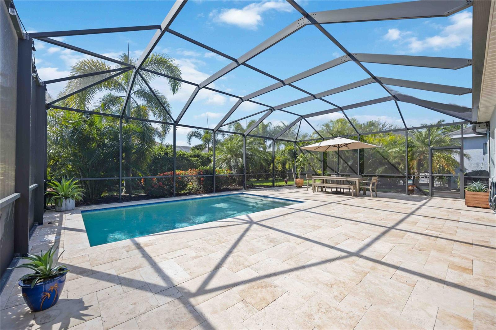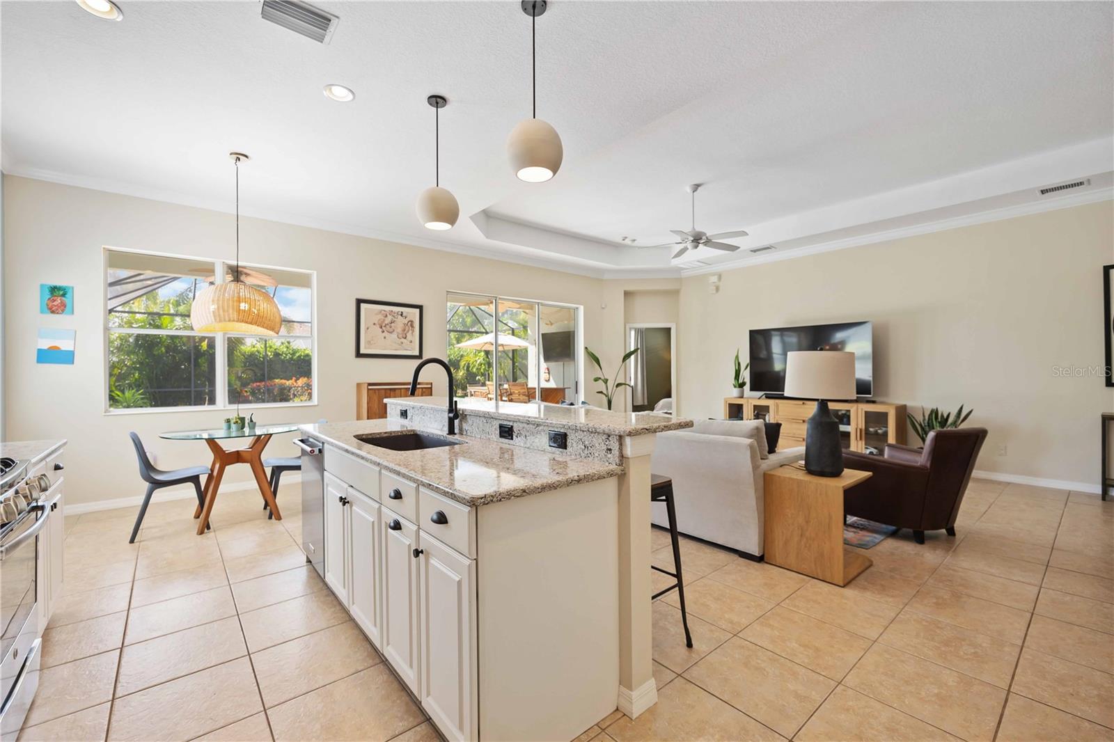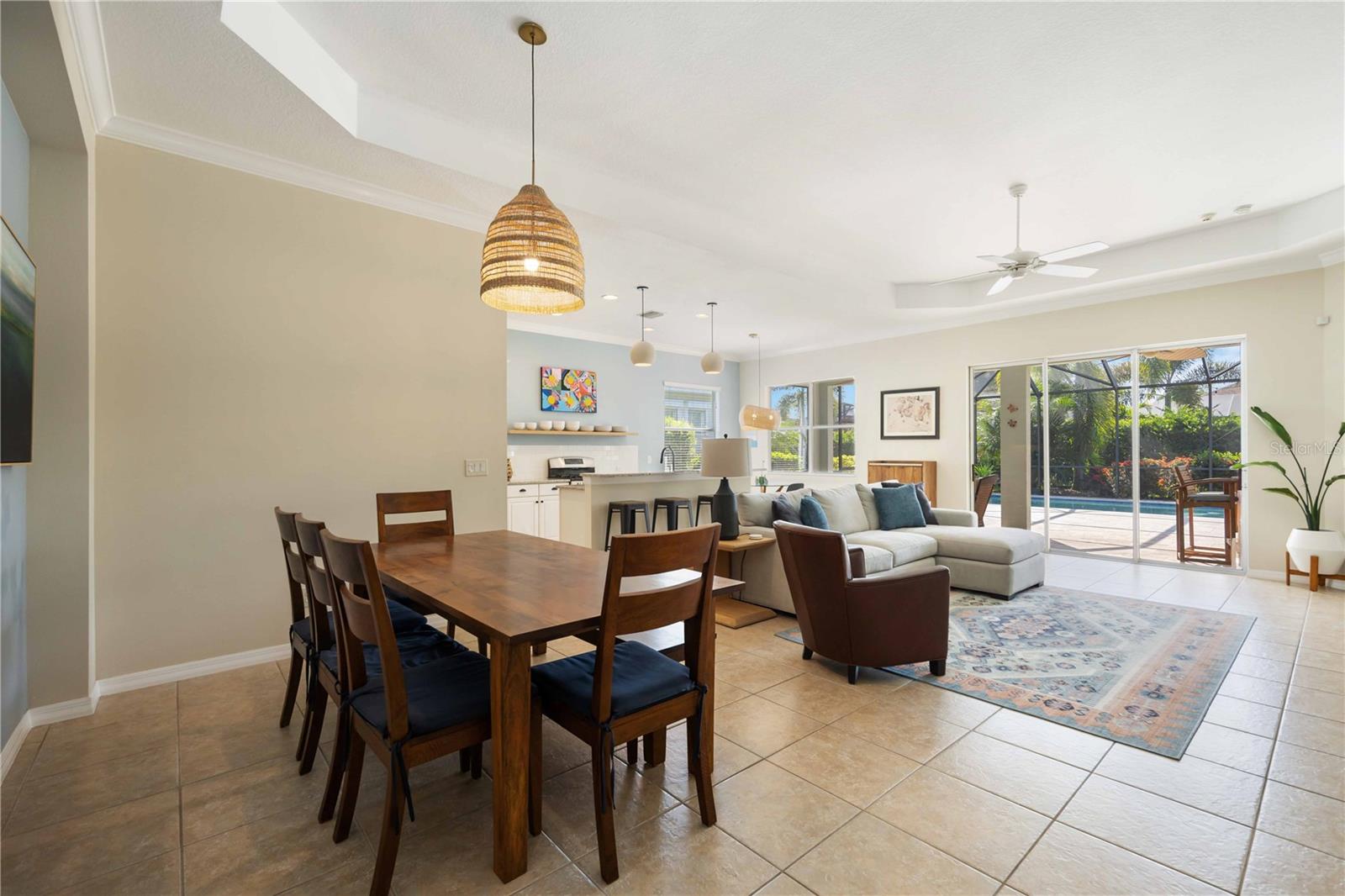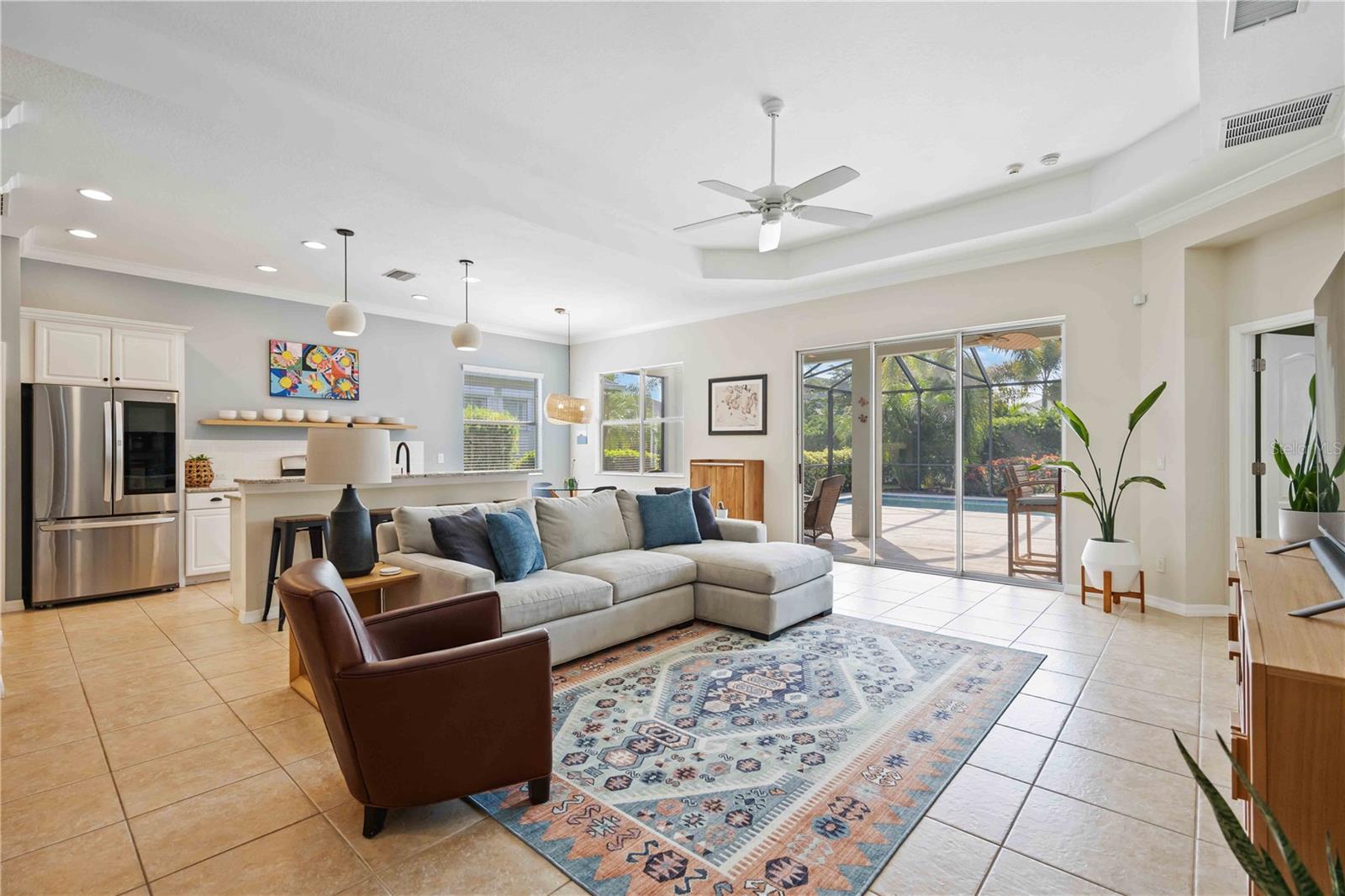 Welcome to 11410 Griffith Park Terrace, located in the highly sought-after Lakewood Ranch community. This elegant home offers a perfect blend of style and functionality with an open floor plan, modern finishes, and abundant natural light throughout. The highlight of this property is the extended oversized lanai, featuring stunning travertine tile and a sleek rectangular pool, creating an ideal outdoor retreat for entertaining or relaxing. Situated in a prime location with access to top-rated schools, parks, golf courses, and shopping, this home provides a unique opportunity to experience Florida living at its finest. **HOA includes a community pool & spa, and fitness center that only Claremont residents have access to. **LAWN MAINTENANCE PROVIDED – mowing, trimming, blowing, weeding, fertilization, and mulching. Central Park offers 2 dog parks, a 10 acre park, tennis/PICKLEBALL courts, baseball field, covered pavilion, playground, splash pad.