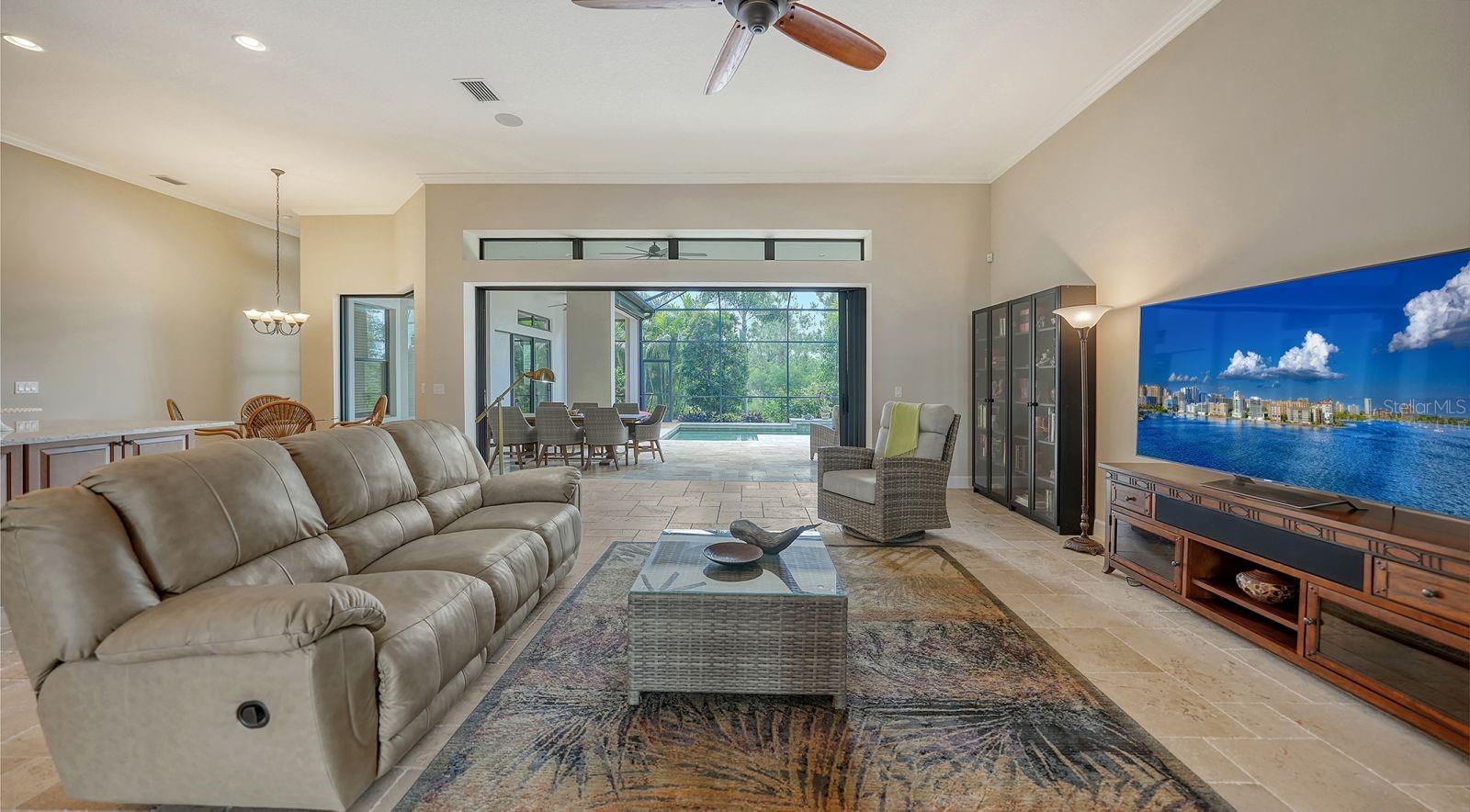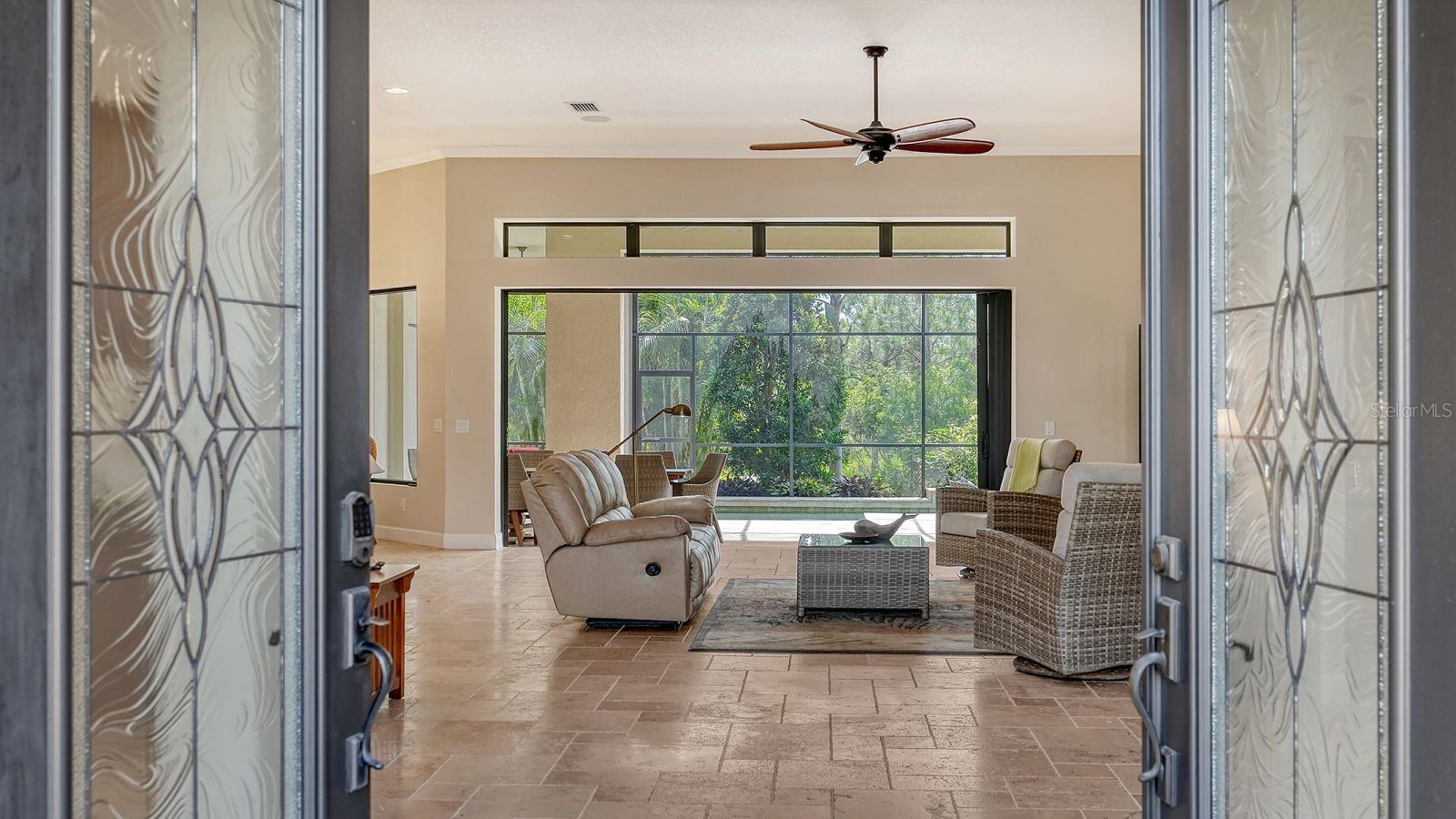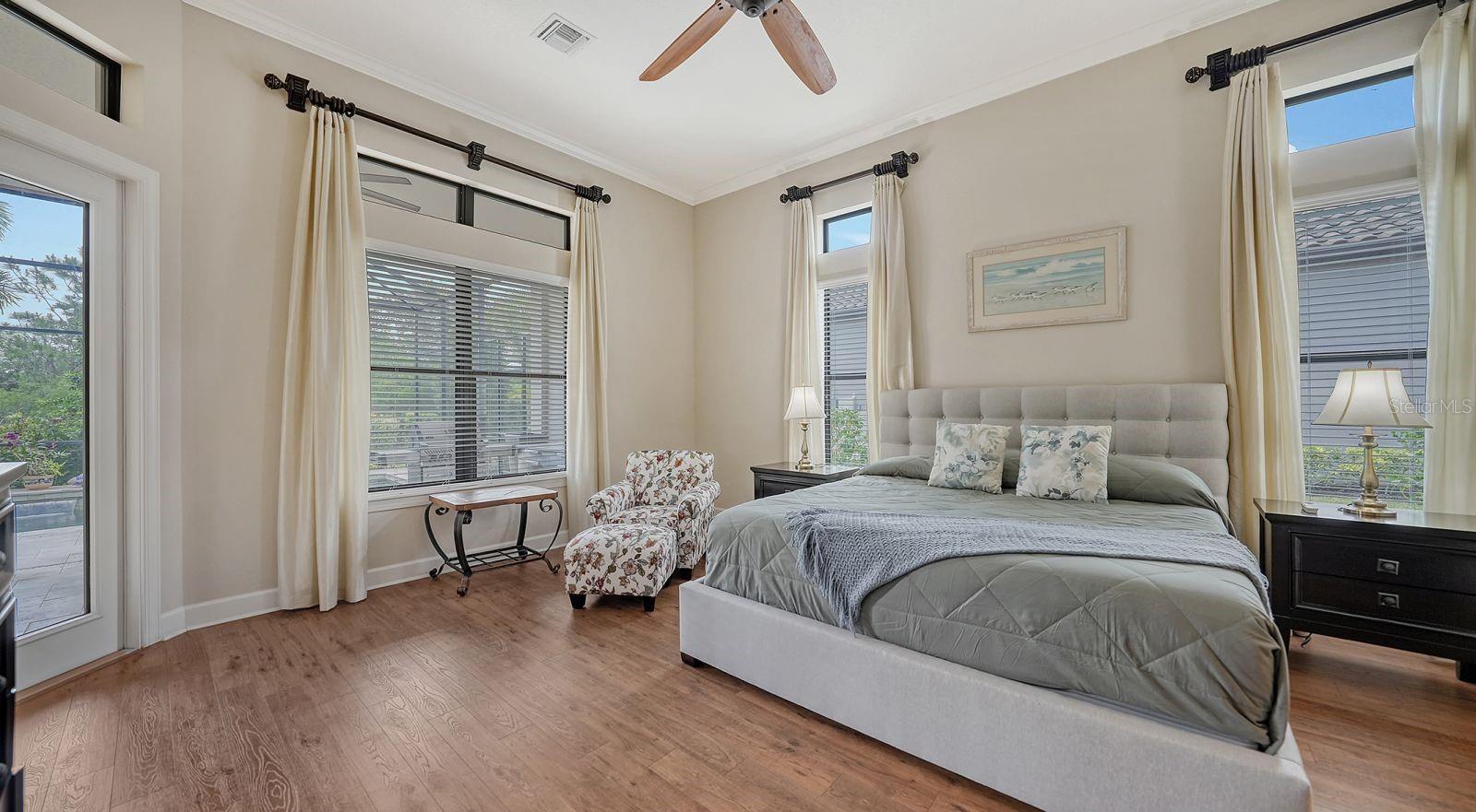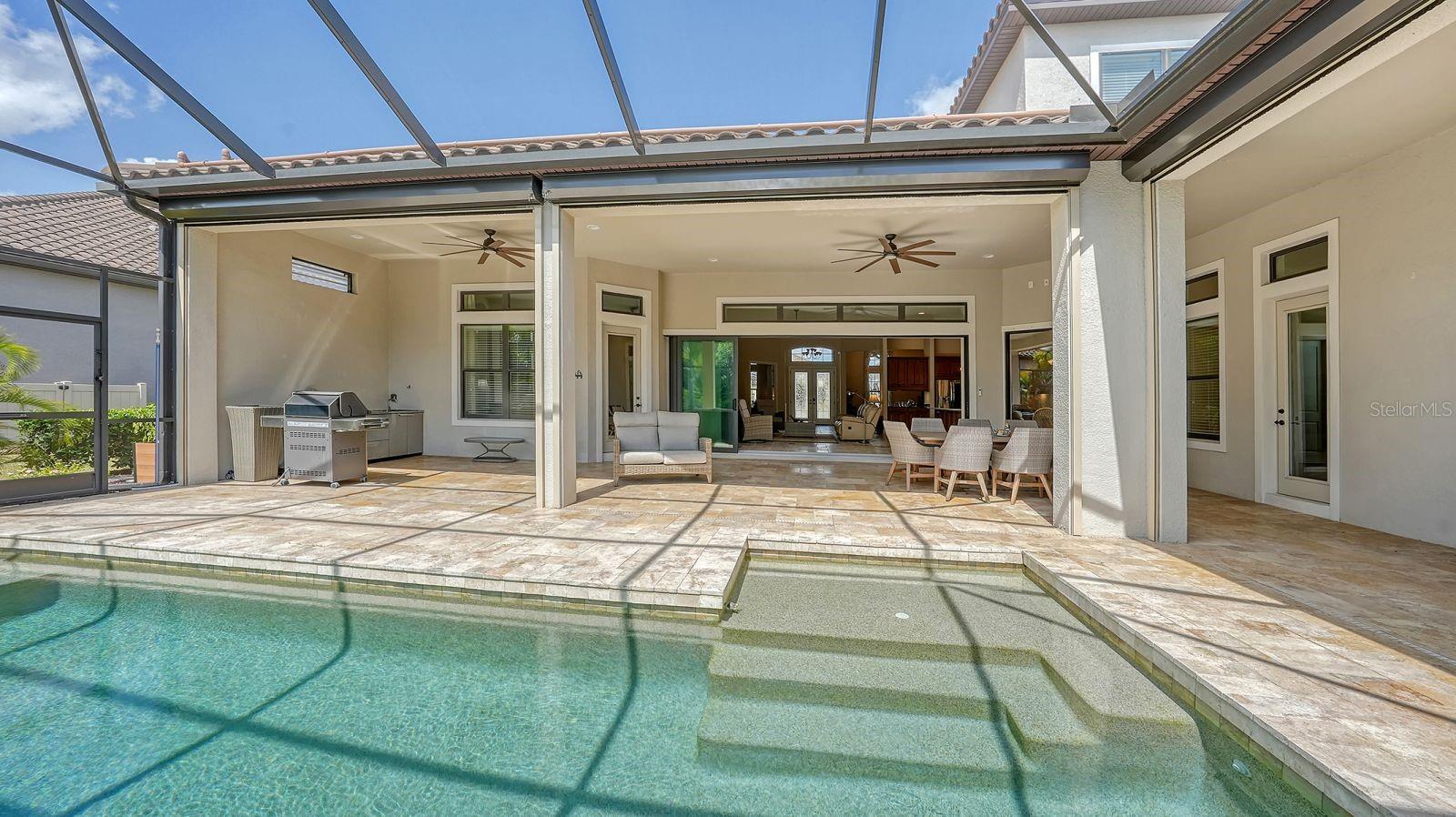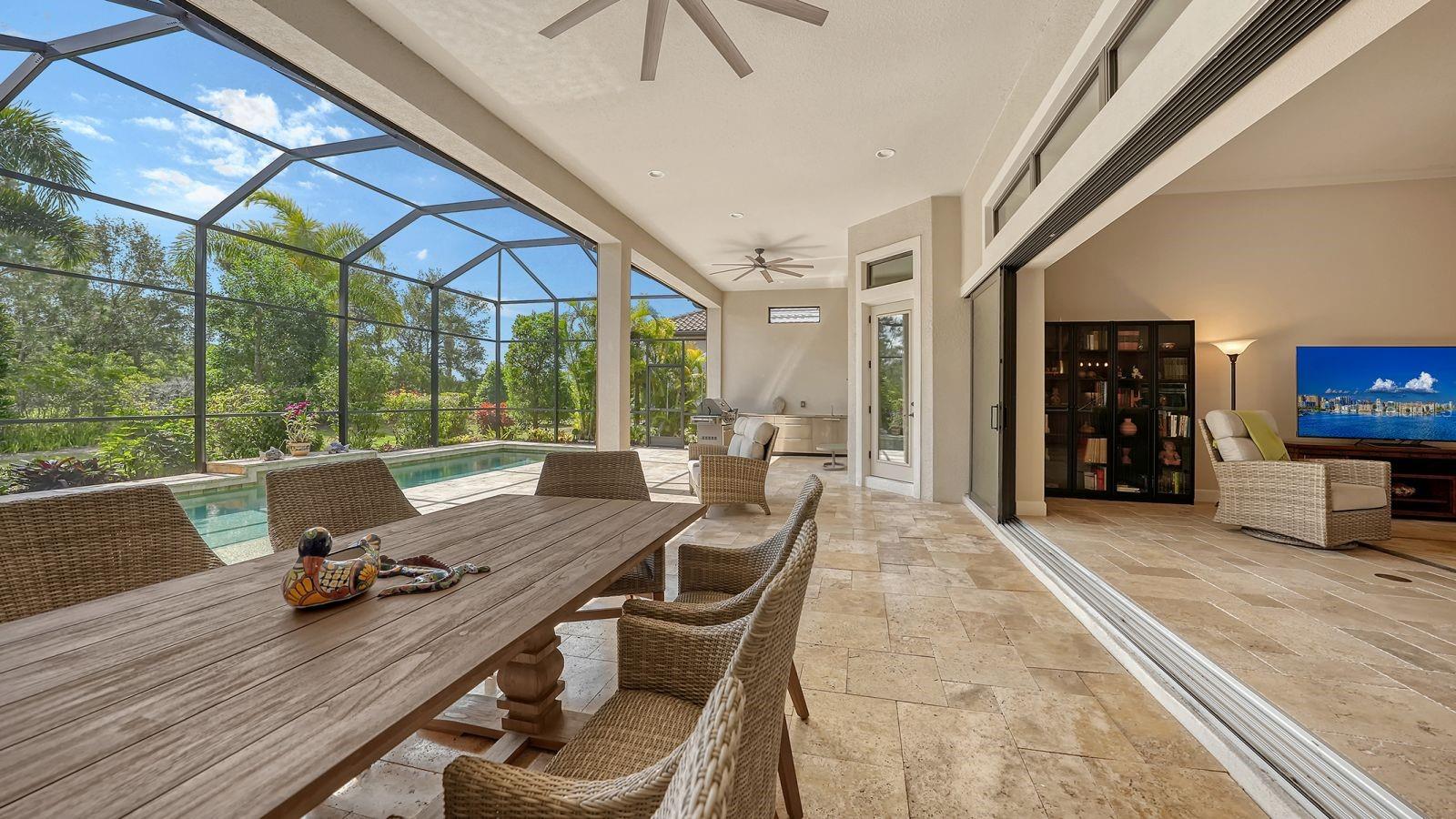 This expanded Mercedes model seamlessly combines luxury and versatility, making it an ideal choice for your dream home. Boasting four bedrooms with en suites and two spacious flex rooms, the home is ideal for hosting extended-stay guests. Each level includes a flex room connected to one of the en-suite bedrooms, creating a private suite where the flex space serves as an adjacent living area. Whether you're working from home, indulging in a hobby, setting up a personal gym or enjoying a private entertainment space, this home offers limitless possibilities. On a private golf lot in the prestigious Esplanade Golf and Country Club, one of Lakewood Ranch's most amenity-rich communities, this 4,850-square-foot home features a 31-foot, three-car garage with an EV charger, a 22,000-kilowatt Generac whole-house generator and a solar-heated 31-foot saltwater pool with a heat pump backup. The home also includes a three-zone HVAC system with UV lights, insulated impact-resistant windows and doors, and remote-controlled hurricane screens for added protection and convenience. Additionally, an enhanced security system ensures peace of mind. The large utility room offers abundant cabinetry, counter space, and space for a full-size refrigerator. Outdoors, the east-facing screened lanai features a travertine surface, an outdoor kitchen and a solar-heated pool with water features, creating a serene space for relaxation and entertainment. Four-panel, eight-foot sliding doors fully retract, allowing for seamless indoor-outdoor living with beautiful views of the pool and lanai. Inside, the home is elegantly appointed with wood cabinetry, granite and quartz countertops, travertine flooring in the main areas, and newly installed wood flooring throughout. The chef’s kitchen features a large island, new refrigerator, two wall ovens, and an induction cooktop with a professional-grade stainless steel hood. Volume ceilings and transom windows, and a second set of lanai-facing sliding doors flood the home with natural light, enhancing its open, airy feel. As a resident of Esplanade, you'll enjoy a wide range of resort-style amenities, including access to the Troon Privé-managed private golf course. This home comes with a deeded golf membership, offering reciprocity with other Troon Privé courses across the country. Community amenities also include two large resort-style pools with cabanas, a resistance pool, two clubhouses, fitness classes, the Koquina Salon and Spa, six lighted Har-Tru tennis courts and six pickleball courts. Dining options such as the Bahama Bar, the Barrel House Bistro and the Culinary Center's main dining room are ideal for socializing with friends and neighbors. A dedicated lifestyle director organizes a variety of social events to enhance the community experience. Additionally, the home is just a short drive from downtown Sarasota and world-class beaches, offering plenty of opportunities for fun and relaxation.