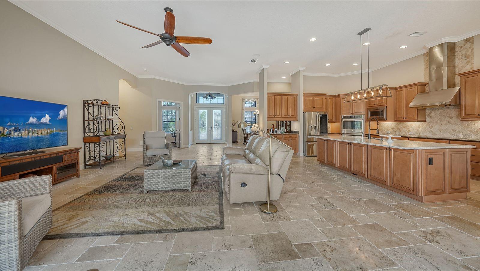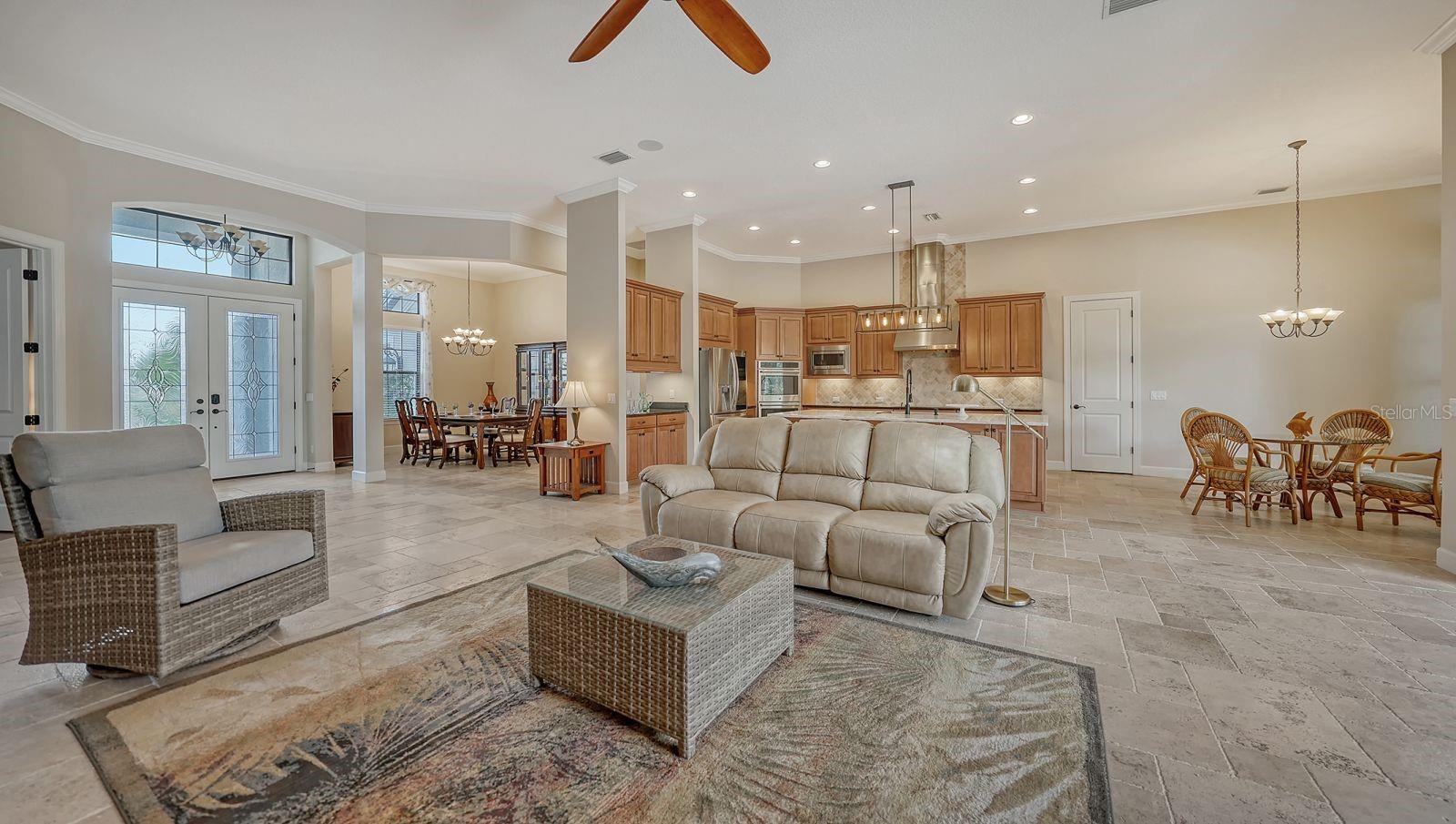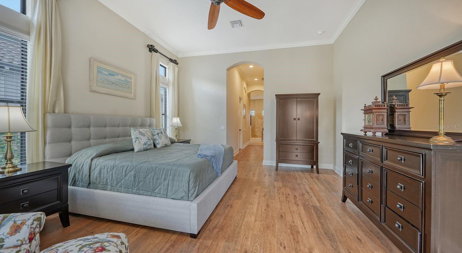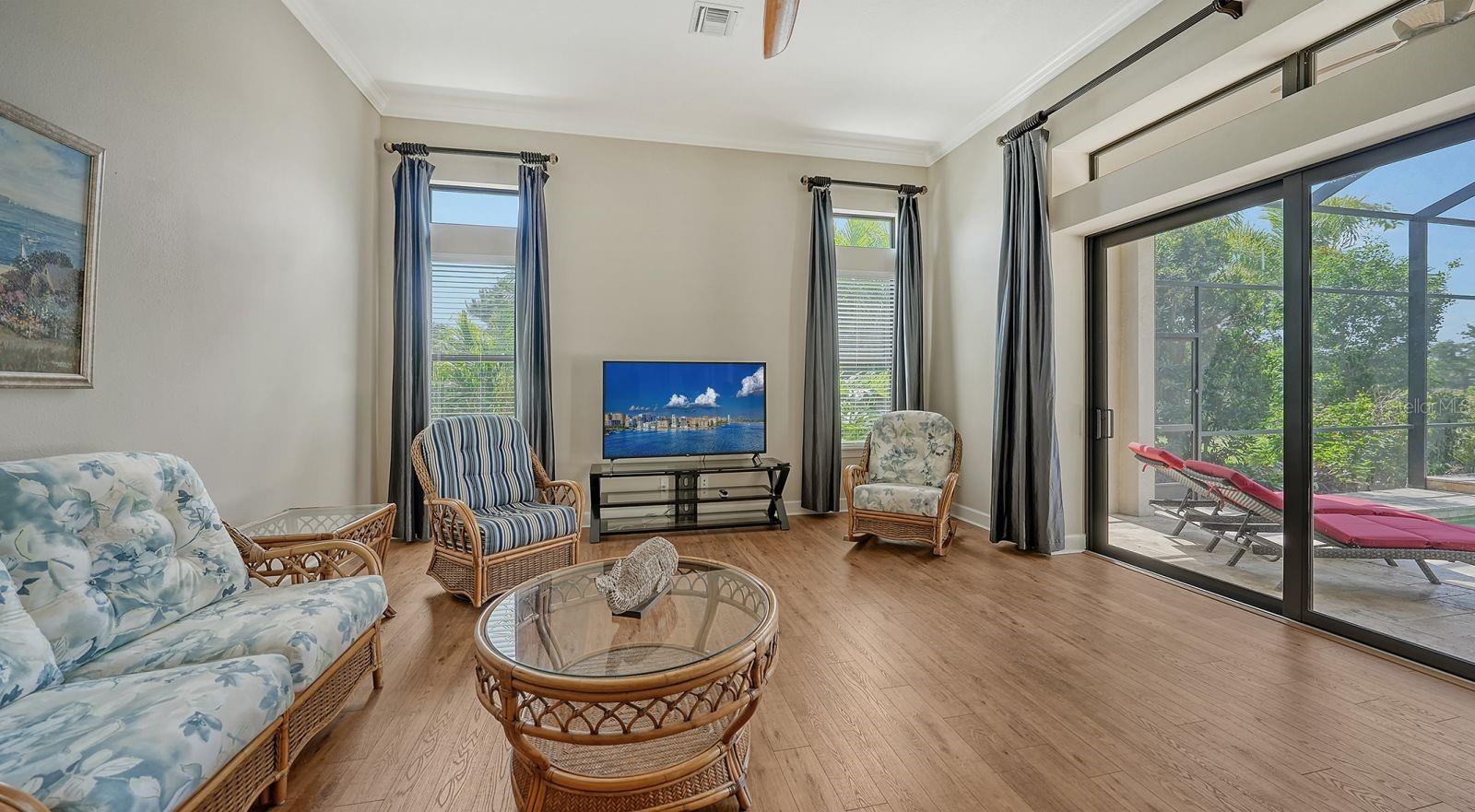 This expanded Mercedes model seamlessly combines luxury and versatility, making it an ideal choice for your dream home. Boasting four bedrooms with en suites and two spacious flex rooms, the home is ideal for hosting extended-stay guests. Each level includes a flex room connected to one of the en-suite bedrooms, creating a private suite where the flex space serves as an adjacent living area. Whether you're working from home, indulging in a hobby, setting up a personal gym or enjoying a private entertainment space, this home offers limitless possibilities. On a private golf lot in the prestigious Esplanade Golf and Country Club, one of Lakewood Ranch's most amenity-rich communities, this 4,850-square-foot home features a 31-foot, three-car garage with an EV charger, a 22,000-kilowatt Generac whole-house generator and a solar-heated 31-foot saltwater pool with a heat pump backup. The home also includes a three-zone HVAC system with UV lights, insulated impact-resistant windows and doors, and remote-controlled hurricane screens for added protection and convenience. Additionally, an enhanced security system ensures peace of mind. The large utility room offers abundant cabinetry, counter space, and space for a full-size refrigerator. Outdoors, the east-facing screened lanai features a travertine surface, an outdoor kitchen and a solar-heated pool with water features, creating a serene space for relaxation and entertainment. Four-panel, eight-foot sliding doors fully retract, allowing for seamless indoor-outdoor living with beautiful views of the pool and lanai. Inside, the home is elegantly appointed with wood cabinetry, granite and quartz countertops, travertine flooring in the main areas, and newly installed wood flooring throughout. The chef’s kitchen features a large island, new refrigerator, two wall ovens, and an induction cooktop with a professional-grade stainless steel hood. Volume ceilings and transom windows, and a second set of lanai-facing sliding doors flood the home with natural light, enhancing its open, airy feel. As a resident of Esplanade, you'll enjoy a wide range of resort-style amenities, including access to the Troon Privé-managed private golf course. This home comes with a deeded golf membership, offering reciprocity with other Troon Privé courses across the country. Community amenities also include two large resort-style pools with cabanas, a resistance pool, two clubhouses, fitness classes, the Koquina Salon and Spa, six lighted Har-Tru tennis courts and six pickleball courts. Dining options such as the Bahama Bar, the Barrel House Bistro and the Culinary Center's main dining room are ideal for socializing with friends and neighbors. A dedicated lifestyle director organizes a variety of social events to enhance the community experience. Additionally, the home is just a short drive from downtown Sarasota and world-class beaches, offering plenty of opportunities for fun and relaxation.