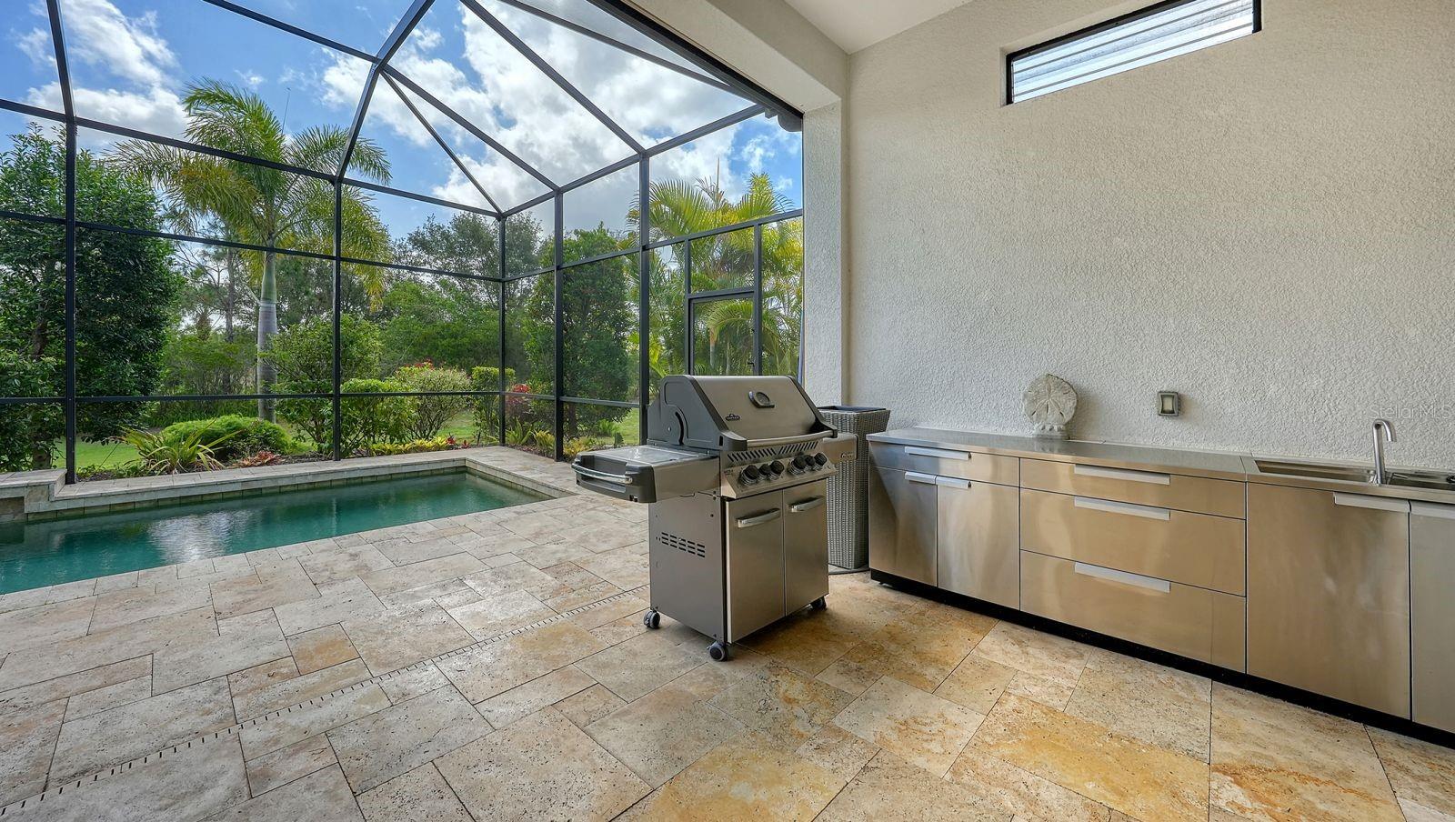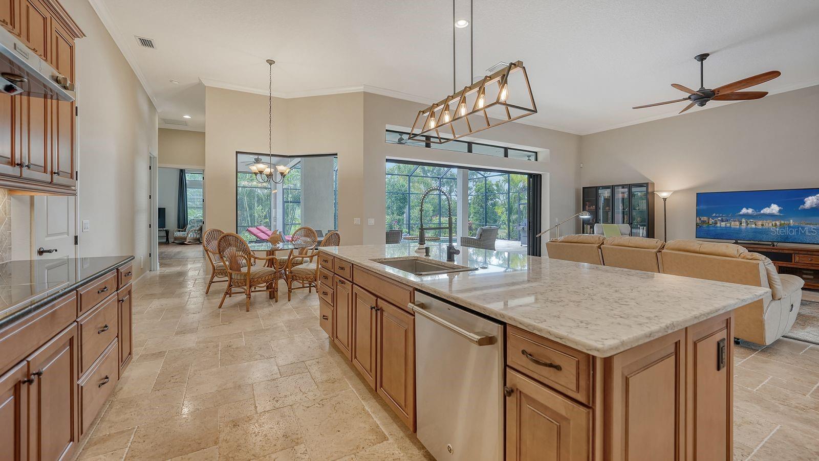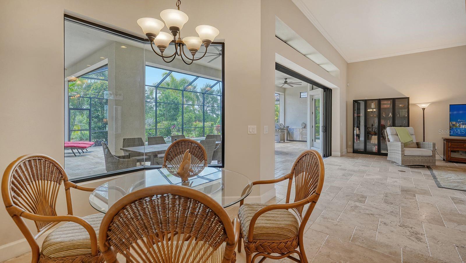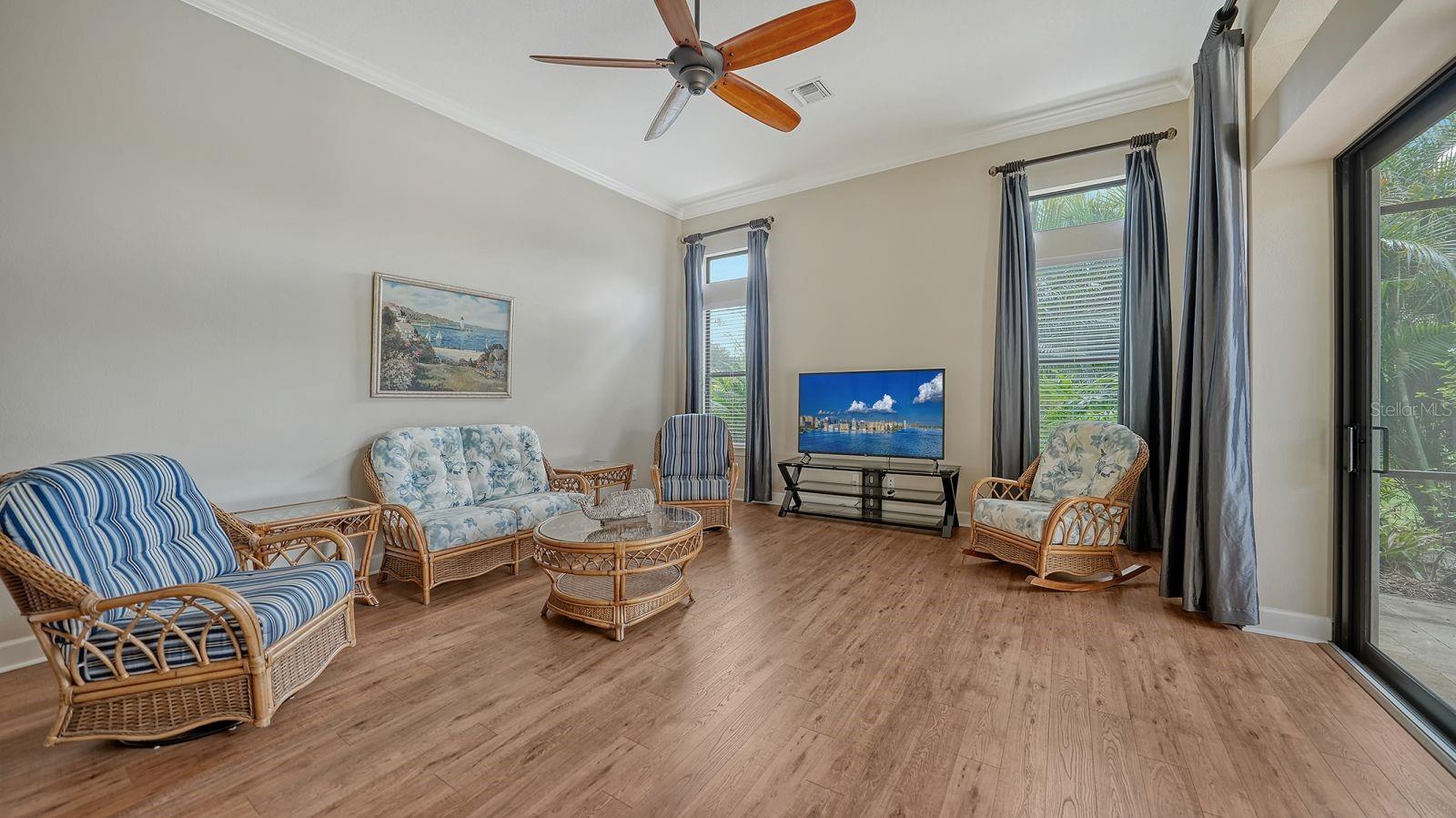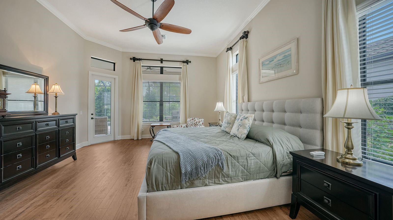 This expanded Mercedes model seamlessly combines luxury and versatility, making it an ideal choice for your dream home. Boasting four bedrooms with en suites and two spacious flex rooms, the home is ideal for hosting extended-stay guests. Each level includes a flex room connected to one of the en-suite bedrooms, creating a private suite where the flex space serves as an adjacent living area. Whether you're working from home, indulging in a hobby, setting up a personal gym or enjoying a private entertainment space, this home offers limitless possibilities. On a private golf lot in the prestigious Esplanade Golf and Country Club, one of Lakewood Ranch's most amenity-rich communities, this 4,850-square-foot home features a 31-foot, three-car garage with an EV charger, a 22,000-kilowatt Generac whole-house generator and a solar-heated 31-foot saltwater pool with a heat pump backup. The home also includes a three-zone HVAC system with UV lights, insulated impact-resistant windows and doors, and remote-controlled hurricane screens for added protection and convenience. Additionally, an enhanced security system ensures peace of mind. The large utility room offers abundant cabinetry, counter space, and space for a full-size refrigerator. Outdoors, the east-facing screened lanai features a travertine surface, an outdoor kitchen and a solar-heated pool with water features, creating a serene space for relaxation and entertainment. Four-panel, eight-foot sliding doors fully retract, allowing for seamless indoor-outdoor living with beautiful views of the pool and lanai. Inside, the home is elegantly appointed with wood cabinetry, granite and quartz countertops, travertine flooring in the main areas, and newly installed wood flooring throughout. The chef’s kitchen features a large island, new refrigerator, two wall ovens, and an induction cooktop with a professional-grade stainless steel hood. Volume ceilings and transom windows, and a second set of lanai-facing sliding doors flood the home with natural light, enhancing its open, airy feel. As a resident of Esplanade, you'll enjoy a wide range of resort-style amenities, including access to the Troon Privé-managed private golf course. This home comes with a deeded golf membership, offering reciprocity with other Troon Privé courses across the country. Community amenities also include two large resort-style pools with cabanas, a resistance pool, two clubhouses, fitness classes, the Koquina Salon and Spa, six lighted Har-Tru tennis courts and six pickleball courts. Dining options such as the Bahama Bar, the Barrel House Bistro and the Culinary Center's main dining room are ideal for socializing with friends and neighbors. A dedicated lifestyle director organizes a variety of social events to enhance the community experience. Additionally, the home is just a short drive from downtown Sarasota and world-class beaches, offering plenty of opportunities for fun and relaxation.