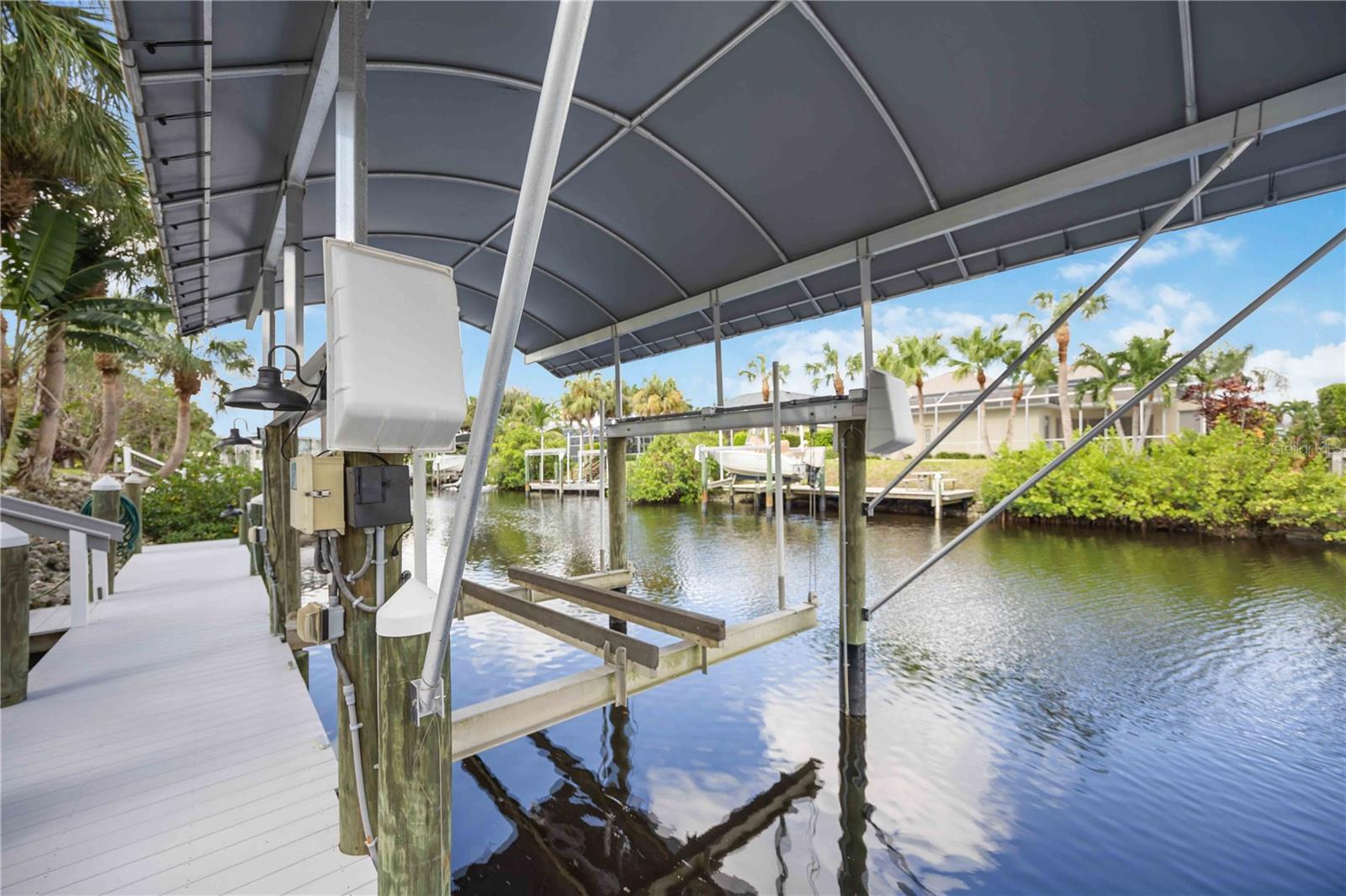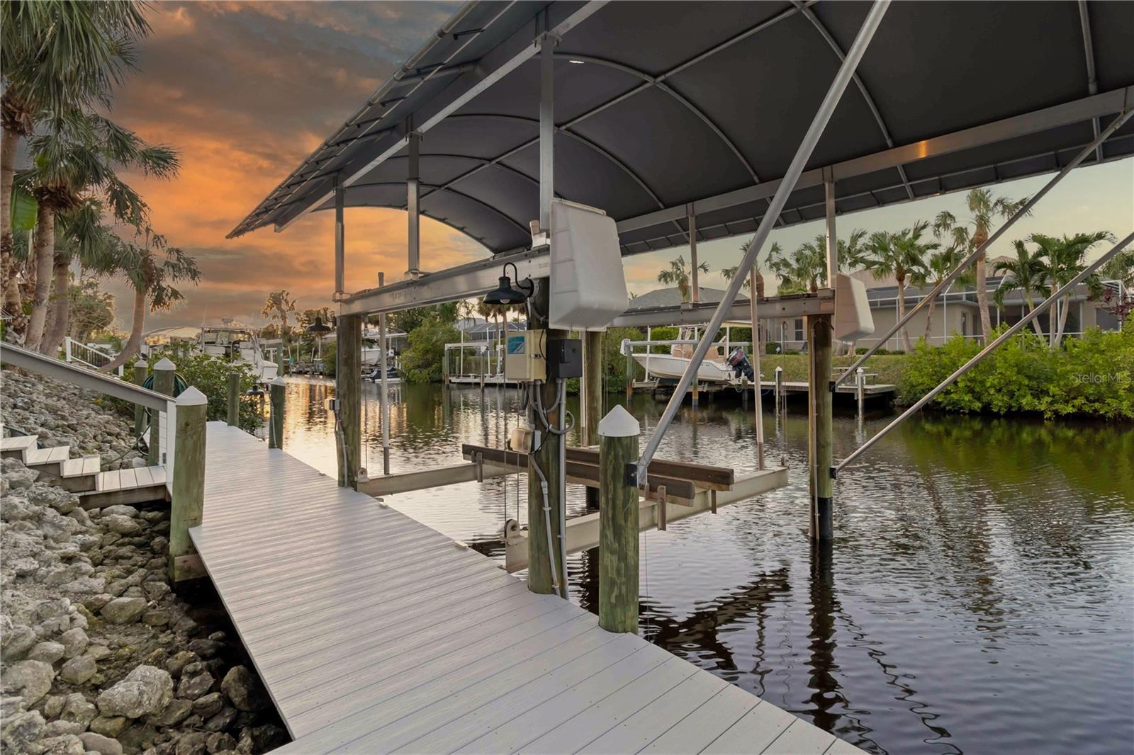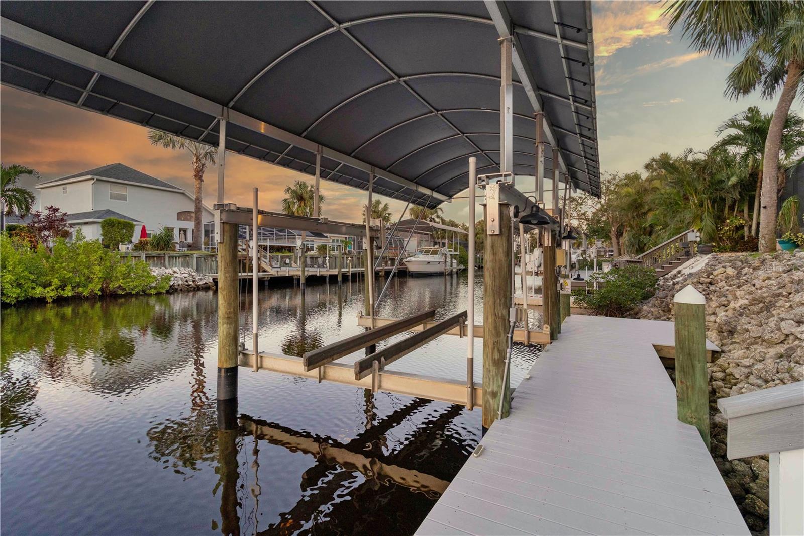 COMPLETE RENOVATION AND REMODEL . . . LUXURY WATERFRONT . . . DEEP SALTWATER CANALS . . . BOATING AND WATERSPORTS . . . POOL HOME . . . PRIVATE COVERED BOAT DOCK AND 10,000 POUND LIFT . . . NEW ROOF (2016). The Inlets at Riverdale is a planned luxury waterfront community. This immaculate home has direct access to the Manatee River and the Gulf of Mexico. With a private dock and lift, it's a boater's dream, offering endless opportunities for water adventures. This stunning 4 bedroom, 3 bathroom residence has been completely renovated for modern luxury and comfort. The entrance showcases impressive double doors leading to a spacious open floor plan with 4'x4' tile flooring, custom built-in storage and smart lighting throughout. The gourmet kitchen includes a waterfall island, oak ridge cabinets, hidden USB port and a special designed coffee and wine bar. The details have been so thoughtful with a 36" two level galley sink, a smart refrigerator with multi-color lighting and a custom-designed range hood. The adjacent dining and living areas, adorned with a shiplap wall, provide a perfect space for entertaining. The primary bedroom offers his-and-her closets, sliders to the outdoor living space and new window screens. The primary bath features a new Toto toilet, fog-free mirrors, new hardware and a beautiful chandelier above the tub. Guest bedrooms include tailor-made closets and unique features. One guest bedroom has an en-suite bath, while the other two guest rooms share a full-size bath with an exterior pool and patio door. The exterior private boat dock has a 10,000-pound lift on a deep-water canal with direct access to the Manatee River and the Gulf of Mexico. The property also features a new dock, new doors, lights, gutters and sliding doors to the outdoor living space. Special features include a north-facing location for picturesque sunsets over the water, centrally located in a friendly neighborhood with low HOA dues and close to all essentials. This luxury home epitomizes high-end coastal living. The Inlets at Riverdale feature fantastic amenities, including tennis courts, a serene nature park, hiking and jogging trails, a fishing pier, a canoe and kayak launch, a lovely picnic area and playground! Call today to schedule your private tour.
