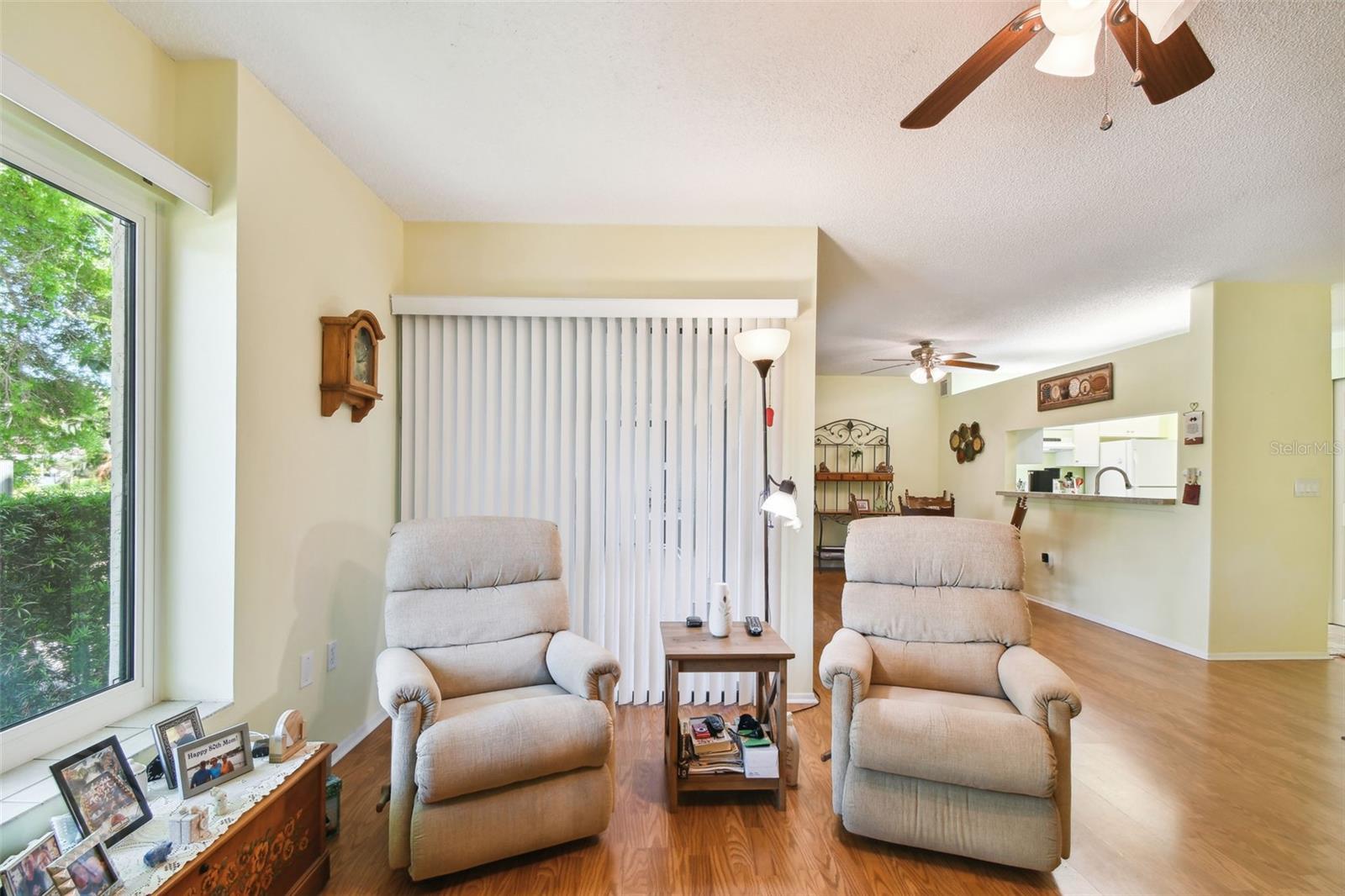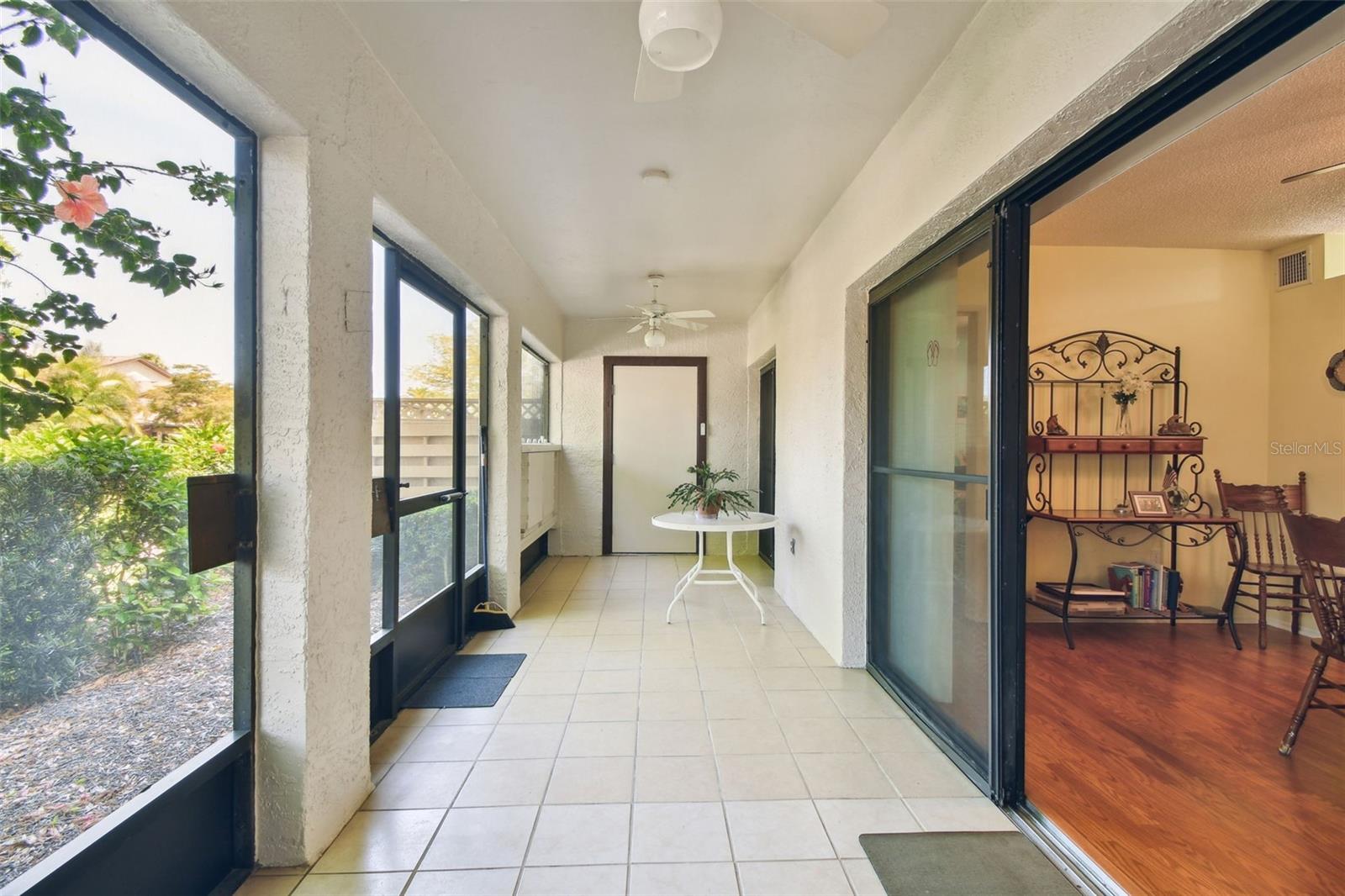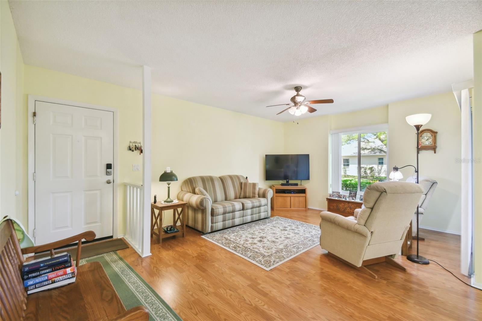 Country Village is a 55+ community. Open spaciousness welcomes you in this first floor unit. Split bedrooms. Kitchen with large pass-thru to dining area. Large wall pantry unique to this unit that owner put in. Laminate flooring throughout except for bathrooms. Master bedroom has spacious walk-in closet. Master bedroom, living room and dining area all open to 23x6 tiled lanai. Windows 2019; Roof 2018; A/C in 2015; covered parking. Country Village offers lots of amenities - a clubhouse where you can meet new friends and neighbors or just socialize while enjoying the heated pool, hot tub; a park-like picnic area for personal grilling. Location is convenient to shopping, restaurants, medical facilities. Things to do and see: DeSoto Memorial Park on the Manatee River, Botanical Gardens, Robinson Preserve where you can canoe, kayak, take walks and just hang out...Then, (10-15 minutes)there are the beaches on Anna Maria Island on Gulf of Mexico for fine and casual dining, shopping, swimming and enjoying relaxing sunsets! Come on down!