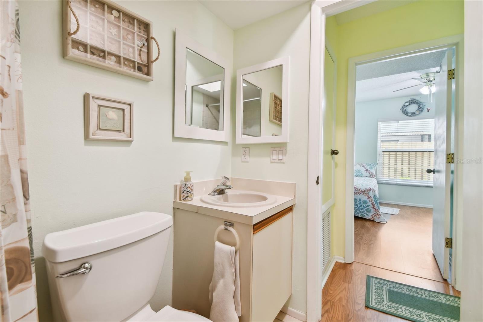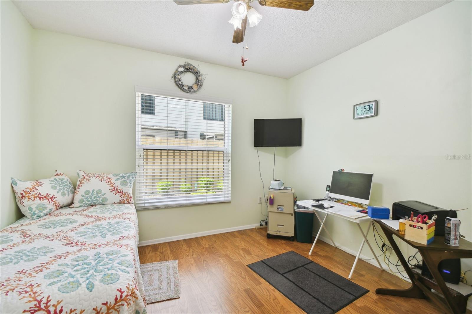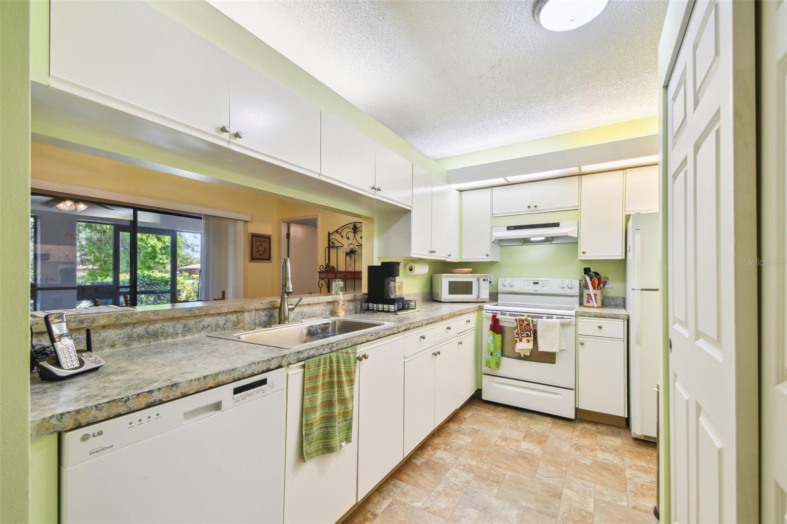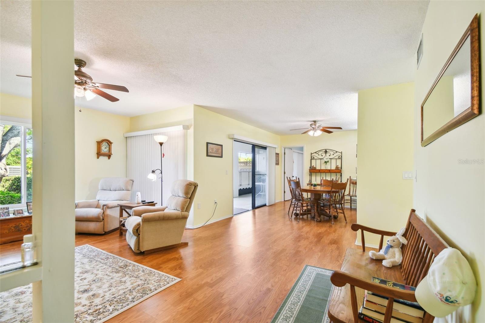 Country Village is a 55+ community. Open spaciousness welcomes you in this first floor unit. Split bedrooms. Kitchen with large pass-thru to dining area. Large wall pantry unique to this unit that owner put in. Laminate flooring throughout except for bathrooms. Master bedroom has spacious walk-in closet. Master bedroom, living room and dining area all open to 23x6 tiled lanai. Windows 2019; Roof 2018; A/C in 2015; covered parking. Country Village offers lots of amenities - a clubhouse where you can meet new friends and neighbors or just socialize while enjoying the heated pool, hot tub; a park-like picnic area for personal grilling. Location is convenient to shopping, restaurants, medical facilities. Things to do and see: DeSoto Memorial Park on the Manatee River, Botanical Gardens, Robinson Preserve where you can canoe, kayak, take walks and just hang out...Then, (10-15 minutes)there are the beaches on Anna Maria Island on Gulf of Mexico for fine and casual dining, shopping, swimming and enjoying relaxing sunsets! Come on down!