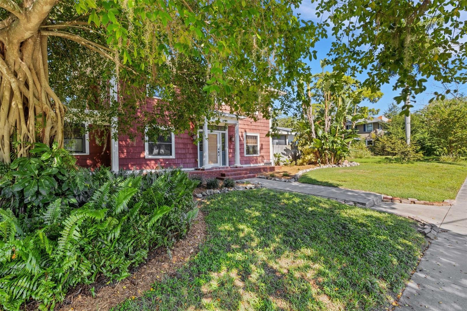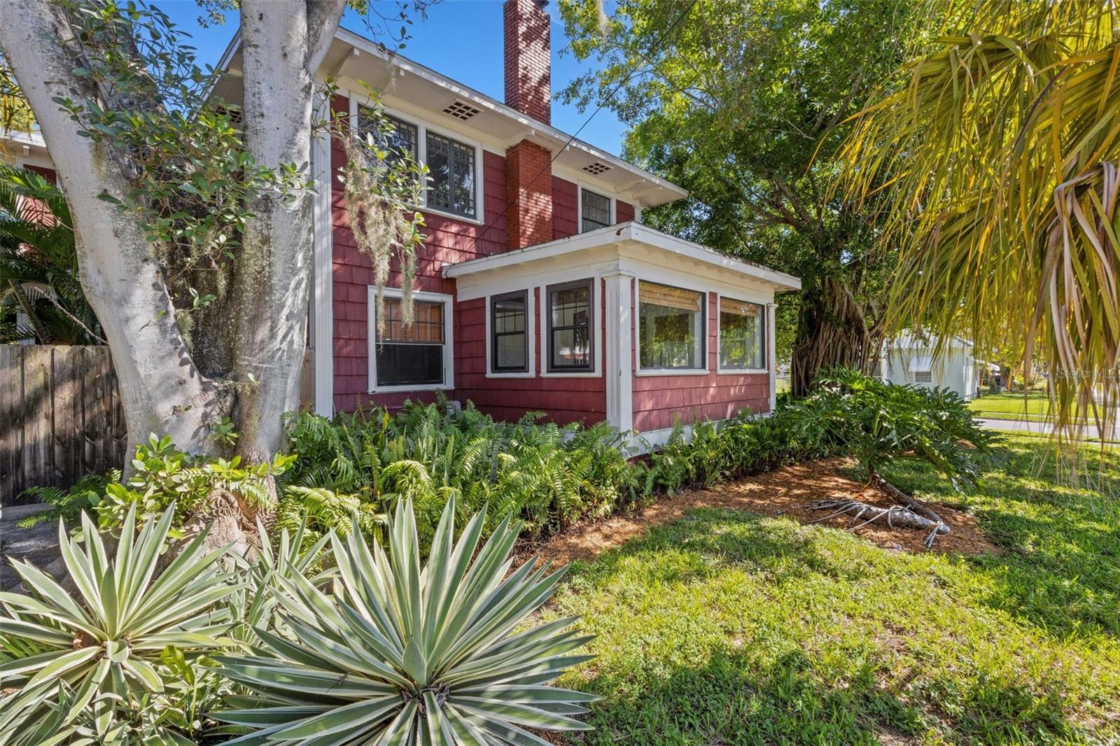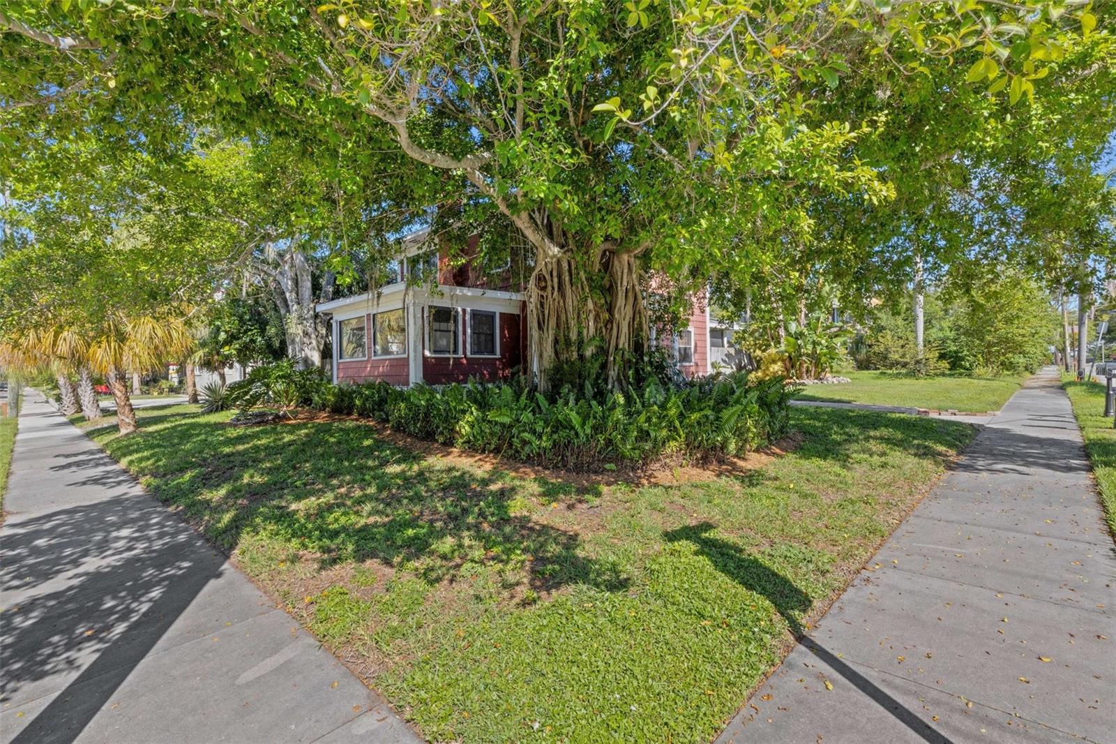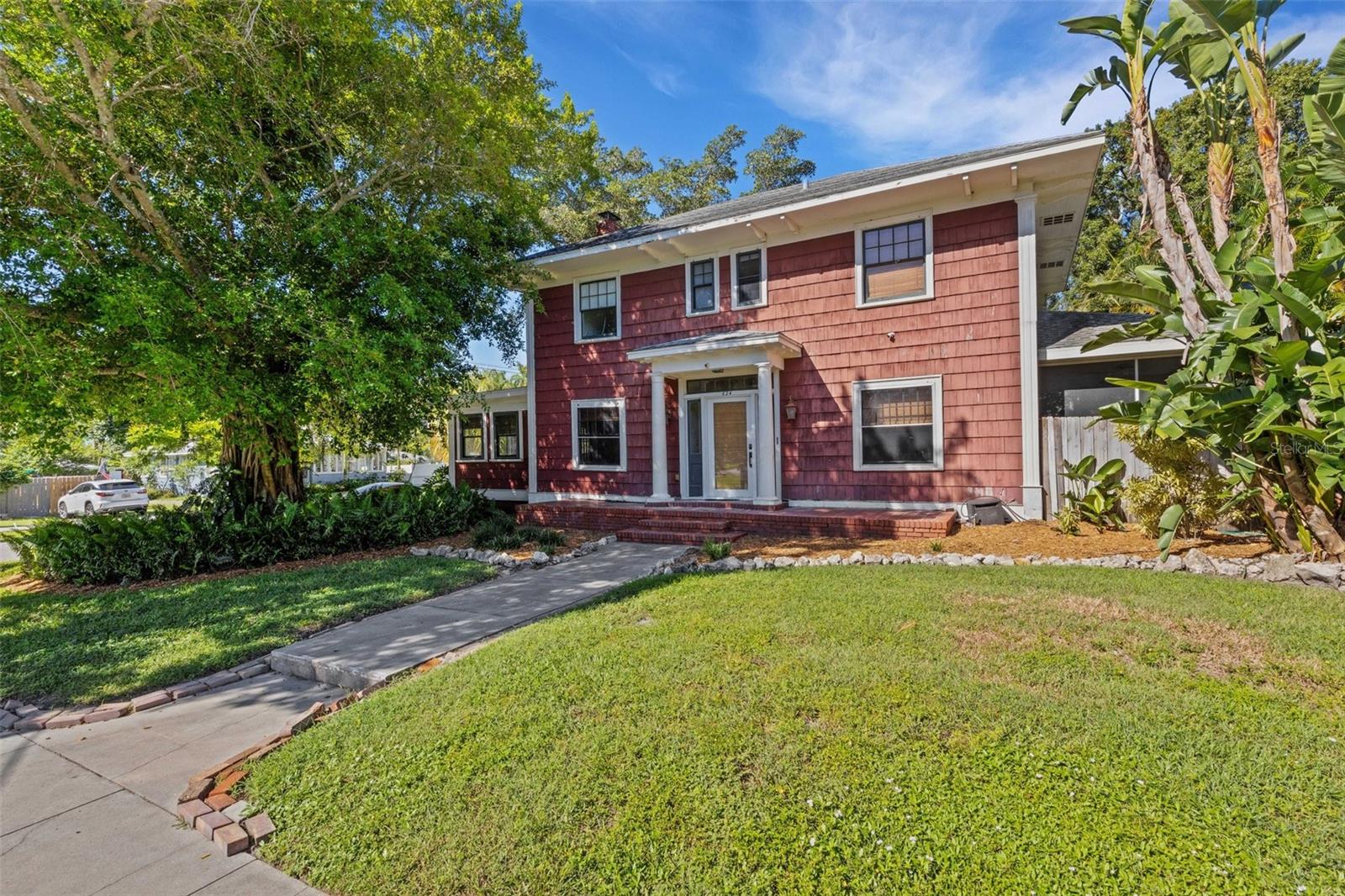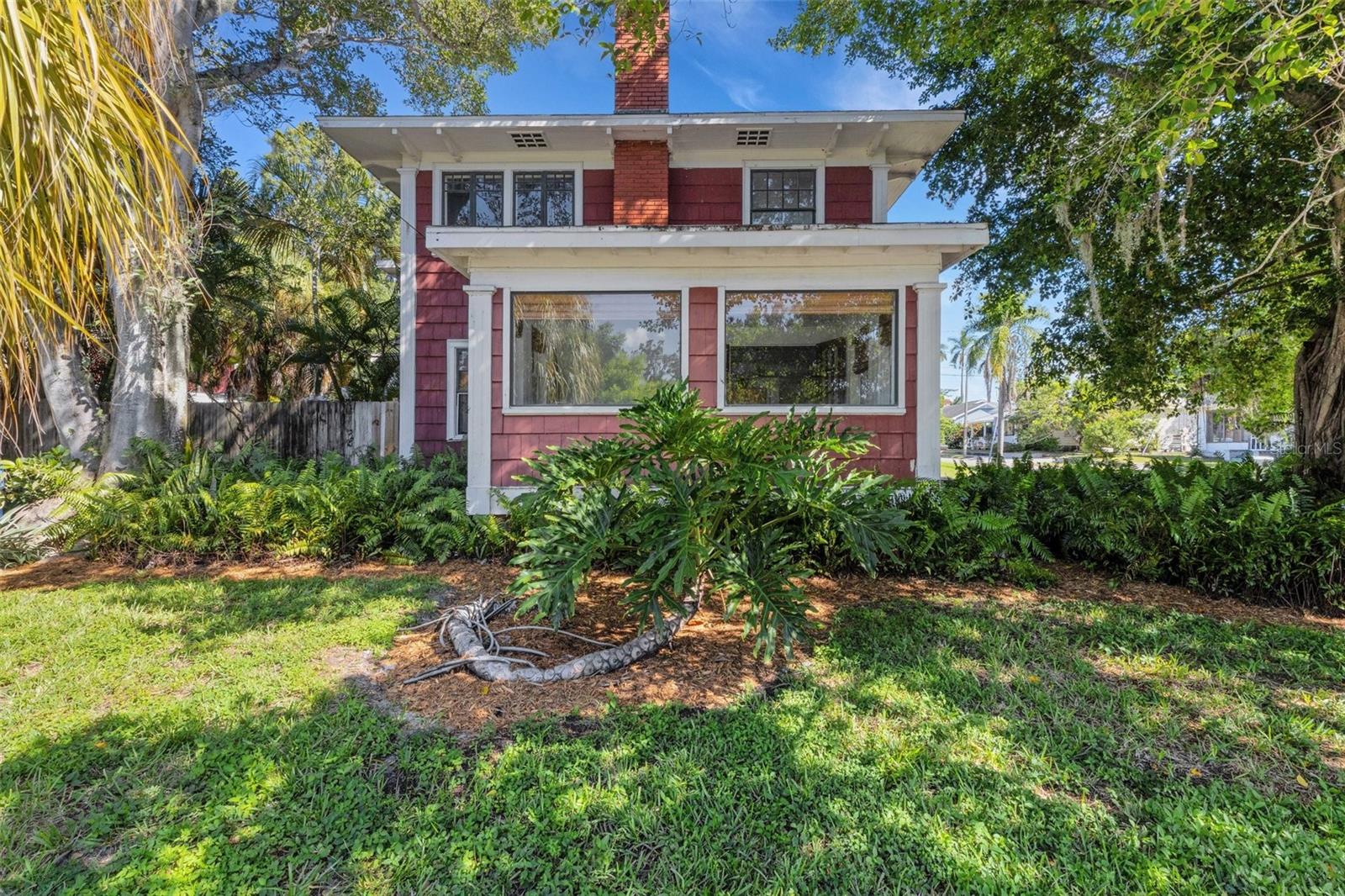 Located in the heart of Historic Wares Creek, this 1935 Craftsman style home is located on a corner lot surrounded by mature trees and landscape. The home features a wood burning fireplace, crown molding, separate dining room, large separate living room, large foyer and beautiful staircase leading to the second floor. The large kitchen has stainless appliances, granite counters, double sink & built in hutch and pantry. A large, screened porch off the kitchen is convenient for entertaining & access to the courtyard. The upstairs has 3 bedrooms, 2 baths & sunporch. The primary has a separate bath with a claw foot tub and walk in closet. A detached Mother-in-law suite with up dated kitchen & bath, Artist Studio & garage are separated from the main home by the courtyard. Many possibilities. Only a few short blocks to downtown Bradenton & the Manatee River, 15 minutes to the Gulf beaches of Anna Maria Island, Robinson Preserve & Desoto National Memorial Park. Walk downtown to the farmers markets, restaurants, shops & River Walk Park