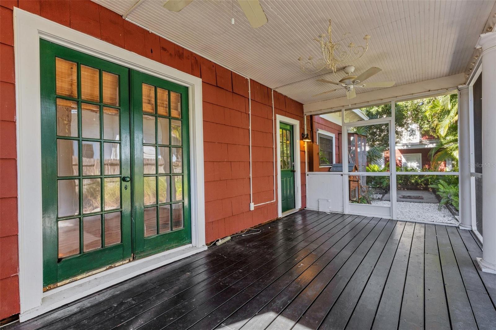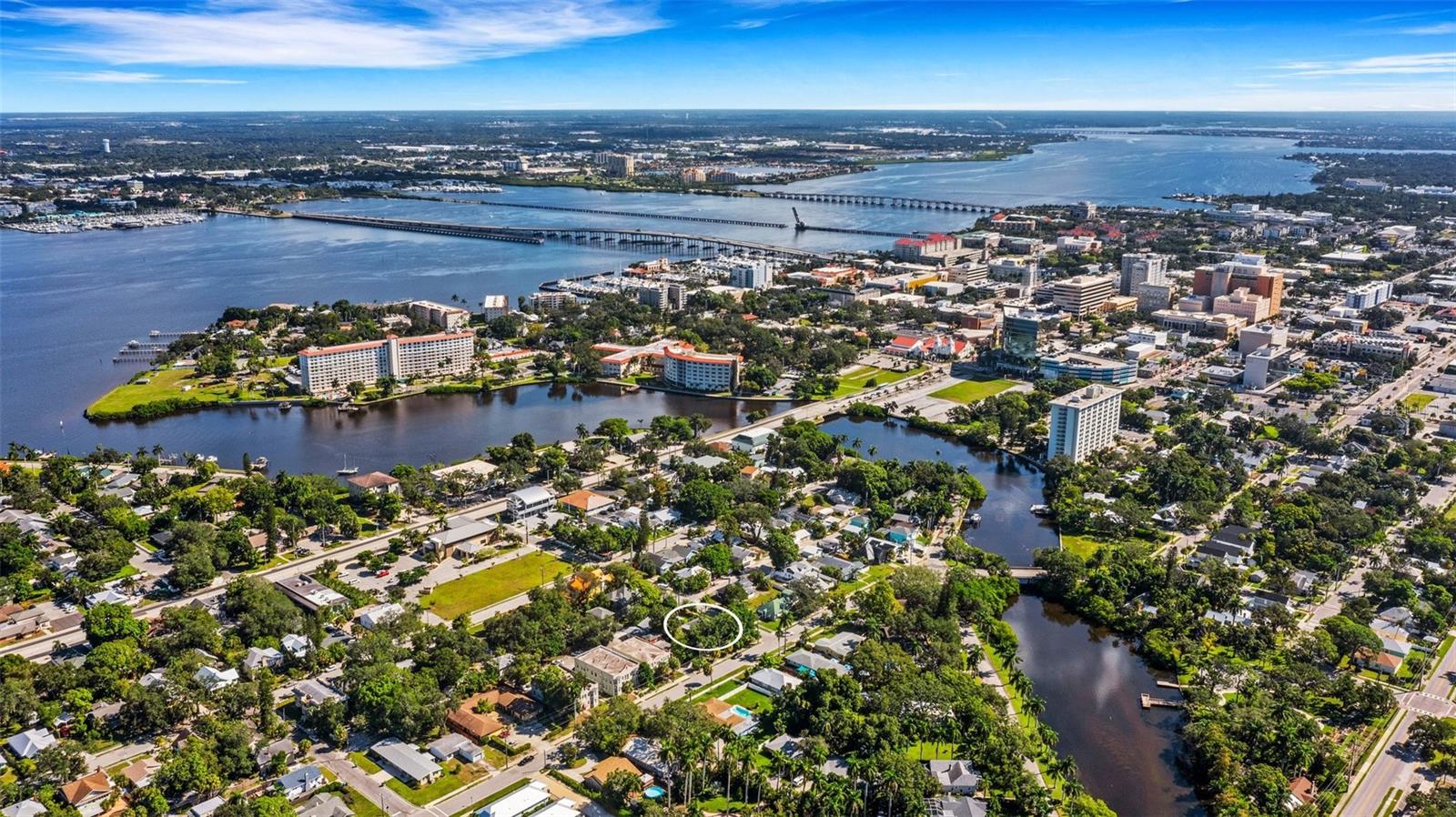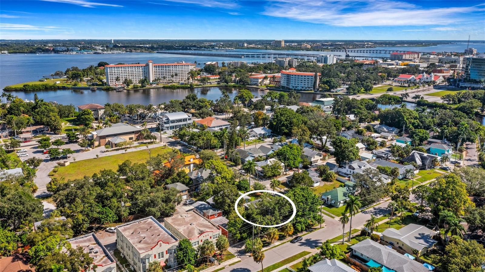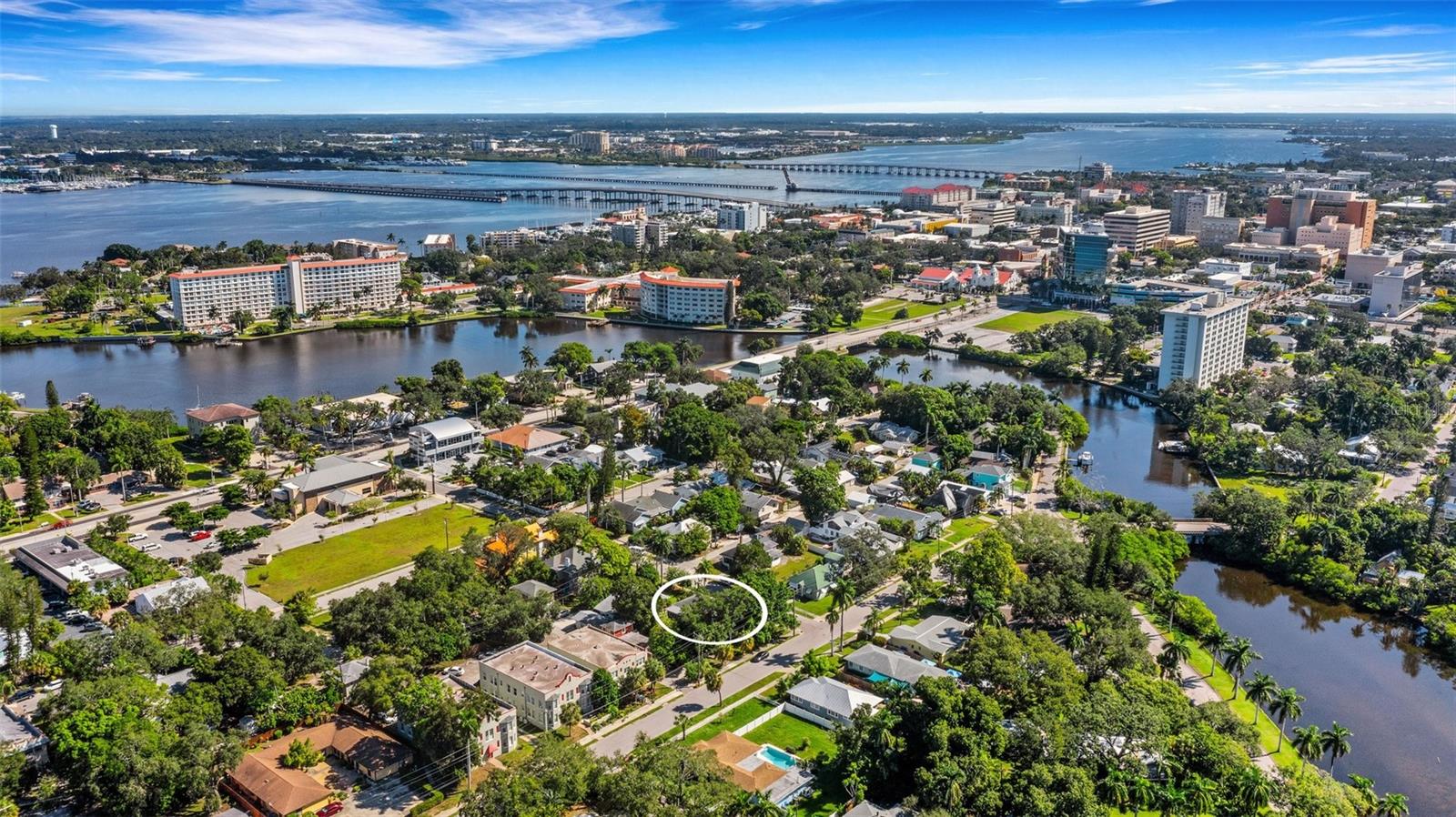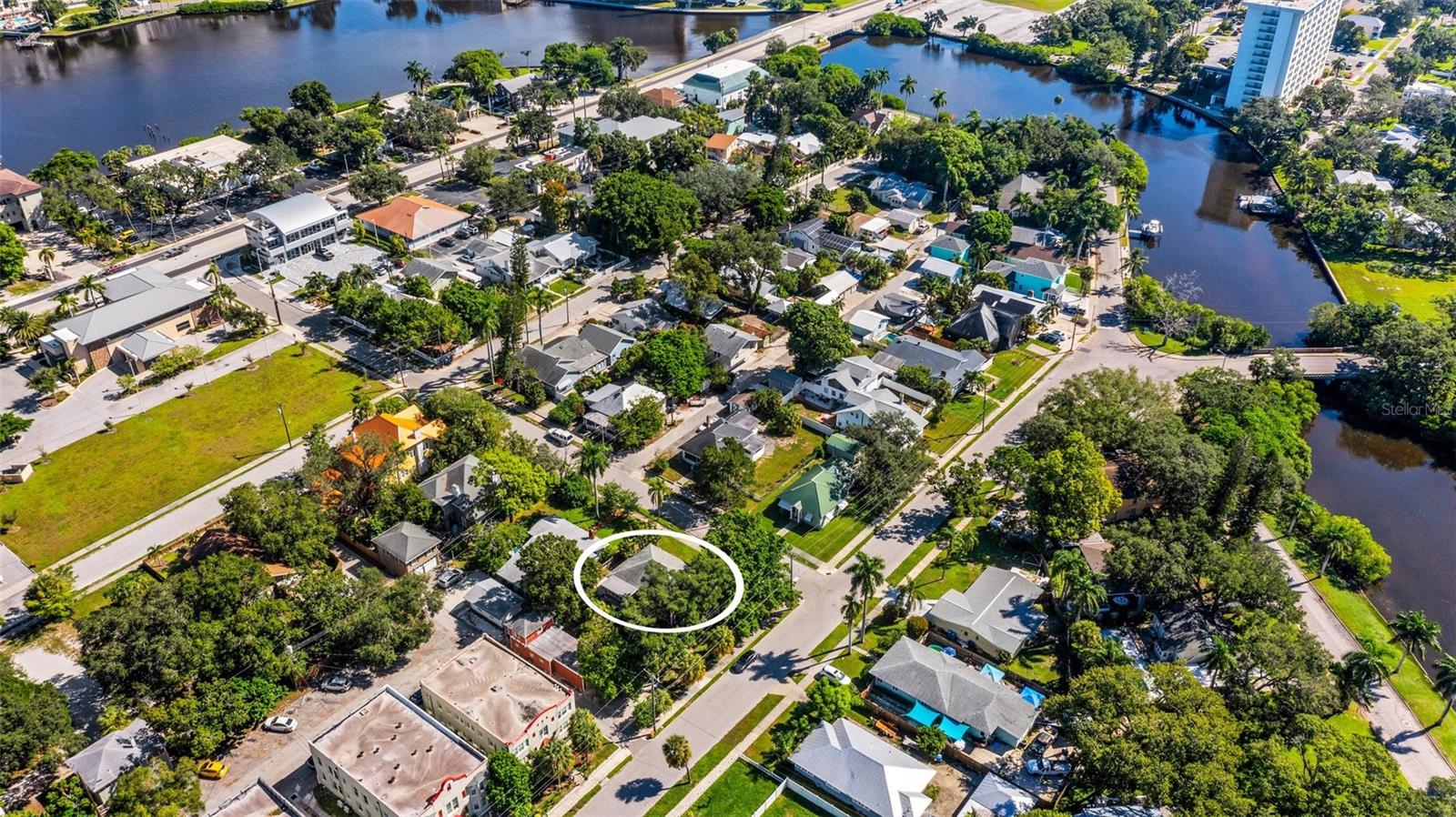Located in the heart of Historic Wares Creek, this 1935 Craftsman style home is located on a corner lot surrounded by mature trees and landscape. The home features a wood burning fireplace, crown molding, separate dining room, large separate living room, large foyer and beautiful staircase leading to the second floor. The large kitchen has stainless appliances, granite counters, double sink & built in hutch and pantry. A large, screened porch off the kitchen is convenient for entertaining & access to the courtyard. The upstairs has 3 bedrooms, 2 baths & sunporch. The primary has a separate bath with a claw foot tub and walk in closet. A detached Mother-in-law suite with up dated kitchen & bath, Artist Studio & garage are separated from the main home by the courtyard. Many possibilities. Only a few short blocks to downtown Bradenton & the Manatee River, 15 minutes to the Gulf beaches of Anna Maria Island, Robinson Preserve & Desoto National Memorial Park. Walk downtown to the farmers markets, restaurants, shops & River Walk Park